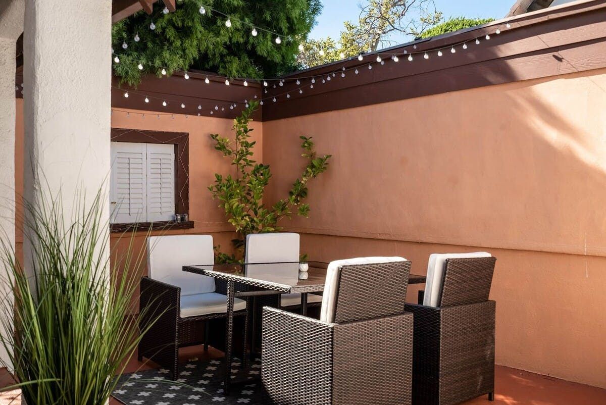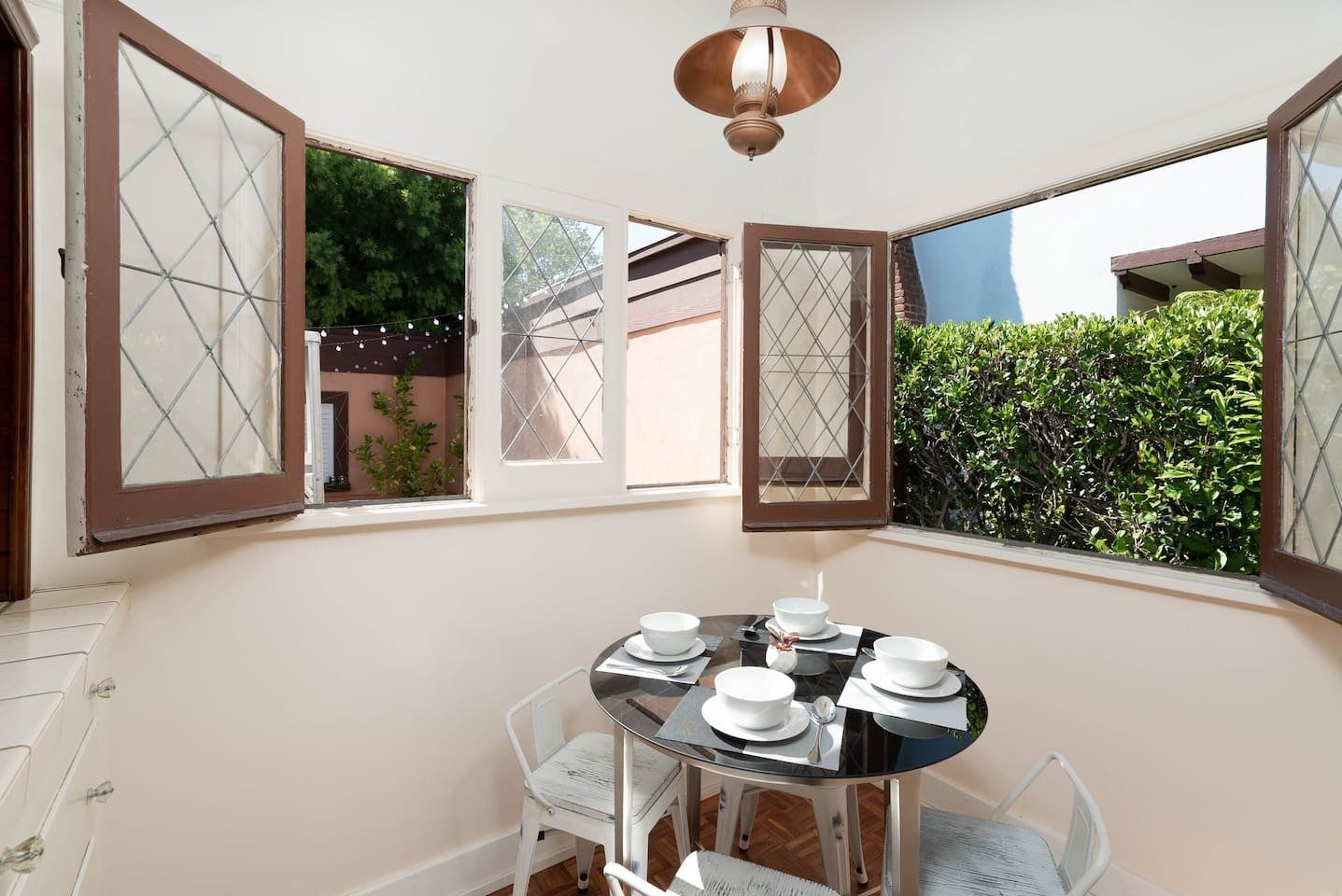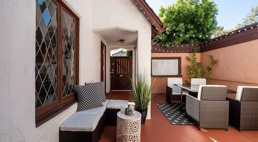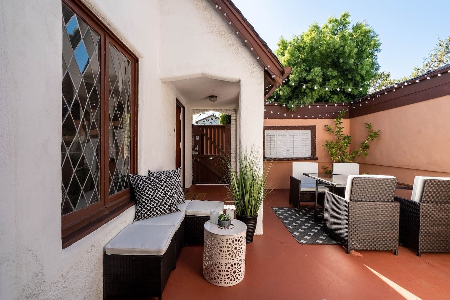 Out the back, you'll find a charming terracotta-hued terrace area that's just the ticket for alfresco feasts as the sun goes down. One thing that certainly hasn't changed in the years since this property was constructed is the enviability of the location. Right in the middle of the city, you can drive to Santa Monica beach in under twenty minutes, while in the other direction, the bright lights of Hollywood can be reached in a little over five.