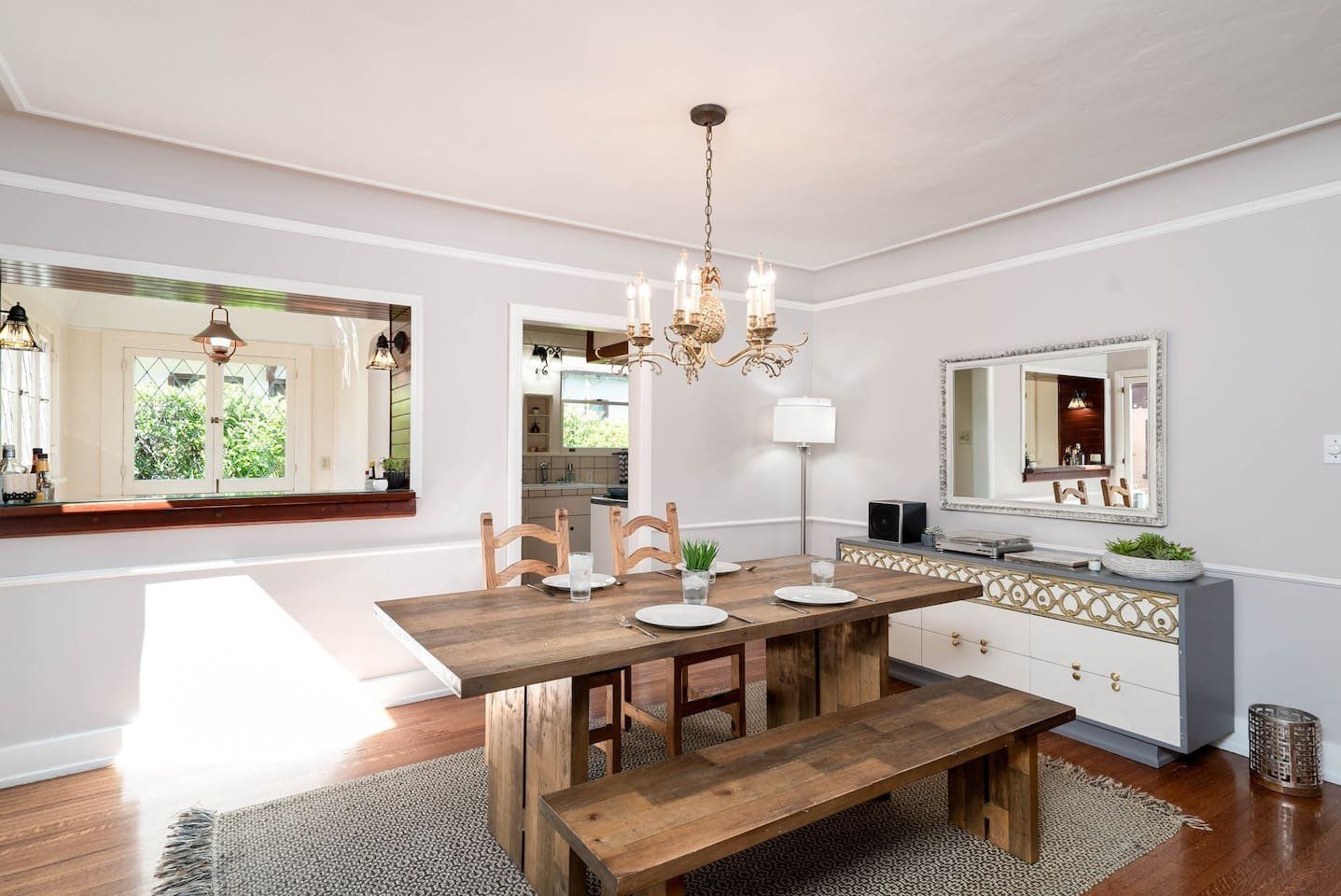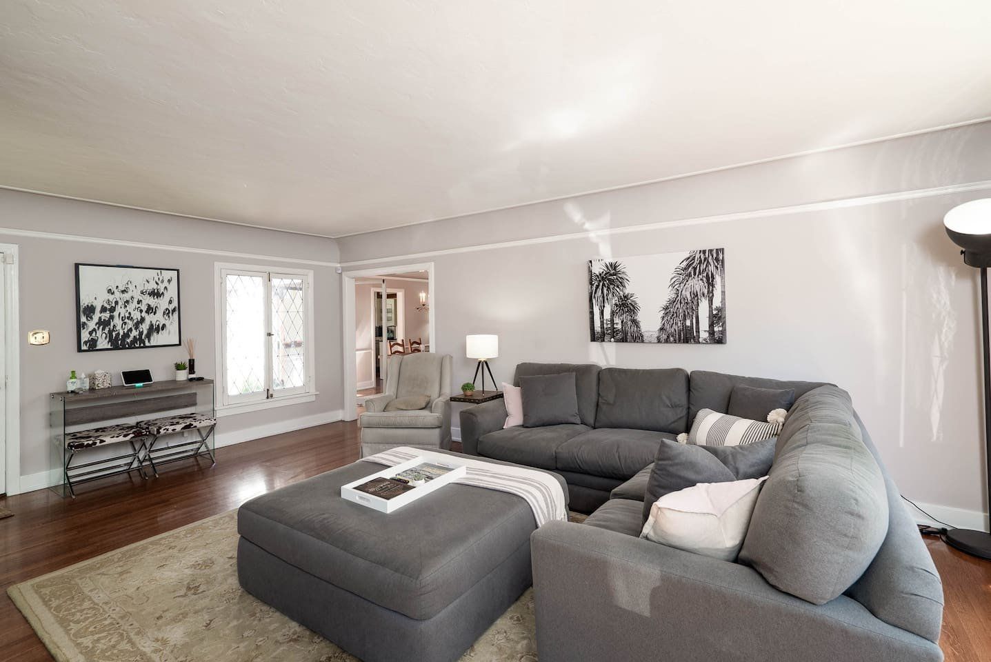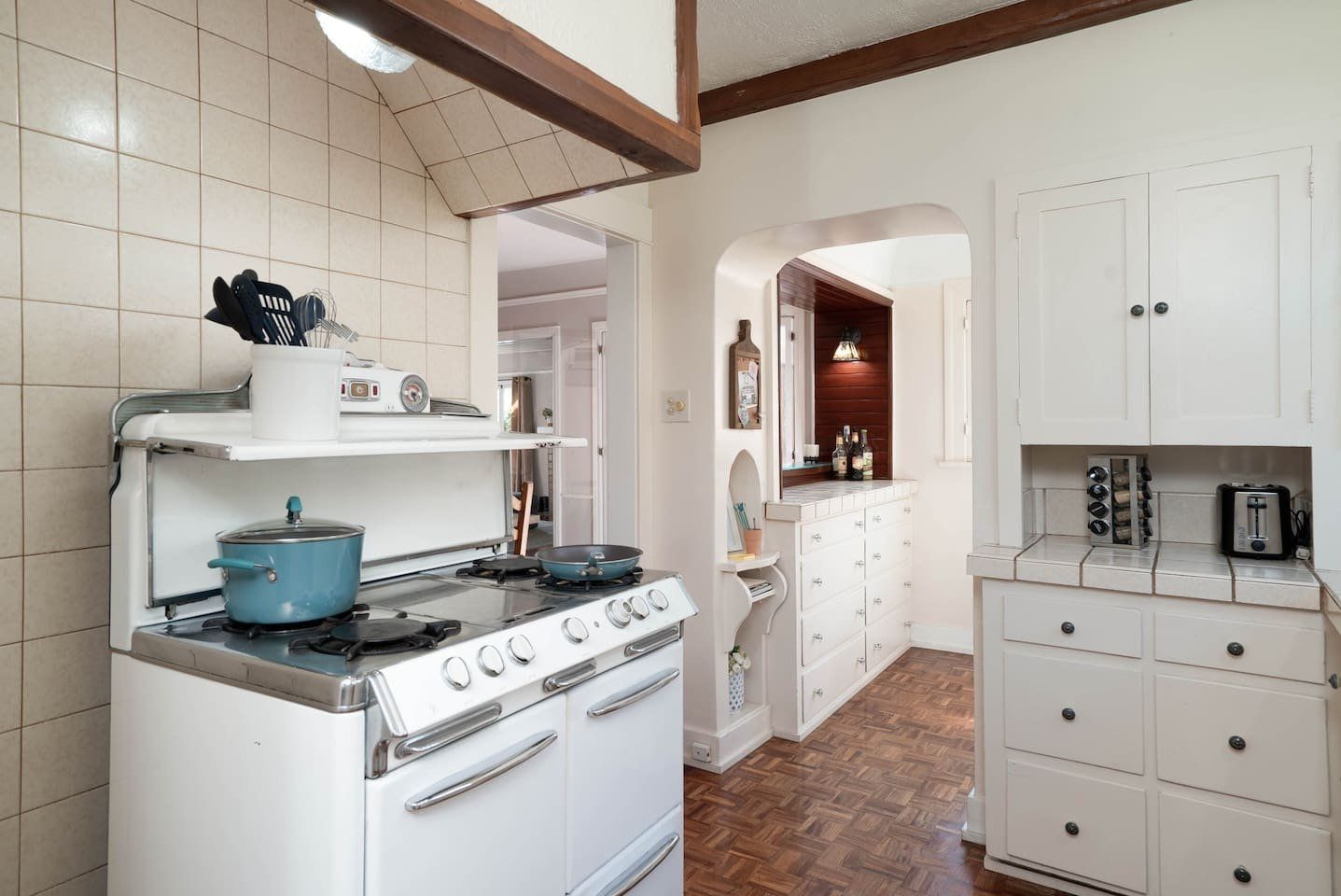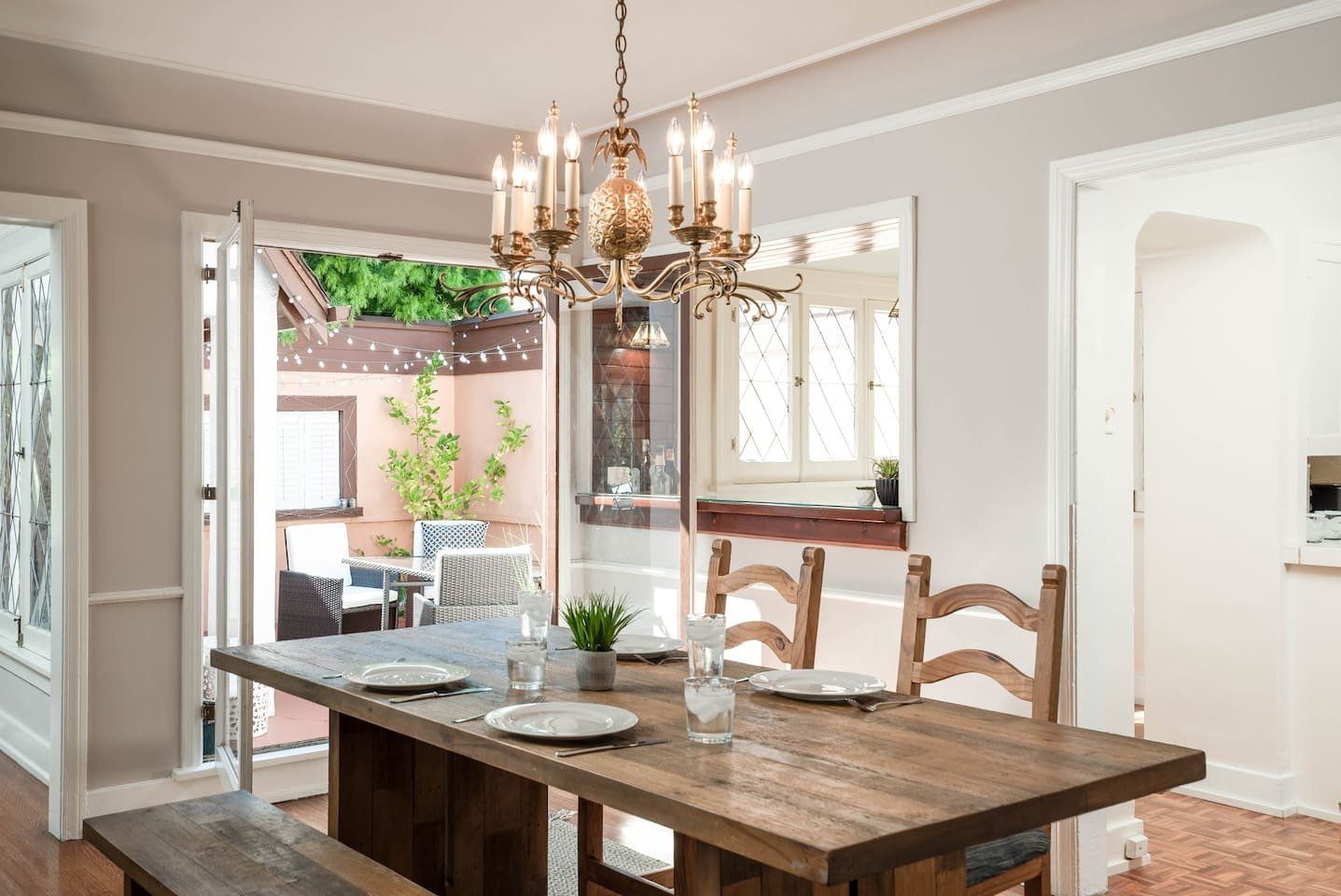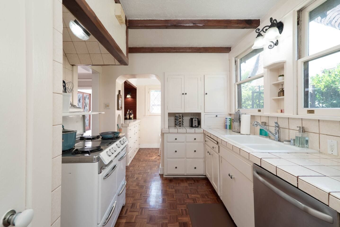 In the same year that this craftsman's house was built in Hancock Park, LA's most famous landmark was also erected in Griffith Park. Today, both are still standing and from this one, you can see the Hollywood Sign from the front garden. Much like stars of the screen in their later years, this home doesn't look its age thanks to the bright white walls and the plush furnishings to be found inside, but there are still signs of its history if you look closely enough — particularly in the kitchen, with the wooden-vaulted ceiling and vintage-style oven.