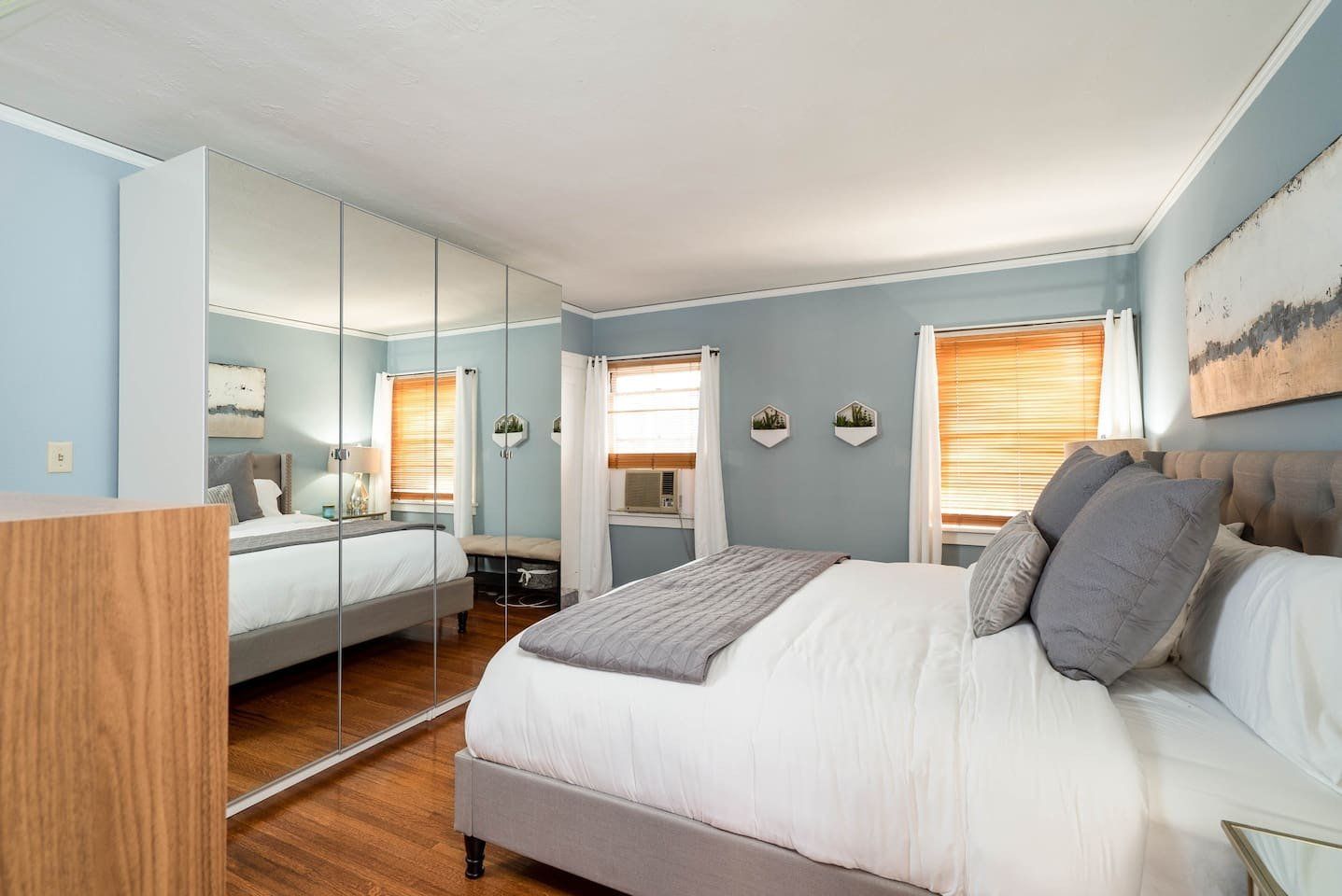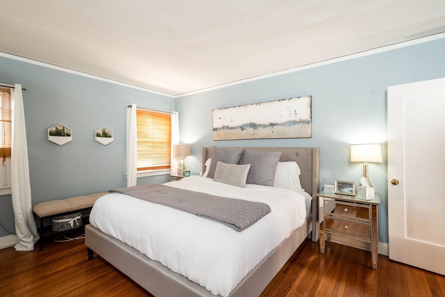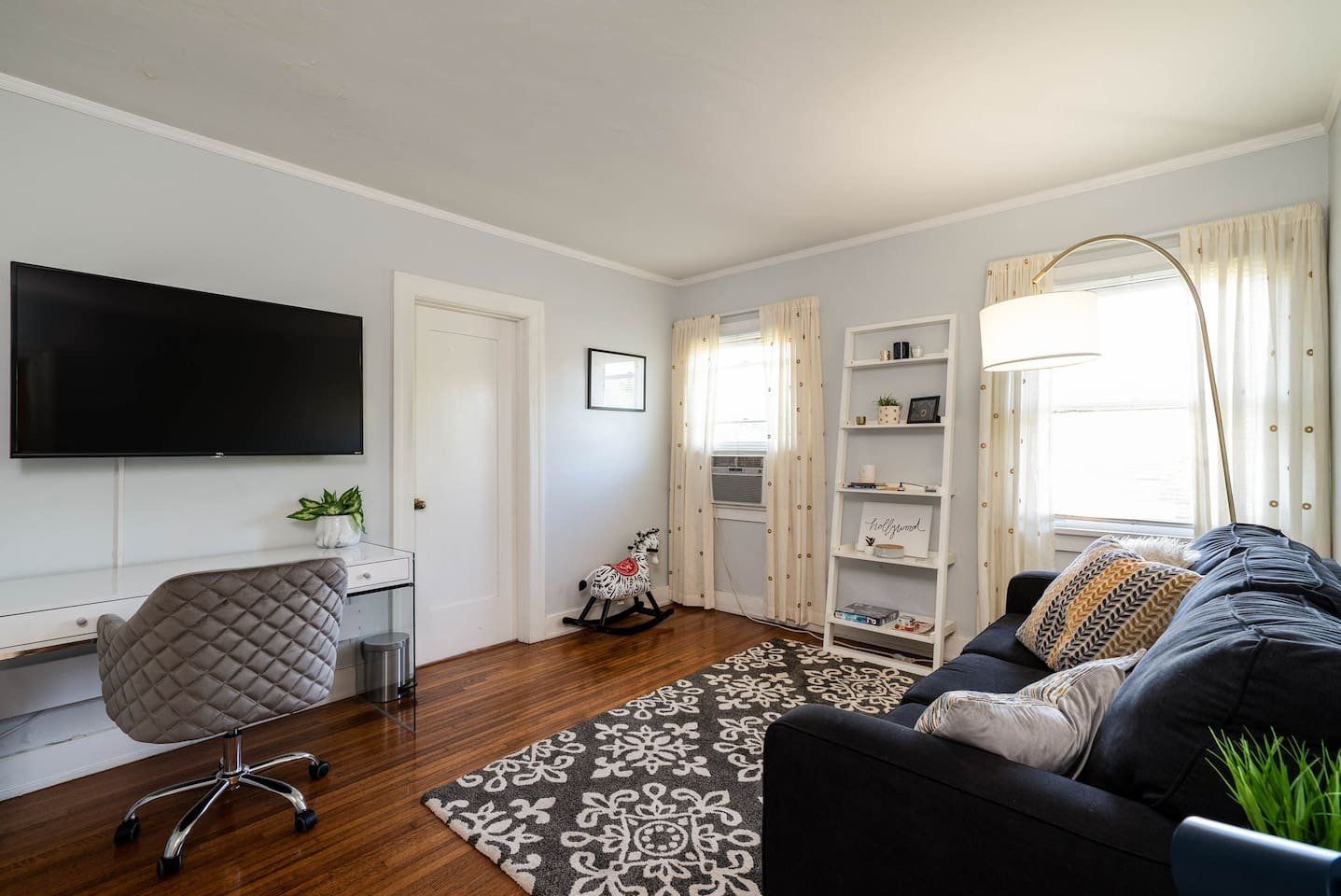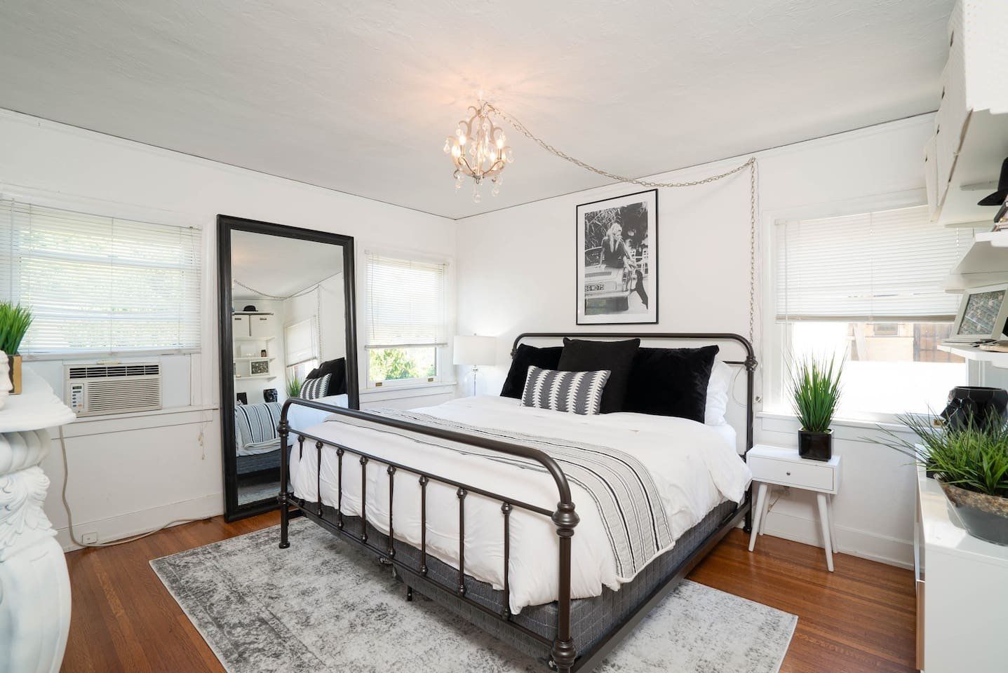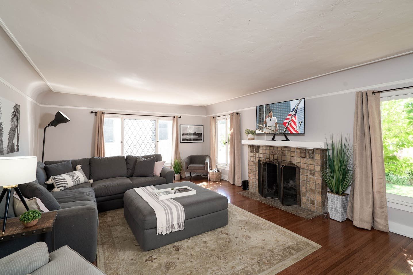 In the same year that this craftsman's house was built in Hancock Park, LA's most famous landmark was also erected in Griffith Park. Today, both are still standing and from this one, you can see the Hollywood Sign from the front garden. Much like stars of the screen in their later years, this home doesn't look its age thanks to the bright white walls and the plush furnishings to be found inside, but there are still signs of its history if you look closely enough — particularly in the kitchen, with the wooden-vaulted ceiling and vintage-style oven.