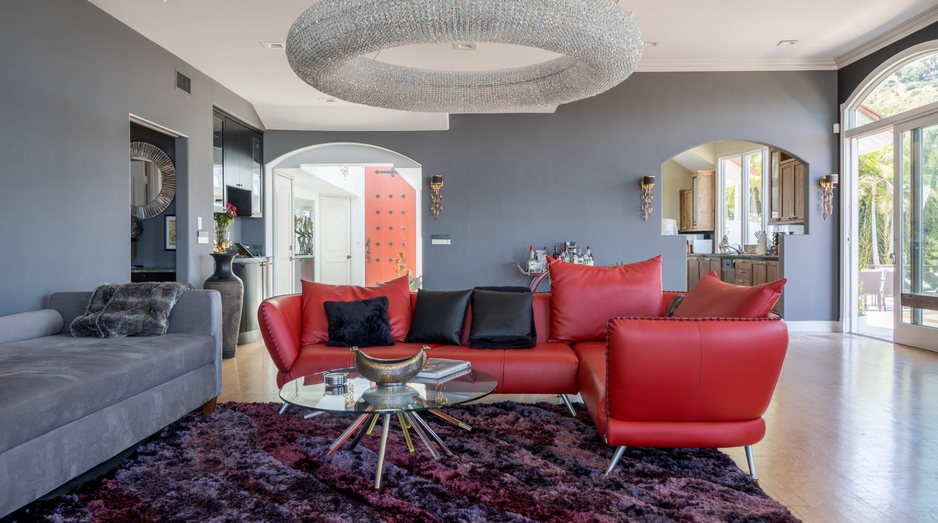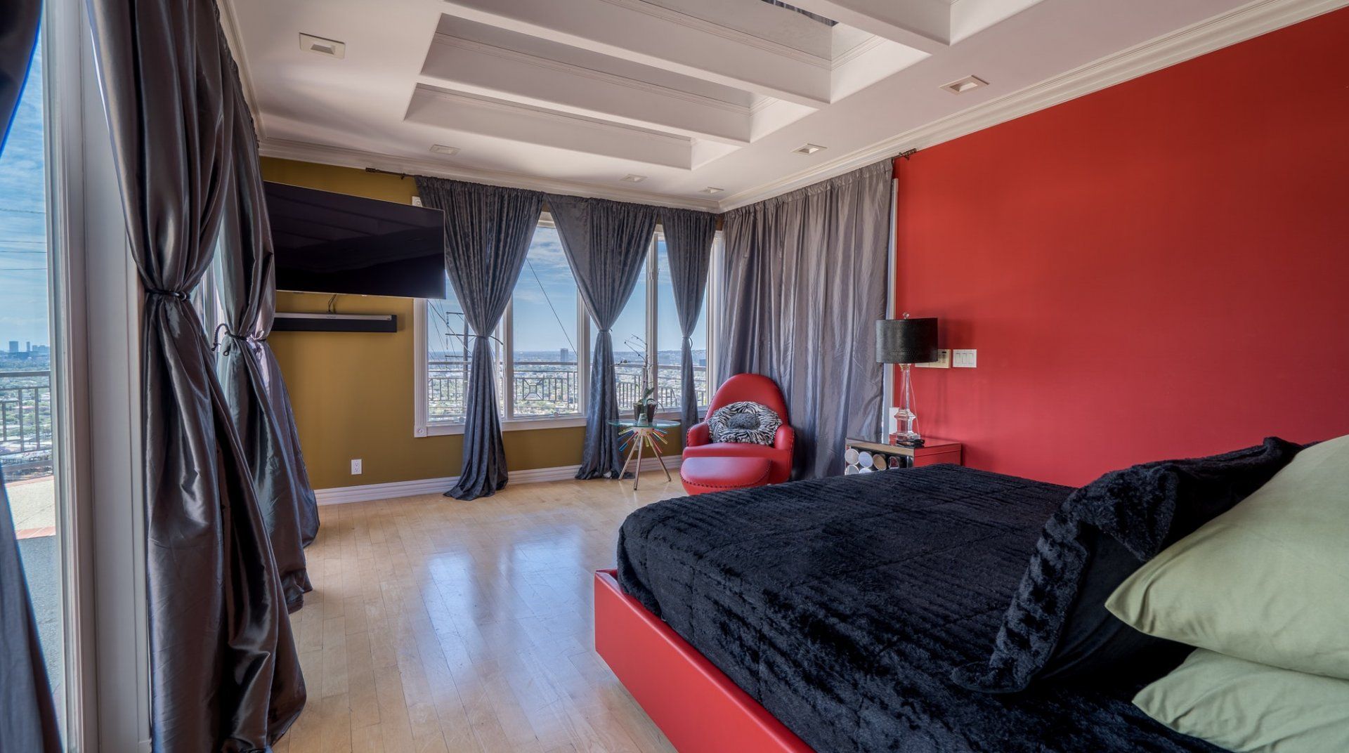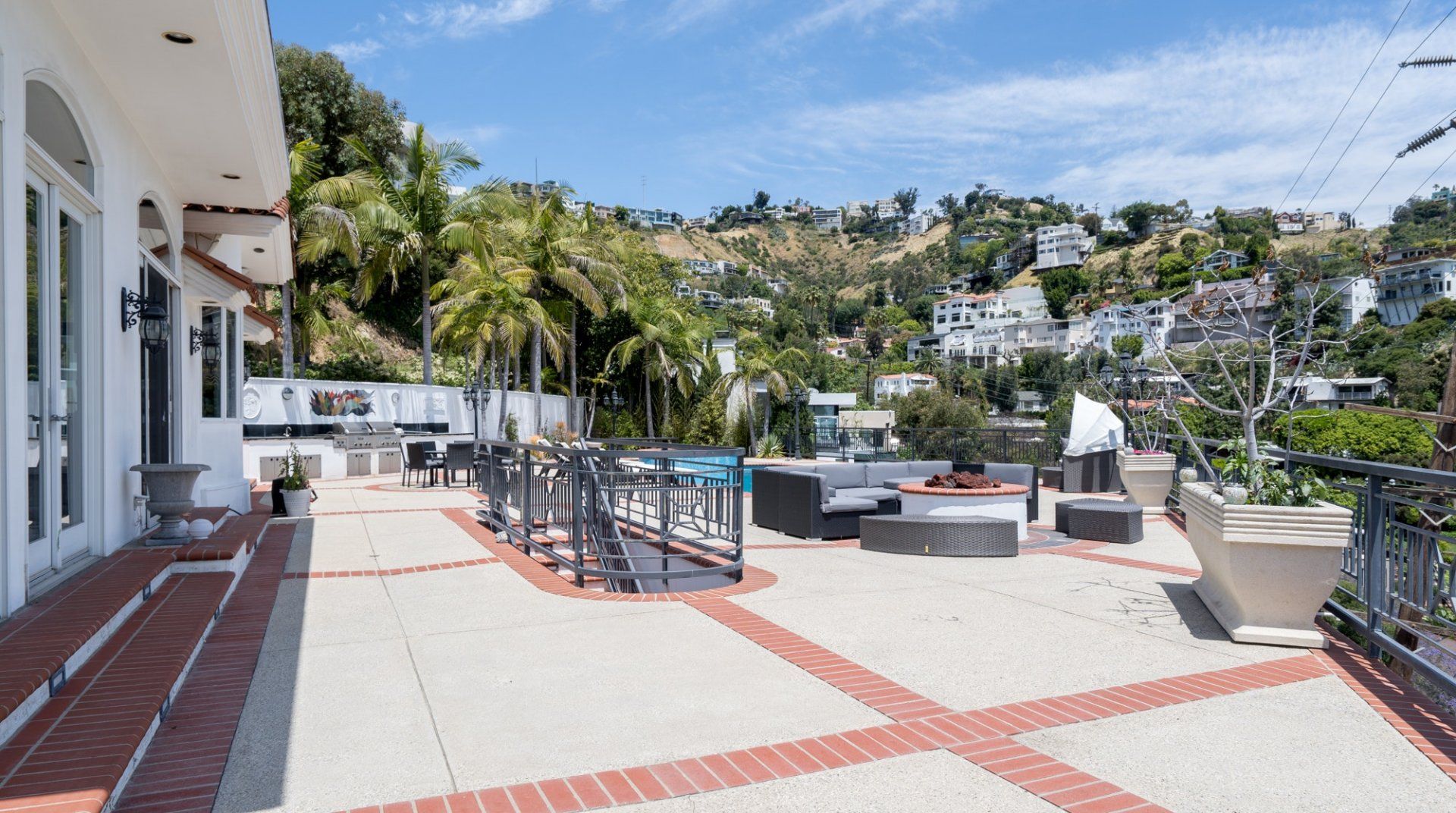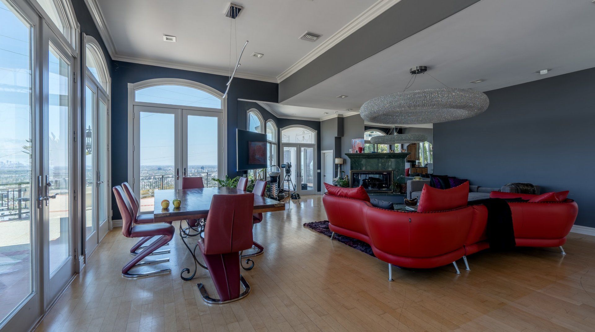 Like something out of a Bond movie, this home on a hillside is the height of luxury, with a home cinema setup, a hot tub and pool, floor-to-ceiling windows, even a rowing machine and a popcorn machine. A dream bachelor pad, there's a glamorous style to everything from the red sofas and glitzy light fitting in the living room to the black-painted bathroom and the outdoor furniture. Speaking of the terrace, this home has plenty of scope to enjoy the California sunshine, with doors opening to a vast outdoor space with unbeatable views all the way to Downtown LA, Century City and – on a clear day – the ocean. There's a fabulous pool and at night you can swim alongside the glittering city lights while someone lights up the fire pit and grills an evening meal on the impressive barbecue. Location-wise, it doesn't get much better. In a great neighbourhood, you're just a ten-minute drive from Hollywood.