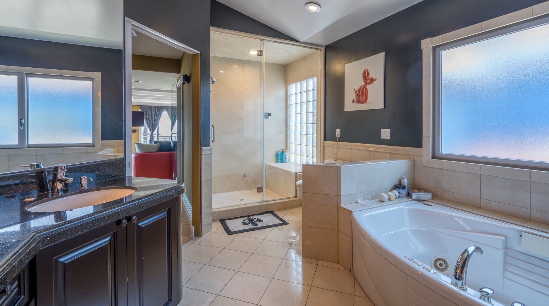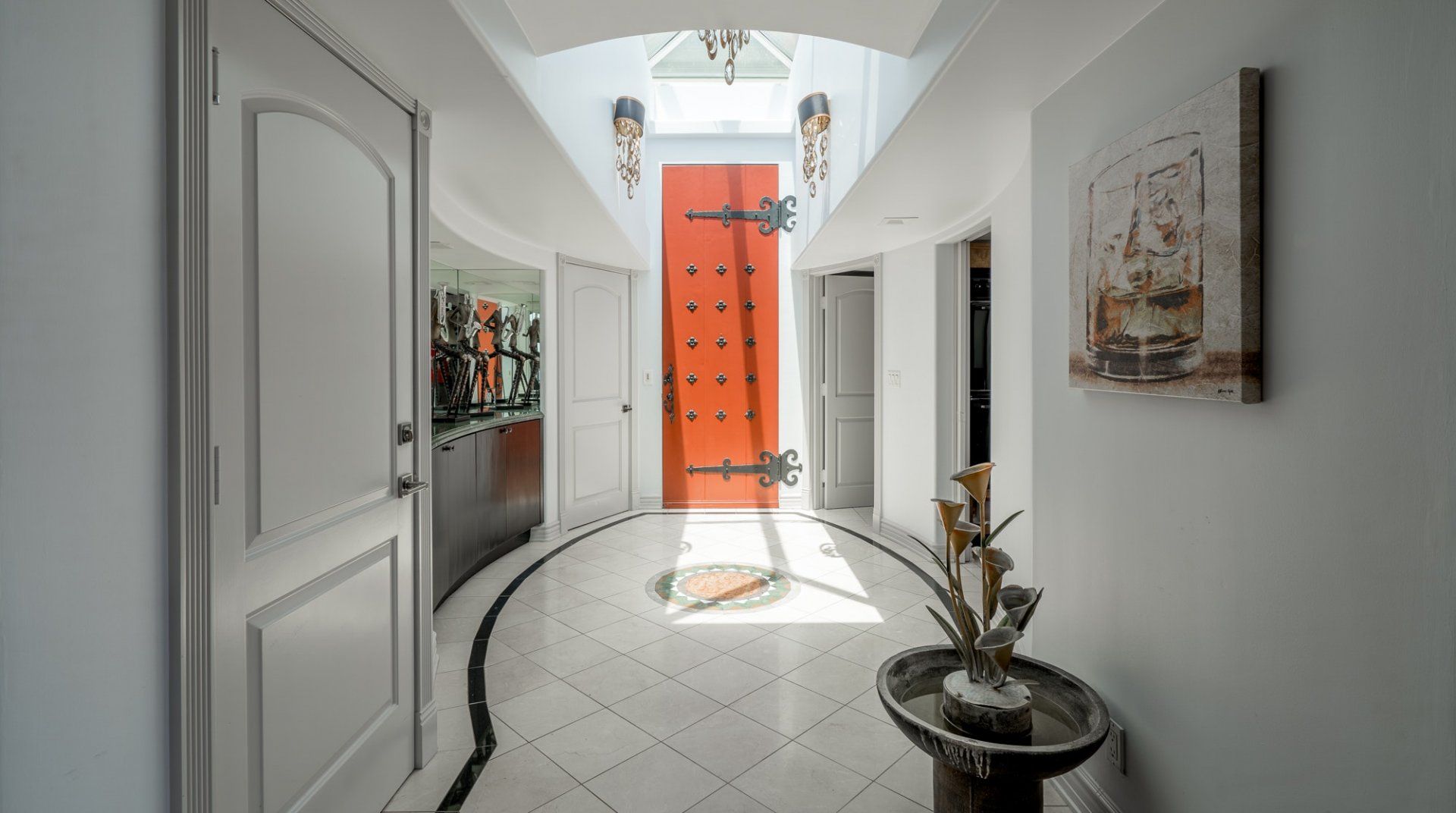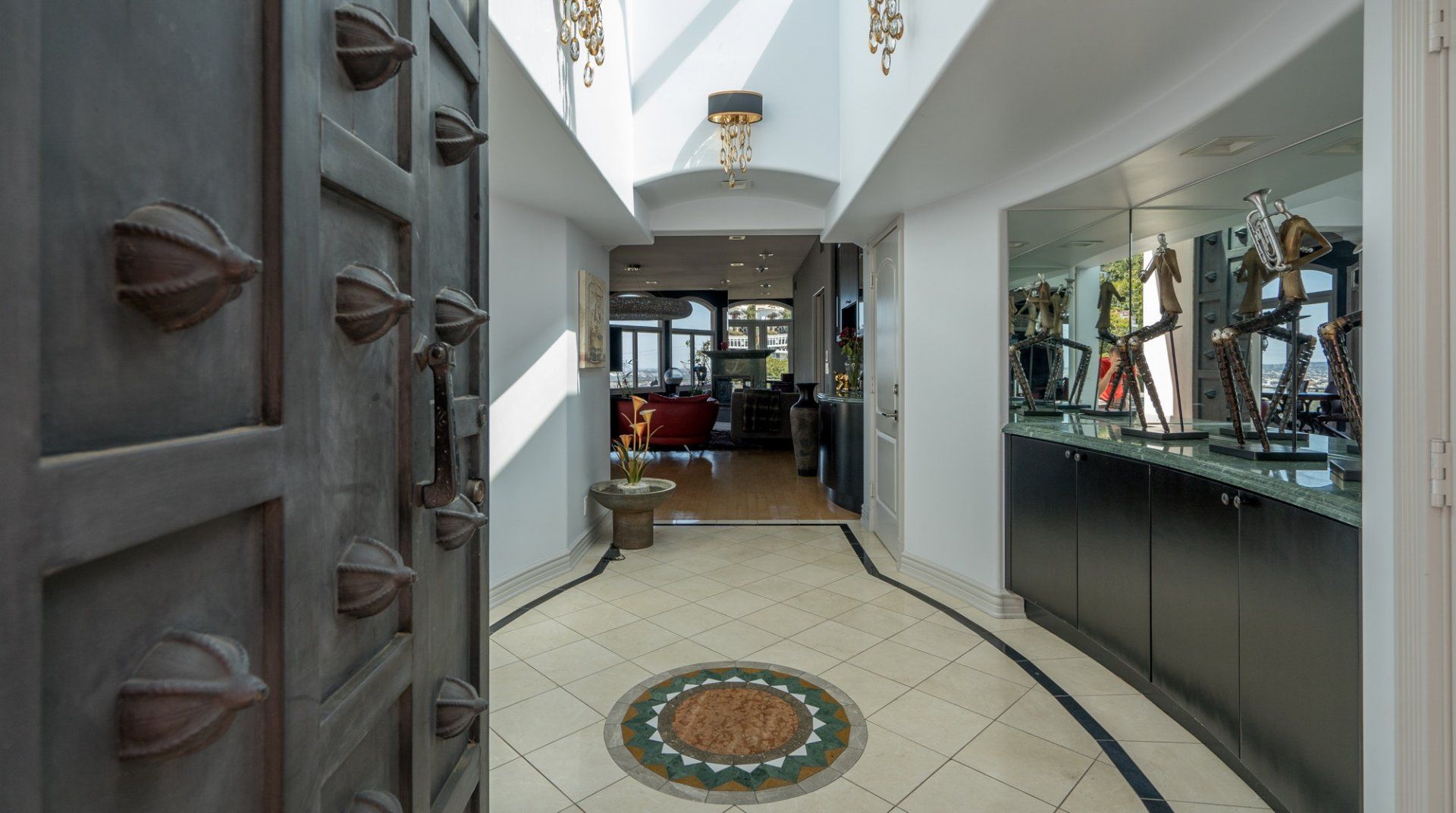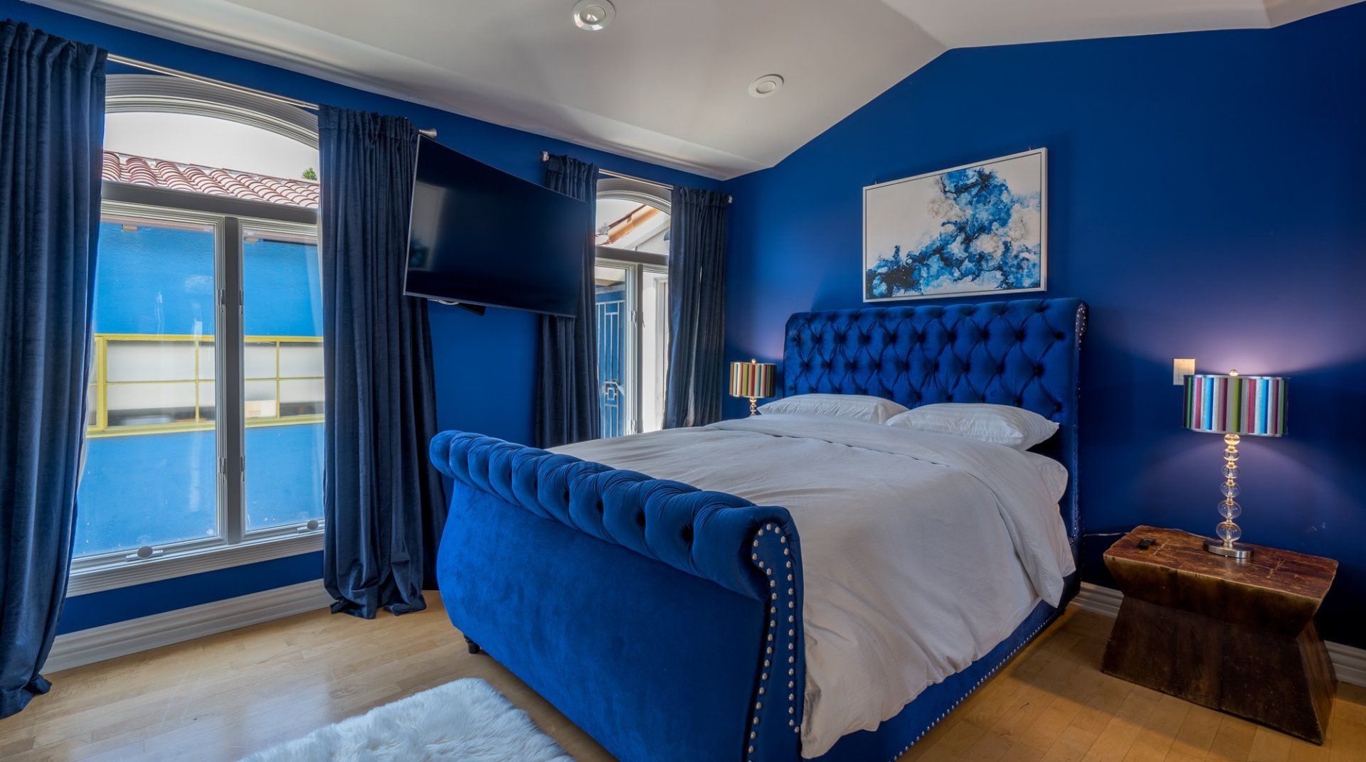 Like something out of a Bond movie, this home on a hillside is the height of luxury, with a home cinema setup, a hot tub and pool, floor-to-ceiling windows, even a rowing machine and a popcorn machine. A dream bachelor pad, there's a glamorous style to everything from the red sofas and glitzy light fitting in the living room to the black-painted bathroom and the outdoor furniture. Speaking of the terrace, this home has plenty of scope to enjoy the California sunshine, with doors opening to a vast outdoor space with unbeatable views all the way to Downtown LA, Century City and – on a clear day – the ocean. There's a fabulous pool and at night you can swim alongside the glittering city lights while someone lights up the fire pit and grills an evening meal on the impressive barbecue. Location-wise, it doesn't get much better. In a great neighbourhood, you're just a ten-minute drive from Hollywood.