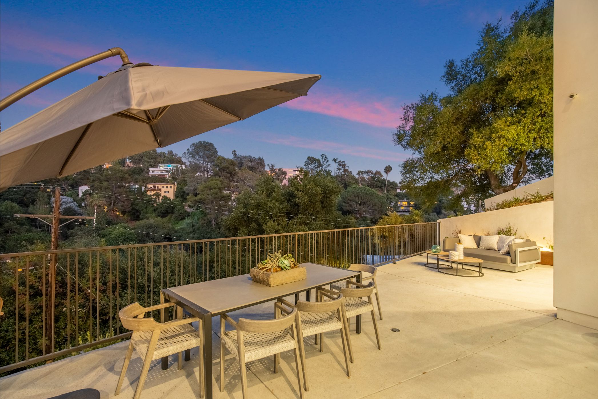This home in Hollywood Hills was inspired by SoCal architect Irving Gill. Dazzlingly modern, the design is all about clean lines, light-filled rooms, and soaring ceilings. Outside, the multi-level terraces offer views of the canyon. There's a plunge pool best for quick dips, an alfresco dining table, and conversation areas where you can watch the sunset while sipping on cocktails. It feels peaceful and serene, but when you're ready to kick things up a notch, West Hollywood, Beverly Hills, and Los Feliz are just a short drive away.