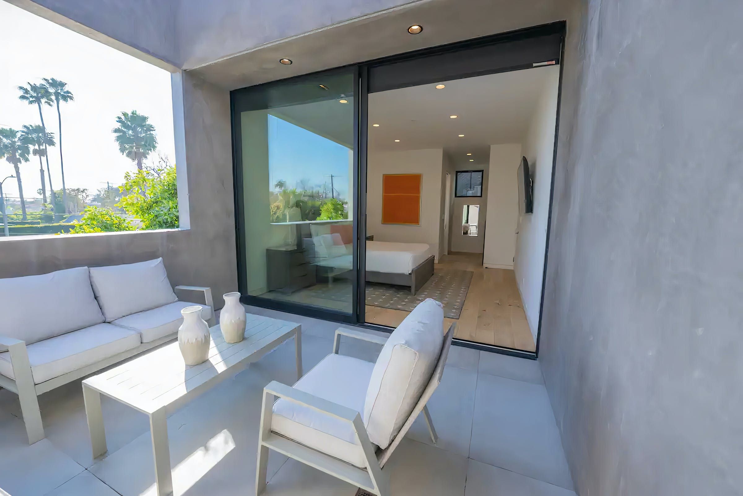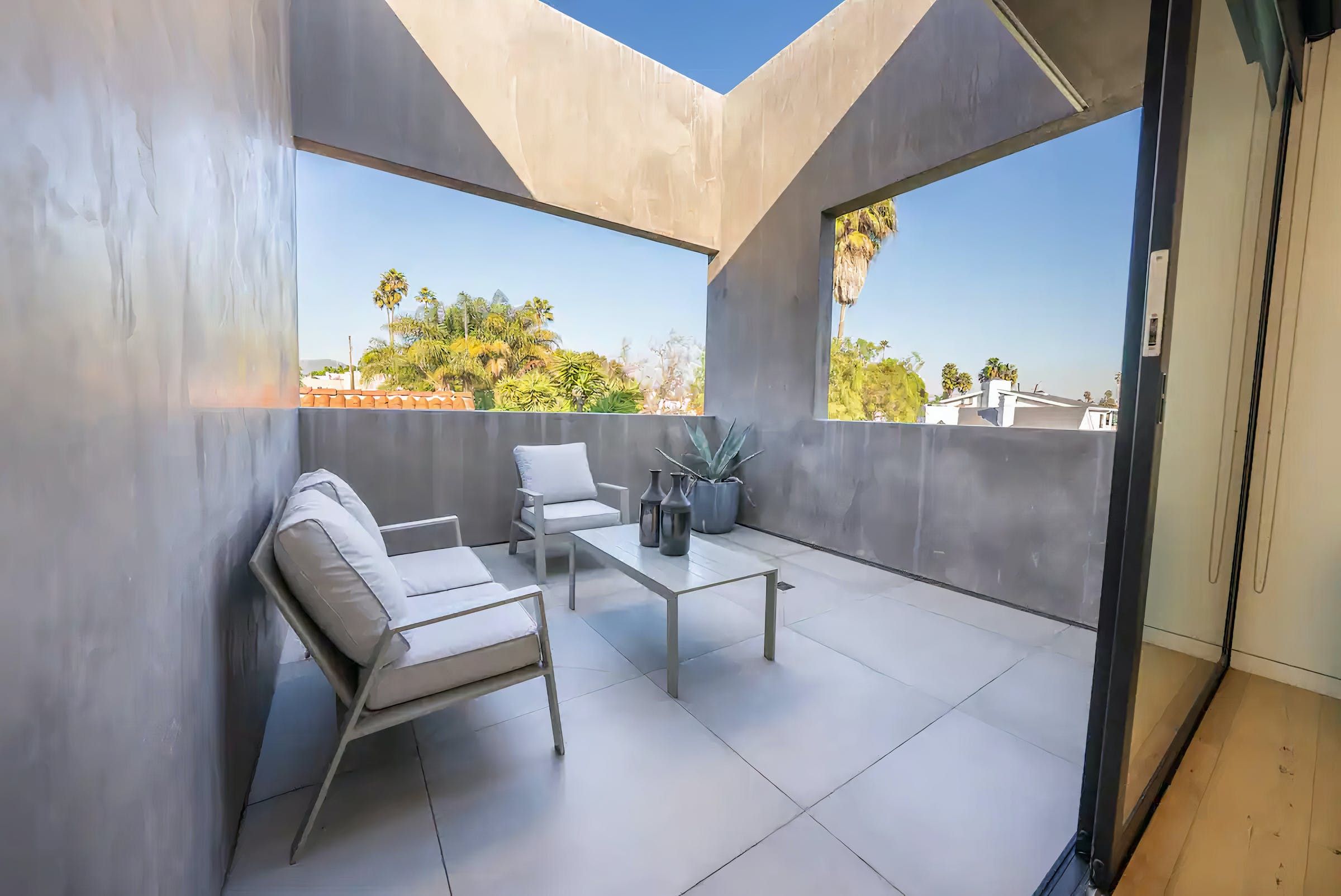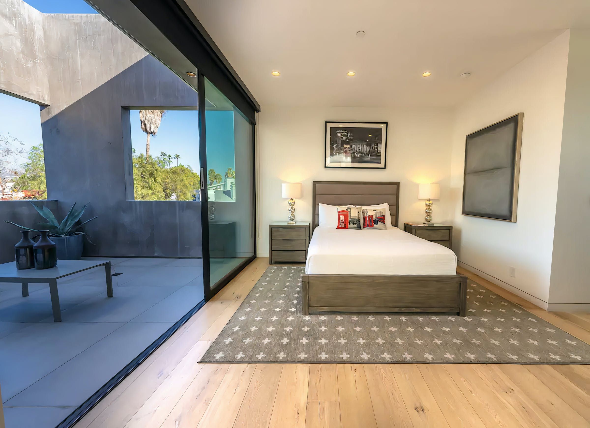 This West Hollywood home has stunning views over Los Angeles, which can be admired from any of the four upstairs bedroom terraces, each of which frames the horizon with its own unique vista. Watch the sunrise with your morning cup of coffee, then when evening arrives, watch the sunset, silhouetting the palm trees.