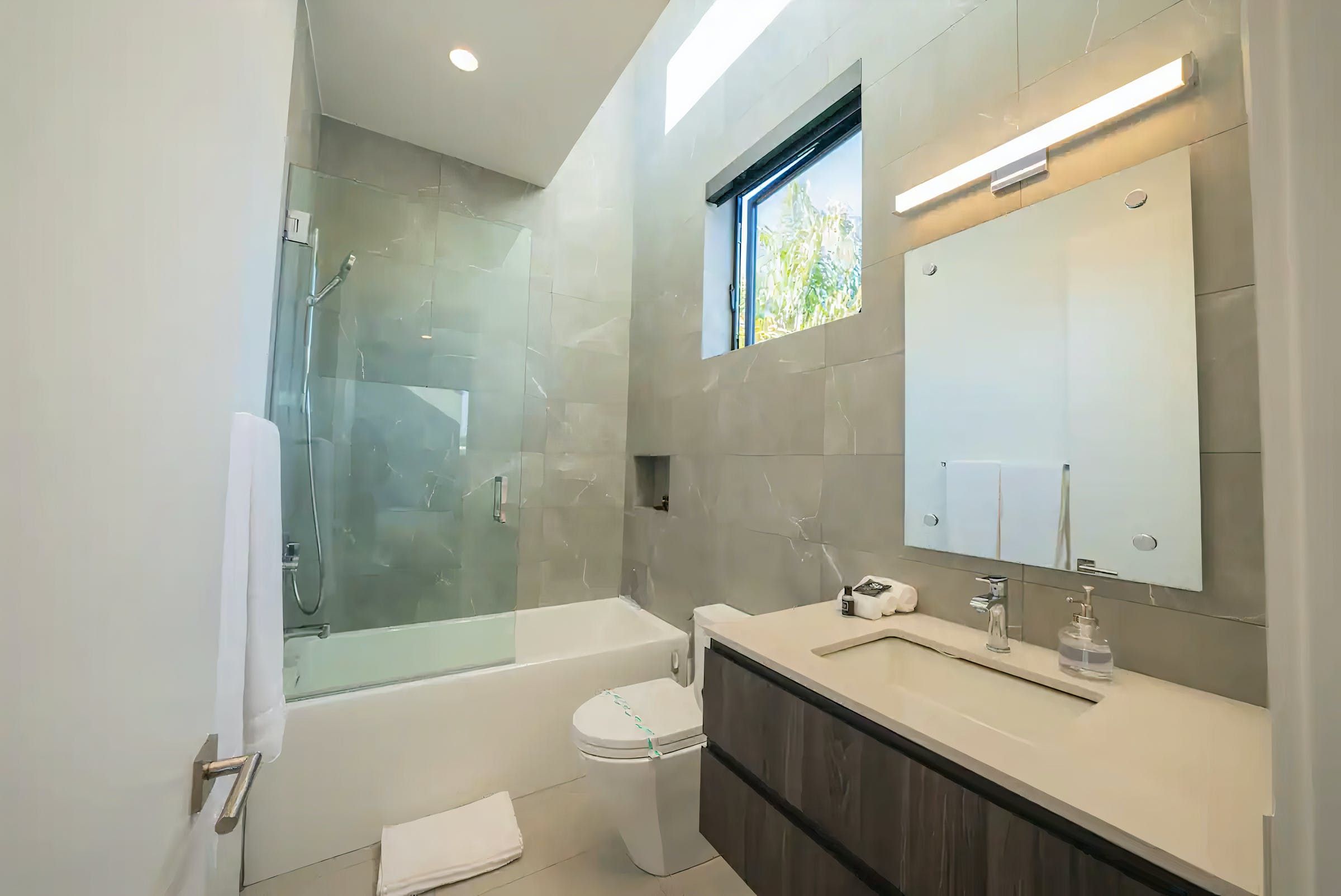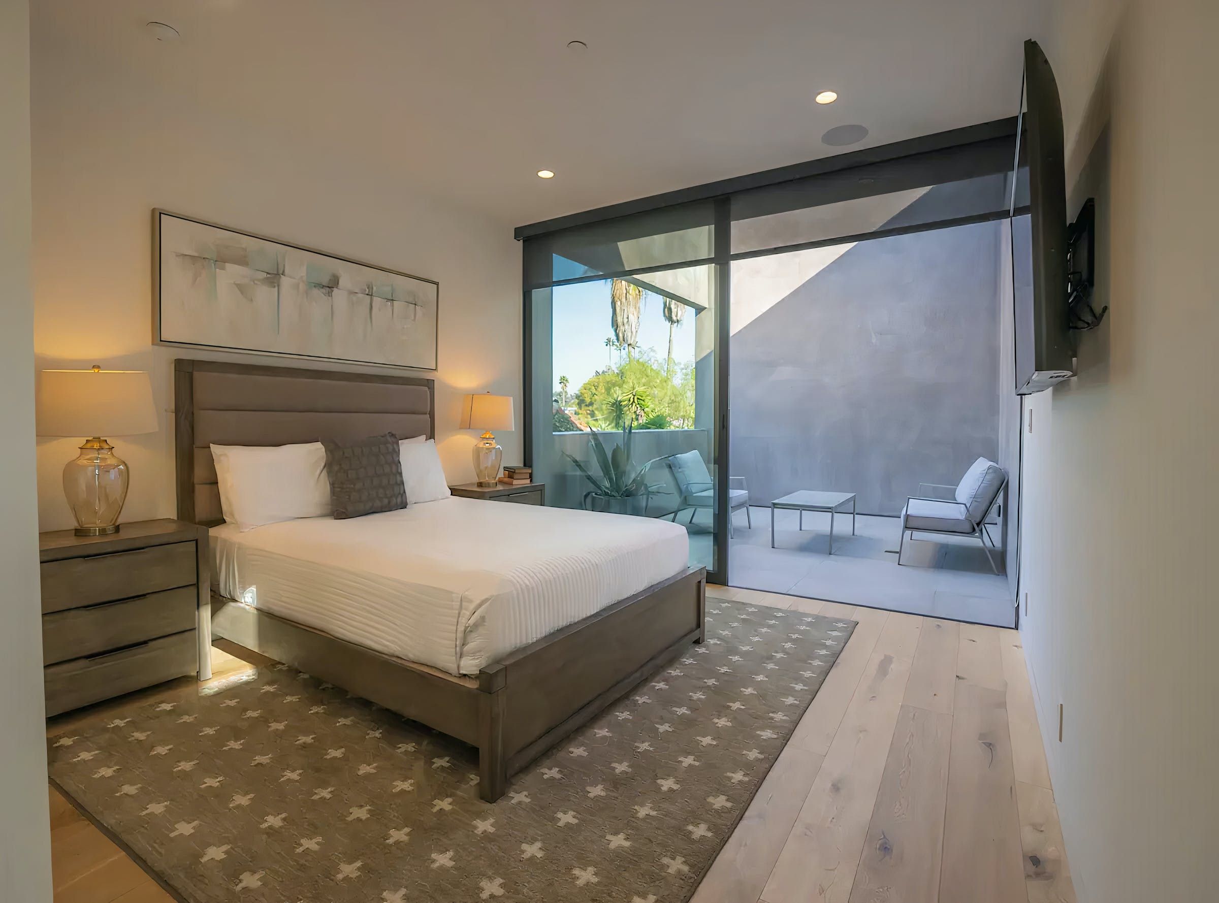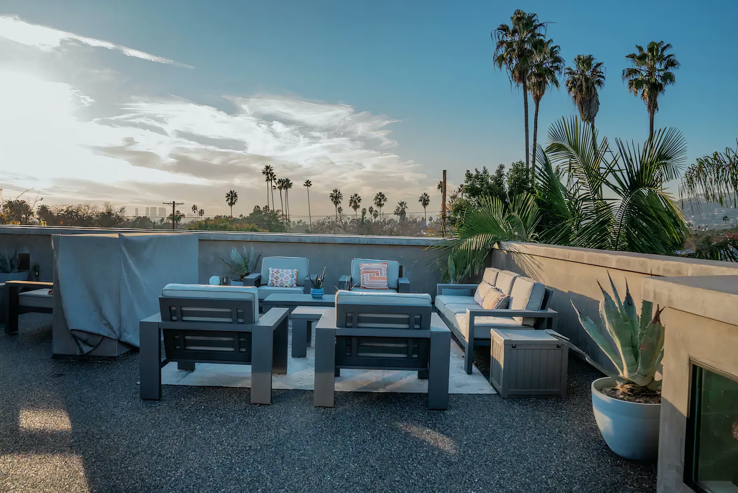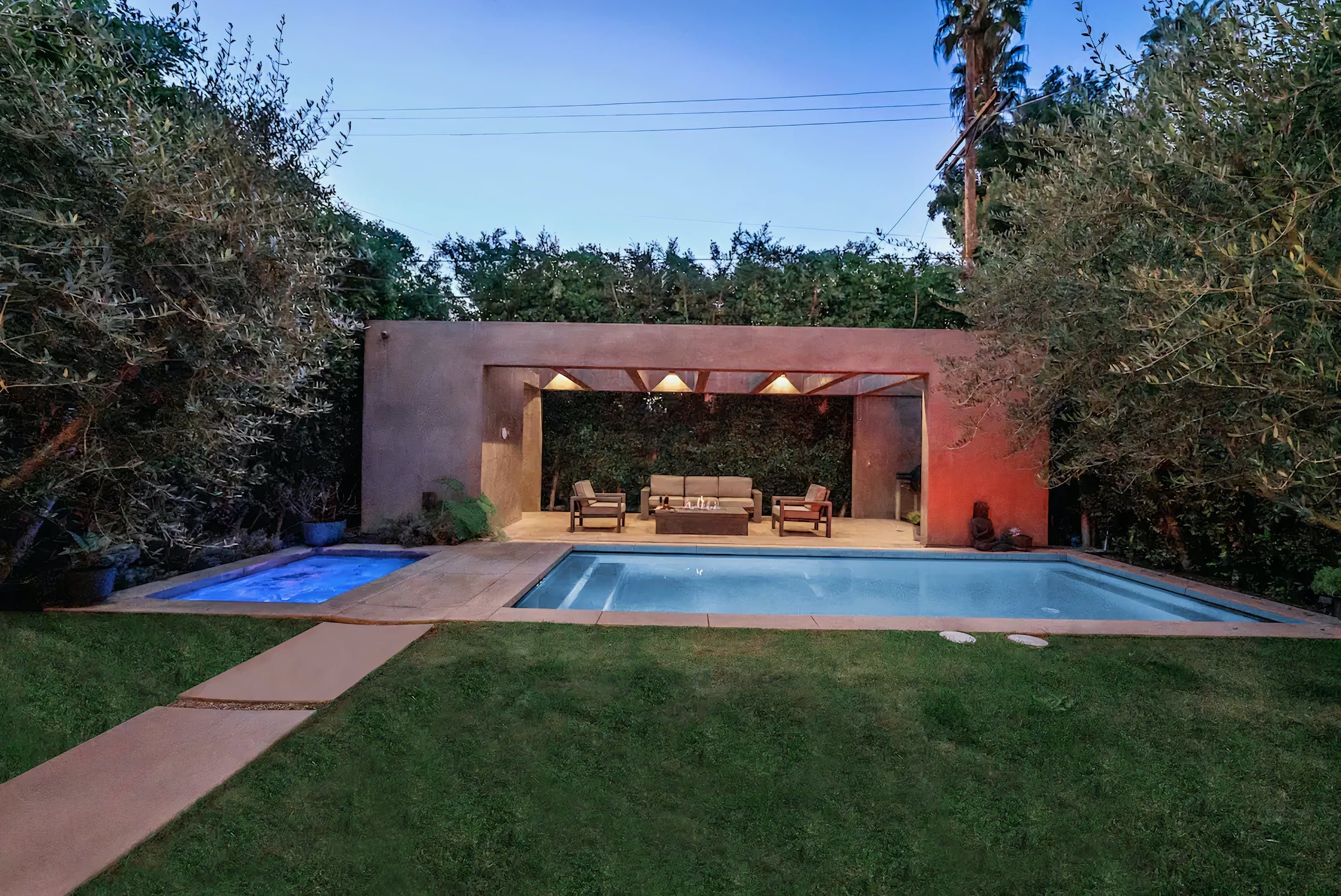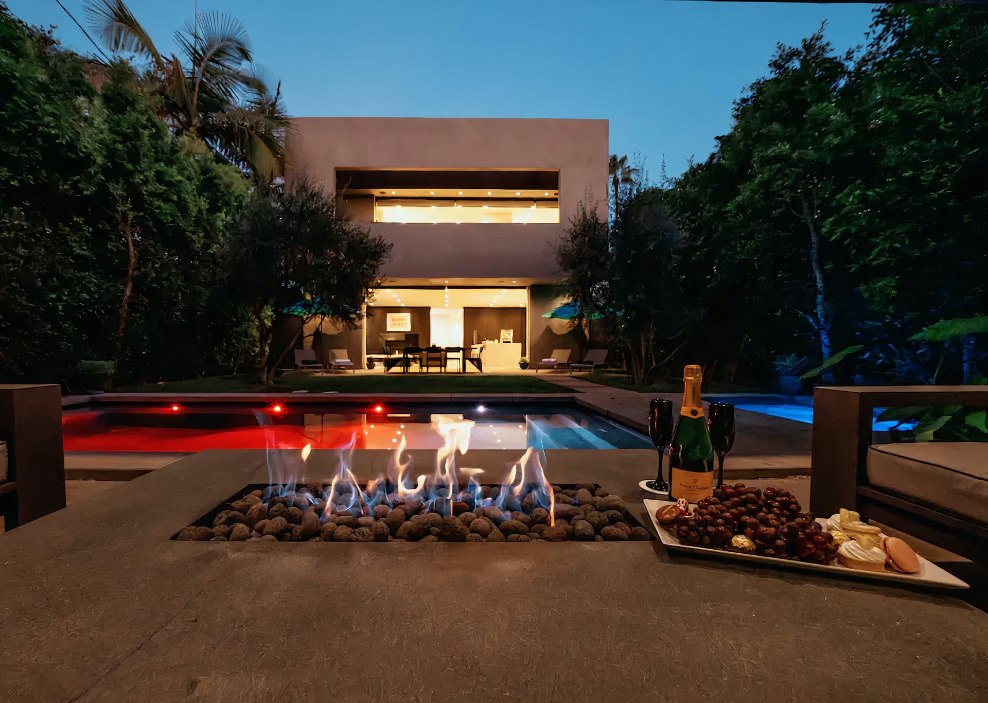 Spend relaxing days at the home swimming leisurely in the pool or unwinding in the soothing bubbles of the hot tub before sipping cocktails and warming up in front of the firepit. Have delicious cook-out lunches on the barbecue or make extravagant, chef-standard dinners in the fully-equipped kitchen. Or, if meals out are on the menu, take a short three-minute walk to Melrose Avenue and take your pick of the eateries on offer.