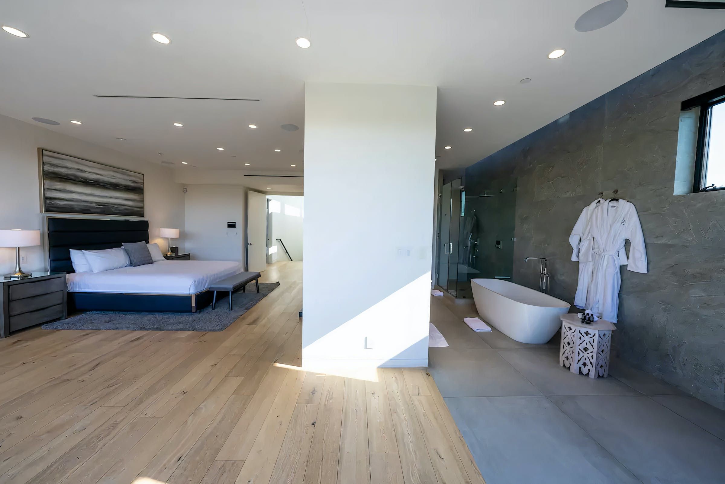 Take a stroll along the Walk of Fame on Hollywood Boulevard – a thirty-four-minute walk away from this home – or treat yourself to a shopping day on the famous Rodeo Drive which can be reached in eleven minutes by car.
