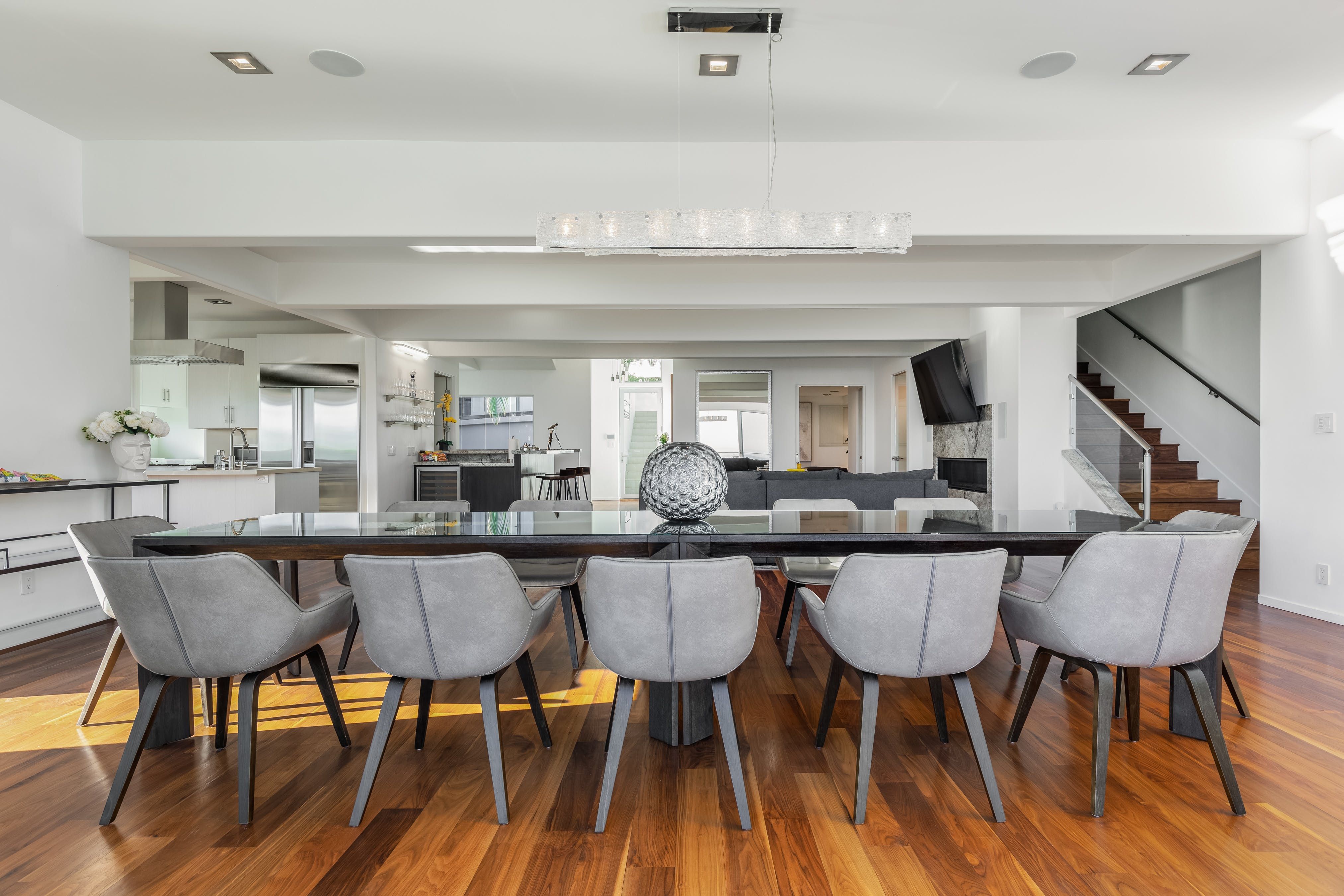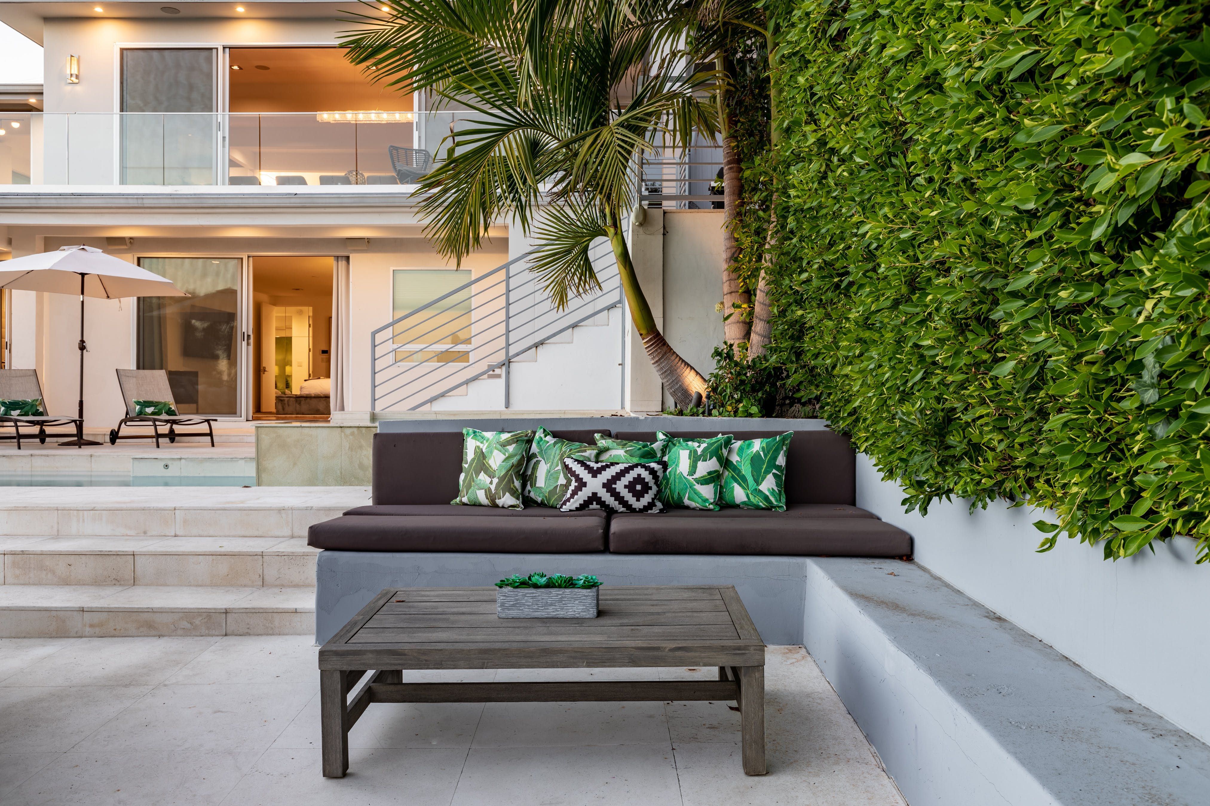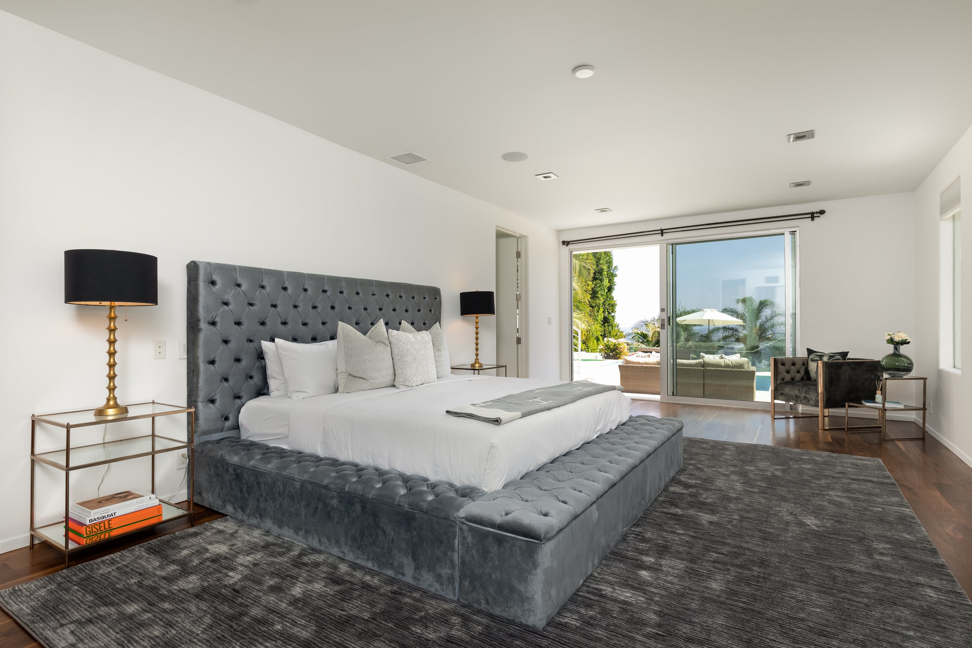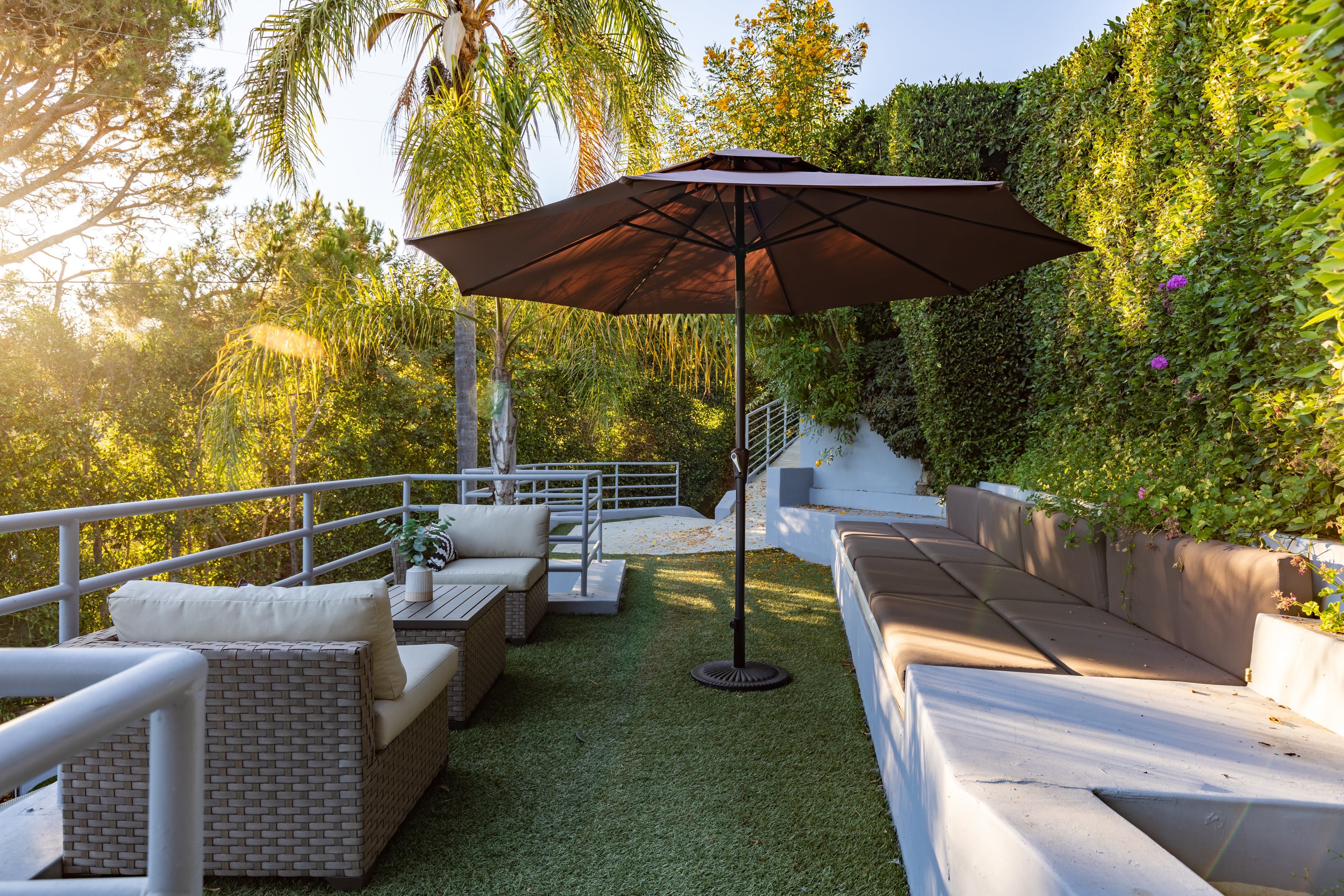 You’ll find this LA home in the Bird Streets, just above Sunset Strip. A ten-minute walk (or two-minute drive) sees you on Sunset Boulevard where boutiques and restaurants sit between theatres and live music venues. Though you may not need to leave the comfort of your home as there’s plenty to entertain you on-site. The garden is a series of stepped terraces, hanging off the hillside and offering a beautiful cityscape view. An infinity pool is shaded by palms and surrounded by loungers and you’ll find plenty of secluded seating spots with parasols and outdoor fireplaces. The real surprise is a second swimming pool, crowned with a Jacuzzi, on the upper terrace with a fab sunset view. Inside the feel is old Hollywood entertainment with a long fireplace in the lounge and a wet bar for evening cocktails. The long dining table is big enough to fit the whole group and sits in front of sliding glass doors with a panoramic city view. If you’re looking for a lavish spot to entertain a big group of friends or family, this is the home for you.