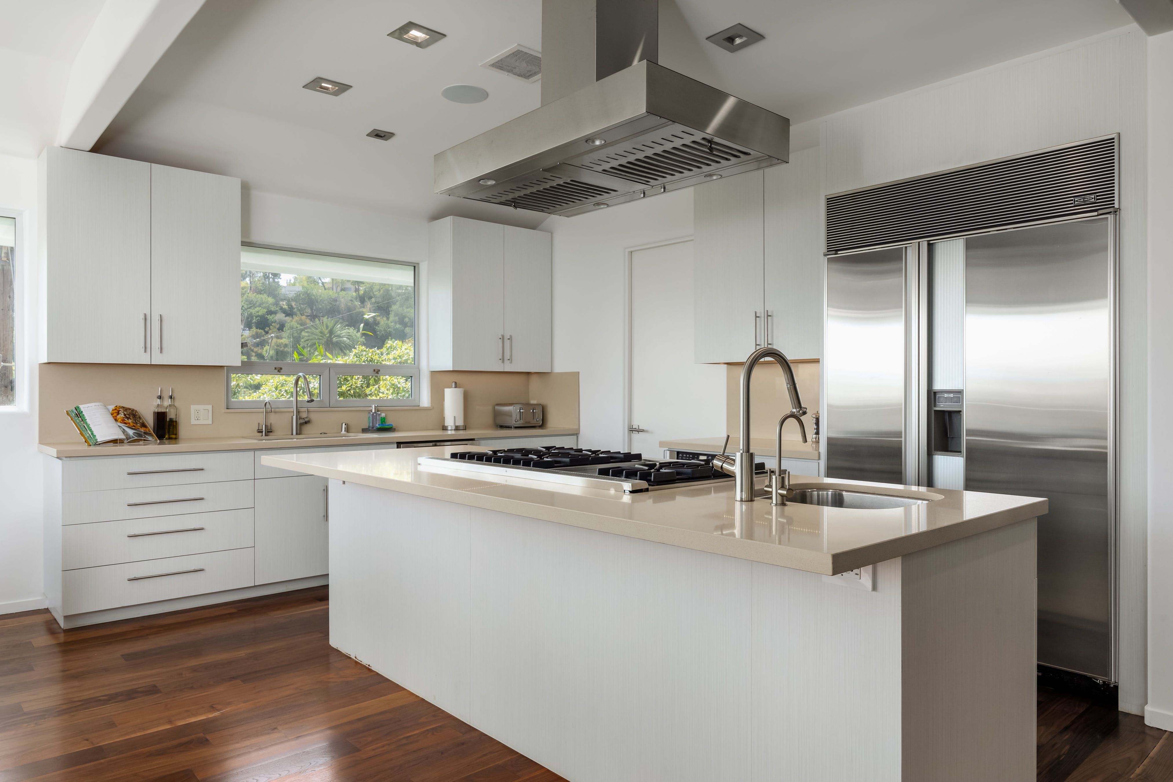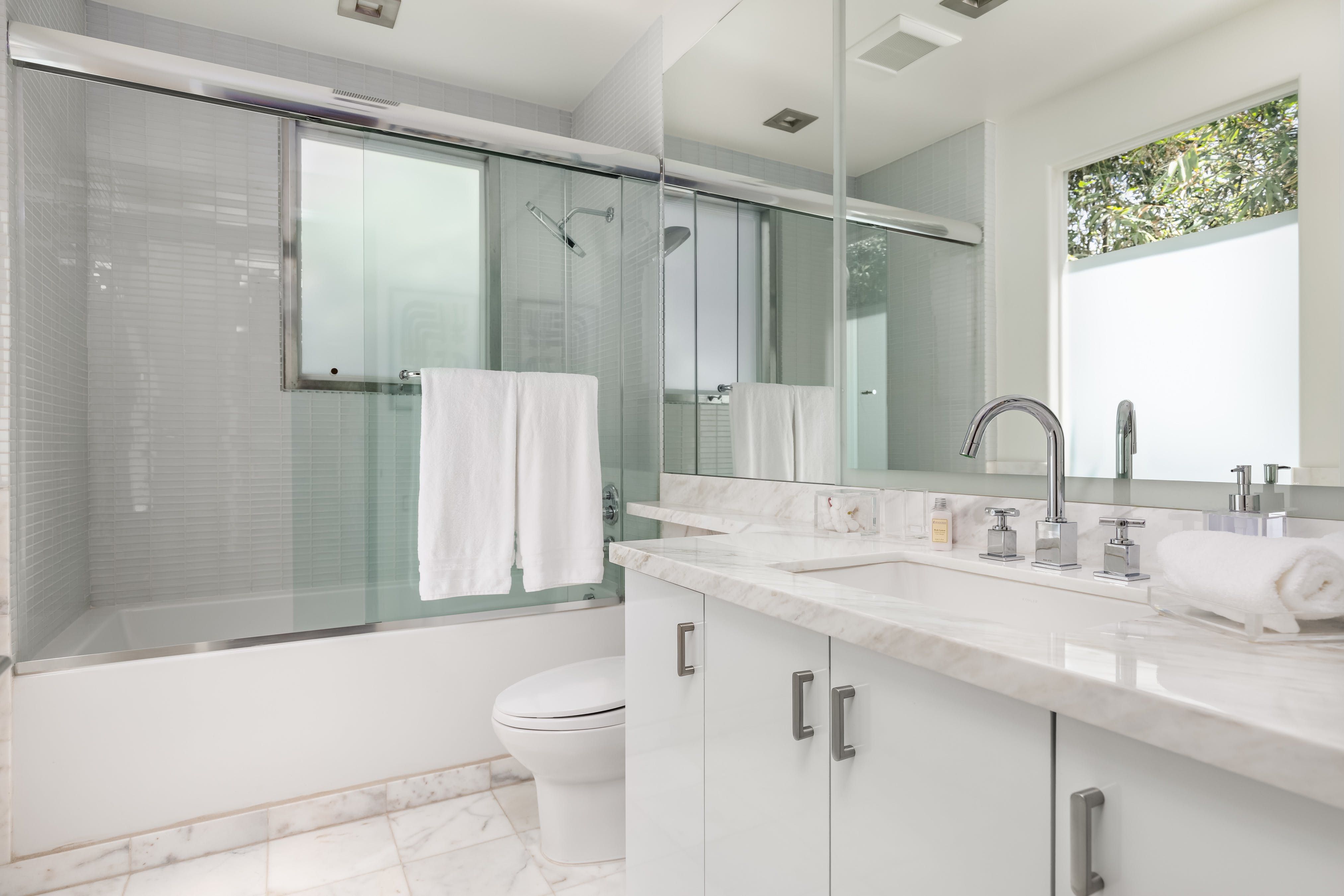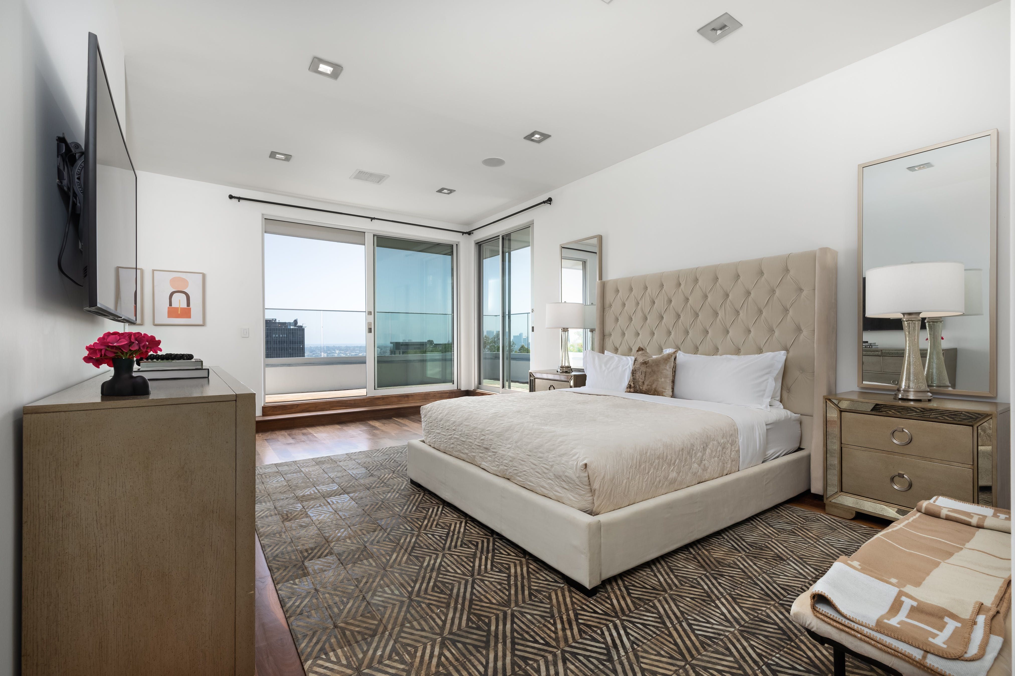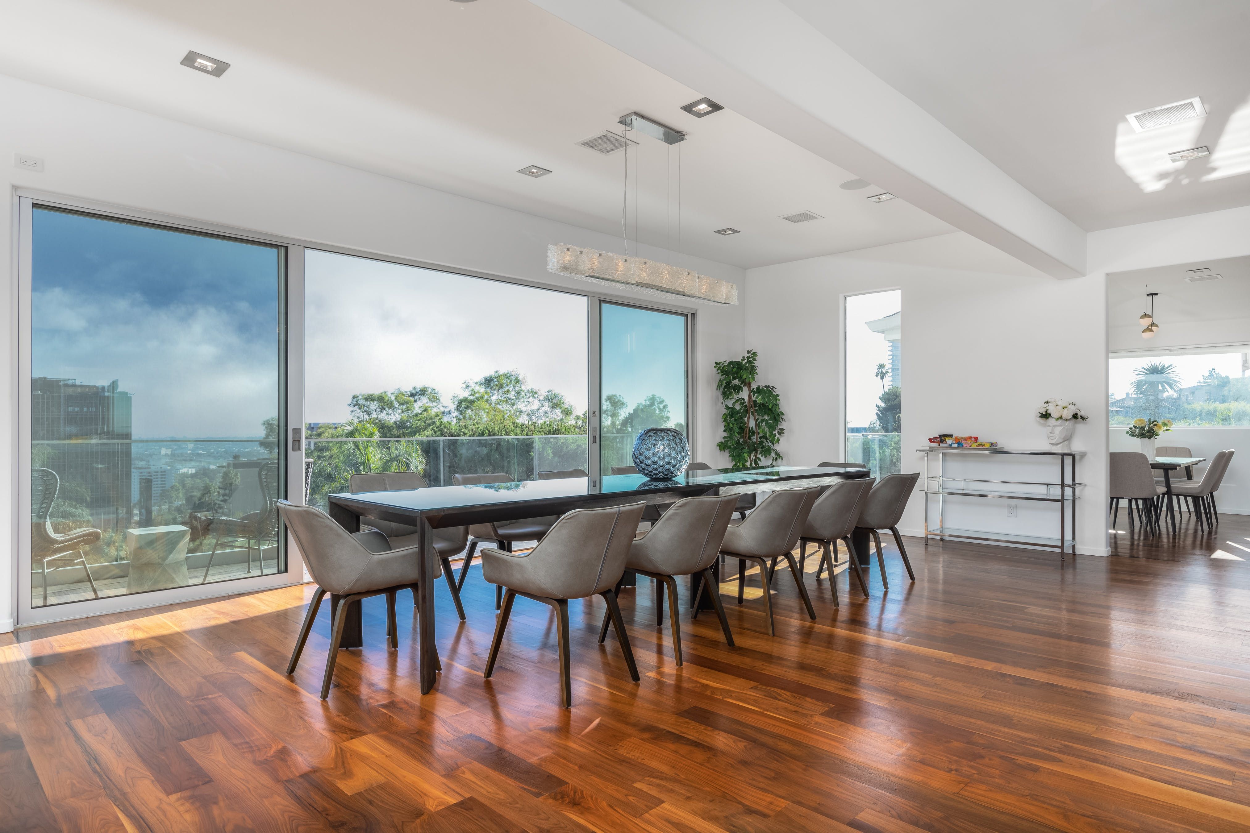 You’ll find this LA home in the Bird Streets, just above Sunset Strip. A ten-minute walk (or two-minute drive) sees you on Sunset Boulevard where boutiques and restaurants sit between theatres and live music venues. Though you may not need to leave the comfort of your home as there’s plenty to entertain you on-site. The garden is a series of stepped terraces, hanging off the hillside and offering a beautiful cityscape view. An infinity pool is shaded by palms and surrounded by loungers and you’ll find plenty of secluded seating spots with parasols and outdoor fireplaces. The real surprise is a second swimming pool, crowned with a Jacuzzi, on the upper terrace with a fab sunset view. Inside the feel is old Hollywood entertainment with a long fireplace in the lounge and a wet bar for evening cocktails. The long dining table is big enough to fit the whole group and sits in front of sliding glass doors with a panoramic city view. If you’re looking for a lavish spot to entertain a big group of friends or family, this is the home for you.