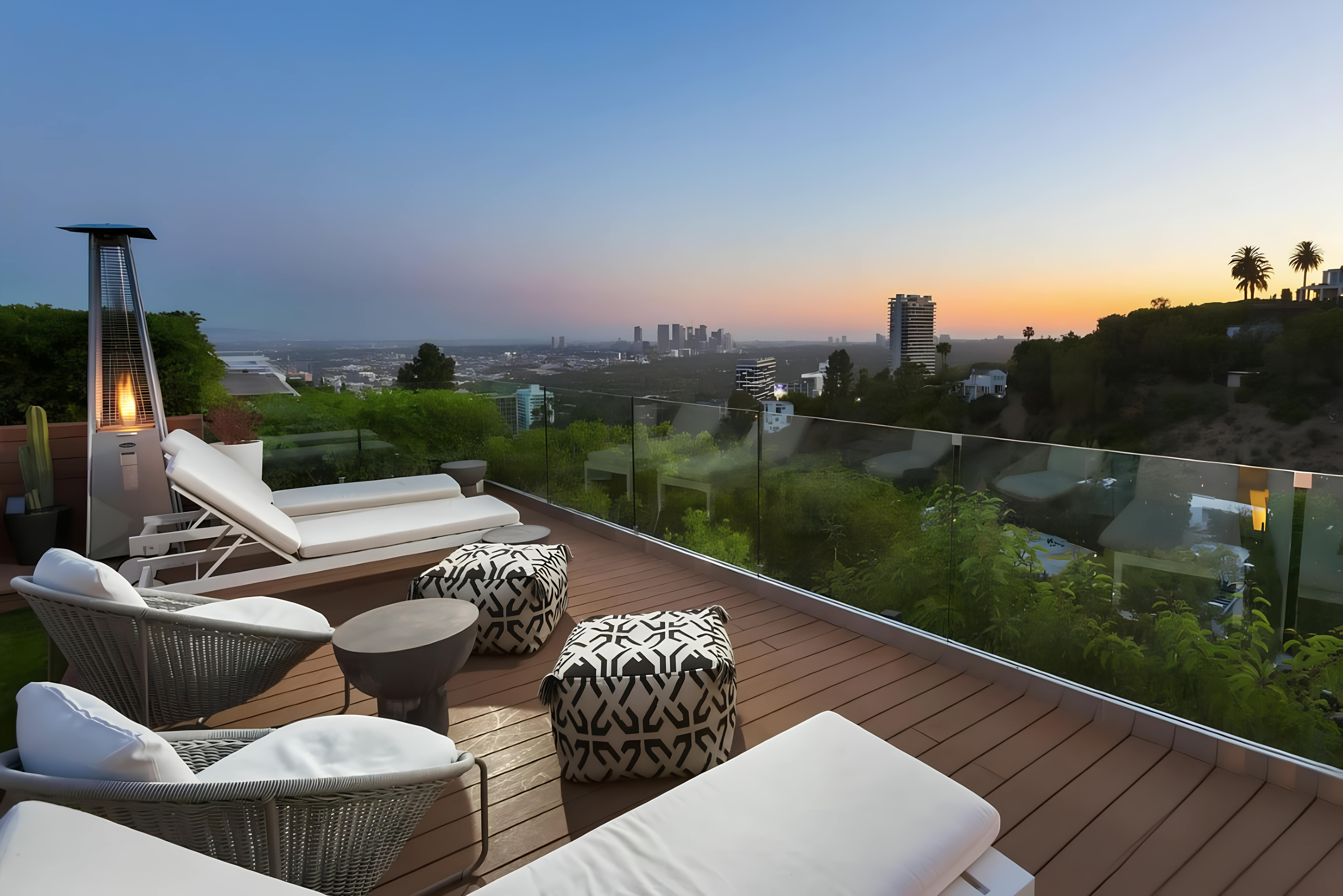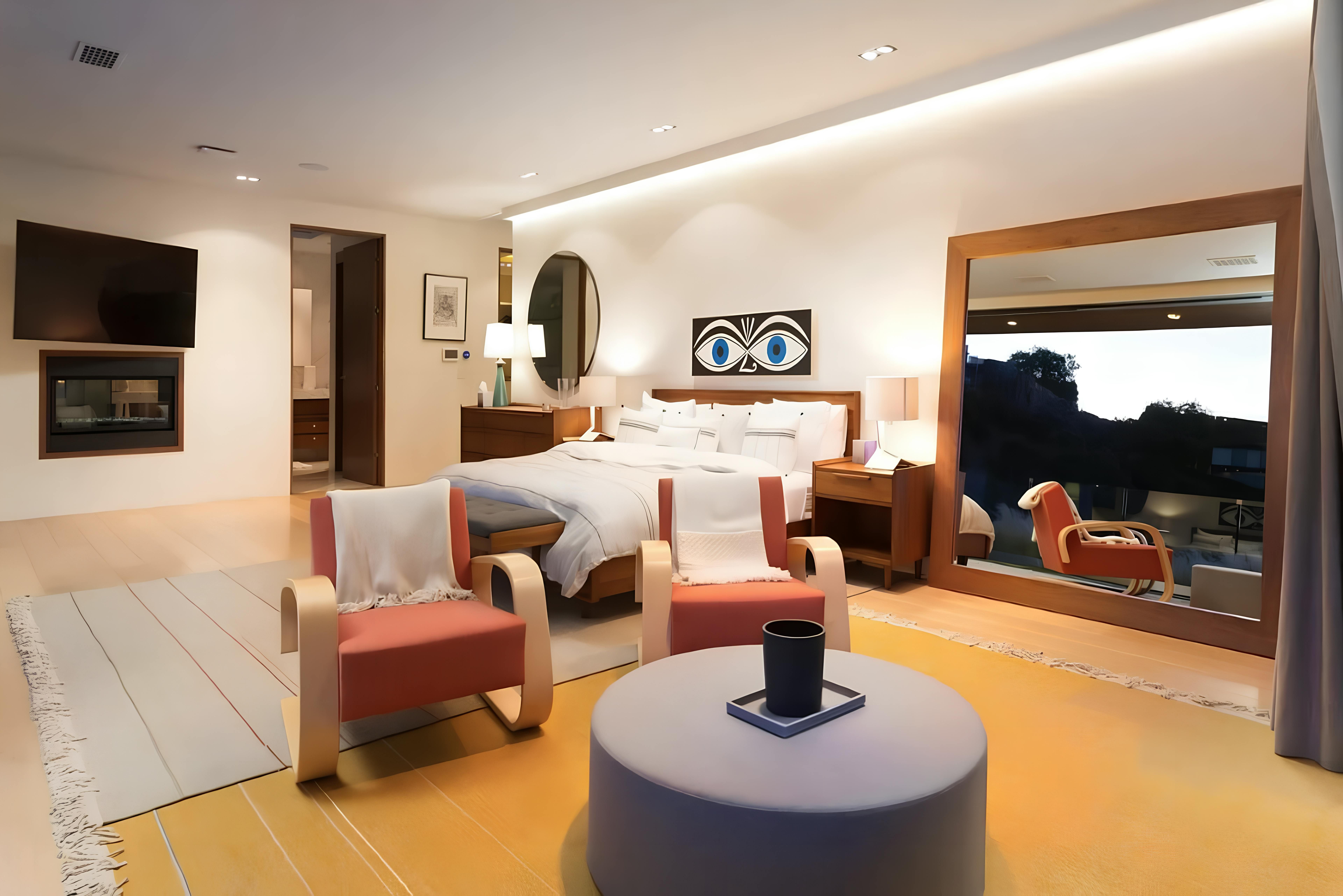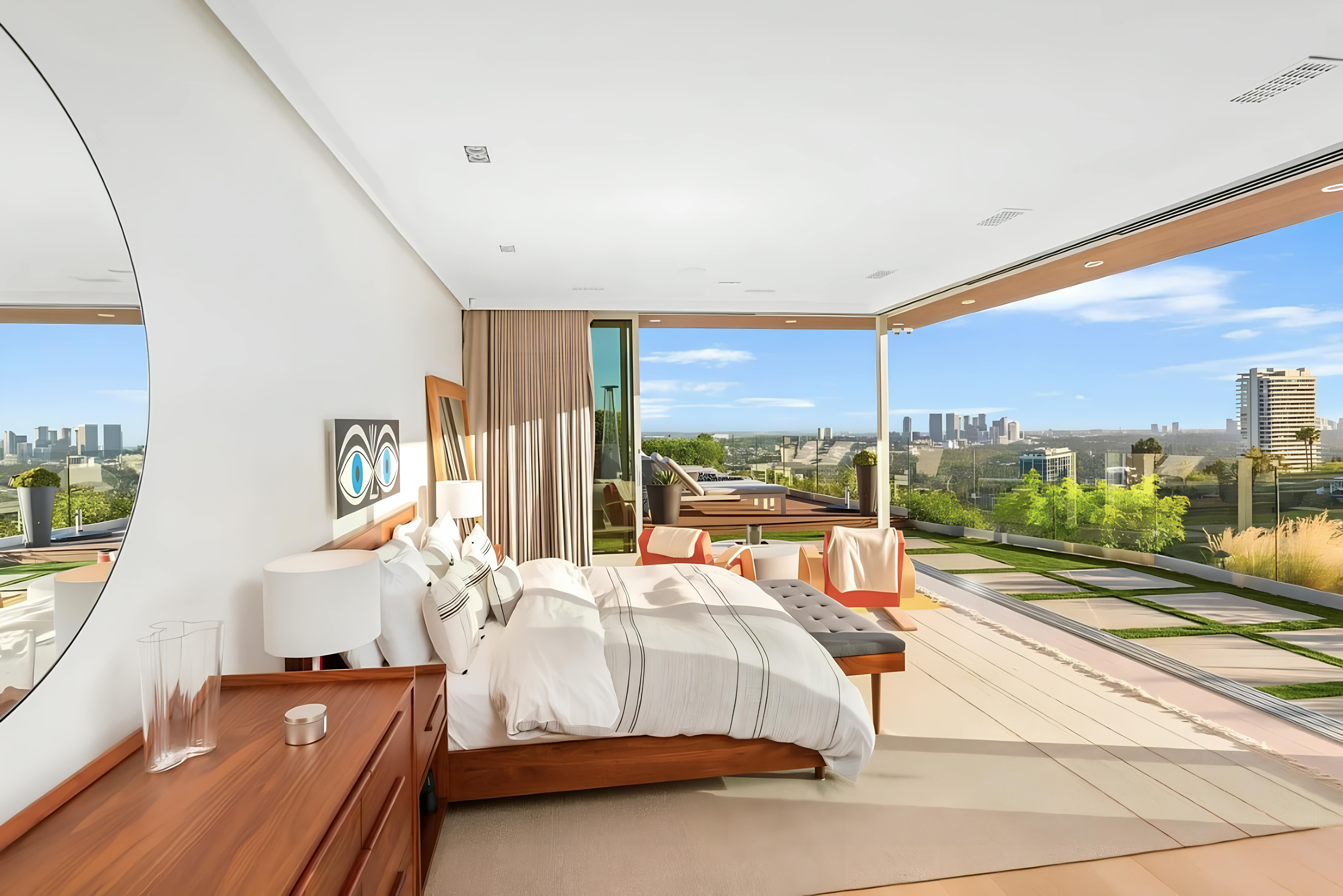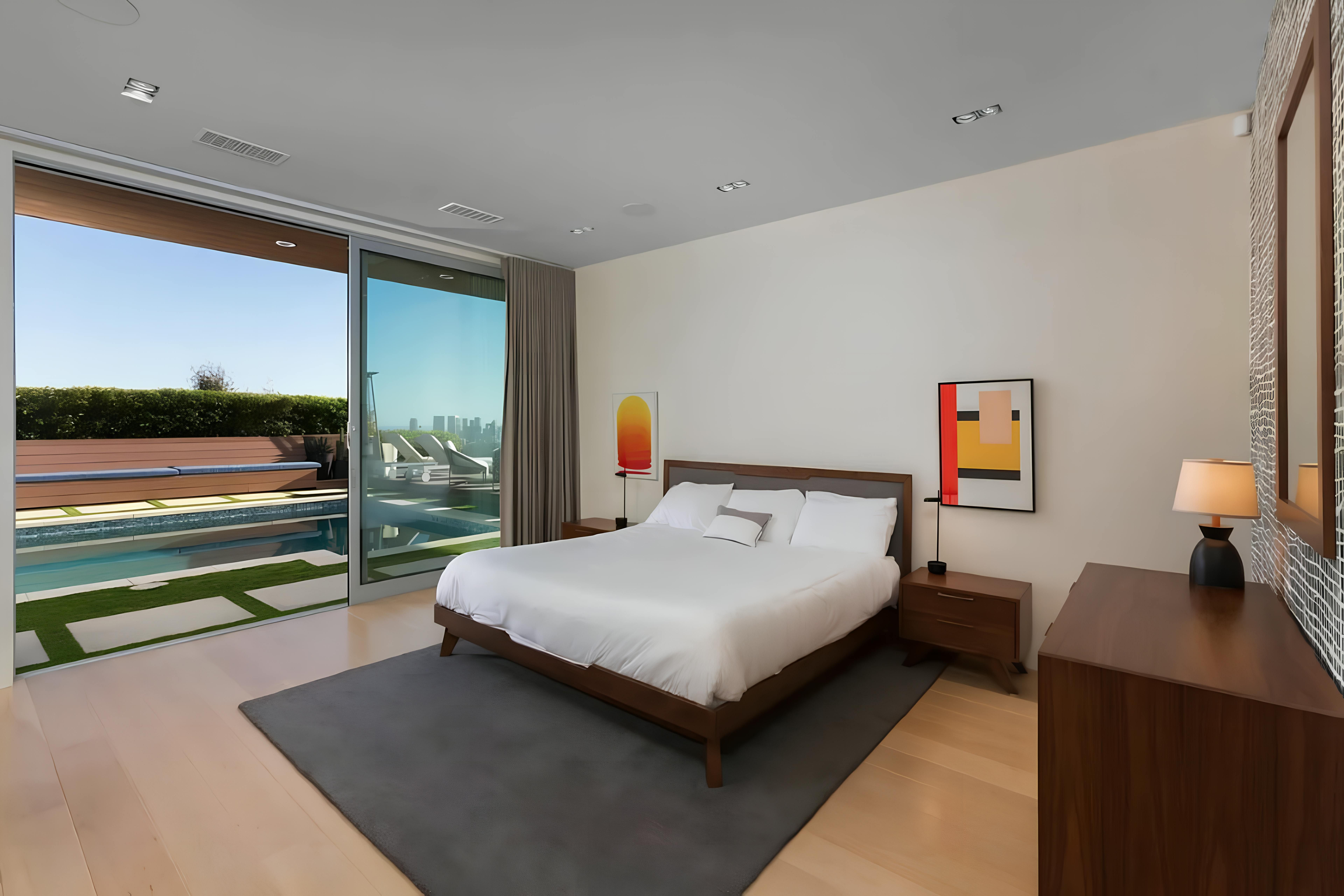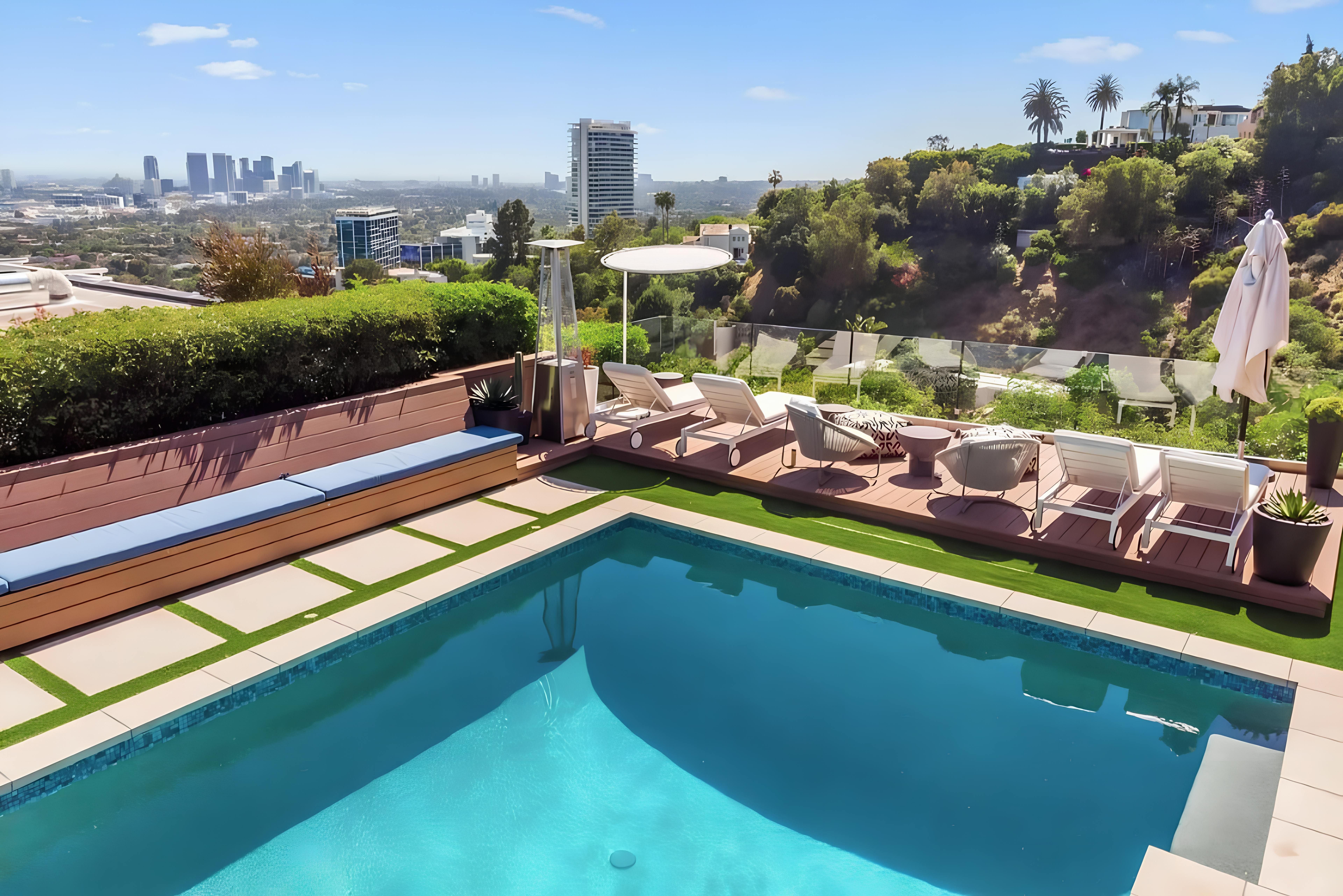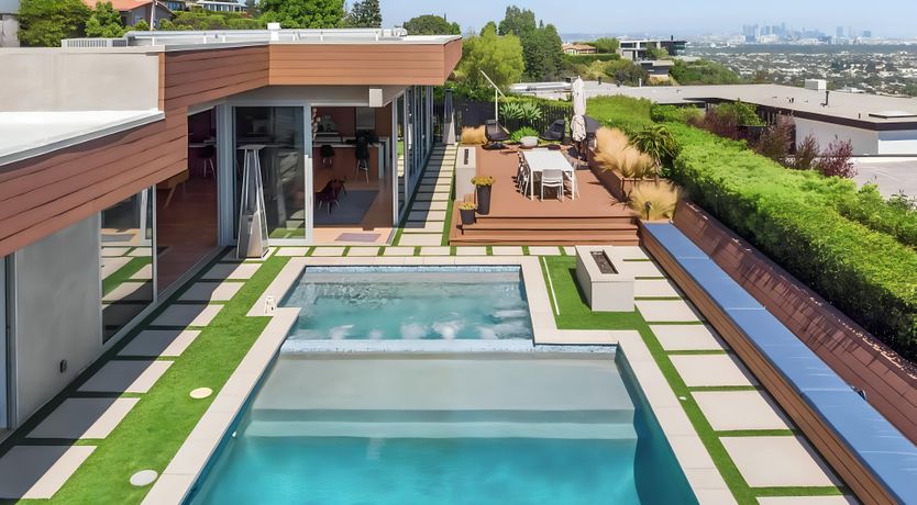 This home is a great pick for an LA stay – it's tucked away on a quiet cul-de-sac but still close to the action. You can walk to Sunset Boulevard and the Sunset Strip, while Beverly Hills is only about ten minutes away by car. Set on one level, the open floor plan features a gourmet kitchen for entertaining, and floor-to-ceiling glass doors that open onto the private pool and landscaped grounds, with city views. Plus, you can take in ocean views from the main bedroom, which comes complete with a fireplace and spa-inspired bath for the ultimate cosy night in.