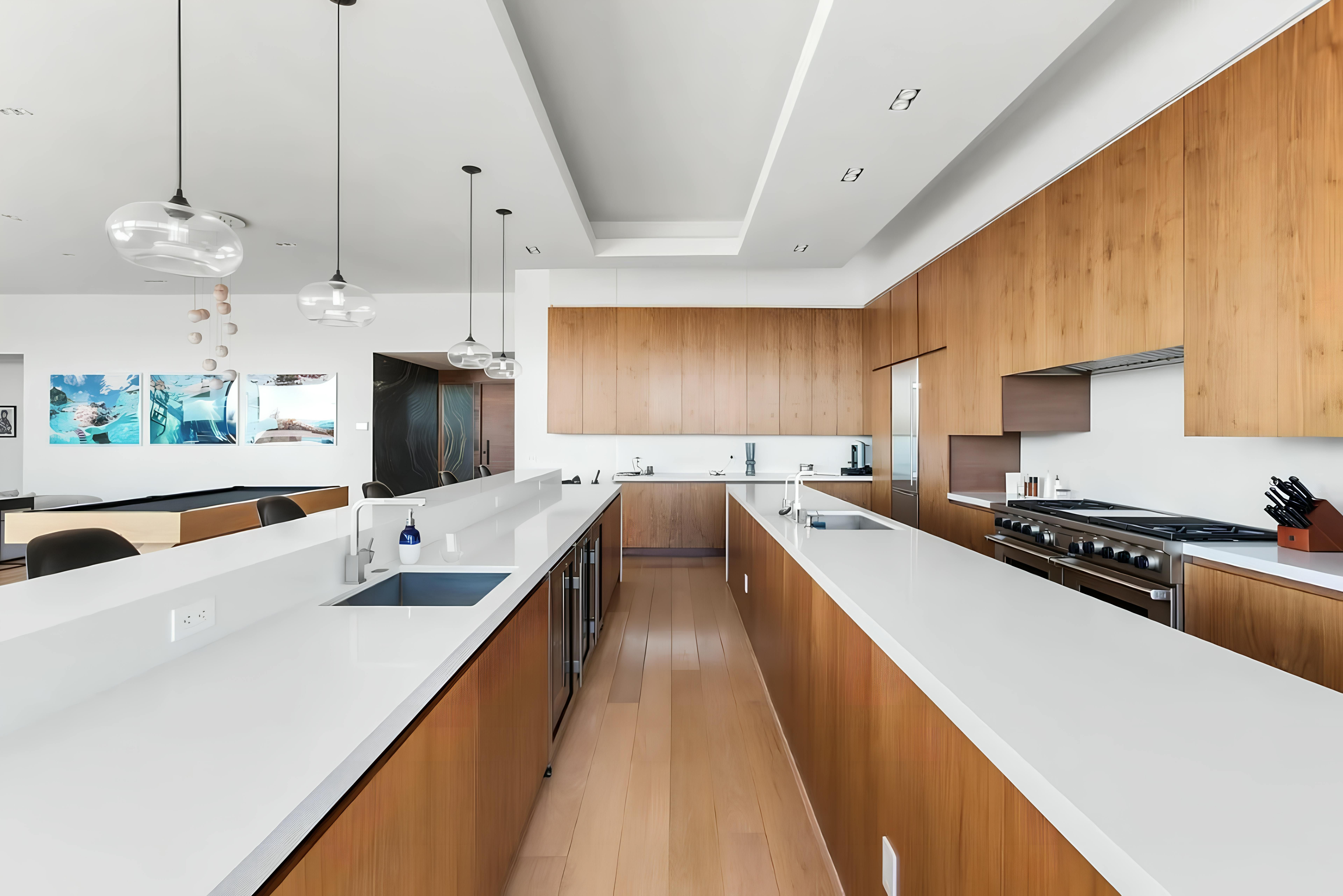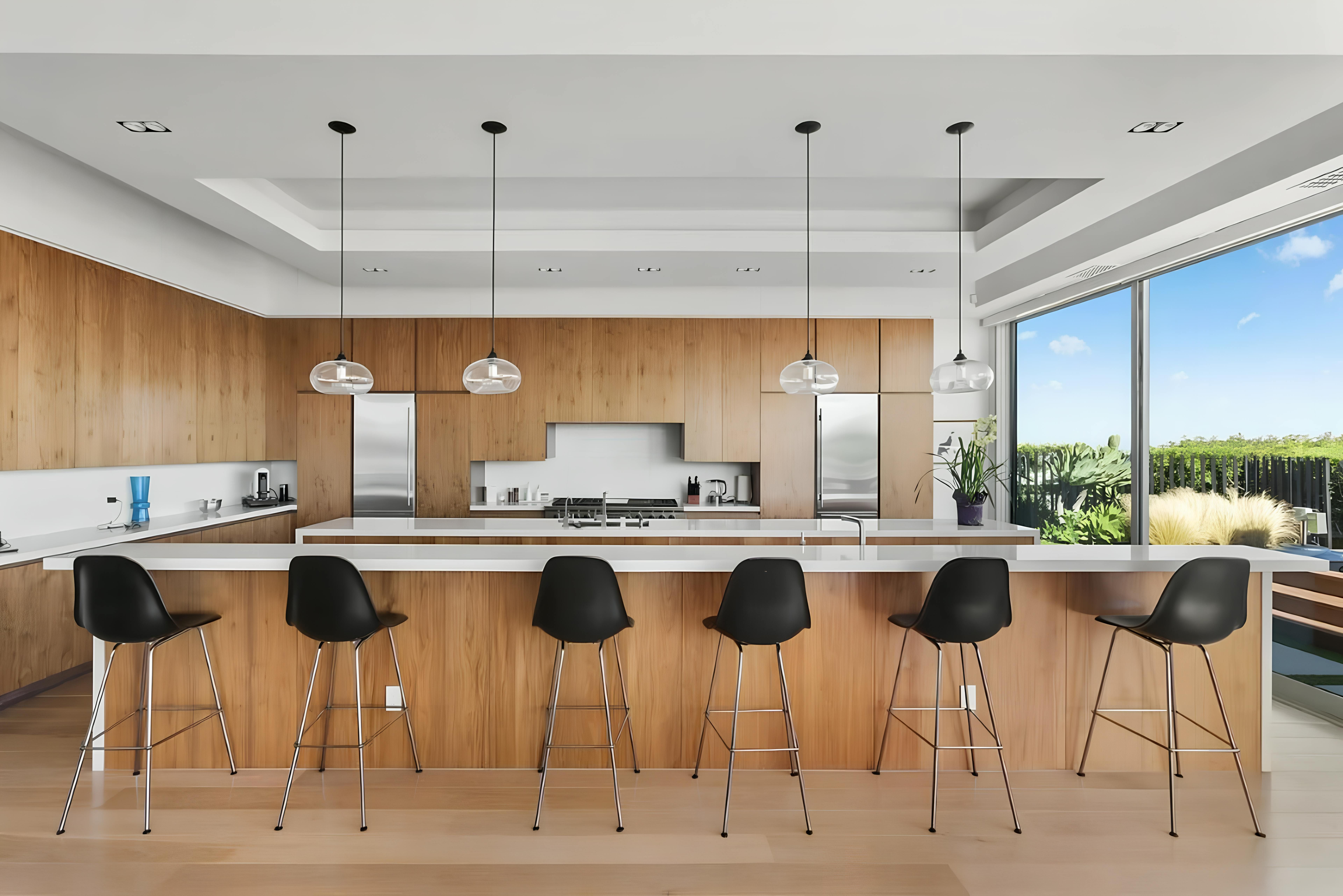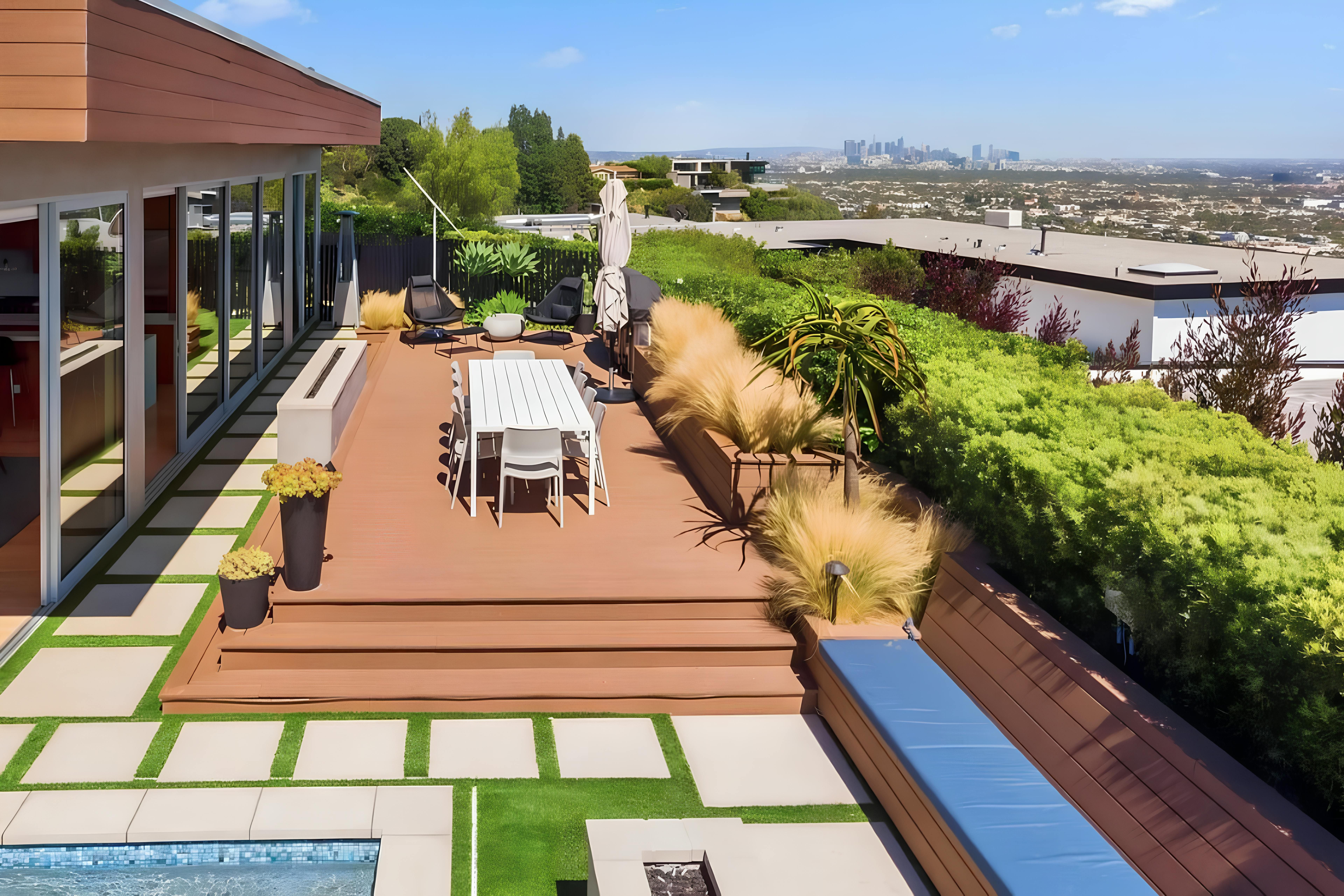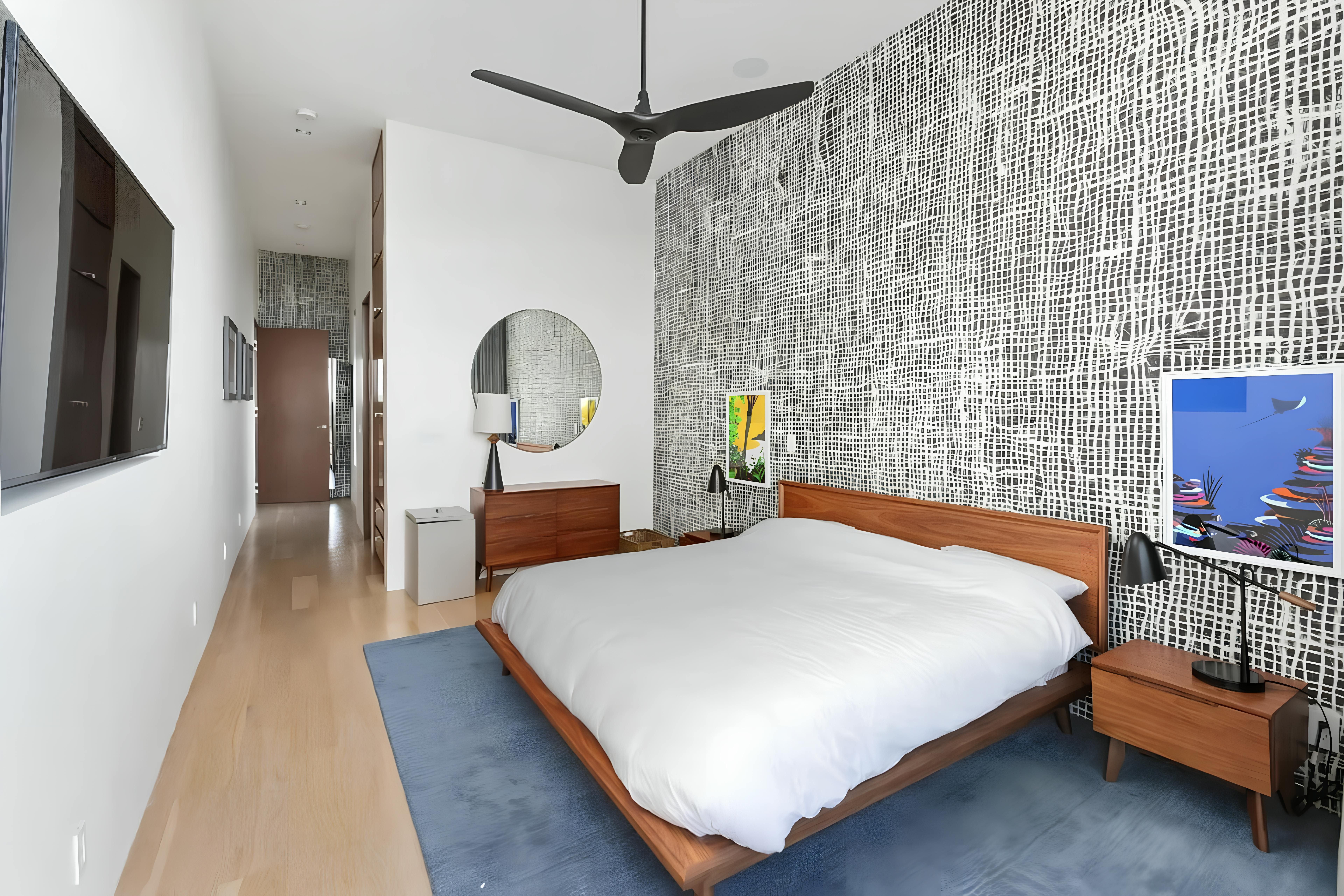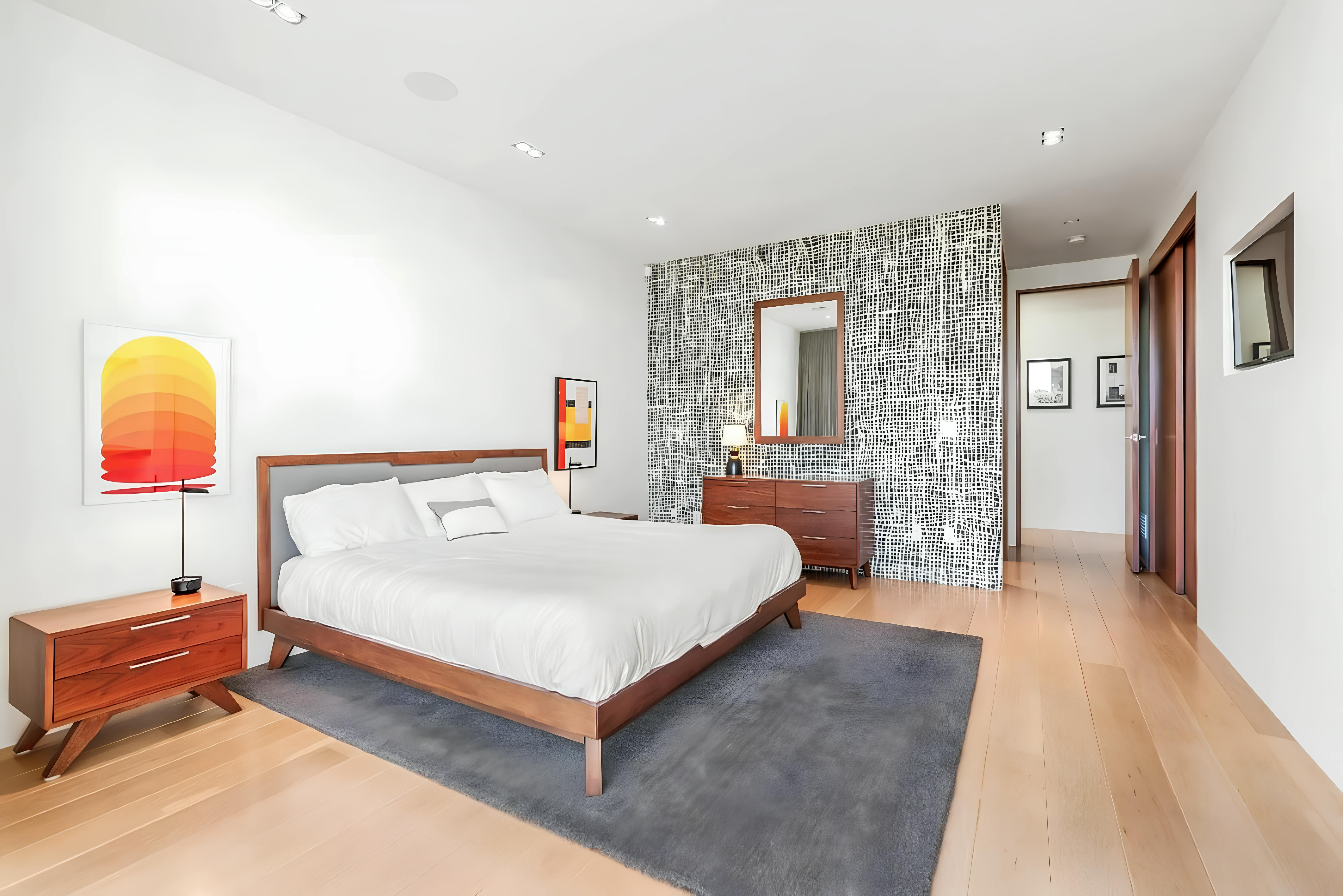 This home is a great pick for an LA stay – it's tucked away on a quiet cul-de-sac but still close to the action. You can walk to Sunset Boulevard and the Sunset Strip, while Beverly Hills is only about ten minutes away by car. Set on one level, the open floor plan features a gourmet kitchen for entertaining, and floor-to-ceiling glass doors that open onto the private pool and landscaped grounds, with city views. Plus, you can take in ocean views from the main bedroom, which comes complete with a fireplace and spa-inspired bath for the ultimate cosy night in.