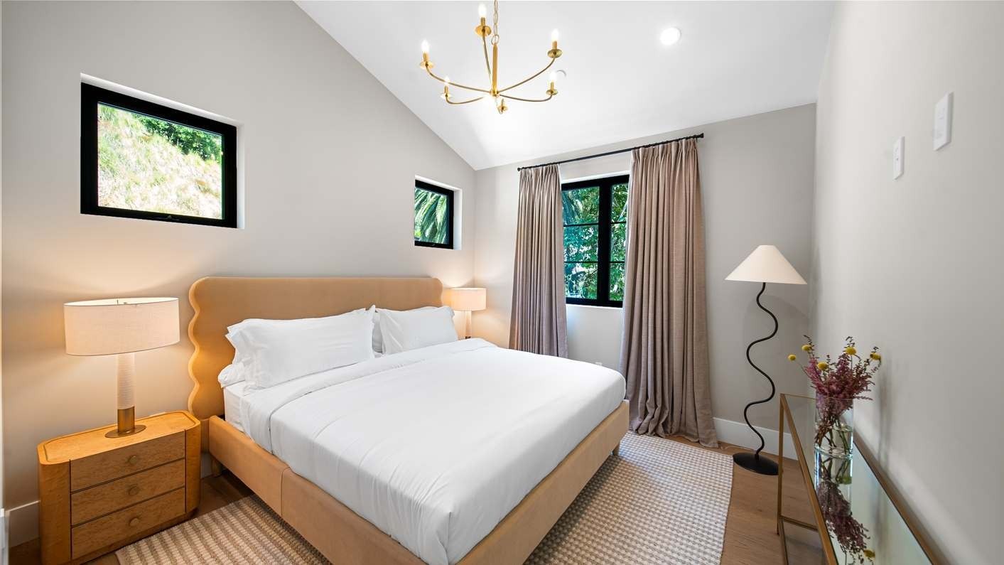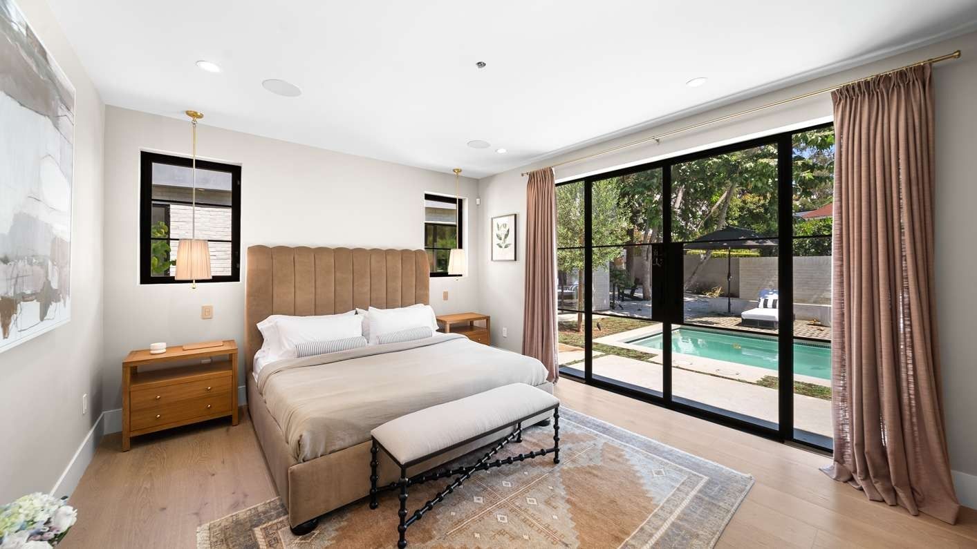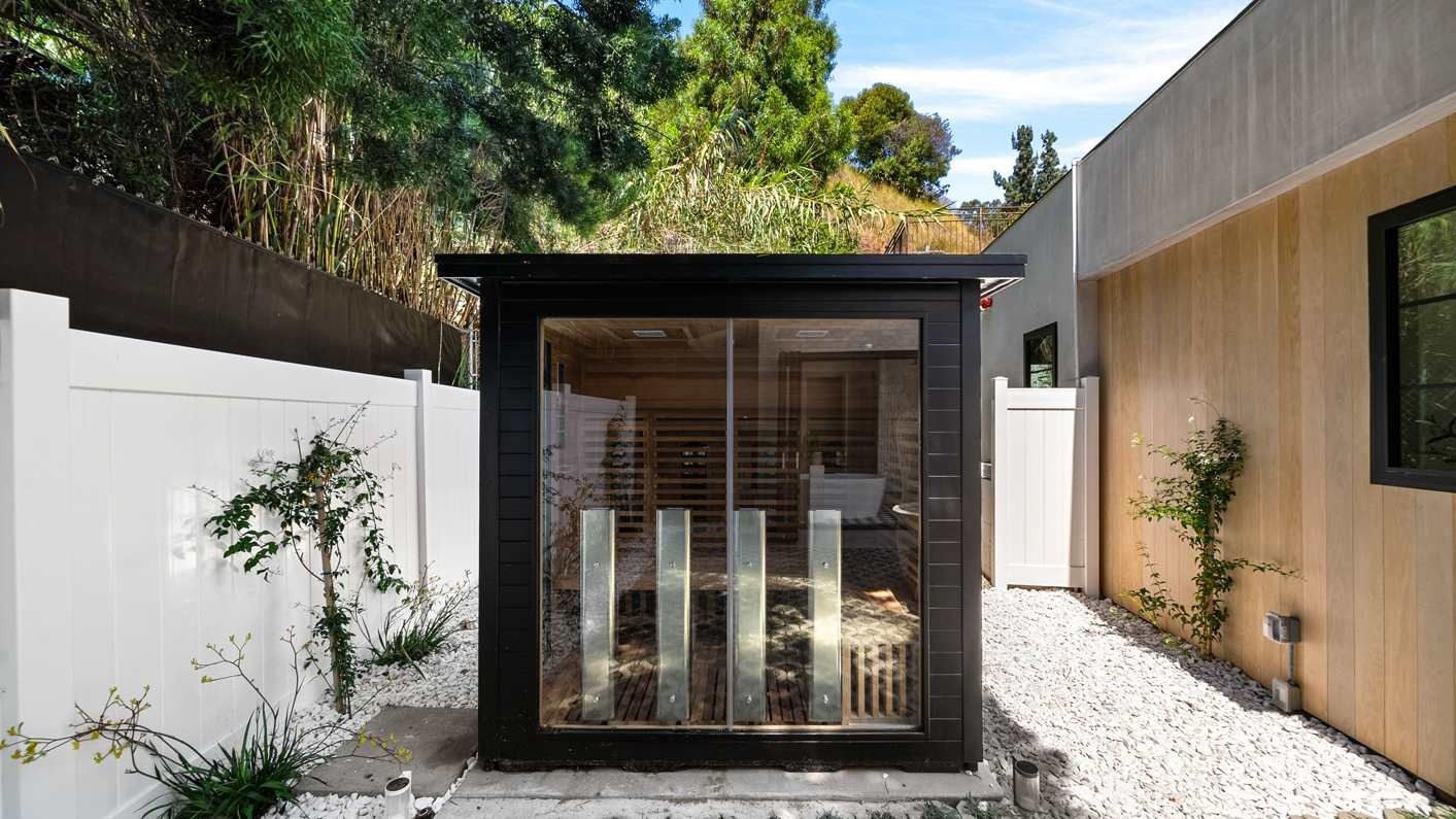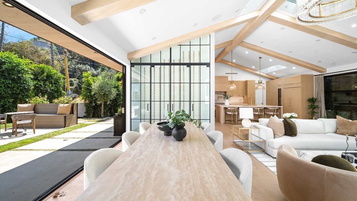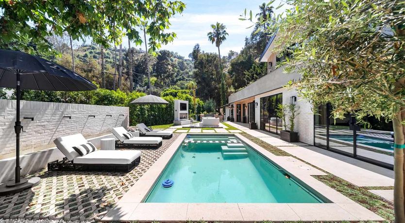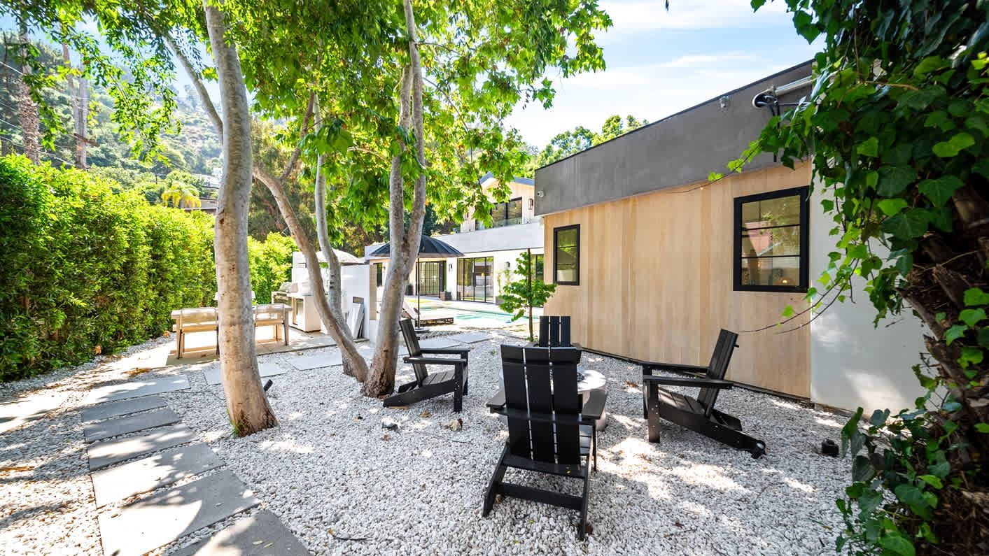 A ten-minute drive from the Sunset Strip, this house offers a true taste of the Hollywood lifestyle. The space feels bright and open, with almost every room opening directly to the outdoors. There are four bedrooms in the main house and two more in a self-contained guest house – ideal for hosting visiting family or friends. Days here are best spent lounging by the pool, recharging in the sauna or hot tub, and firing up the grill for alfresco feasts beneath the palms. Come nightfall, an outdoor cinema and lounge set the scene for movie nights and starlit conversations. Location-wise, there are restaurants, shops and cafes right outside the door, while hiking trails wind through Laurel Canyon.