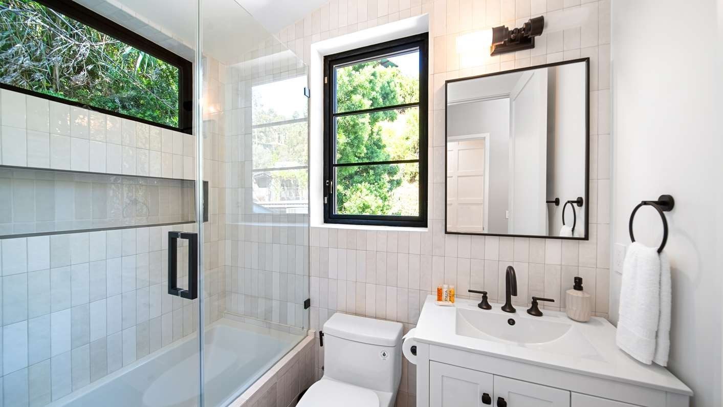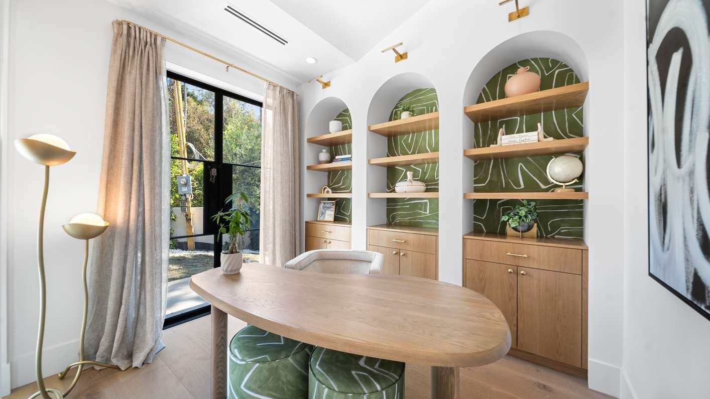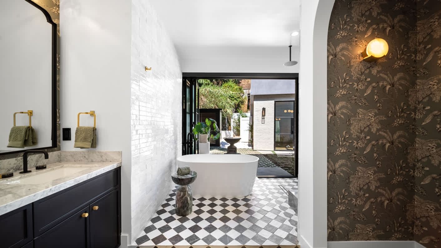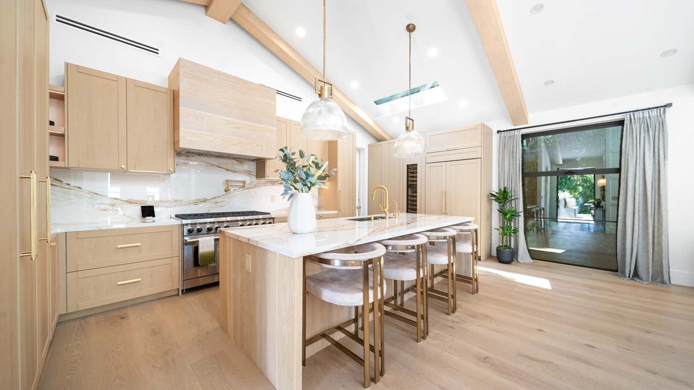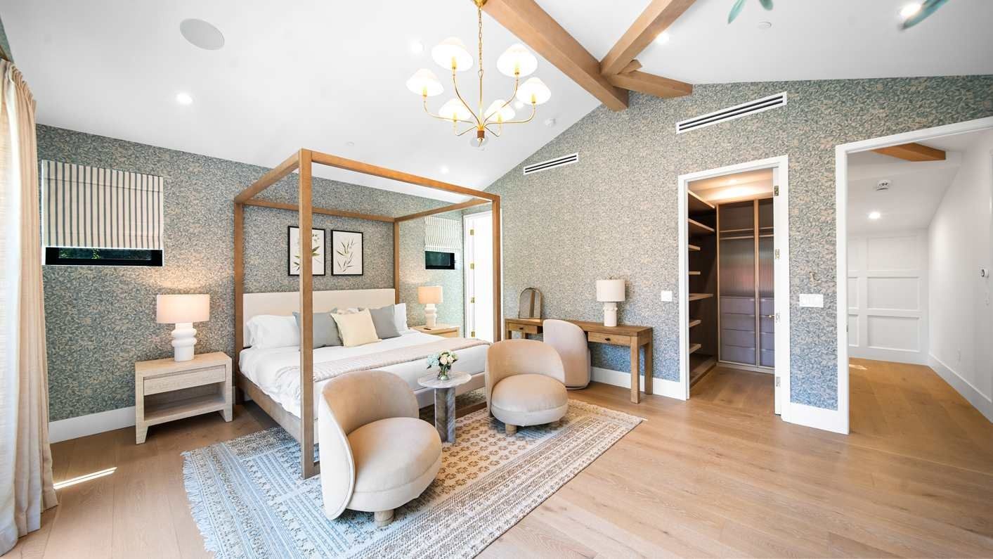 A ten-minute drive from the Sunset Strip, this house offers a true taste of the Hollywood lifestyle. The space feels bright and open, with almost every room opening directly to the outdoors. There are four bedrooms in the main house and two more in a self-contained guest house – ideal for hosting visiting family or friends. Days here are best spent lounging by the pool, recharging in the sauna or hot tub, and firing up the grill for alfresco feasts beneath the palms. Come nightfall, an outdoor cinema and lounge set the scene for movie nights and starlit conversations. Location-wise, there are restaurants, shops and cafes right outside the door, while hiking trails wind through Laurel Canyon.