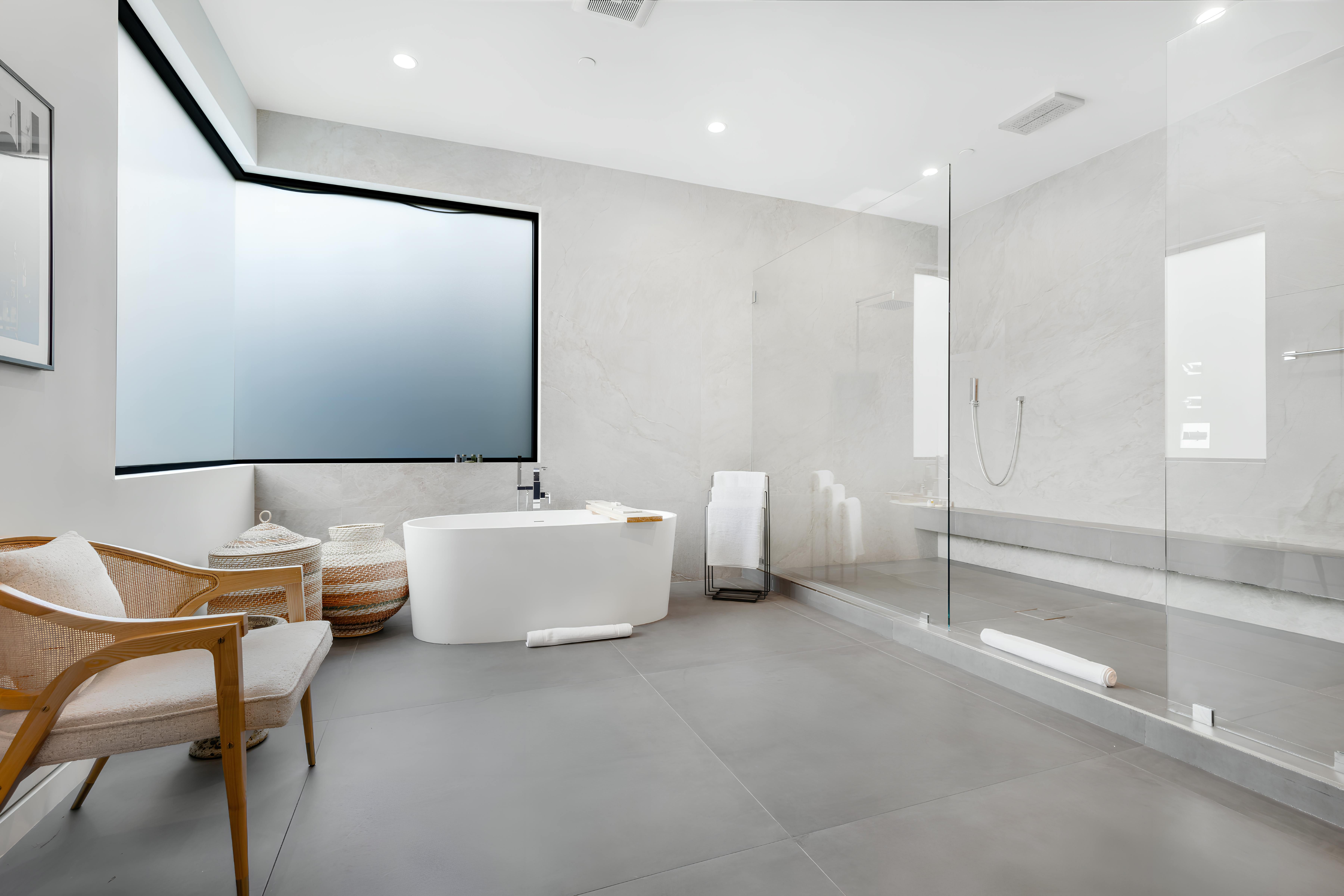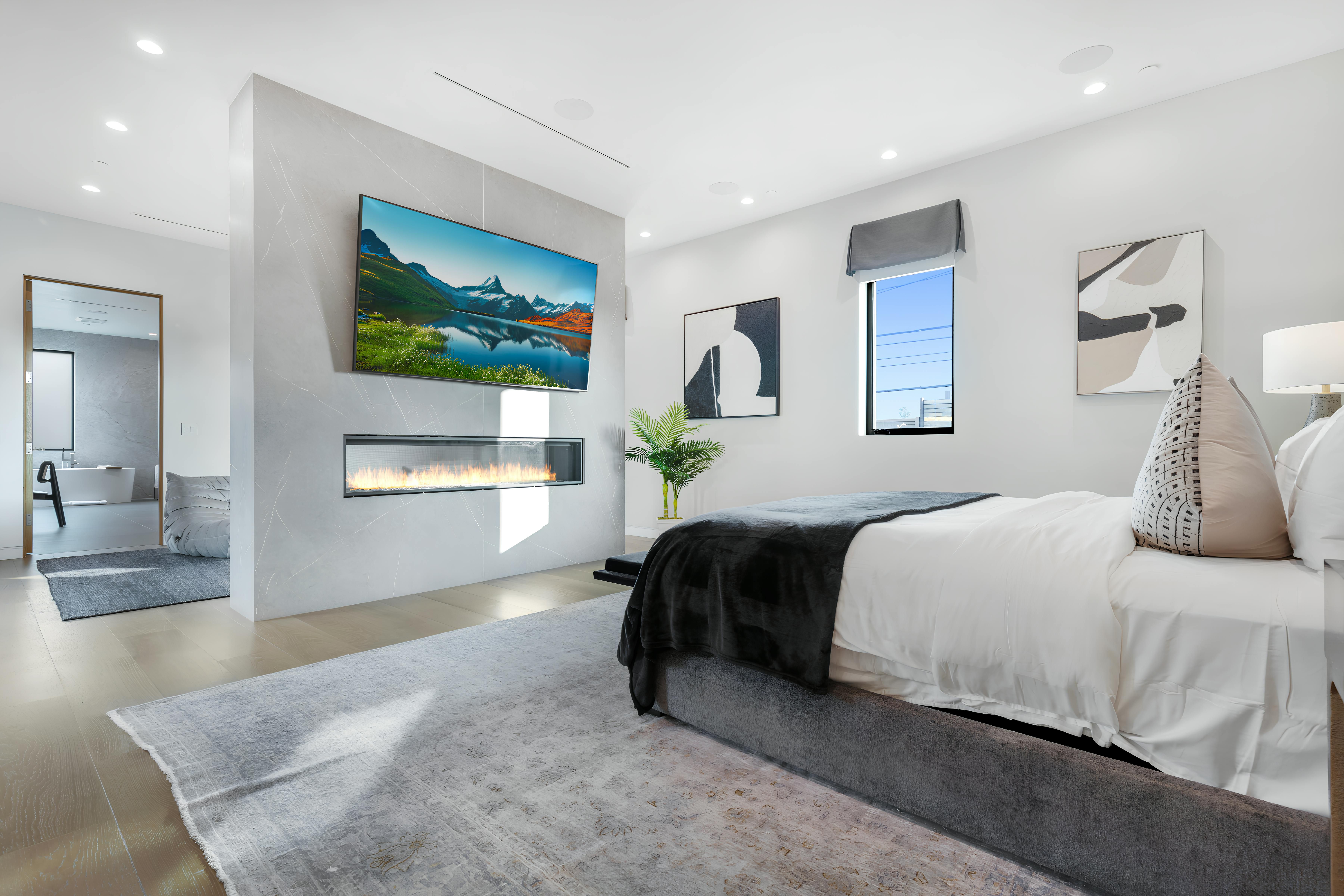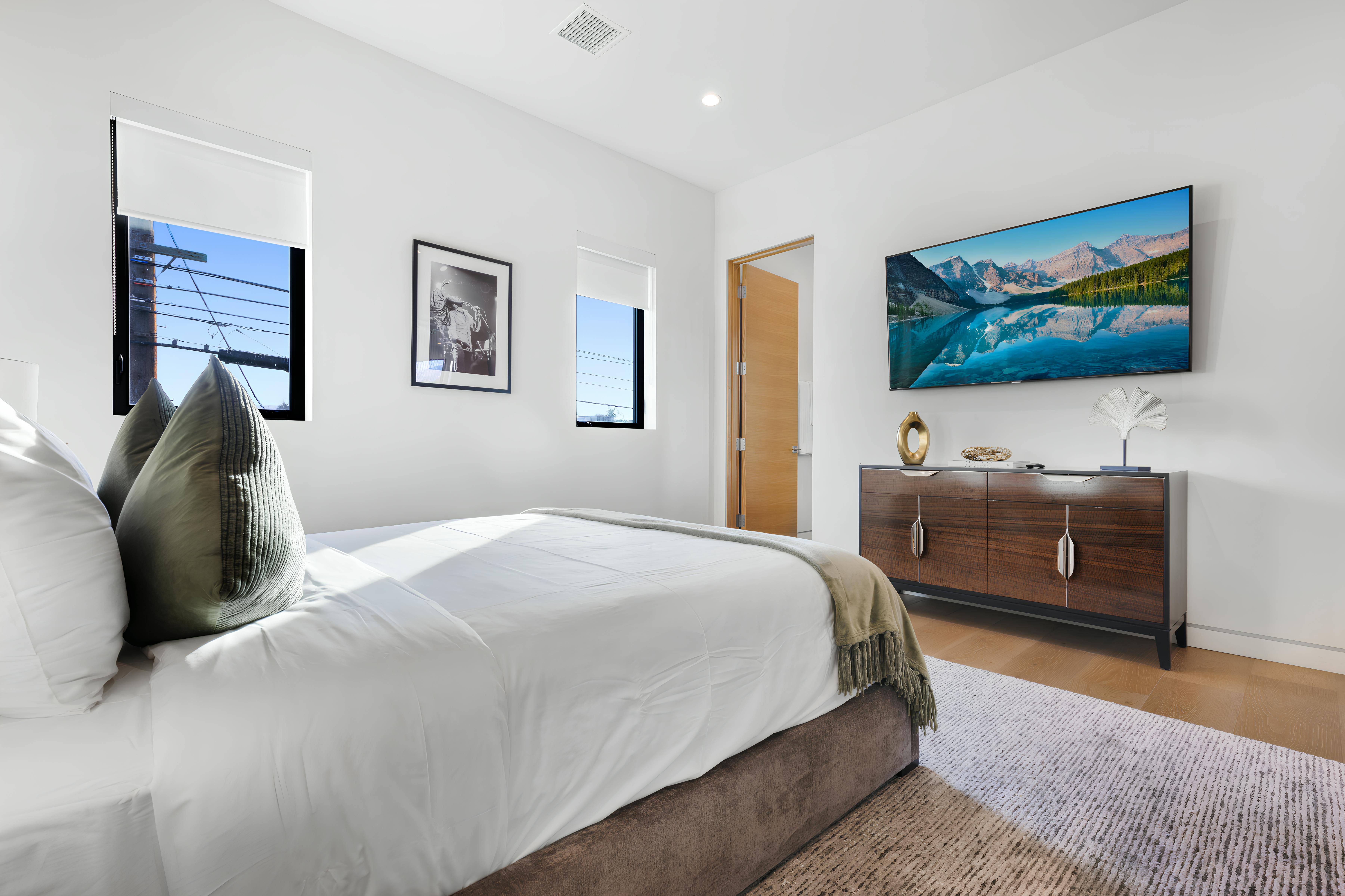 This elegant residence with its lofty ceilings and luxurious finishes is perfect for families or friends looking for sophisticated surroundings. We love the lavish main suite with its sitting area, an oversized walk-in closet, and a spacious en-suite bathroom. Outside, there’s a private pool and a spa area, as well as a balcony terrace – perfect for sunset drinks. This home is conveniently located near The Grove which offers an array of boutiques, restaurants and entertainment. The MAK Center for Art and Architecture is also within walking distance and other attractions nearby include Beverly Hills, a short drive away.