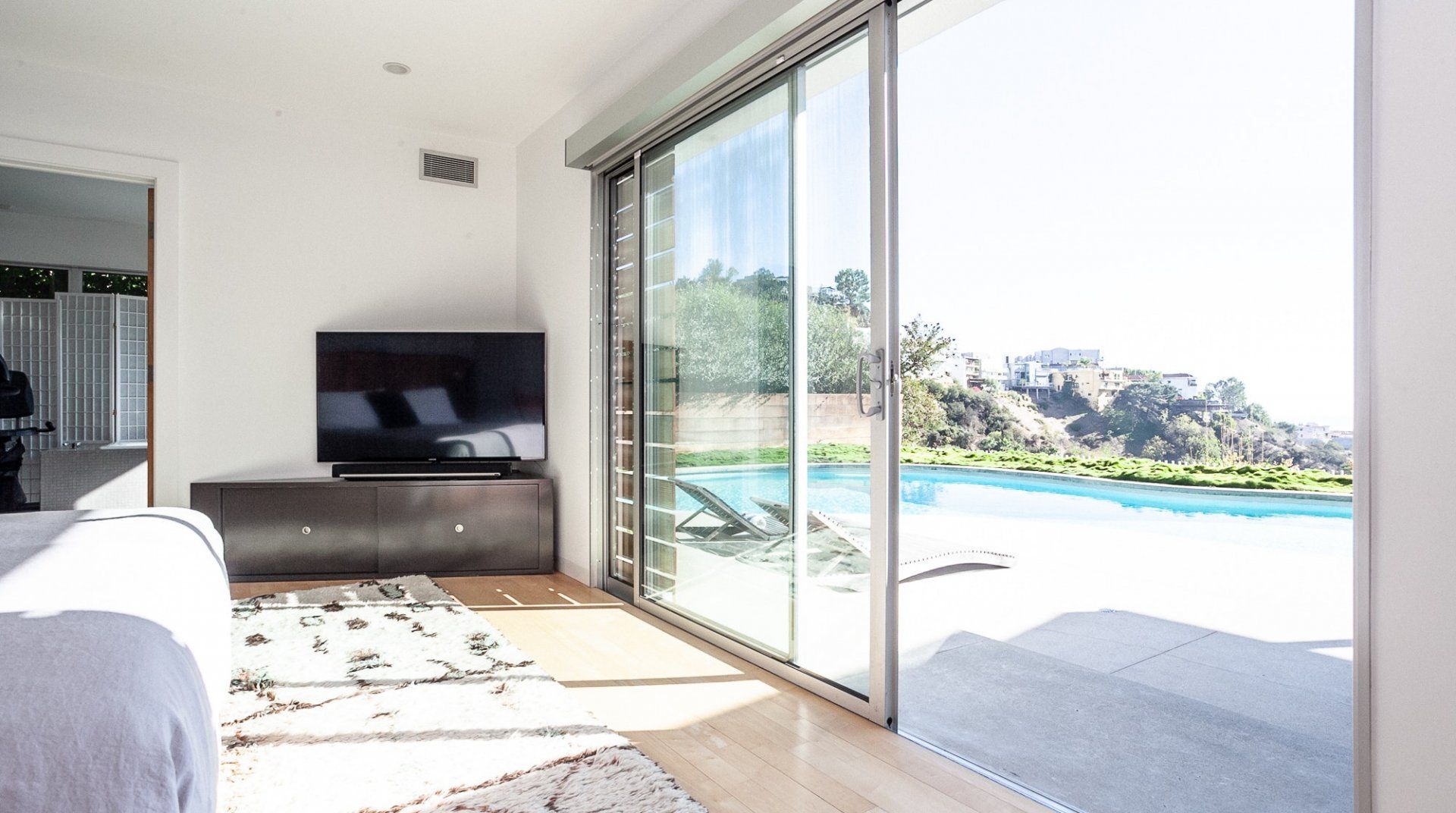This is one for the design lovers who are looking for the classic LA experience. Named one of the Seven Best Short Term rentals in Los Angeles by Architectural Digest, this home is a prized vacation. Stay here for panoramic vistas of the city, a freeform pool flanked by sleek loungers and a hot tub beside a chill-out area, complete with fire pit. All this without even mentioning the inside space. Smooth concrete and clean lines flow from the outside into the living area, where sunshine pours through a bank of floor-to-ceiling windows, illuminating the neutral colour palette and whimsical contemporary art. A gourmet chef’s kitchen makes light work of mealtimes, and cosy bedrooms will send you right off to sleep. Nestled at the end of a quiet road in the Hollywood Hills, you'll have utter privacy here. But if you’d prefer to get among the action, the world-famous Sunset Strip and high-energy West Hollywood are a ten-minute drive away. Chic, cohesive and entirely unforgettable. We're big fans of this one, can you tell?