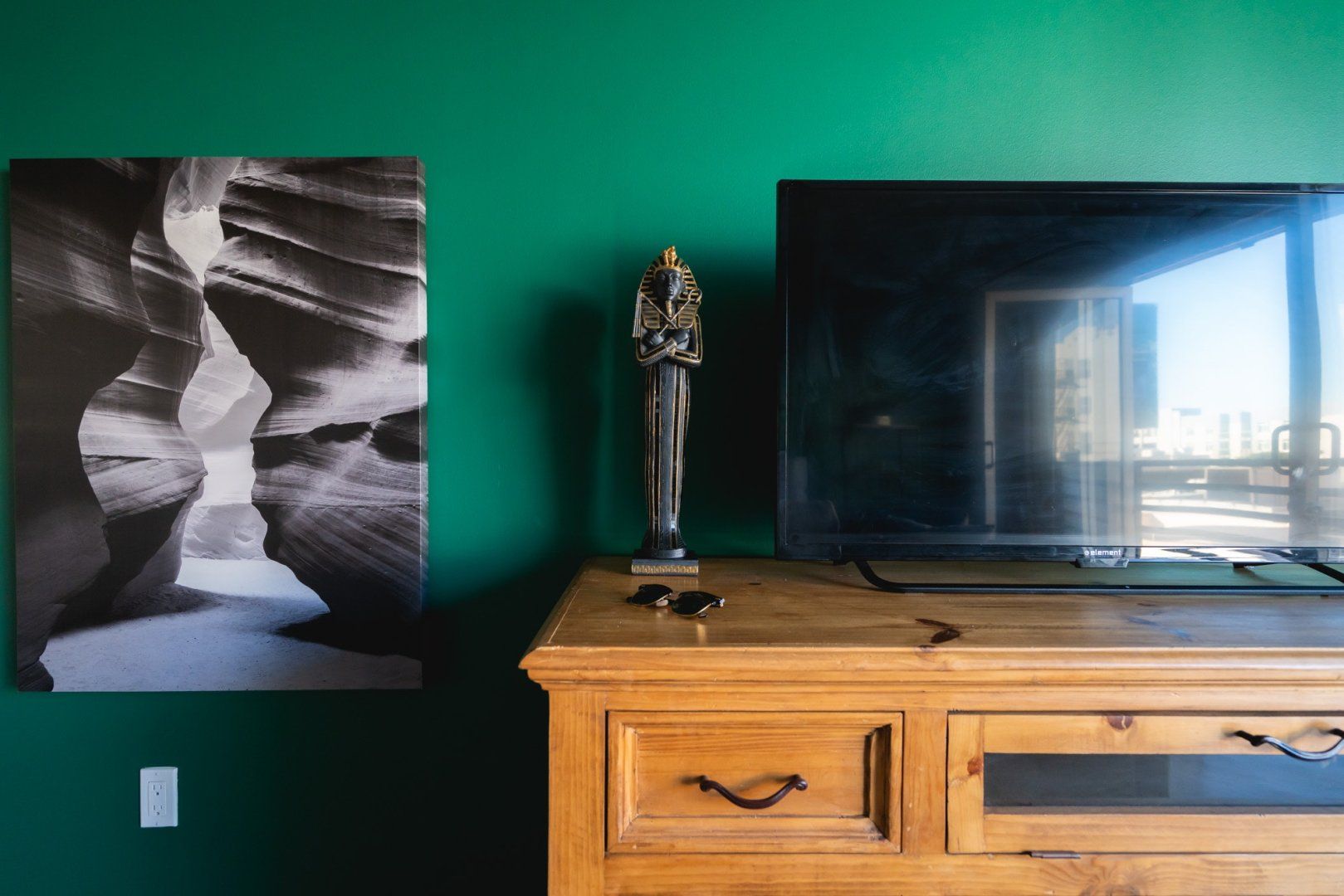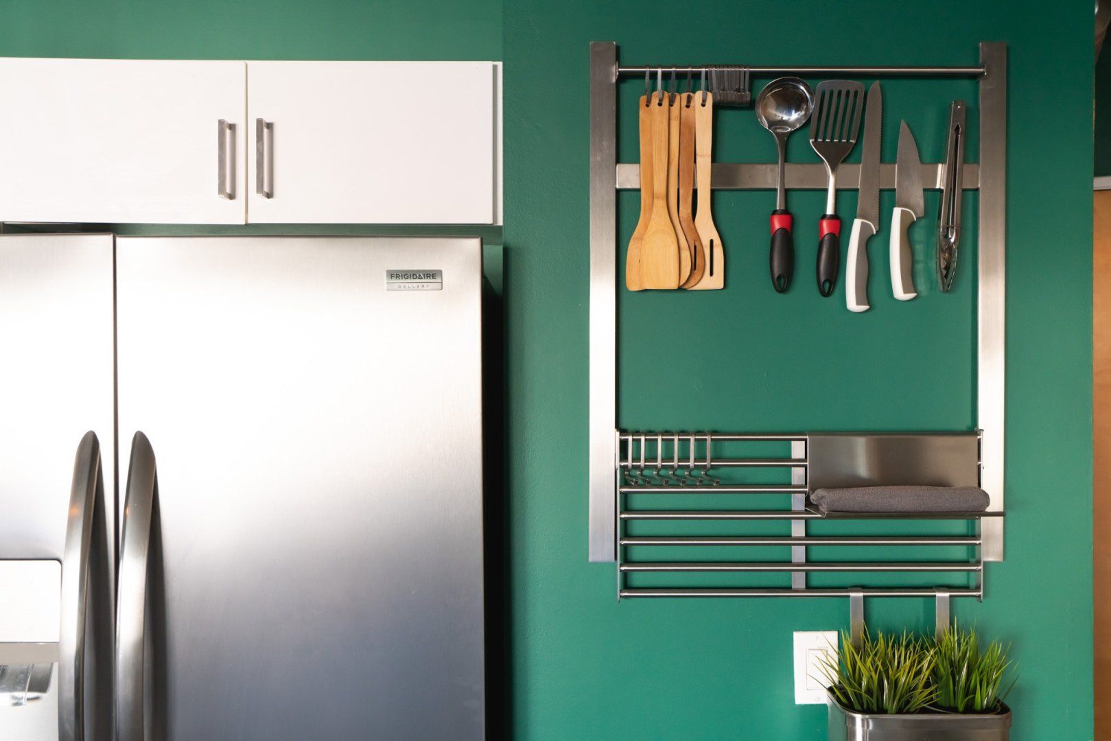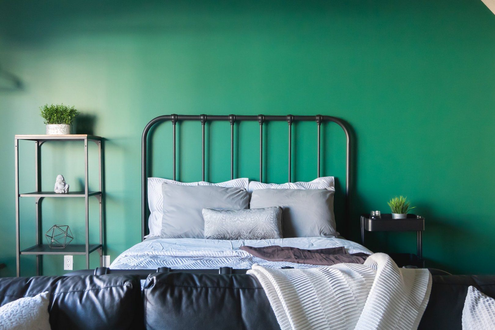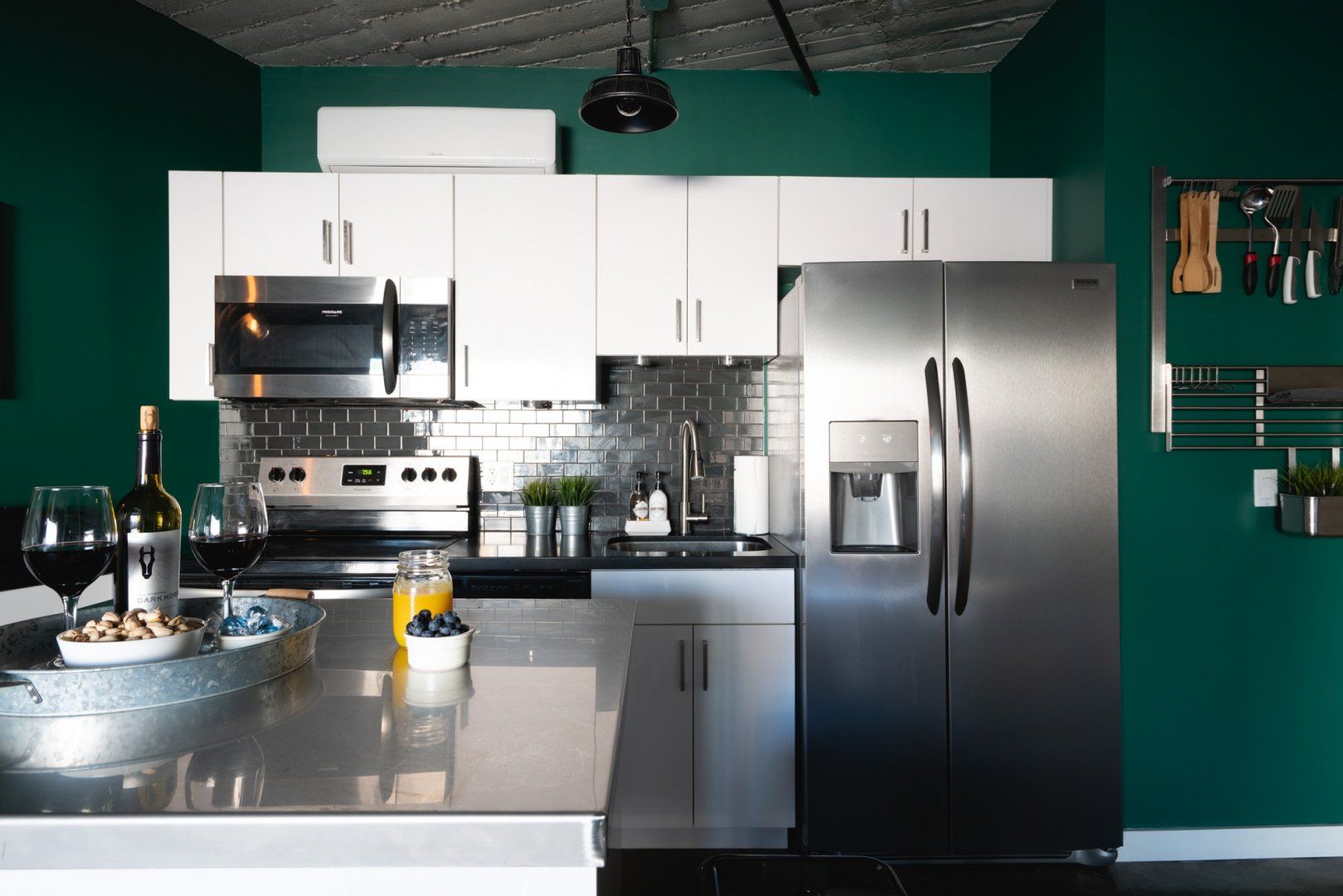 Take in views of Hollywood from the French doors of this industrial-style loft. This is a studio-style apartment, but four close friends can cosy up here. High-end amenities and chic decor weren't at all sacrificed despite being an incredible value. You may even feel like you've been whisked away to Europe thanks to those emerald walls and wood-accented design elements.
