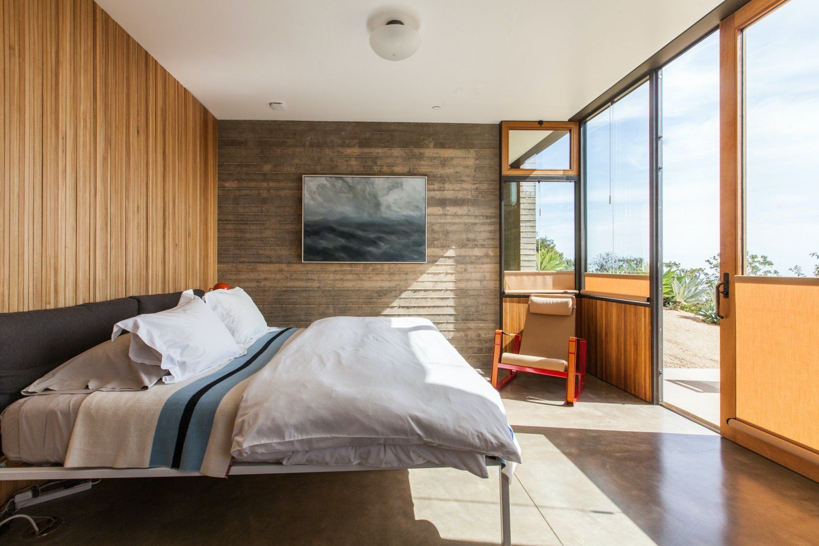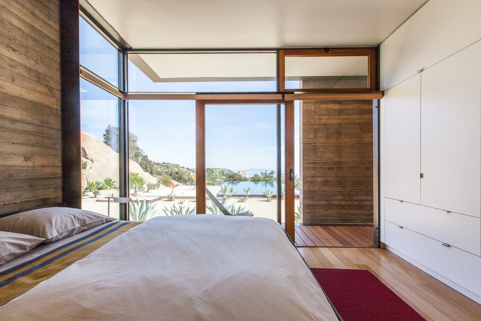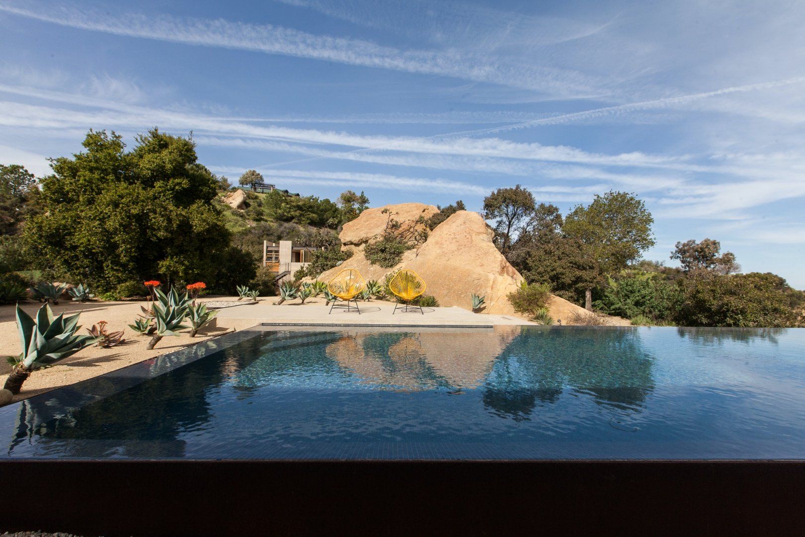 An architectural show-stopper, this secluded home in Topanga Canyon is the crème de la crème. With clean lines, designer furniture and truly spectacular vistas of both the Pacific Ocean and the Santa Monica Mountains from the many terraces, this place is a masterclass in indoor-outdoor living. There's even a separate studio with a kitchen, living area and bedroom that's perfect for those craving a little extra privacy. Wake up each morning and watch the sunrise over the jaw-dropping landscape, then whip up a delicious breakfast in the modern kitchen, which has stainless steel countertops and plenty of culinary gear. Then, head outside and bask in the mountain breeze with a dip in the infinity pool, or just lounge on the deck chairs with a chilled drink in hand and admire the stunning surroundings. In the evenings, fire up the grill for a mouthwatering dinner before ending the night with a soak in the hot tub as the stars pop out overhead. When you can pull yourself away from this private paradise (though we don't blame you if you can't), there's a myriad of trailheads nearby that will please any hiker, and Topanga Beach is about a twenty-minute drive away.