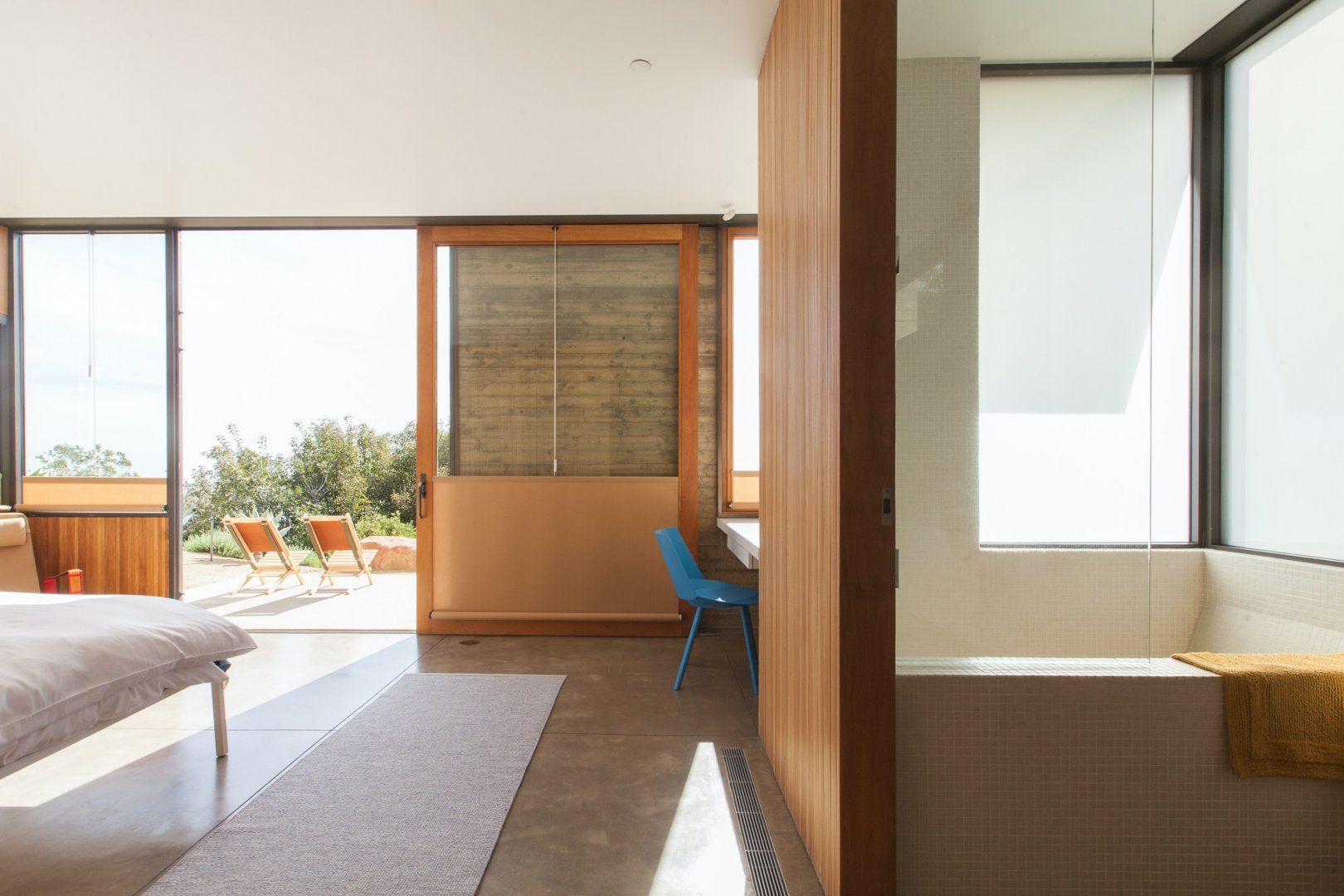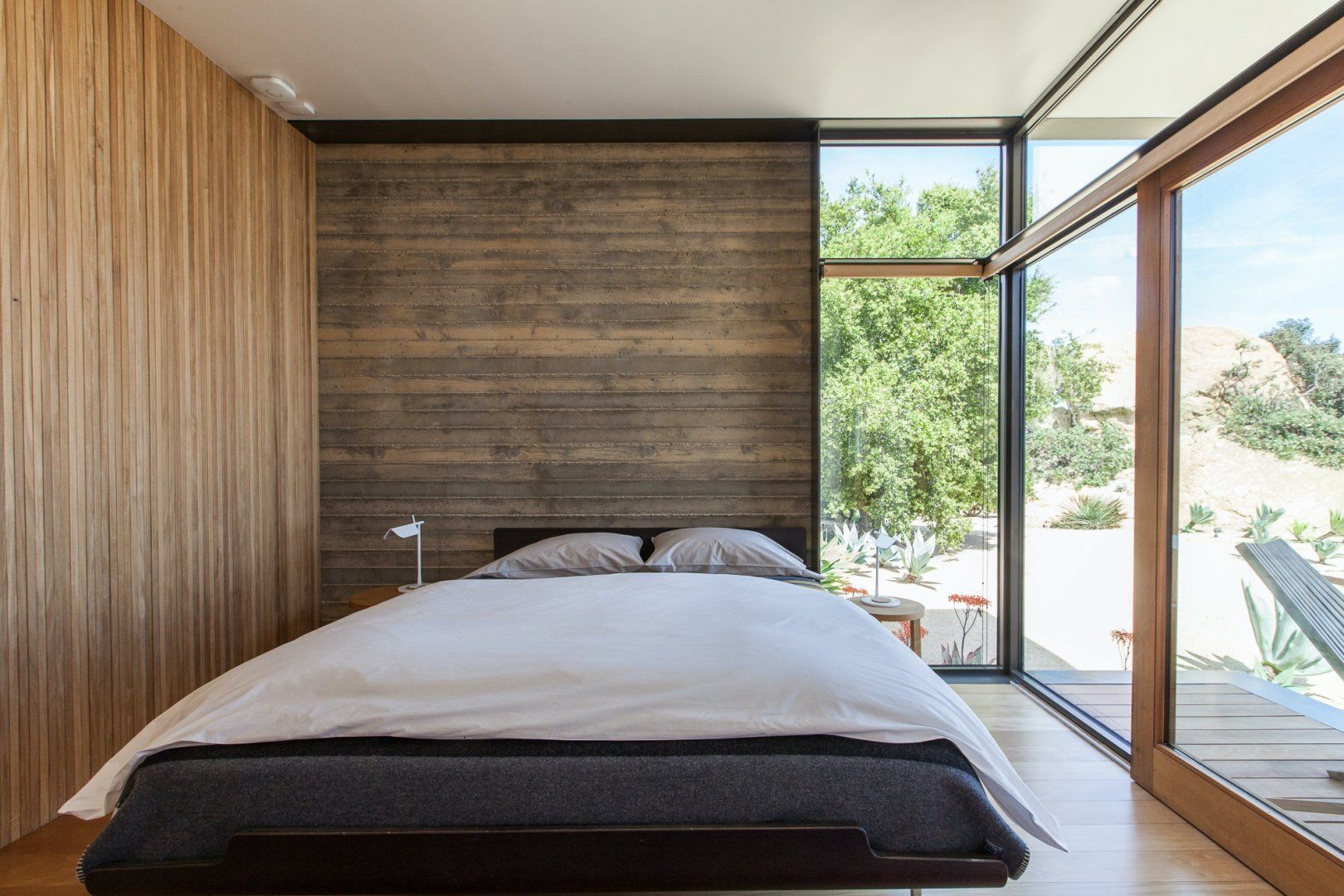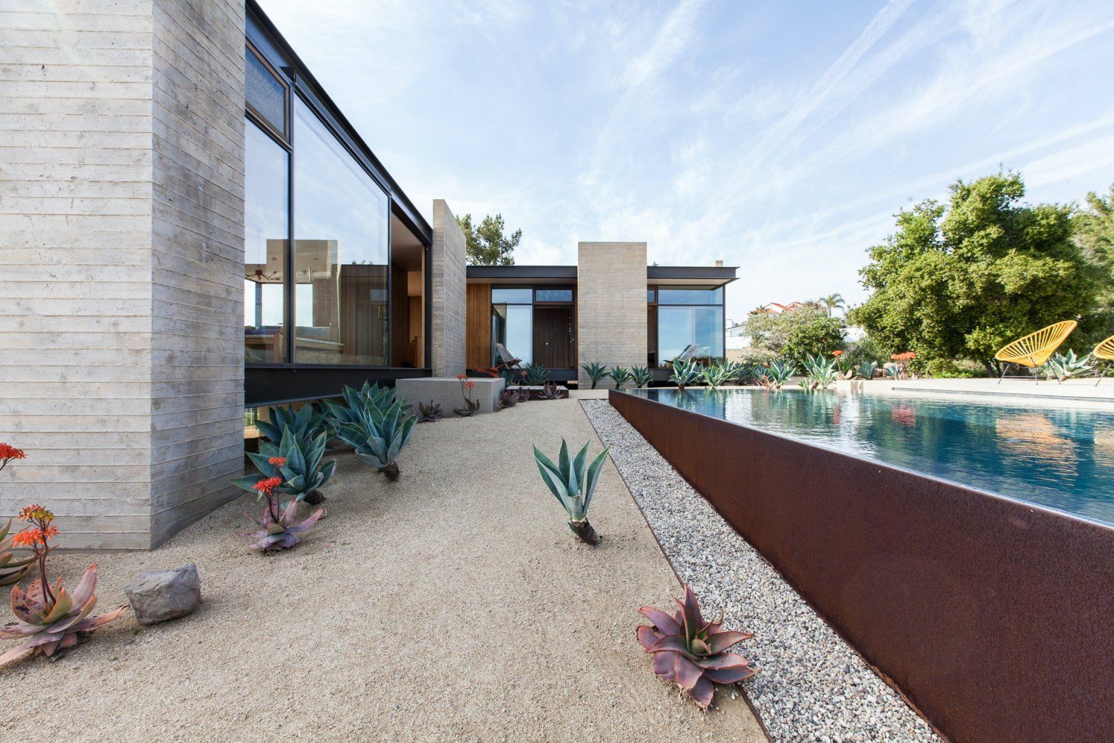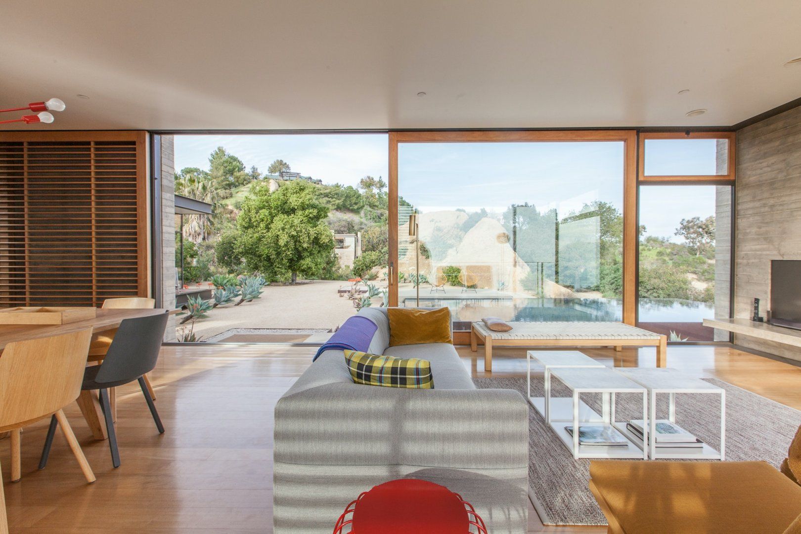 An architectural show-stopper, this secluded home in Topanga Canyon is the crème de la crème. With clean lines, designer furniture and truly spectacular vistas of both the Pacific Ocean and the Santa Monica Mountains from the many terraces, this place is a masterclass in indoor-outdoor living. There's even a separate studio with a kitchen, living area and bedroom that's perfect for those craving a little extra privacy. Wake up each morning and watch the sunrise over the jaw-dropping landscape, then whip up a delicious breakfast in the modern kitchen, which has stainless steel countertops and plenty of culinary gear. Then, head outside and bask in the mountain breeze with a dip in the infinity pool, or just lounge on the deck chairs with a chilled drink in hand and admire the stunning surroundings. In the evenings, fire up the grill for a mouthwatering dinner before ending the night with a soak in the hot tub as the stars pop out overhead. When you can pull yourself away from this private paradise (though we don't blame you if you can't), there's a myriad of trailheads nearby that will please any hiker, and Topanga Beach is about a twenty-minute drive away.