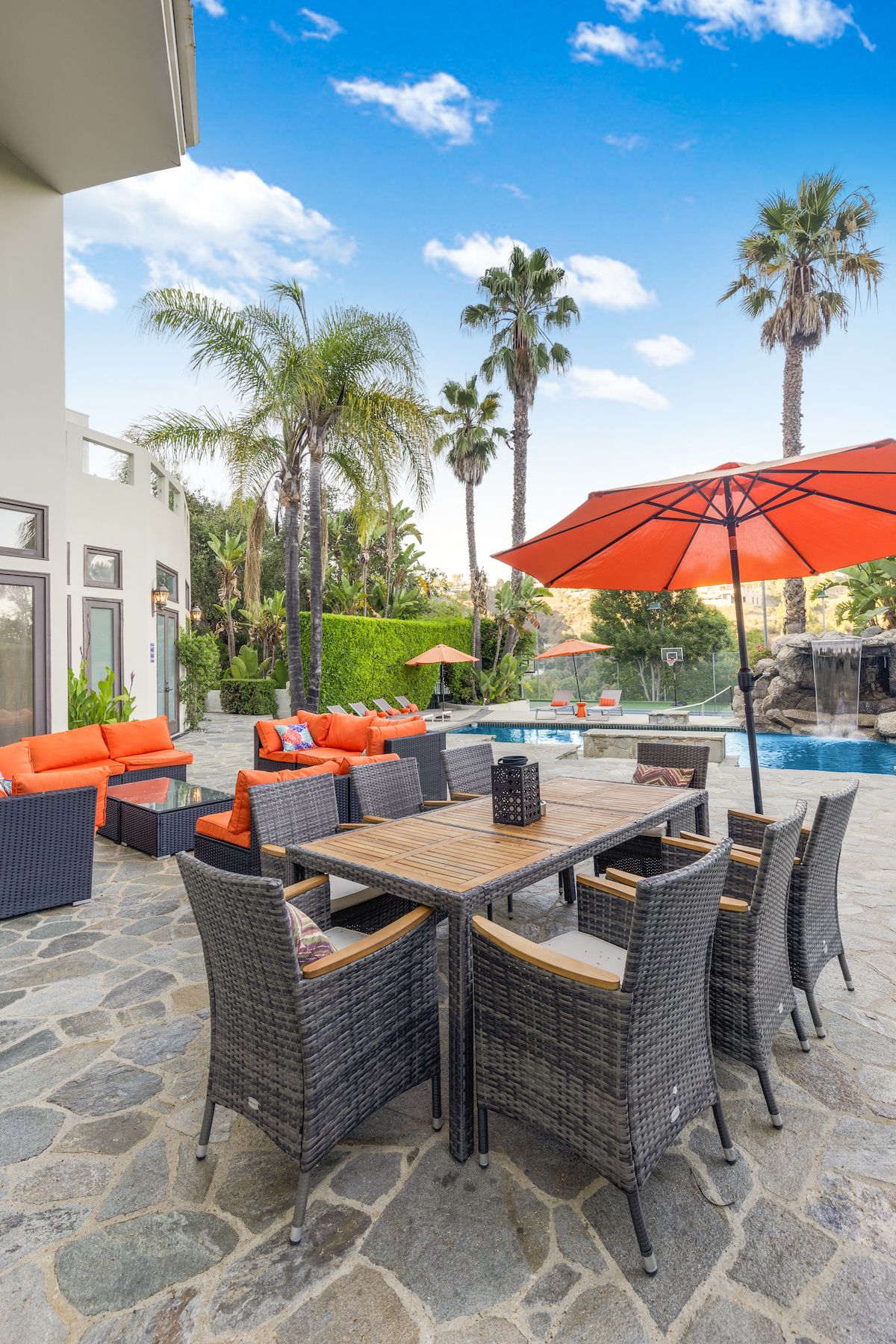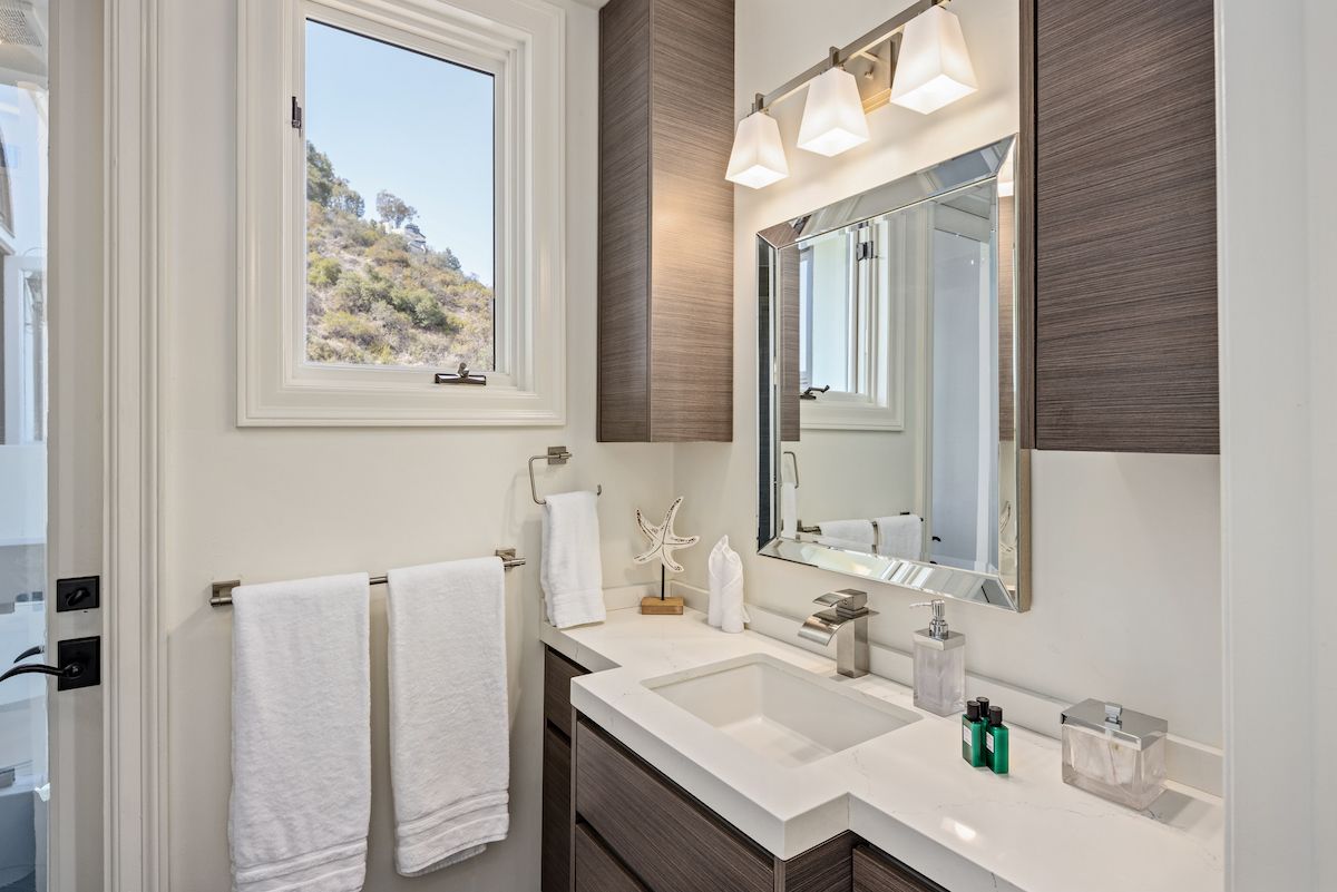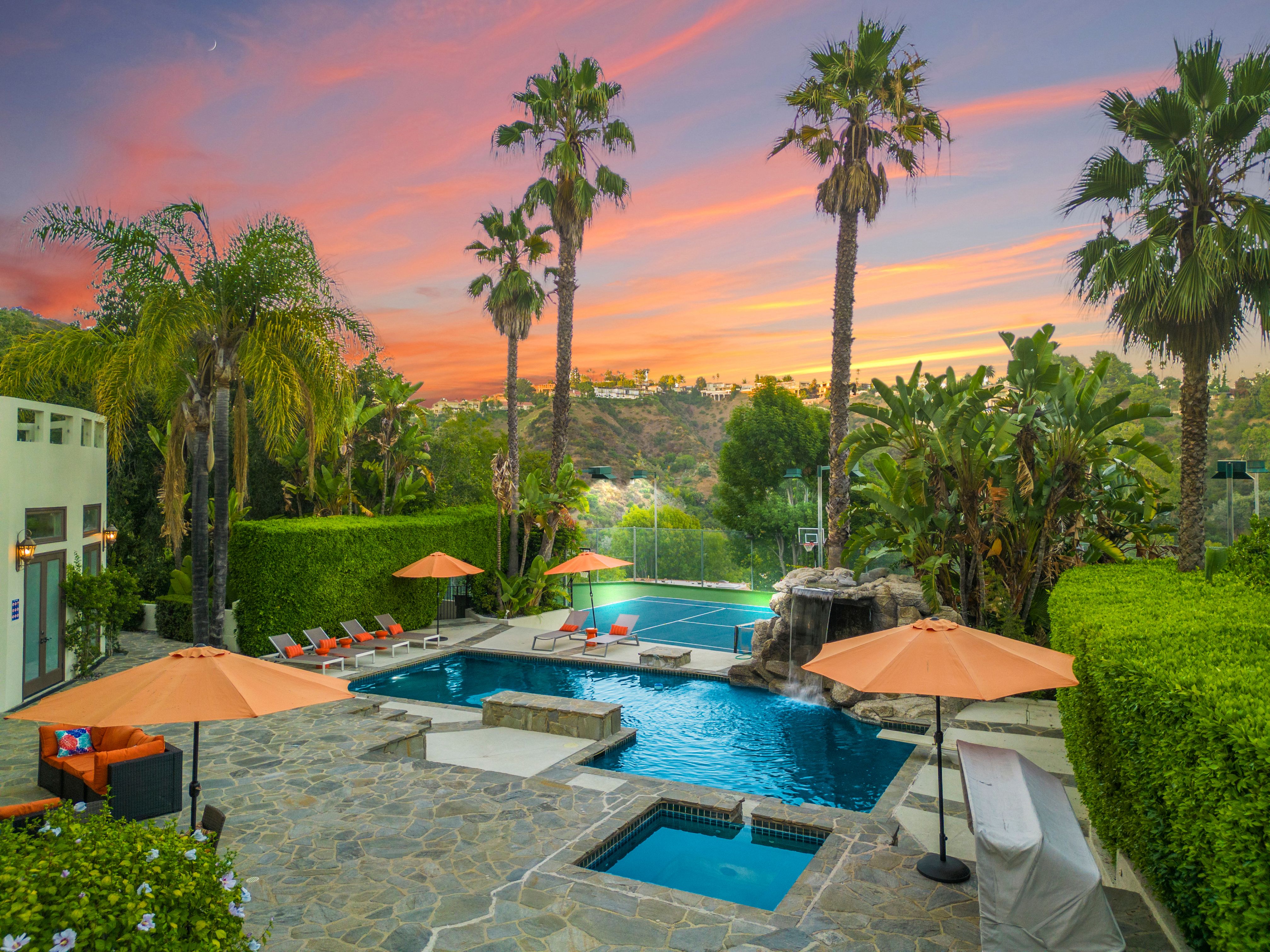 This grand Bel Air villa is situated on over two acres of land, ideal for large friend groups and families. There's no shortage of things to do, with a tennis court, billiards room, home theatre, wine cellar, and a personal gym complete with sauna. Entertaining is made easy both indoors and out – the living room features a full bar, and the canyon views are truly breathtaking. You'll need a car here, but we love the convenience of the quiet cul-de-sac location, all the while you're just a short drive from all that Bel Air, Hollywood, and Santa Monica have to offer.