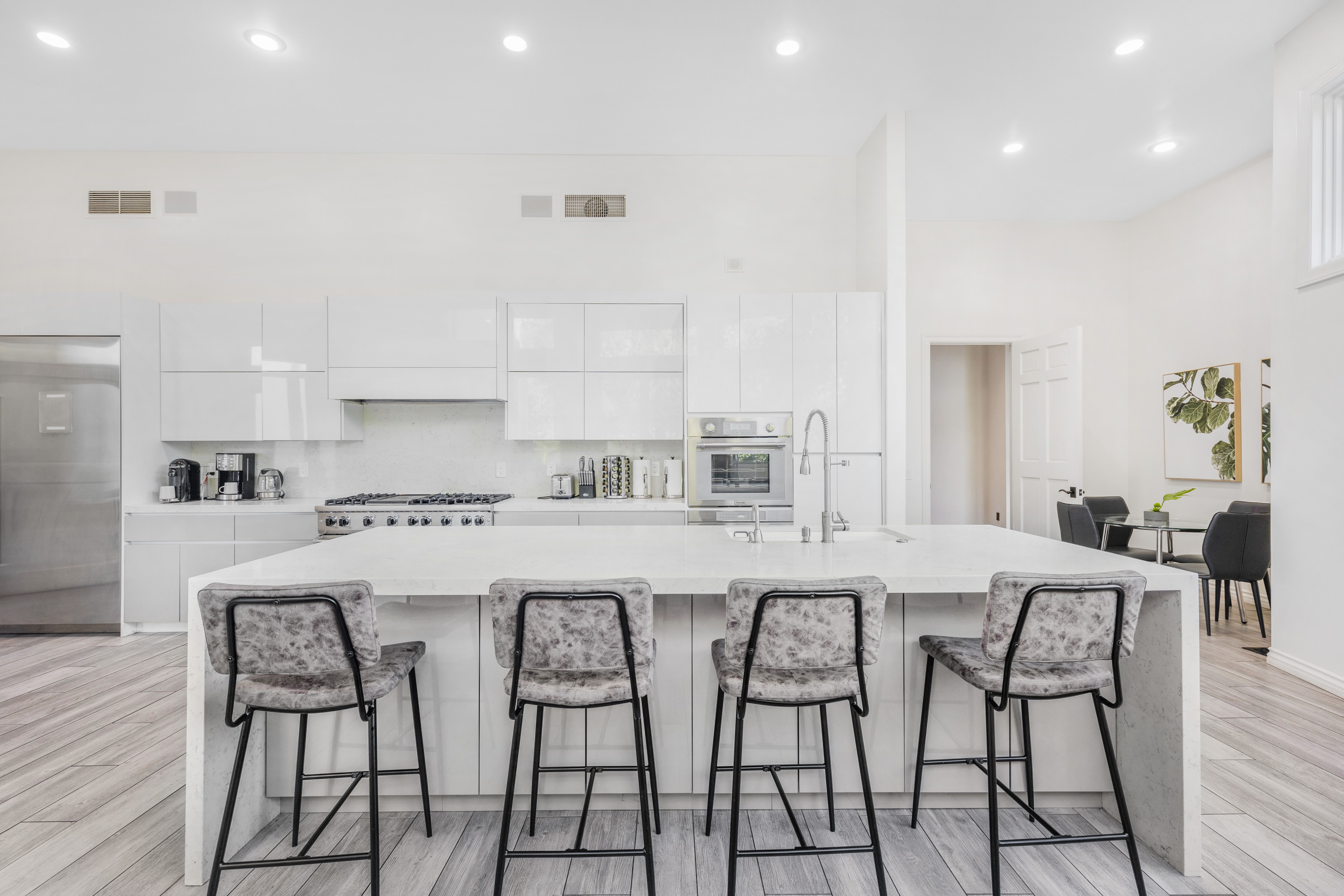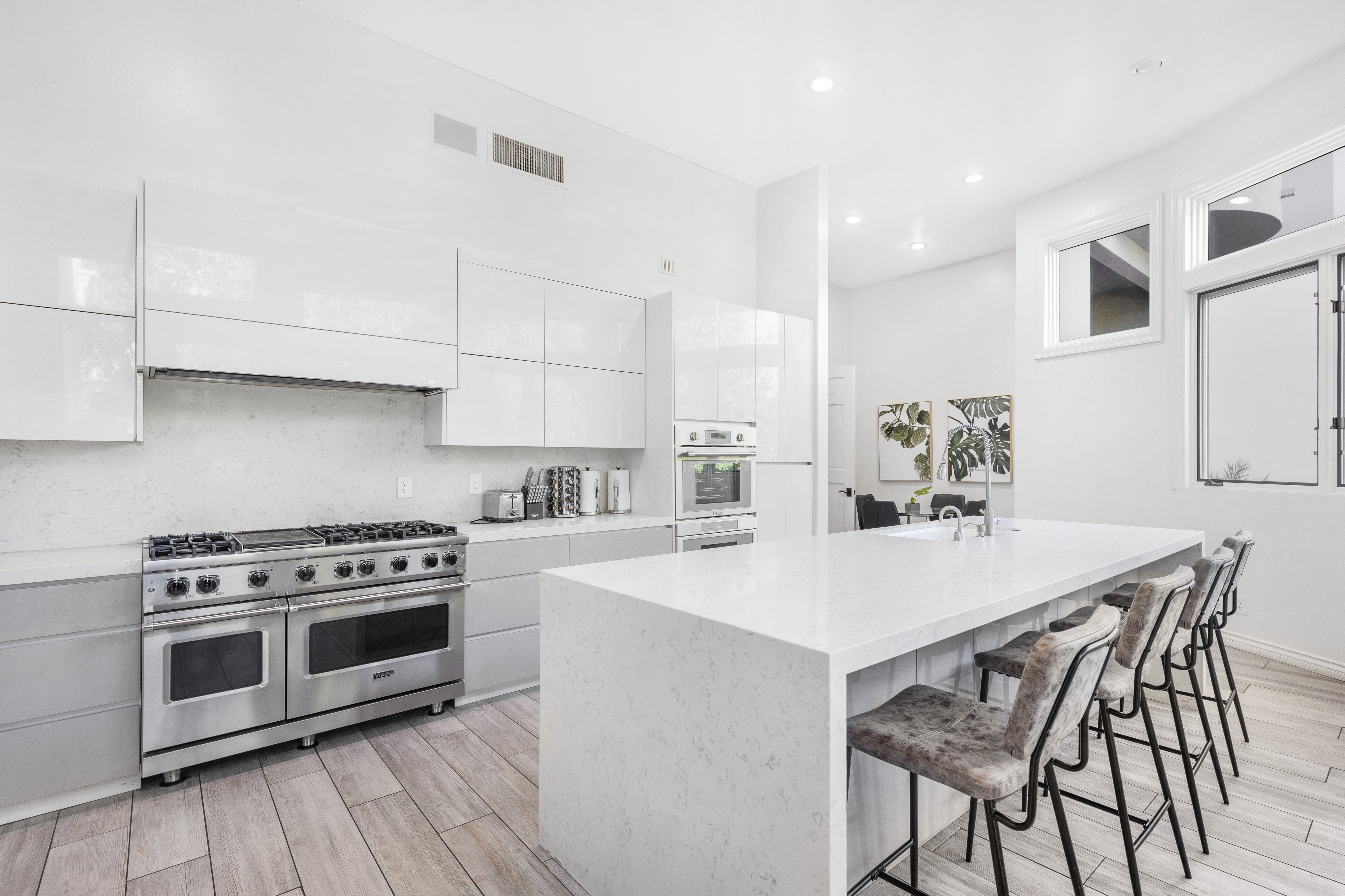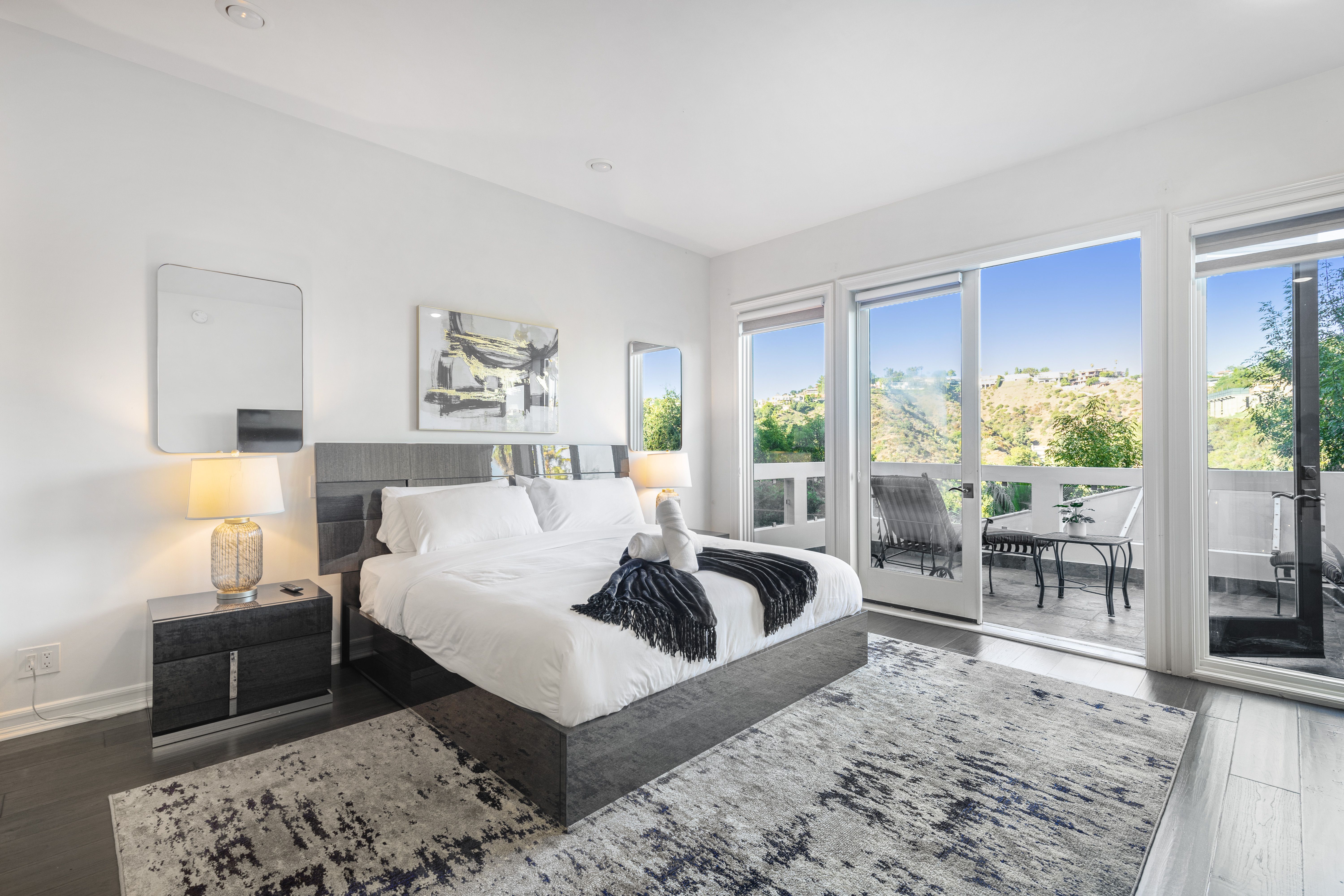 This grand Bel Air villa is situated on over two acres of land, ideal for large friend groups and families. There's no shortage of things to do, with a tennis court, billiards room, home theatre, wine cellar, and a personal gym complete with sauna. Entertaining is made easy both indoors and out – the living room features a full bar, and the canyon views are truly breathtaking. You'll need a car here, but we love the convenience of the quiet cul-de-sac location, all the while you're just a short drive from all that Bel Air, Hollywood, and Santa Monica have to offer.