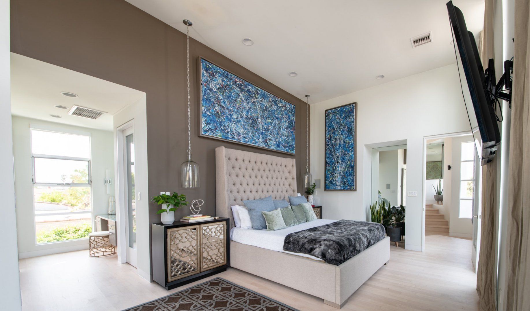 A breathtaking beauty in the heart of West Hollywood, this home is guaranteed to make you swoon like a star of the silver screen. With its clean lines, a bevvy of balconies, and its immaculate white exterior reflecting the glorious sunshine, it makes quite the first impression. Through the front door of this architectural marvel, you'll immediately appreciate the great care and attention to detail that has gone into its design. The massive chef's kitchen is the heart of the home – from here, it's like a Choose Your Own Adventure. Commune with nature in the zen-like back garden, settle into the cloud-like sofa for a private screening on the 12ft-wide screen with surround sound, or sit down for a bite around the dining table – you're spoiled for choice for places to relax. The stunning design is complemented by arresting art, curious collectables, bright bursts of colour, and over 60 lovingly tended houseplants – ensuring that there's always something pleasing in your eyeline.