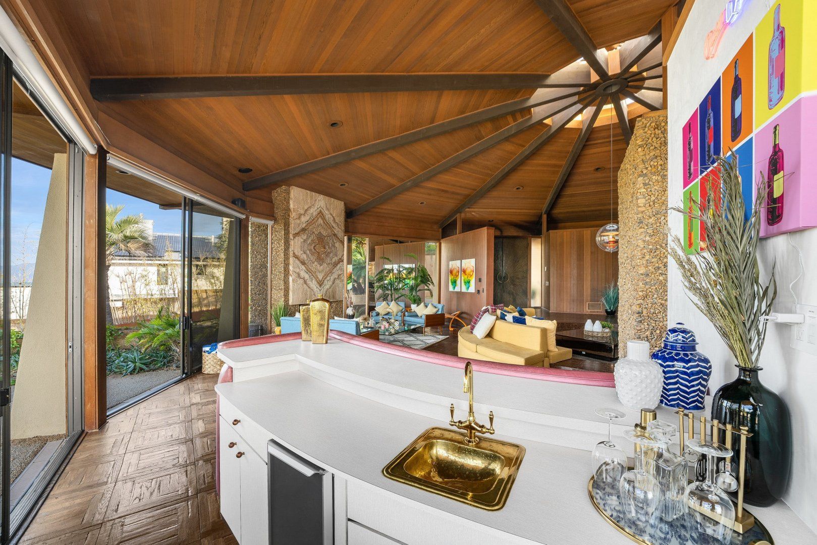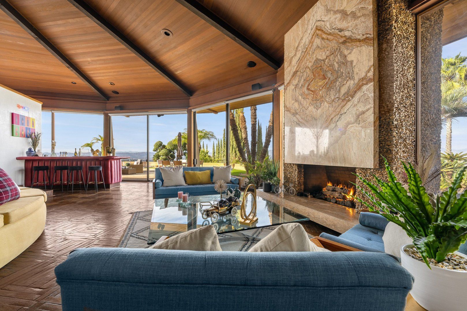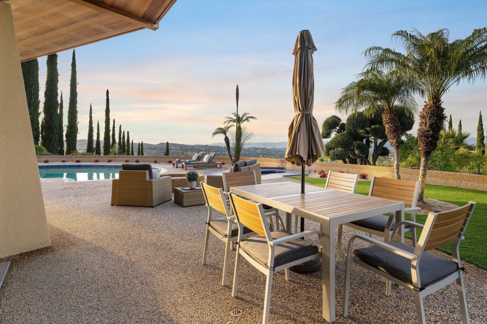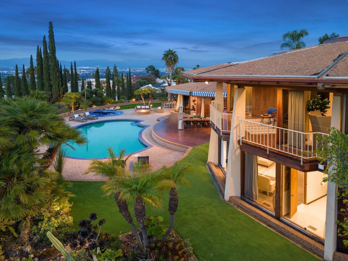 Treat yourself to postcard views of the San Fernando Valley. This mid-century home is the vision of a renowned architect, promising an indoor-outdoor flow. With an interior split between the main house and a guesthouse, this layout is ideal for teens craving privacy. From dining alfresco to gathering at the fire pit, you'll love itinerary planning here. Taking a break from the special services? The hot tub and pool table offer simple pleasures. And while a car is necessary, The Getty and Santa Monica Beach aren't far to drive.