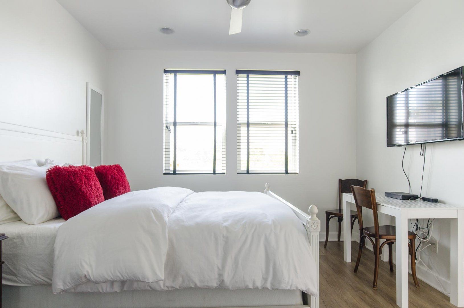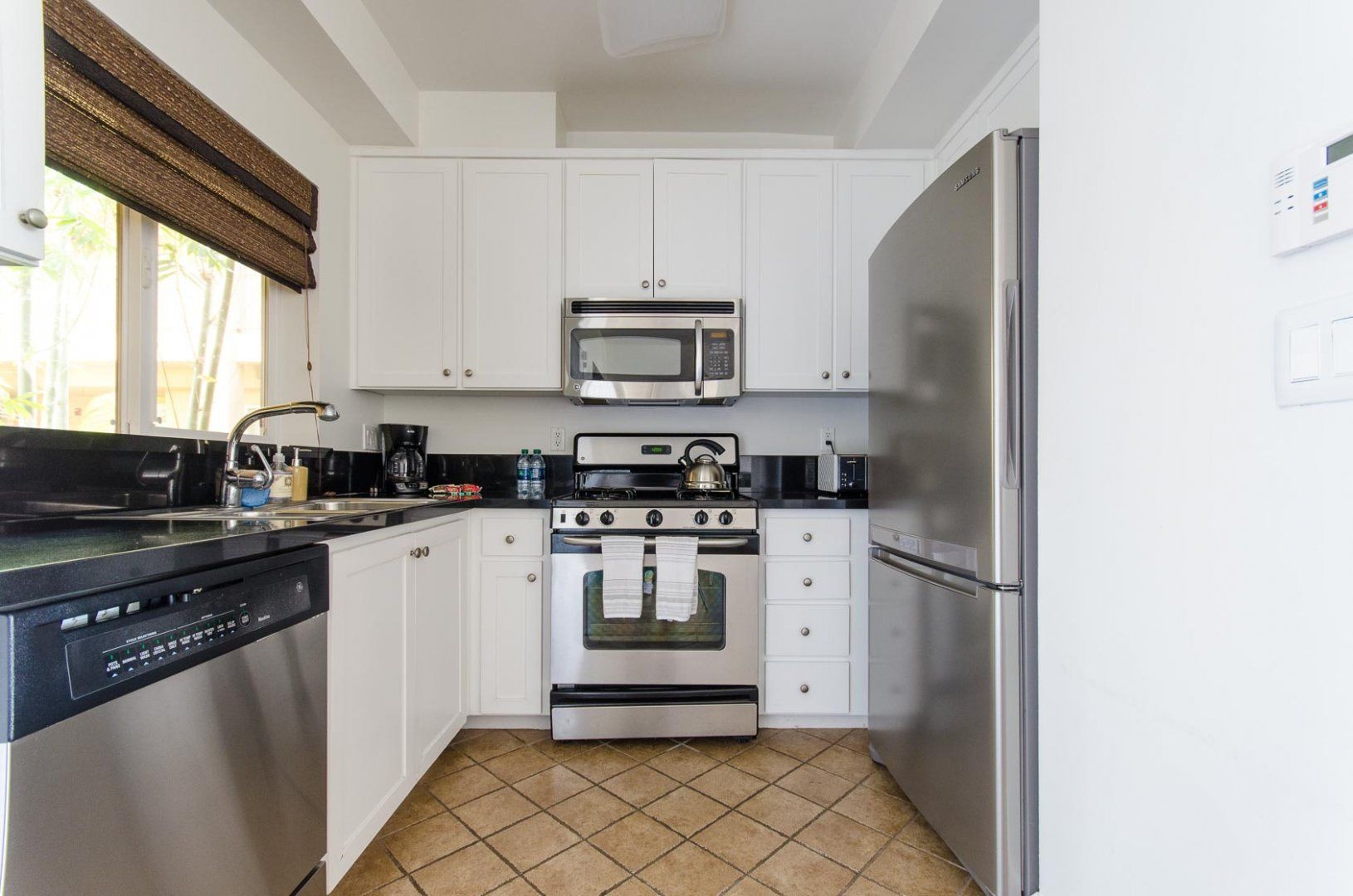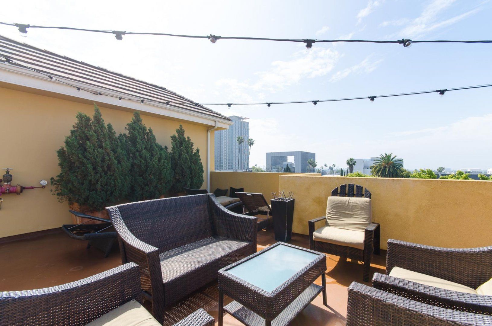 Centrally located near the heart of Hollywood's action, this home is a quiet retreat in a lively town. You’ll be a quick ten-minute walk from Hollywood Boulevard and the walk of fame, a six-minute drive from fabulous Thai food in Thai town and a fifteen-minute drive from the sprawling Griffith Park and its many trails. Back at home, this comfortable apartment is well-appointed, with kitchen appliances for easy meals in, a bright bedroom and a living room complete with a fireplace for chillier evenings. Our favorite spot though has got to be the building’s fabulous roof terrace. We believe it's the perfect spot both for entertaining and your morning yoga routine.
