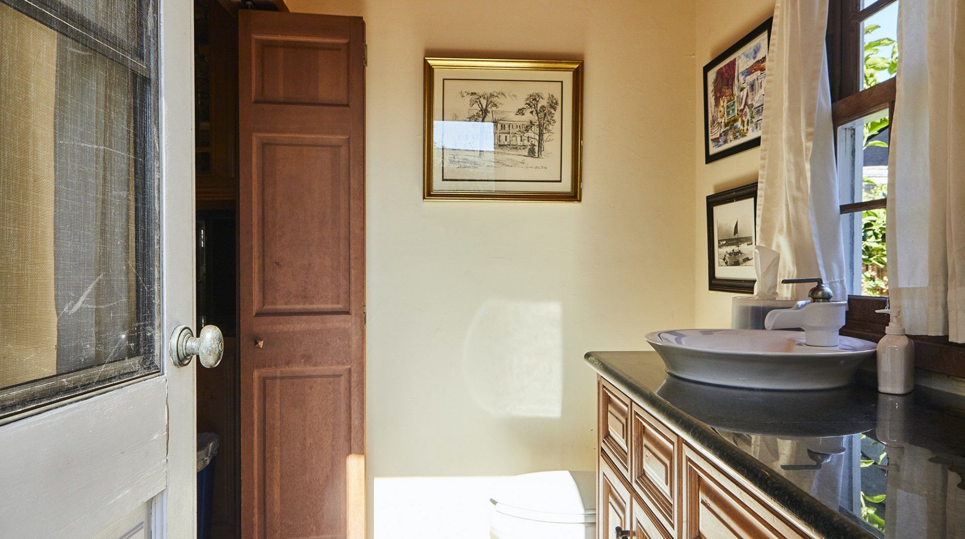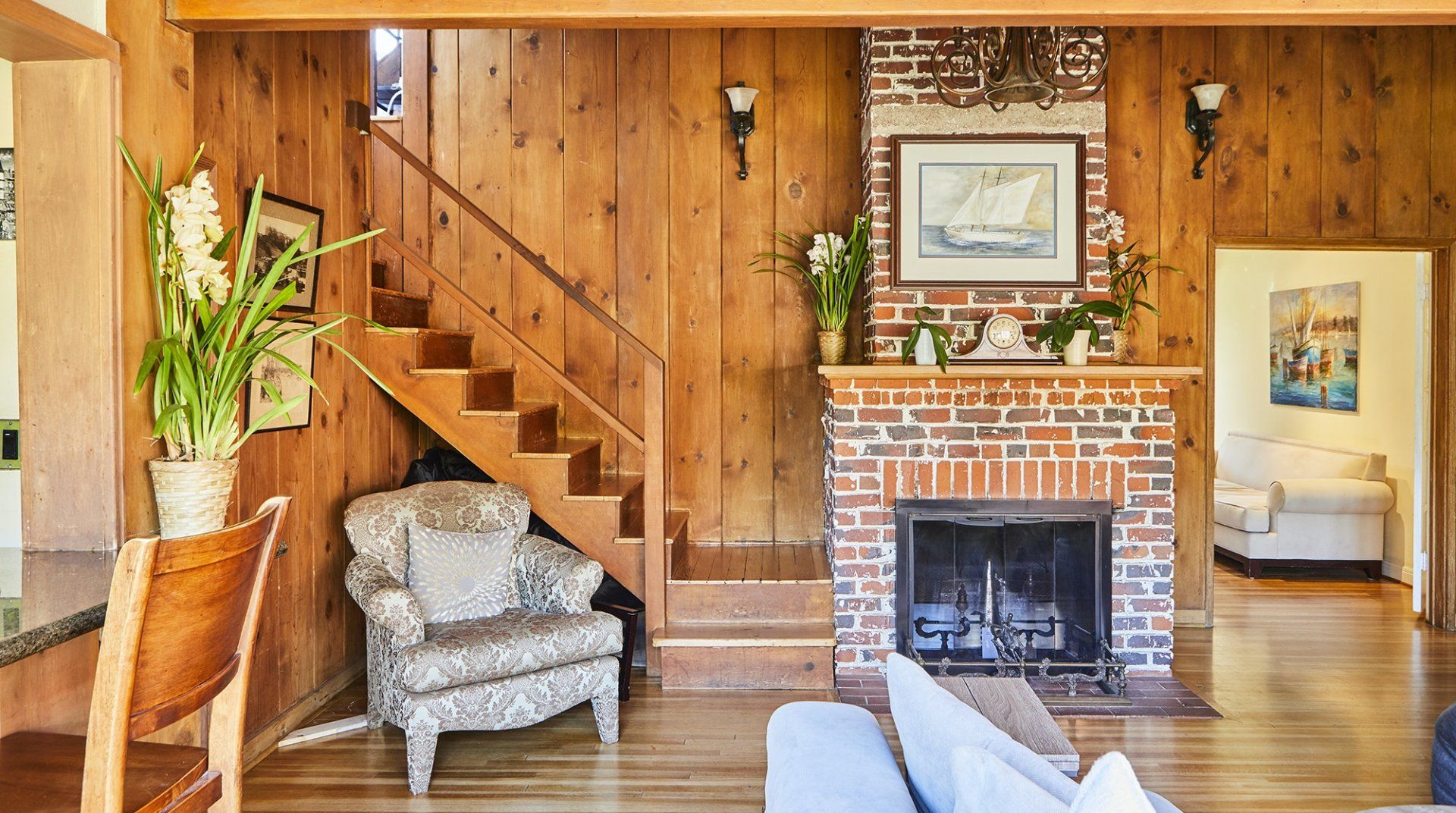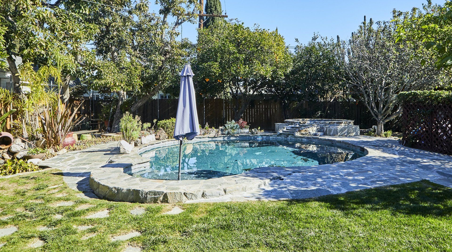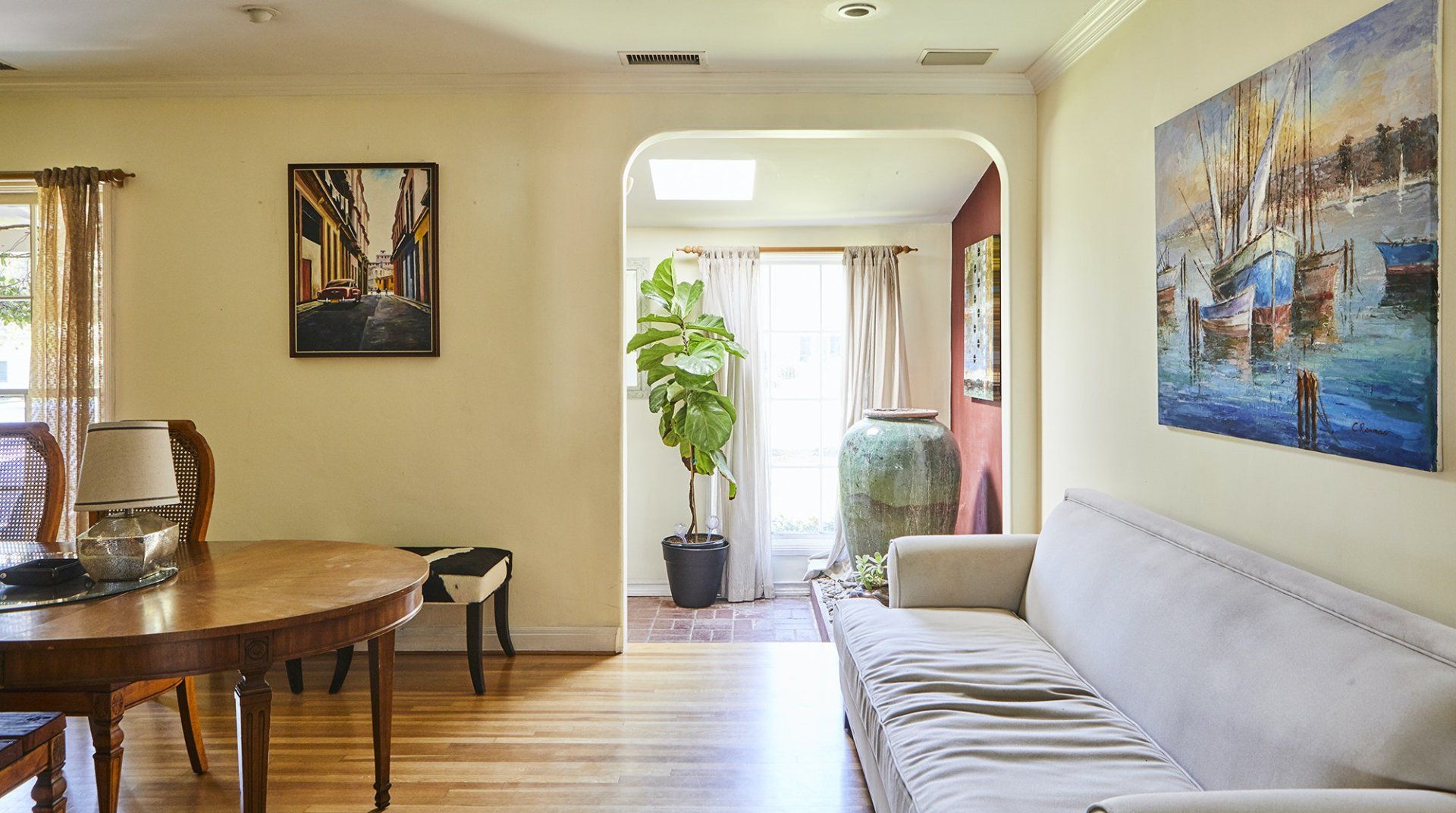 This traditional farmhouse brings an entirely new meaning to farm-to-table living. Roll out of bed and take a stroll in your backyard with the provided fruit pickers and grab whatever's in season – lemons, grapefruit, avocados, oranges, apples, figs, grapes, guavas or pineapples! Once you whip up a fresh breakfast with your bounty, you'll be tempted to lounge by the pool and Jacuzzi all afternoon. Surrounded by three ponds, aloe plants, roses and camellias, this garden feels like a lush hideaway – perfect for hammock lounging or lazy lunches on the shaded patio set. Inside the home, you’ll find the interiors match the traditional farmhouse exterior, designed by noted Los Angeles architect Robert Byrd. Byrd was a master of indoor/outdoor living and this home blends each lovely space together quite nicely. You’ll even notice his signature touch – embedding birdhouses into the structure – with a glance to the windows above the second story. We love the cedar wood that’s used throughout, giving the home warm honey hues and a cosy feel. Lounge in the living area in front of the brick fireplace, or retire to bright bedrooms that look out on the garden’s happy trees. You’ll be located right around the block from Valley Village, while Hollywood is just a fourteen-minute drive away. The boutique shops and excellent restaurants of Studio City are just a ten-minute drive away, and so is Universal Studios, should you fancy a visit to the amusement park during your stay.