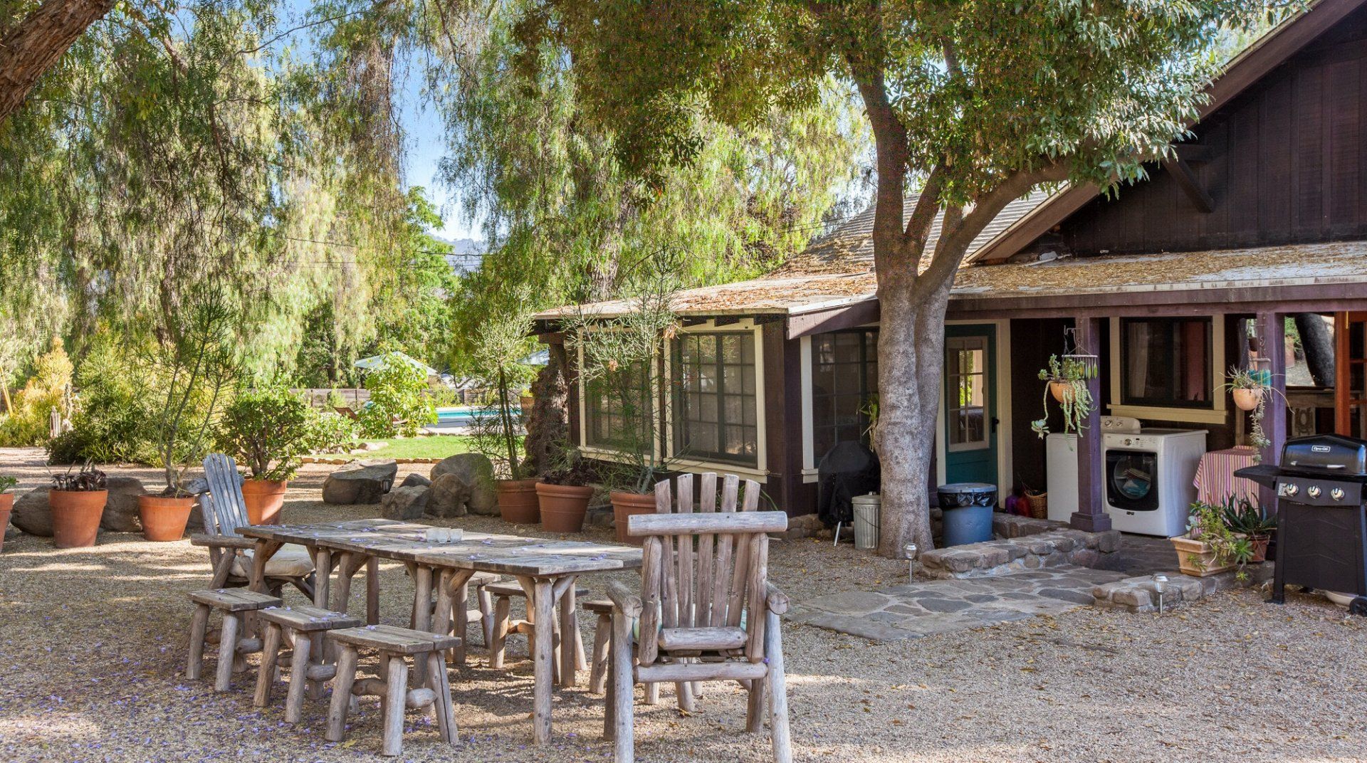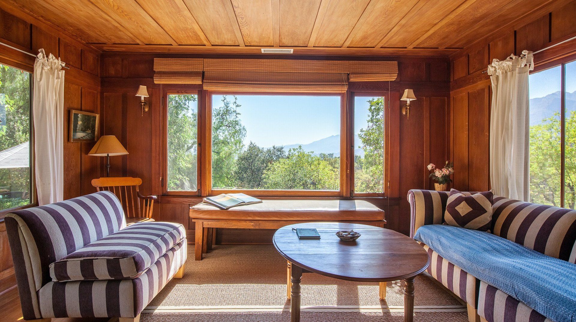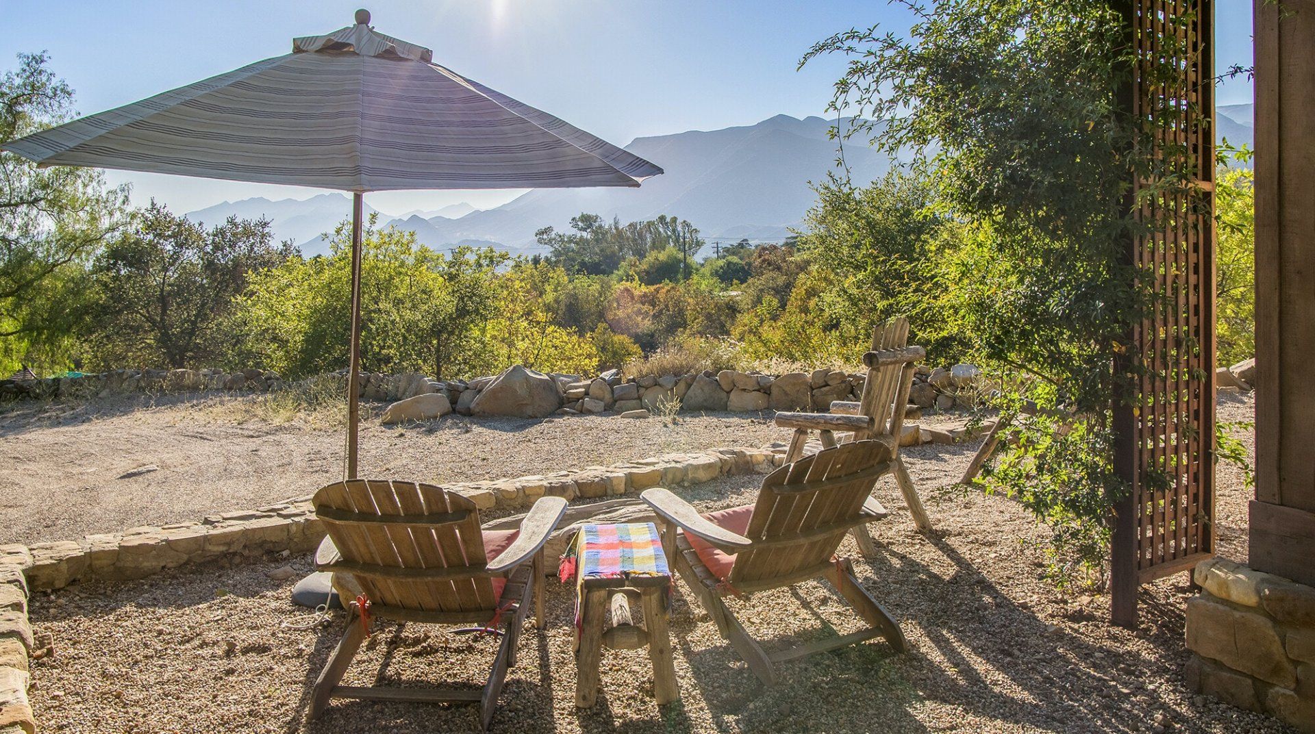 Built in 1928, this quirky bungalow is filled with bijou charm and plenty of character. Located down a winding narrow lane in the East End neighbourhood of Ojai — a six-minute drive to the town centre — its major selling point is the aura of absolute peace and serenity. The surrounding landscape is dominated by the dramatic mountains and the hosts have planted a gorgeous array of leafy vegetation in the garden, including fruit and pepper trees. Inside, it’s cottagecore with a Californian twist. A few of our favourite features include the all-encompassing wood panelling of the living room and master bedroom, the vintage dressers in the kitchen and the colourful woven bedspreads. For extra boho vibes, a former artist’s studio flooded with natural light has been converted into an additional bedroom. Spend all afternoon around the pool before lighting up the barbecue and having dinner under a pink sunset.