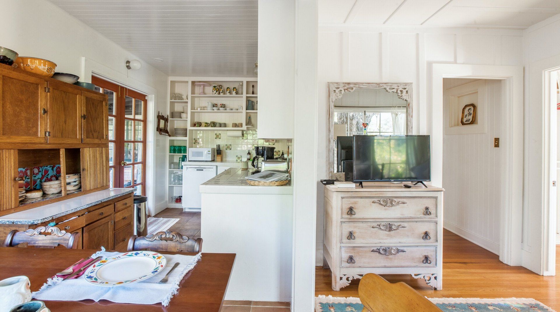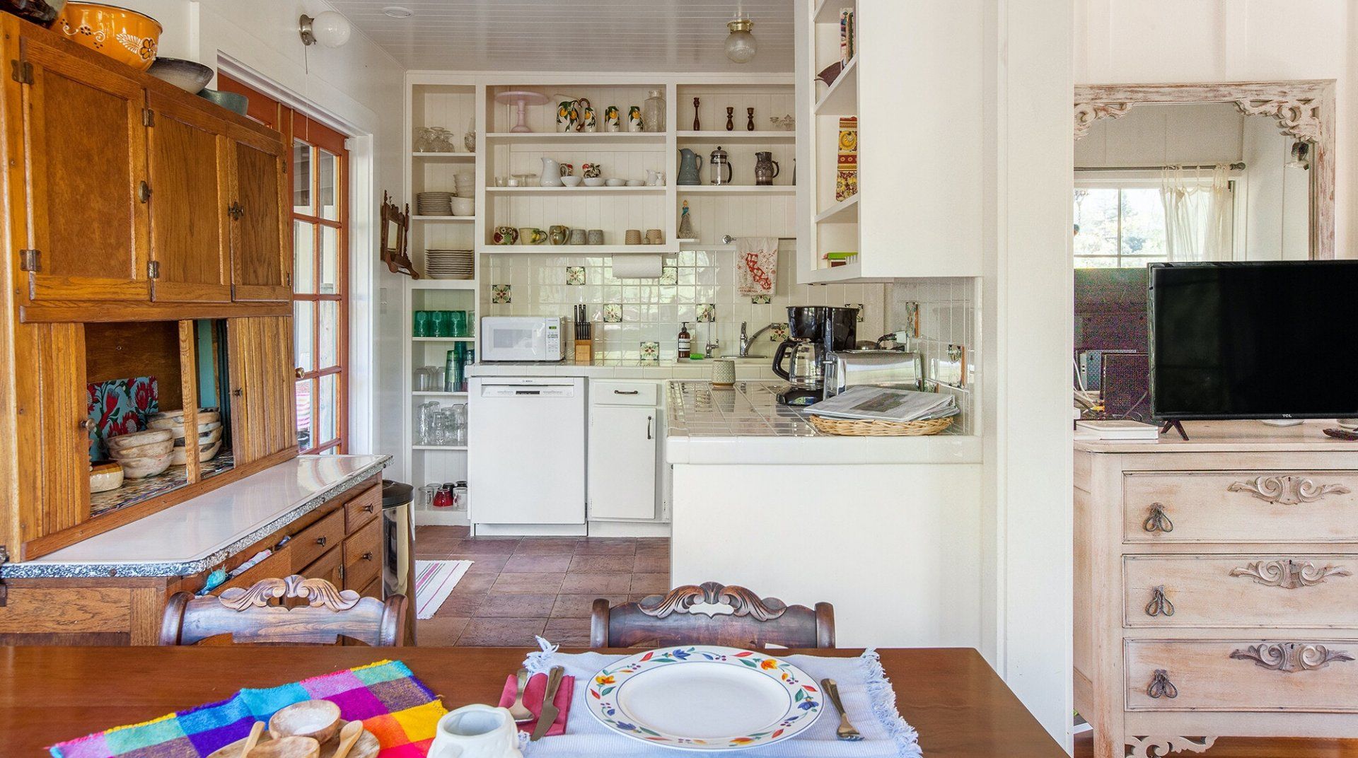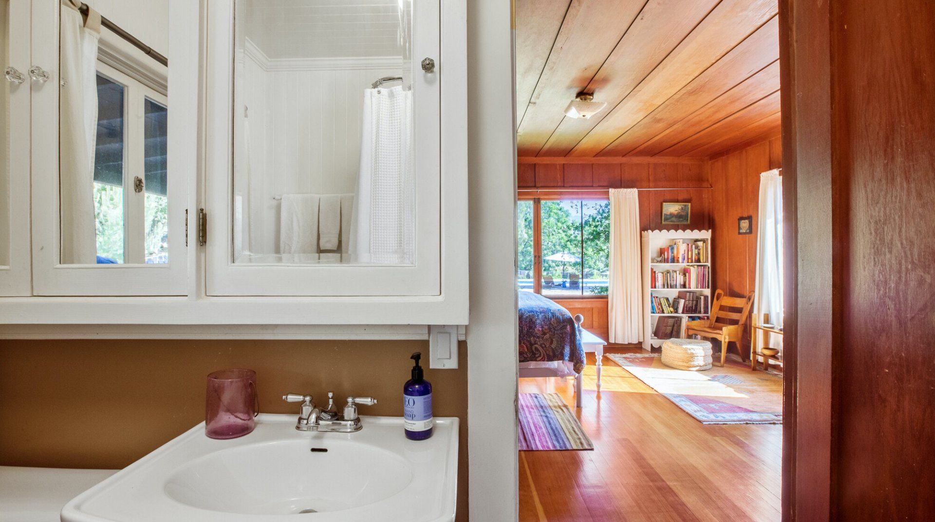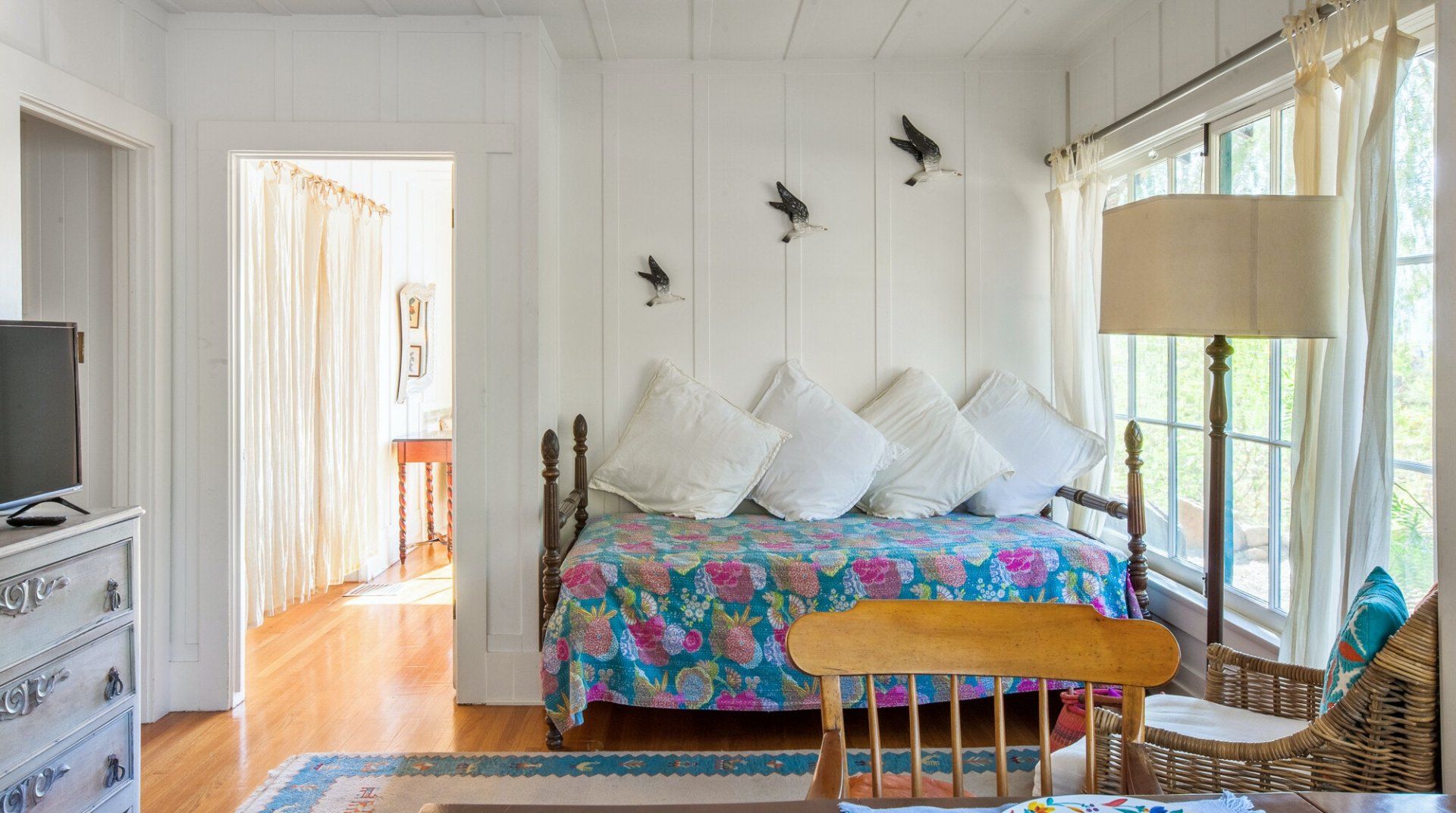 Built in 1928, this quirky bungalow is filled with bijou charm and plenty of character. Located down a winding narrow lane in the East End neighbourhood of Ojai — a six-minute drive to the town centre — its major selling point is the aura of absolute peace and serenity. The surrounding landscape is dominated by the dramatic mountains and the hosts have planted a gorgeous array of leafy vegetation in the garden, including fruit and pepper trees. Inside, it’s cottagecore with a Californian twist. A few of our favourite features include the all-encompassing wood panelling of the living room and master bedroom, the vintage dressers in the kitchen and the colourful woven bedspreads. For extra boho vibes, a former artist’s studio flooded with natural light has been converted into an additional bedroom. Spend all afternoon around the pool before lighting up the barbecue and having dinner under a pink sunset.