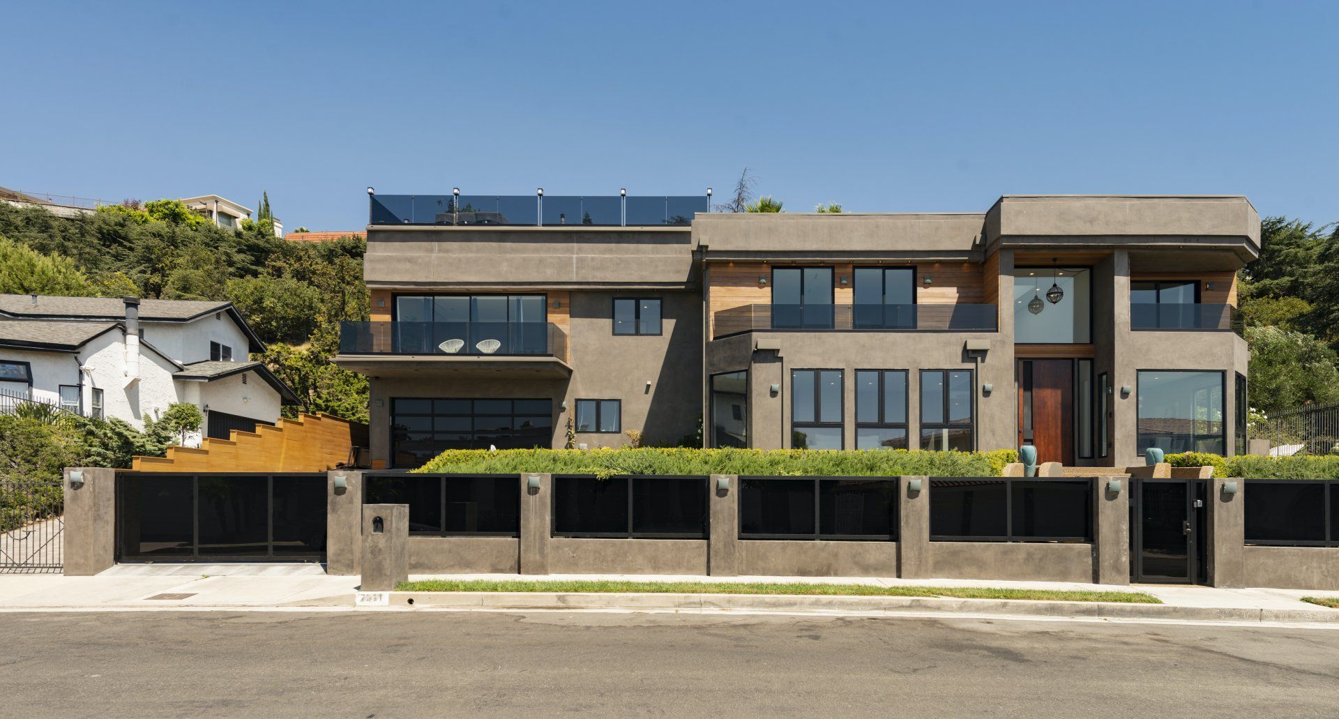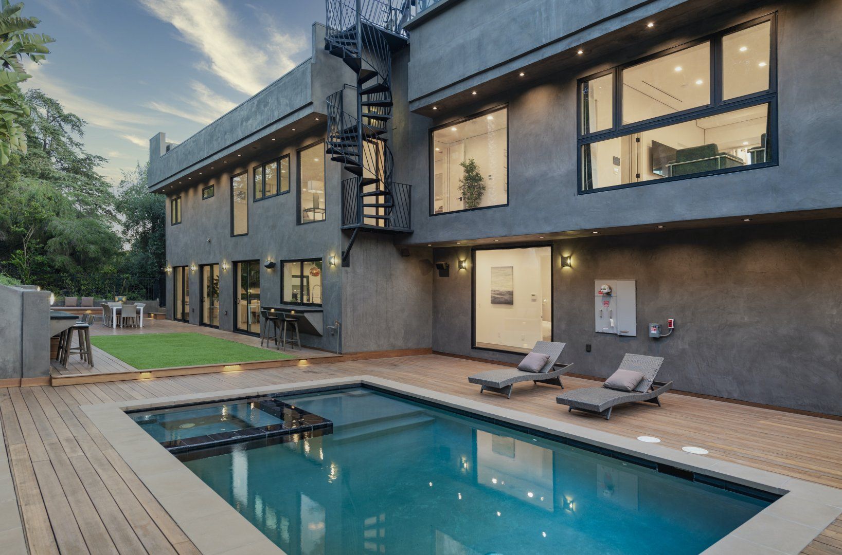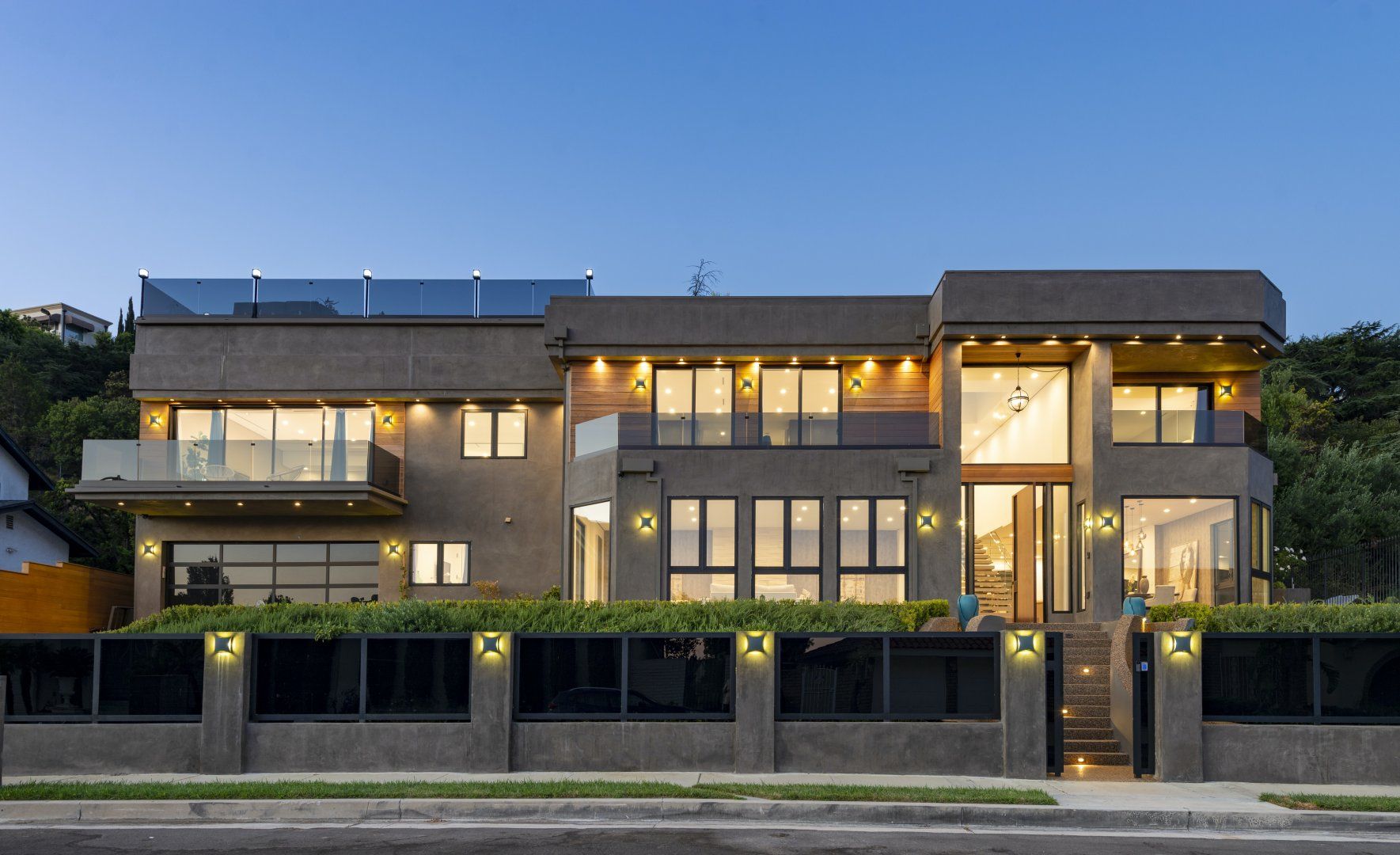 The ultimate luxury home in the hills, this striking, contemporary masterpiece sits in a most desirable area, near Mount Olympus. With a moody, dark exterior and a bright, spacious interior, it's a real statement home with impressive views across the city – especially at night.