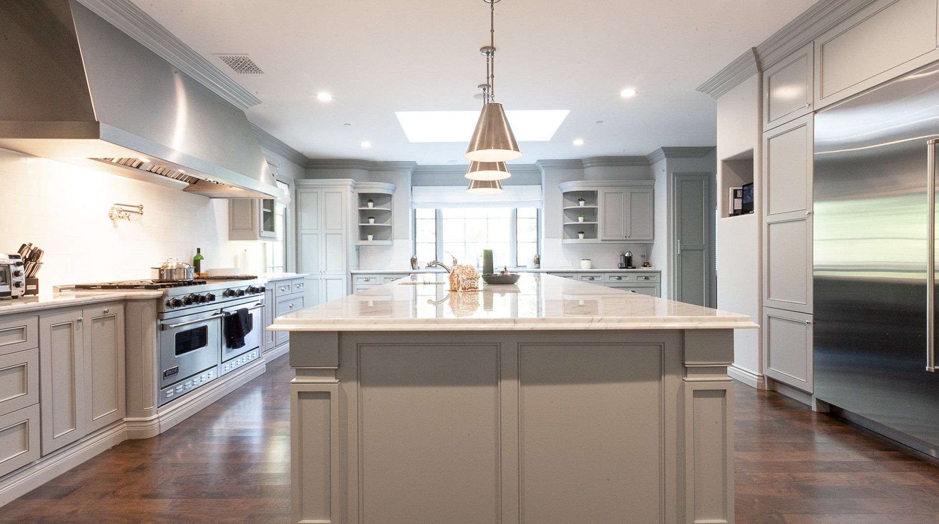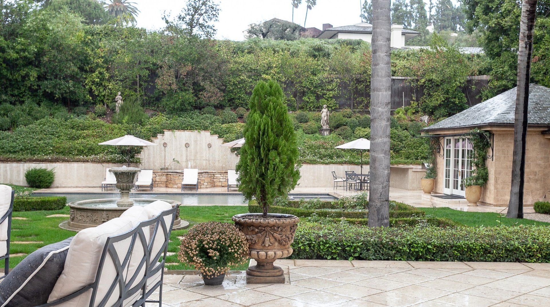 An exquisite Beverly Hills home built in a French chateau-style – this is a mansion in the truest sense of the word. Fans of restraint might feel a bit out of place, but this is hard to beat if grandeur is your thing. Large double doors open to a Juliet balcony overlooking the sunlit grounds, the inviting pool and separate guesthouse. This exquisite home features every amenity imaginable at your fingertips, including a handcrafted wood-panelled library, spectacular hardwood and marble floors, home cinema, billiards room, gym, and even a wine cellar with an adjacent tasting room. So whether you're seeking solace or entertaining on the grandest Gatsby-esque scale, this is the place for you. Located in an illustrious neighbourhood, North Alpine isn't known as celebrity and billionaires' row for nothing. It's that incredibly rare combination of a north of Sunset cul-de-sac location with total privacy, minimal traffic, and huge homes.