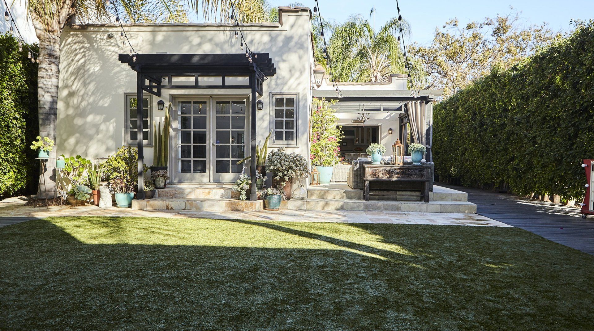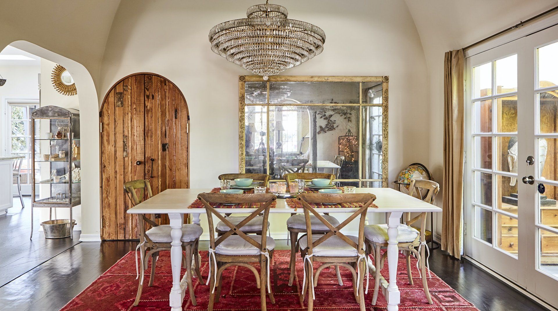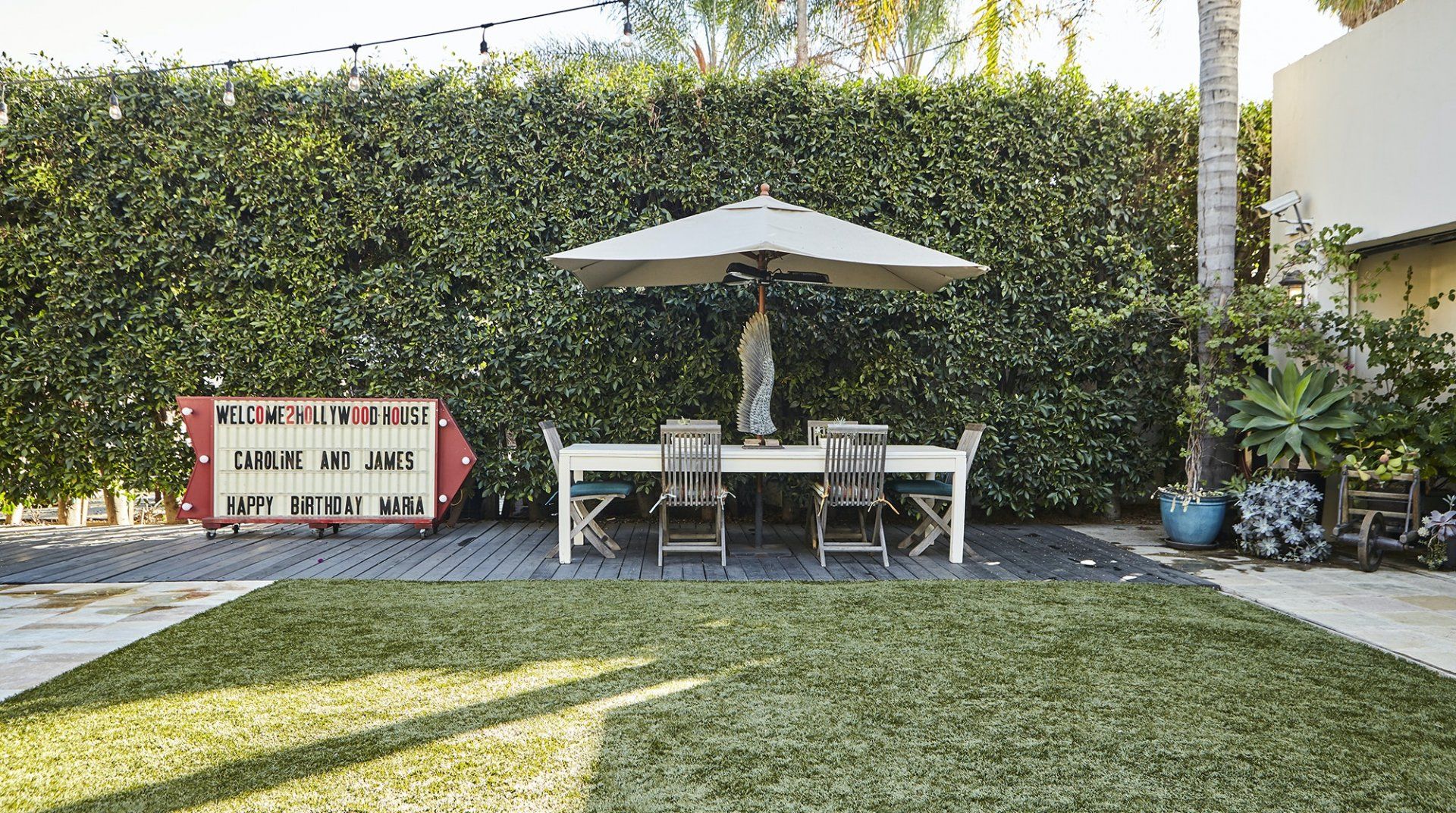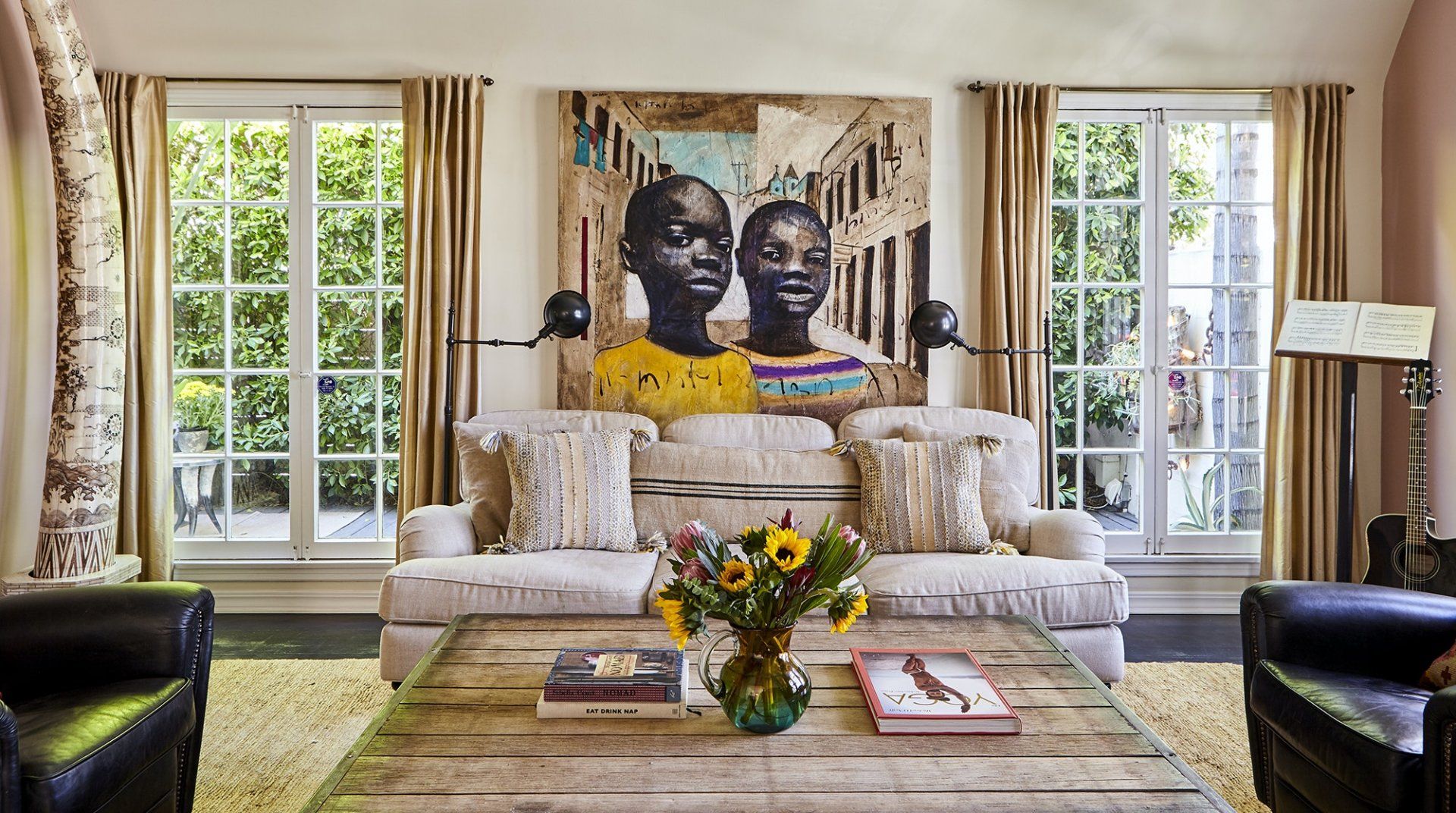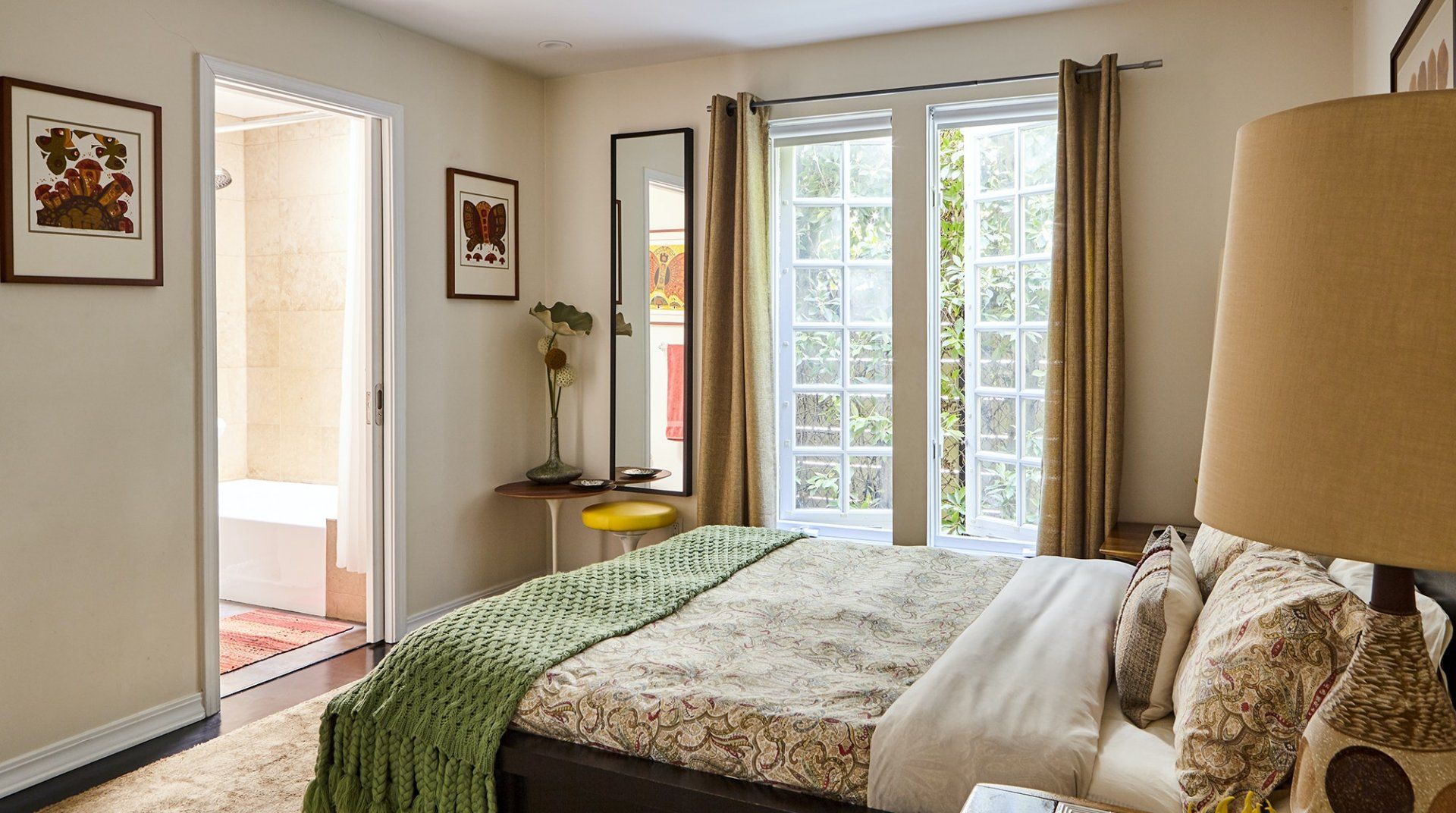 Flawlessly styled, this home is filled to the brim with treasures, art and furniture from around the world. Dine under the enormous sparkling chandelier, admire antique mirrors and lounge next to two enormous tusks in the living area – the furniture here is as unique as it is impressive. We especially love this home’s use of outdoor space – part of the back garden feels like an outdoor bar with its plush furniture set up, while the rest of the garden features a table for dining alfresco and a green lawn with overhead fairy lights, so you’re sure to make good use of the year-round sunny weather. Plus, you’ll be just a six-minute walk to the dining and shopping scene of Melrose Ave. Or, hop in the car for five minutes to explore Hollywood Blvd and fifteen minutes to wander the palm tree-lined streets of Beverly Hills.
