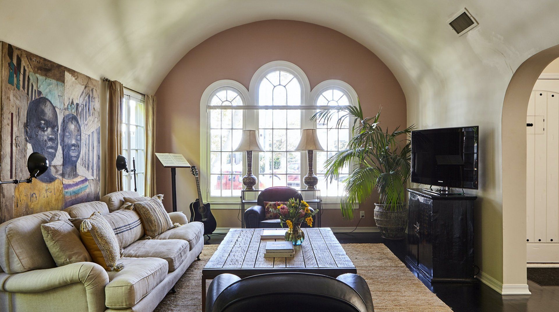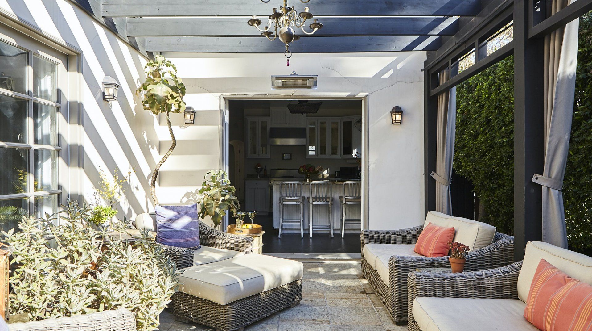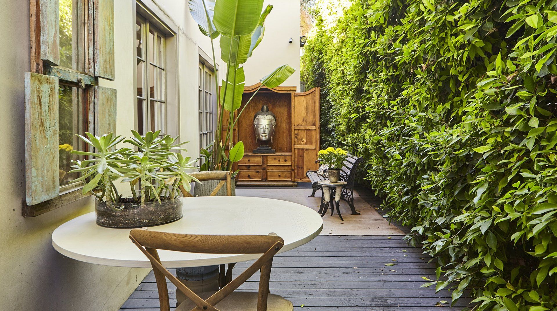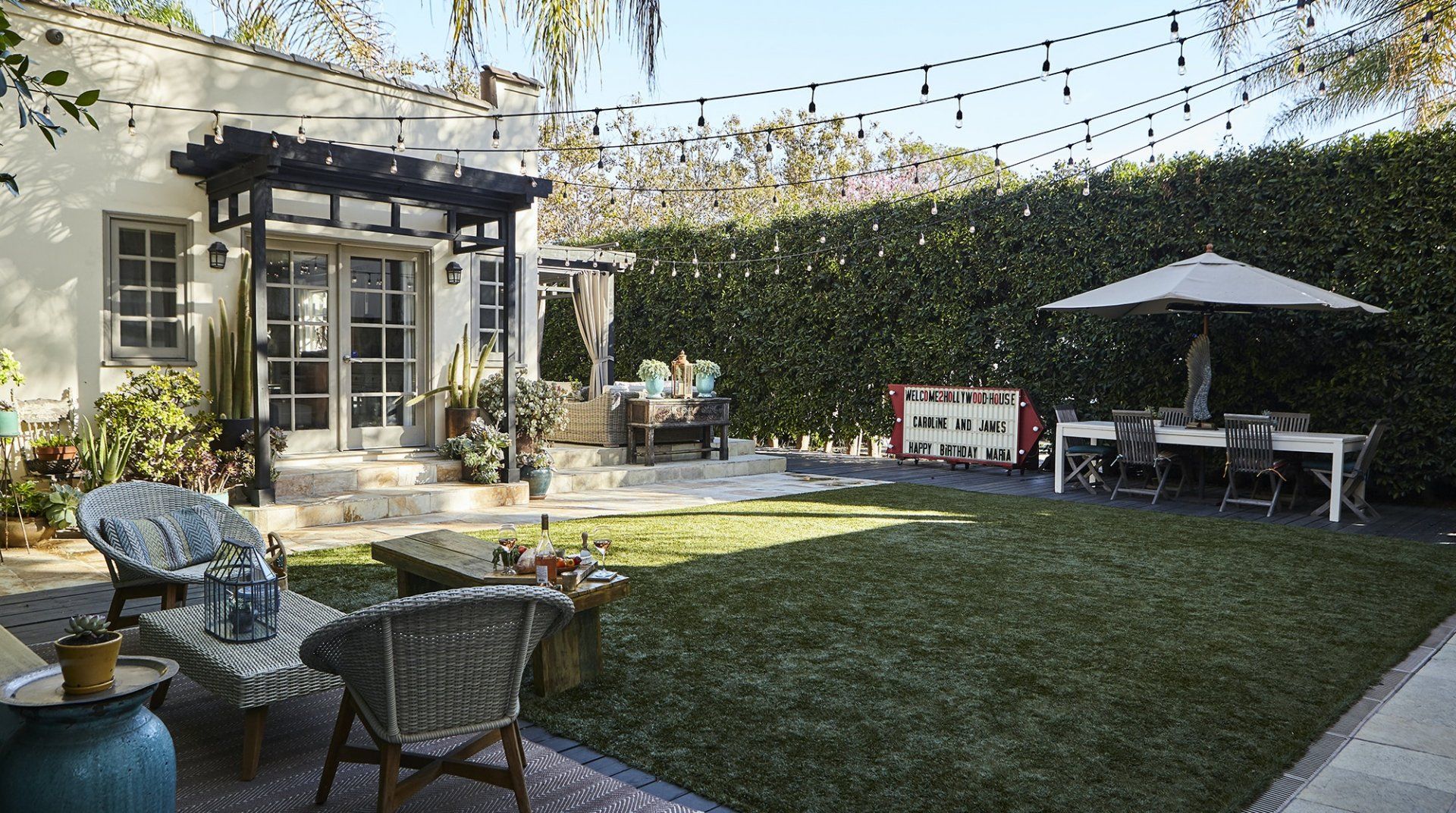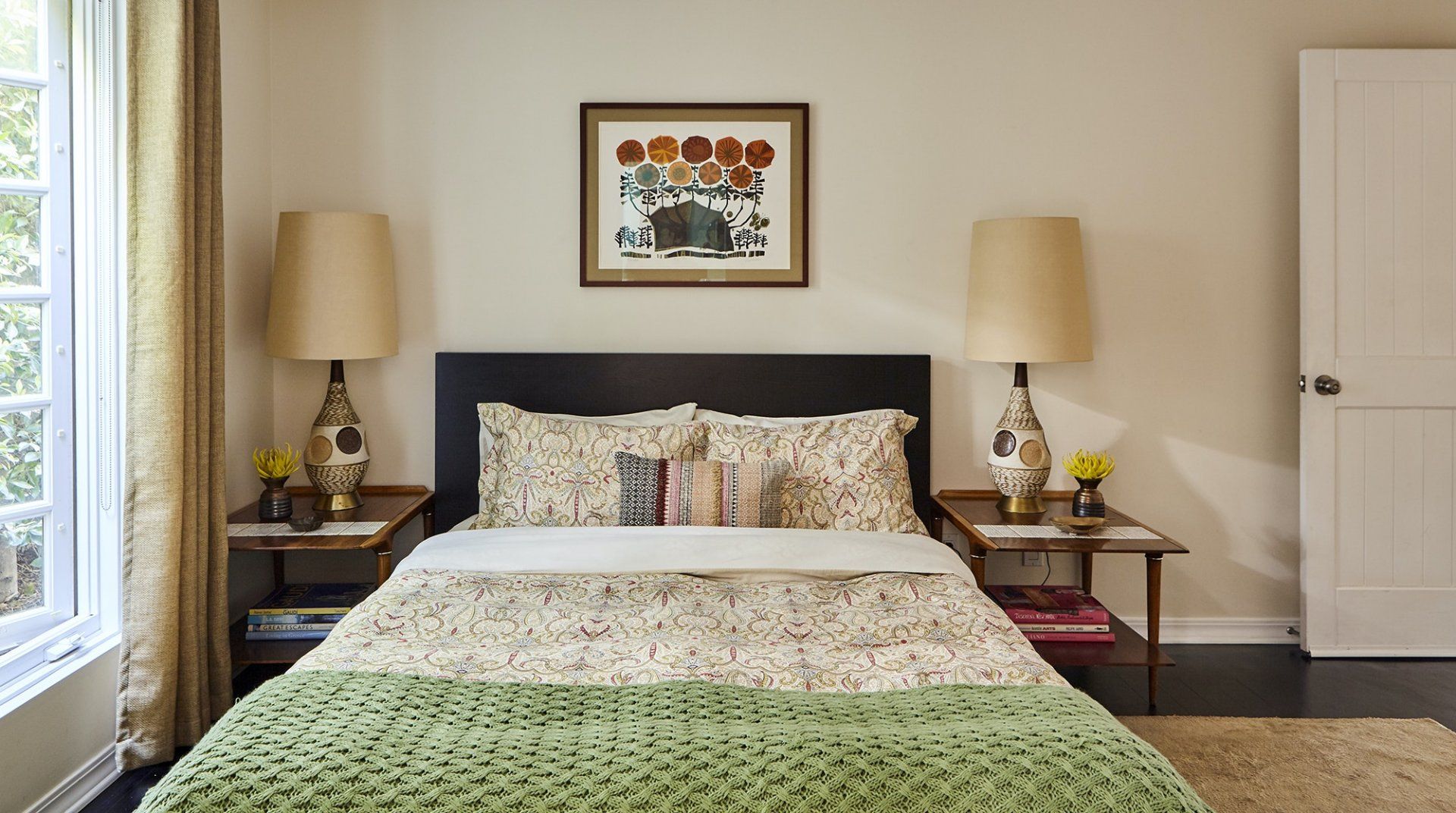 Flawlessly styled, this home is filled to the brim with treasures, art and furniture from around the world. Dine under the enormous sparkling chandelier, admire antique mirrors and lounge next to two enormous tusks in the living area – the furniture here is as unique as it is impressive. We especially love this home’s use of outdoor space – part of the back garden feels like an outdoor bar with its plush furniture set up, while the rest of the garden features a table for dining alfresco and a green lawn with overhead fairy lights, so you’re sure to make good use of the year-round sunny weather. Plus, you’ll be just a six-minute walk to the dining and shopping scene of Melrose Ave. Or, hop in the car for five minutes to explore Hollywood Blvd and fifteen minutes to wander the palm tree-lined streets of Beverly Hills.