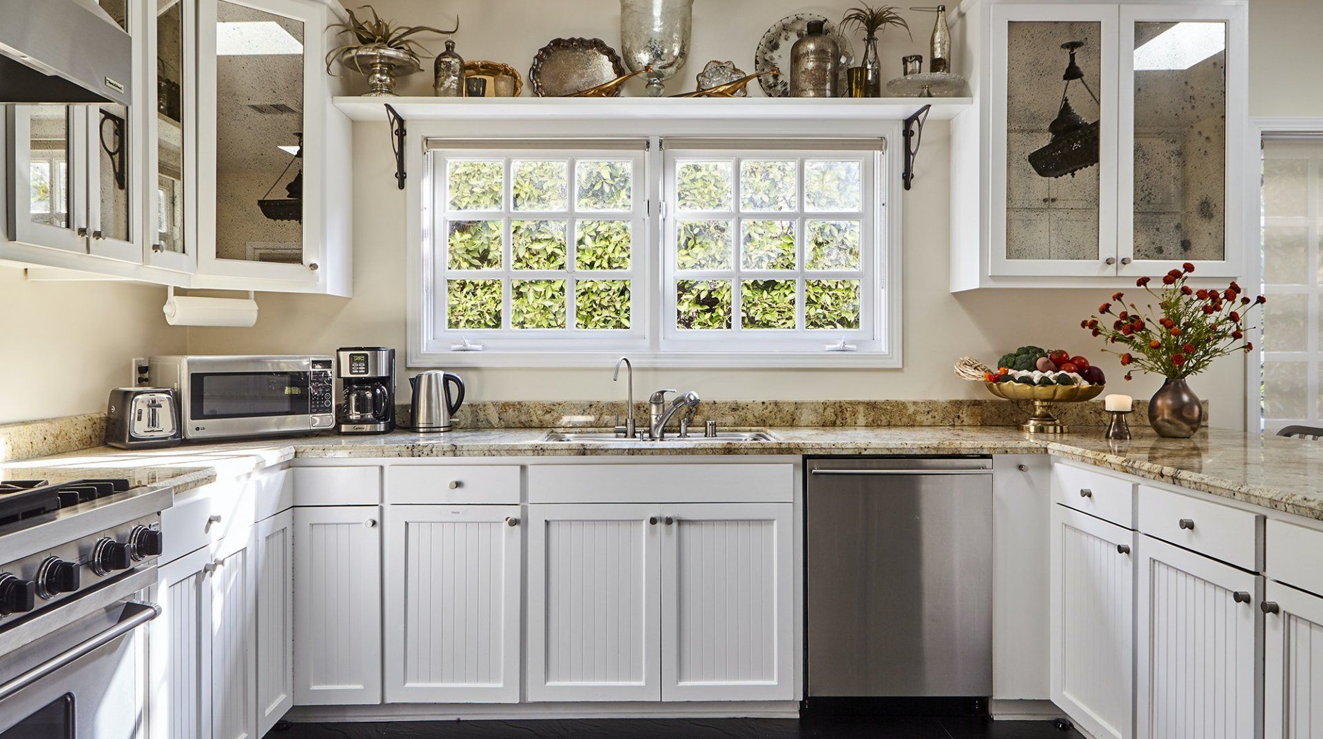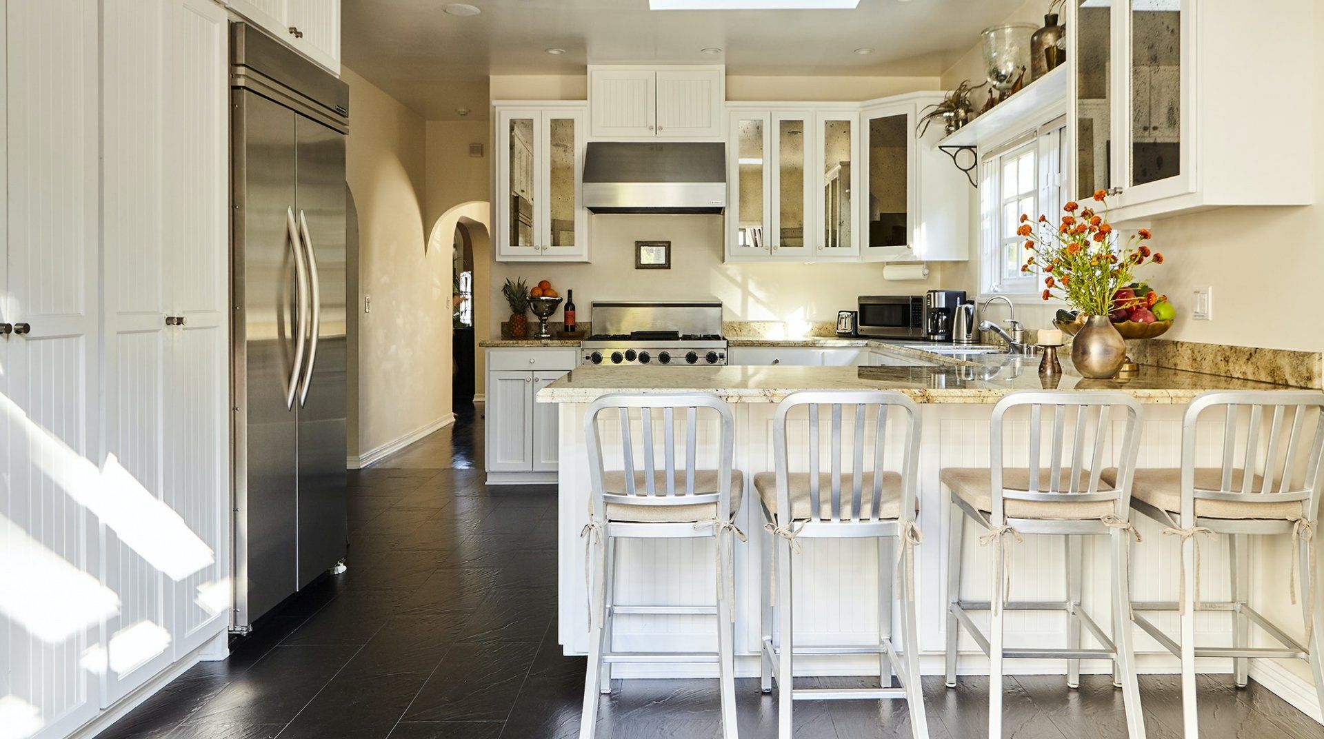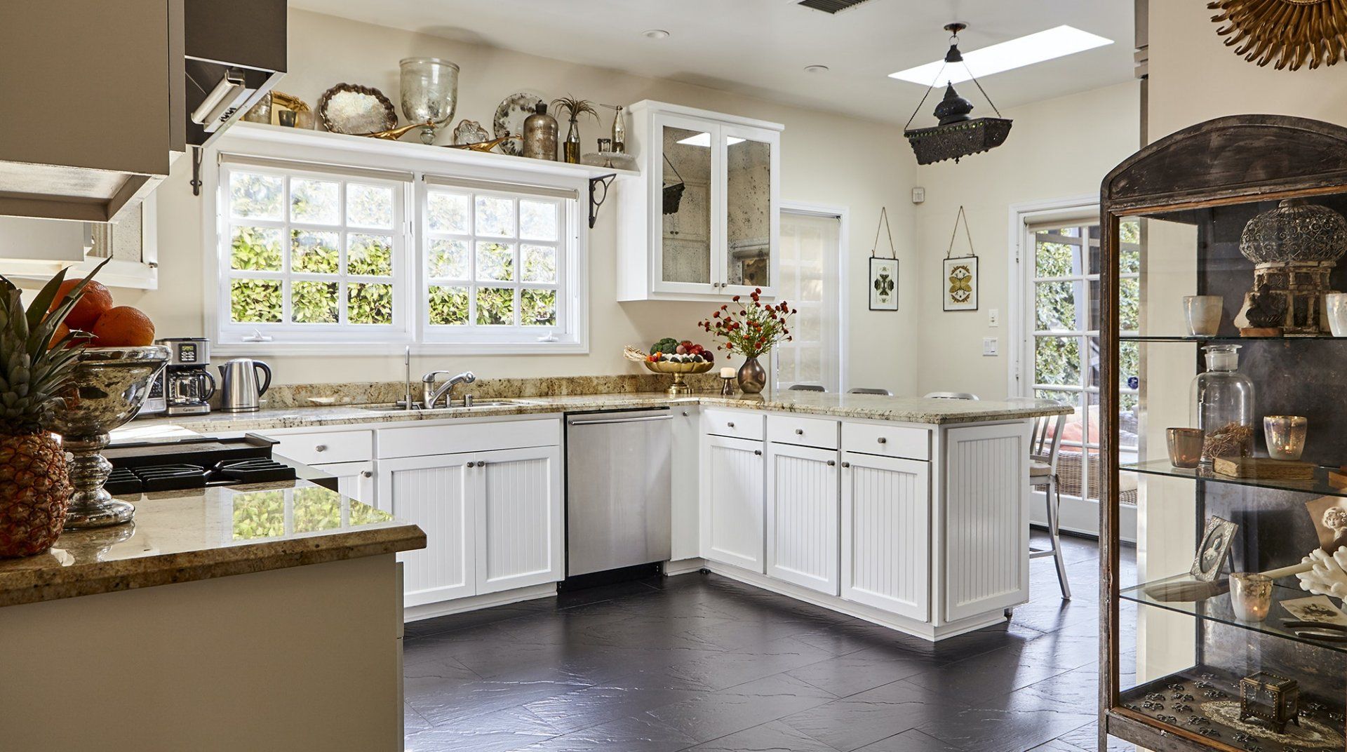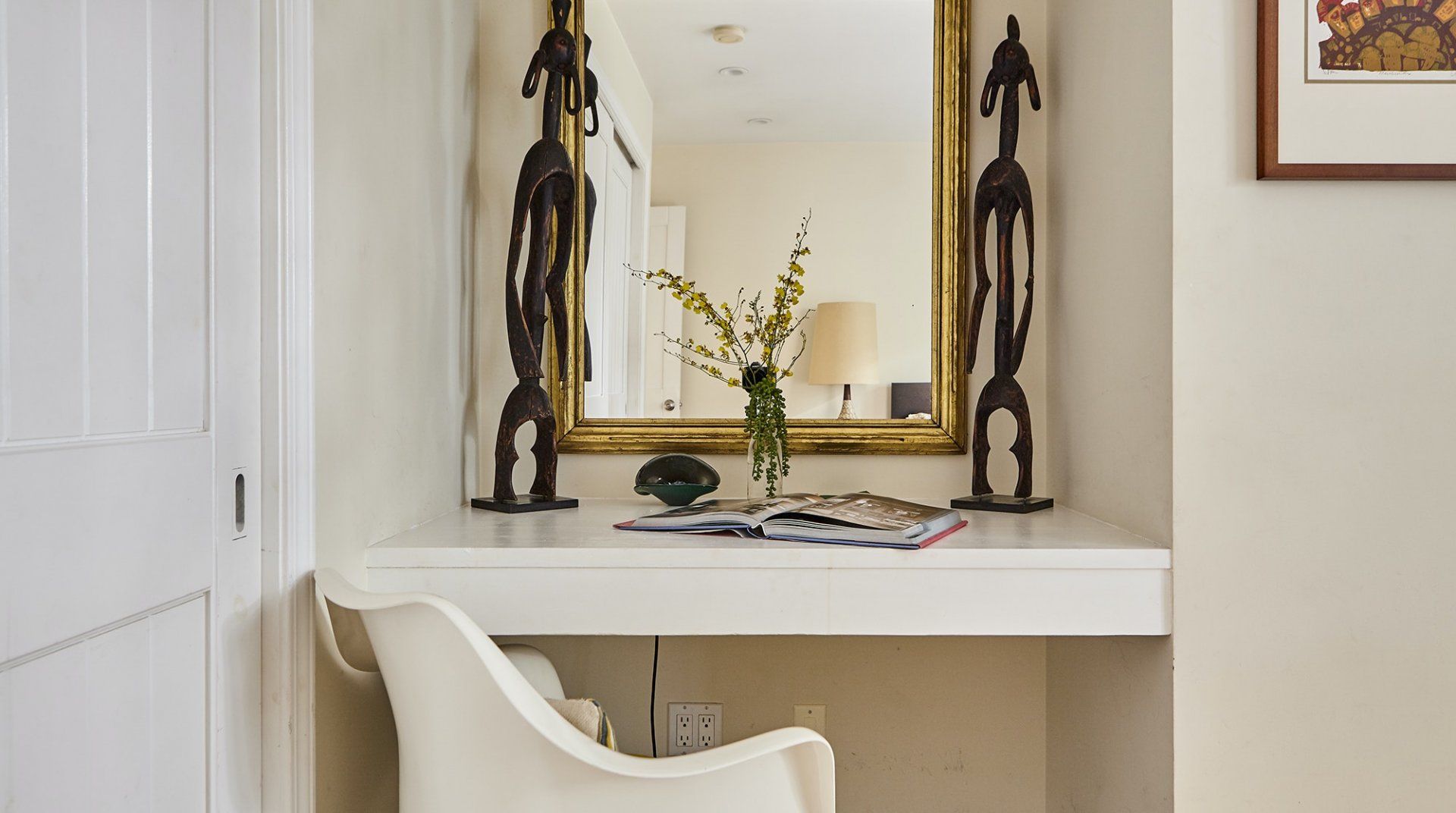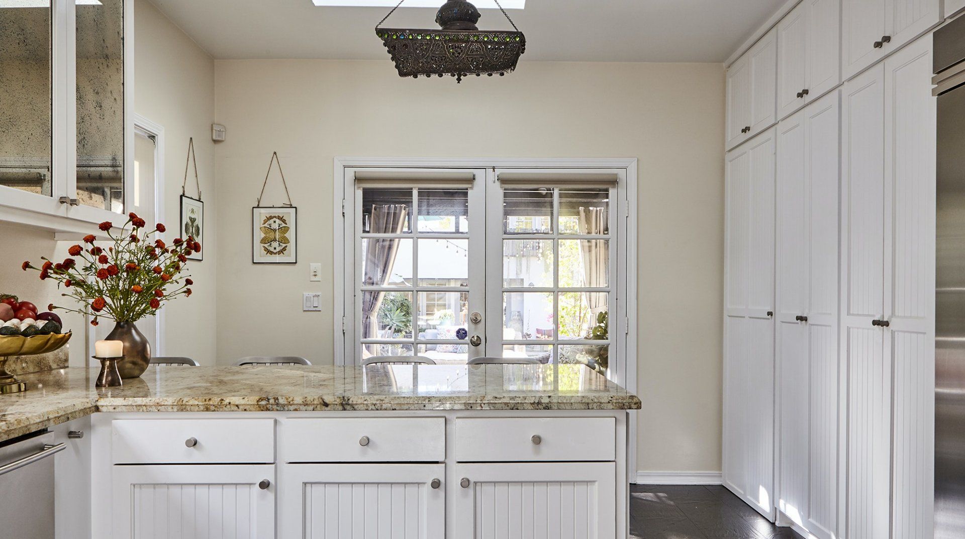 Flawlessly styled, this home is filled to the brim with treasures, art and furniture from around the world. Dine under the enormous sparkling chandelier, admire antique mirrors and lounge next to two enormous tusks in the living area – the furniture here is as unique as it is impressive. We especially love this home’s use of outdoor space – part of the back garden feels like an outdoor bar with its plush furniture set up, while the rest of the garden features a table for dining alfresco and a green lawn with overhead fairy lights, so you’re sure to make good use of the year-round sunny weather. Plus, you’ll be just a six-minute walk to the dining and shopping scene of Melrose Ave. Or, hop in the car for five minutes to explore Hollywood Blvd and fifteen minutes to wander the palm tree-lined streets of Beverly Hills.