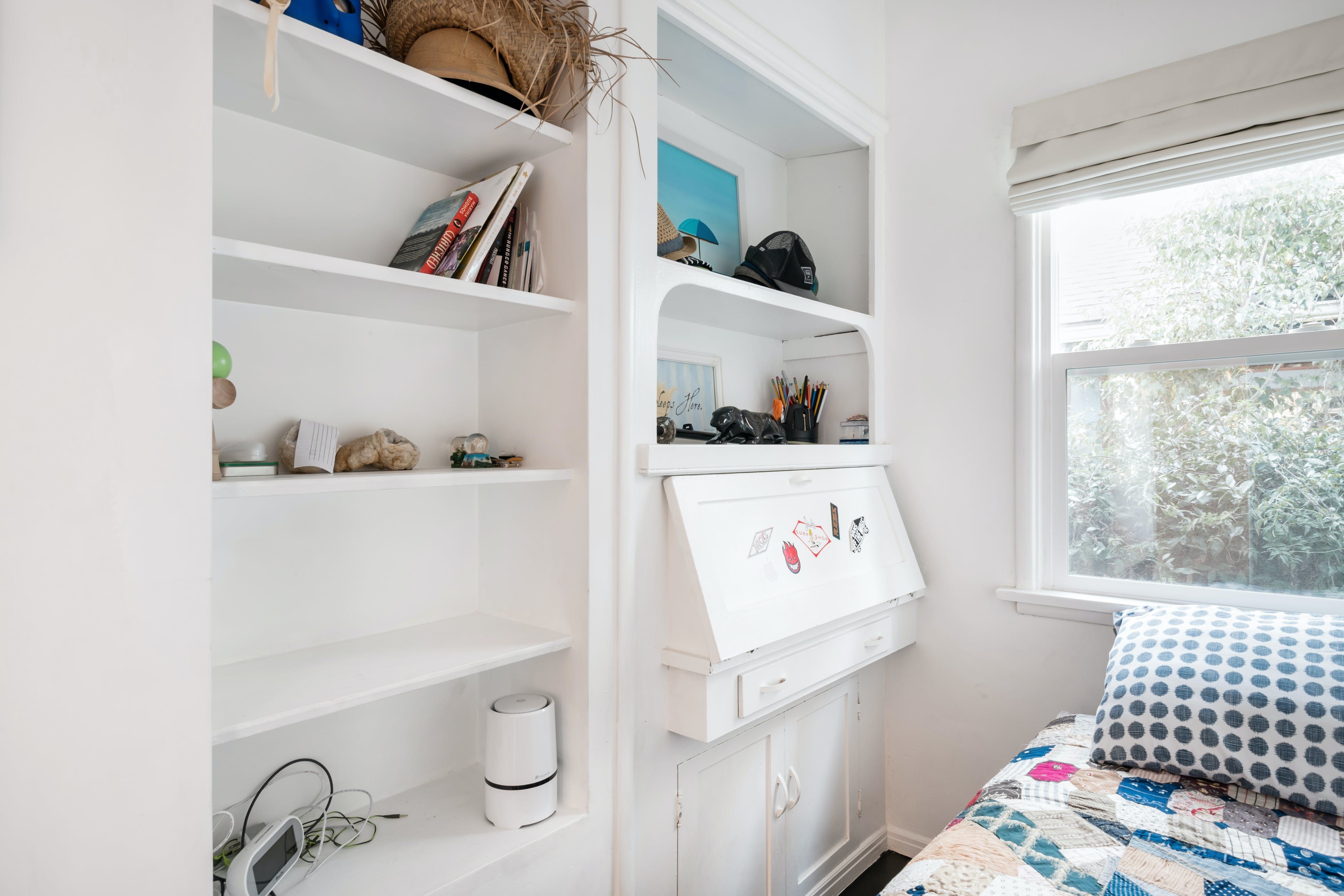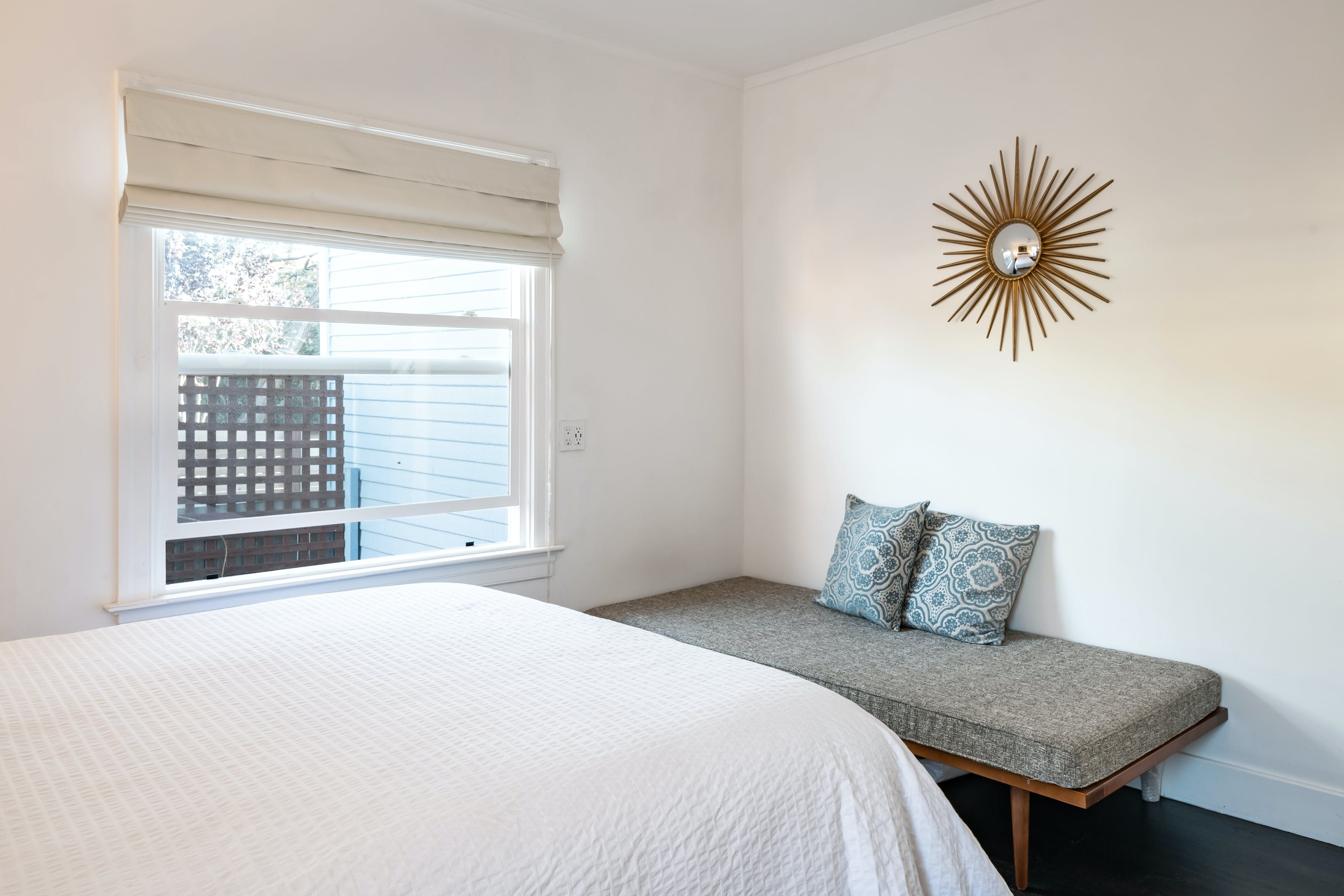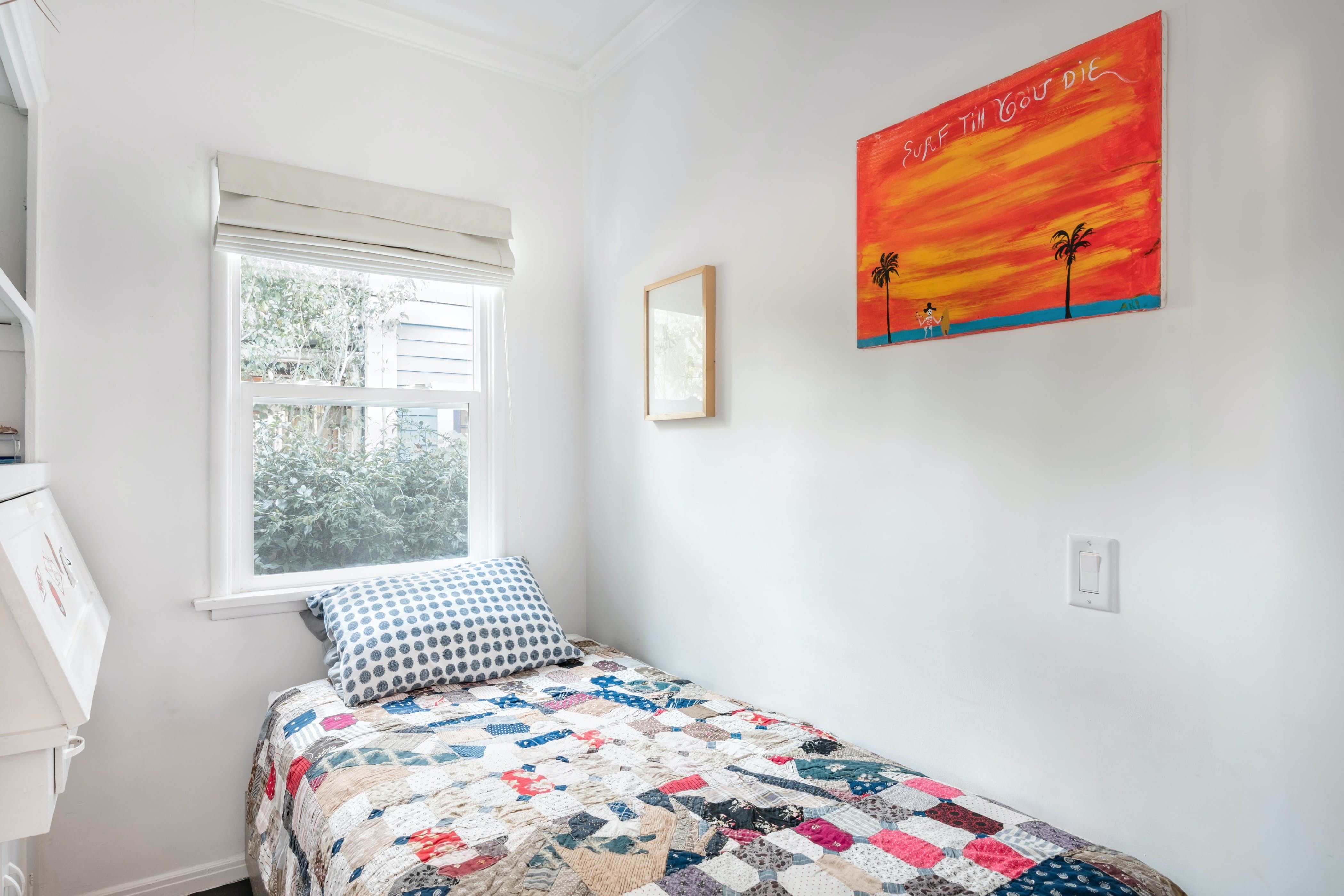 *At full occupancy, one guest will be sleeping on the day bed in the living room. The third bedroom is particularly small, so there's no storage in here.