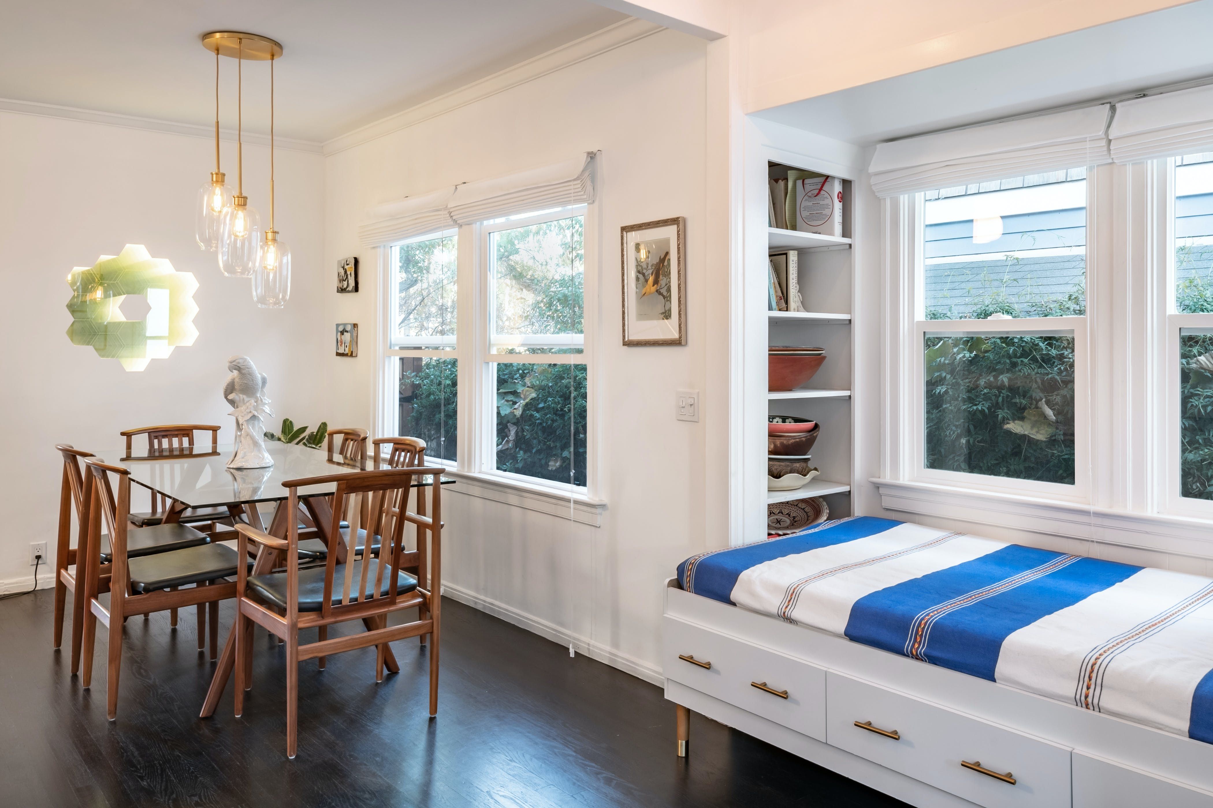 This home is just two blocks from Abbott Kinney and six from Venice Beach – how’s that for location? From here, you can enjoy Venice Beach’s famed restaurants, boutiques and golden sands within moments of leaving your front door. This mid-century-style bungalow has everything you’d wish from a Venice retreat – a private garden, a grill, an outdoor lounge and a bright boho interior to unwind in. The third bedroom may be a little tight and the day bed is in a communal space, but they’re great options if you’re visiting with little ones. And while there’s free street parking, keep street cleaning in mind.