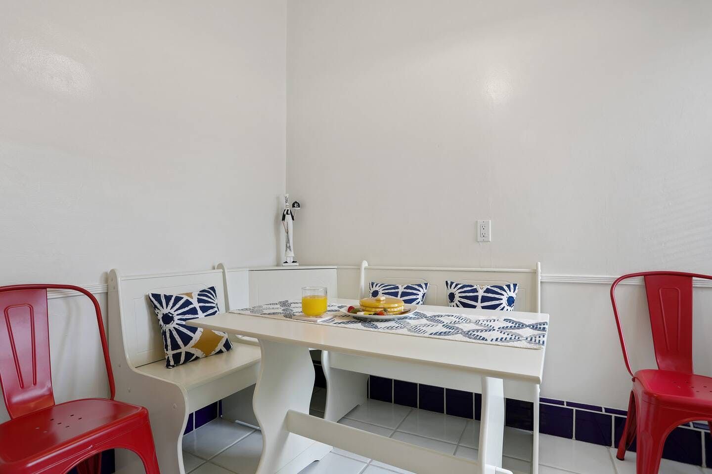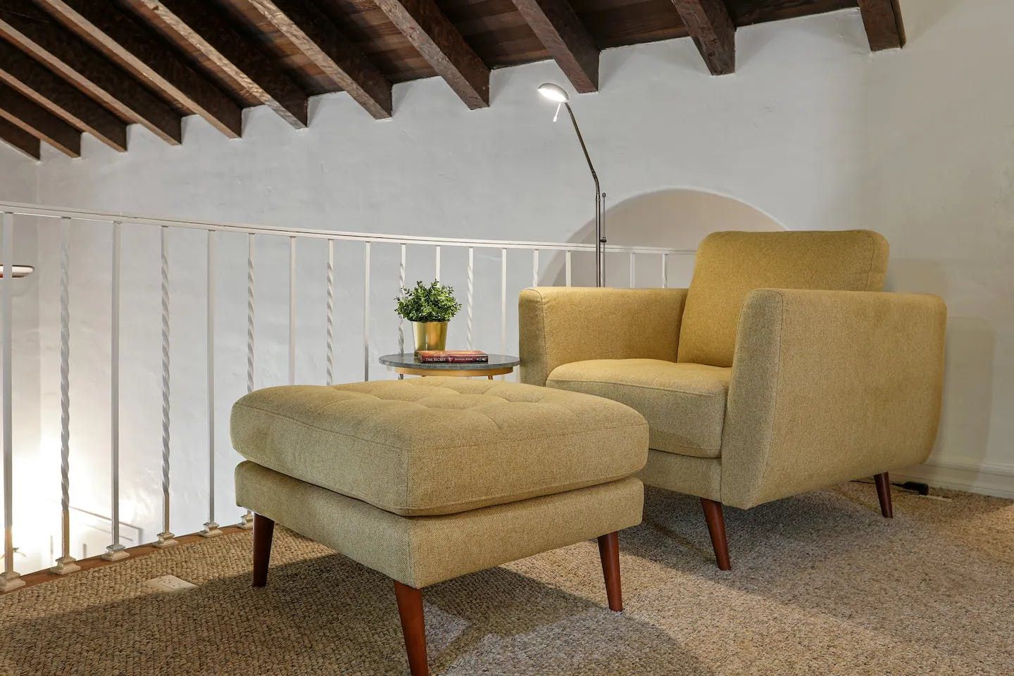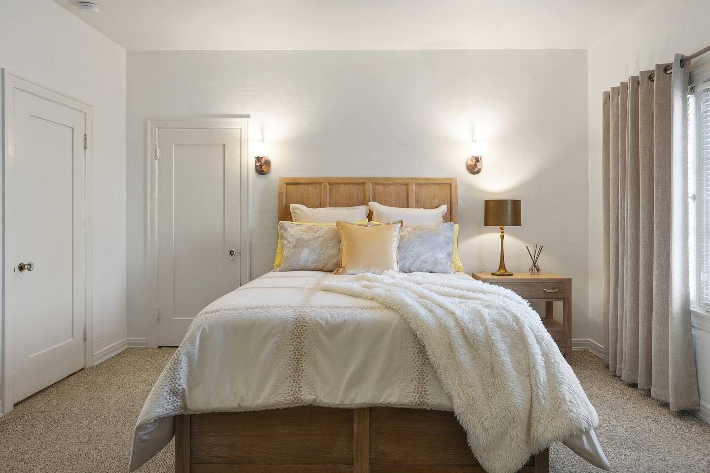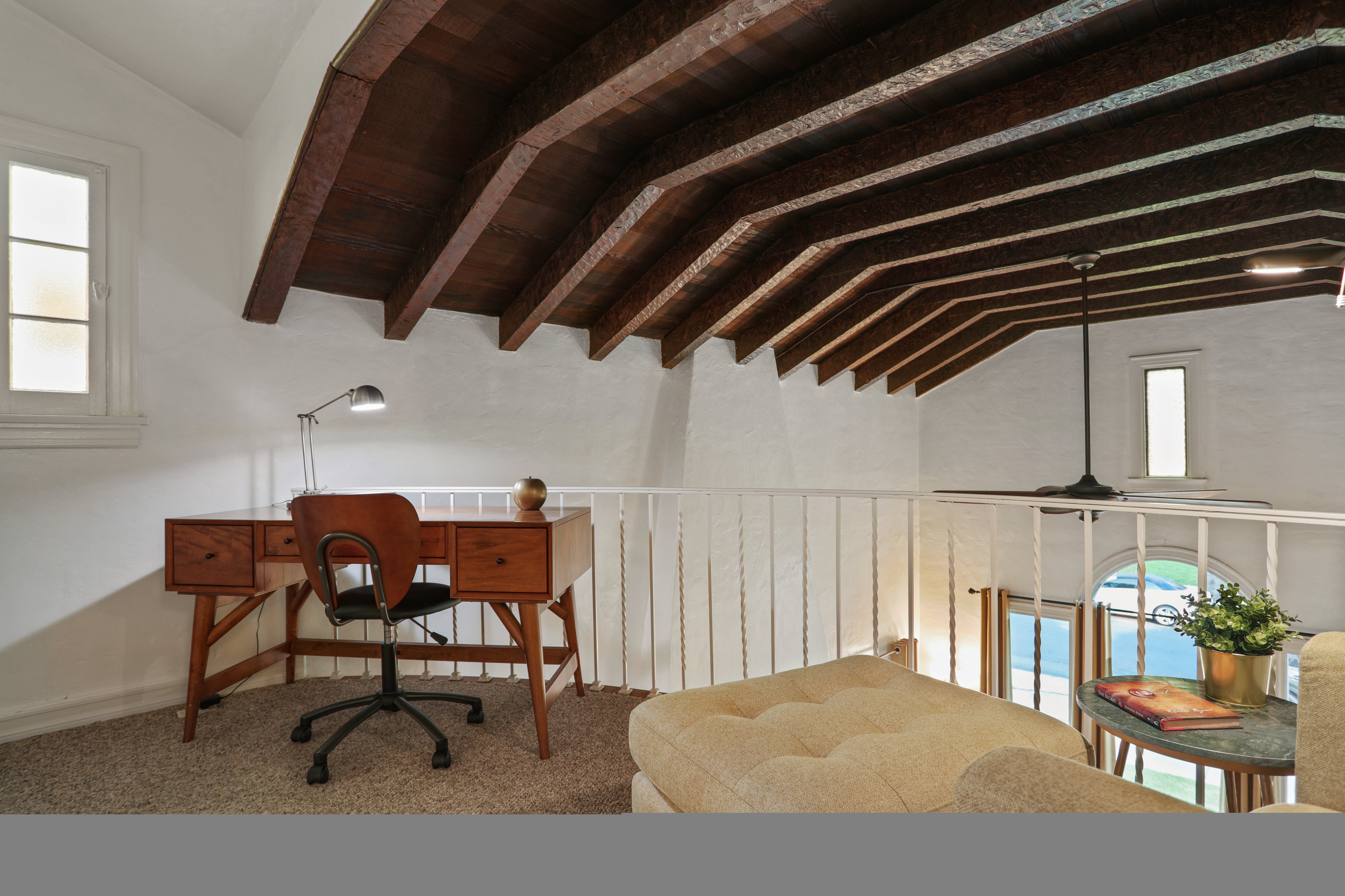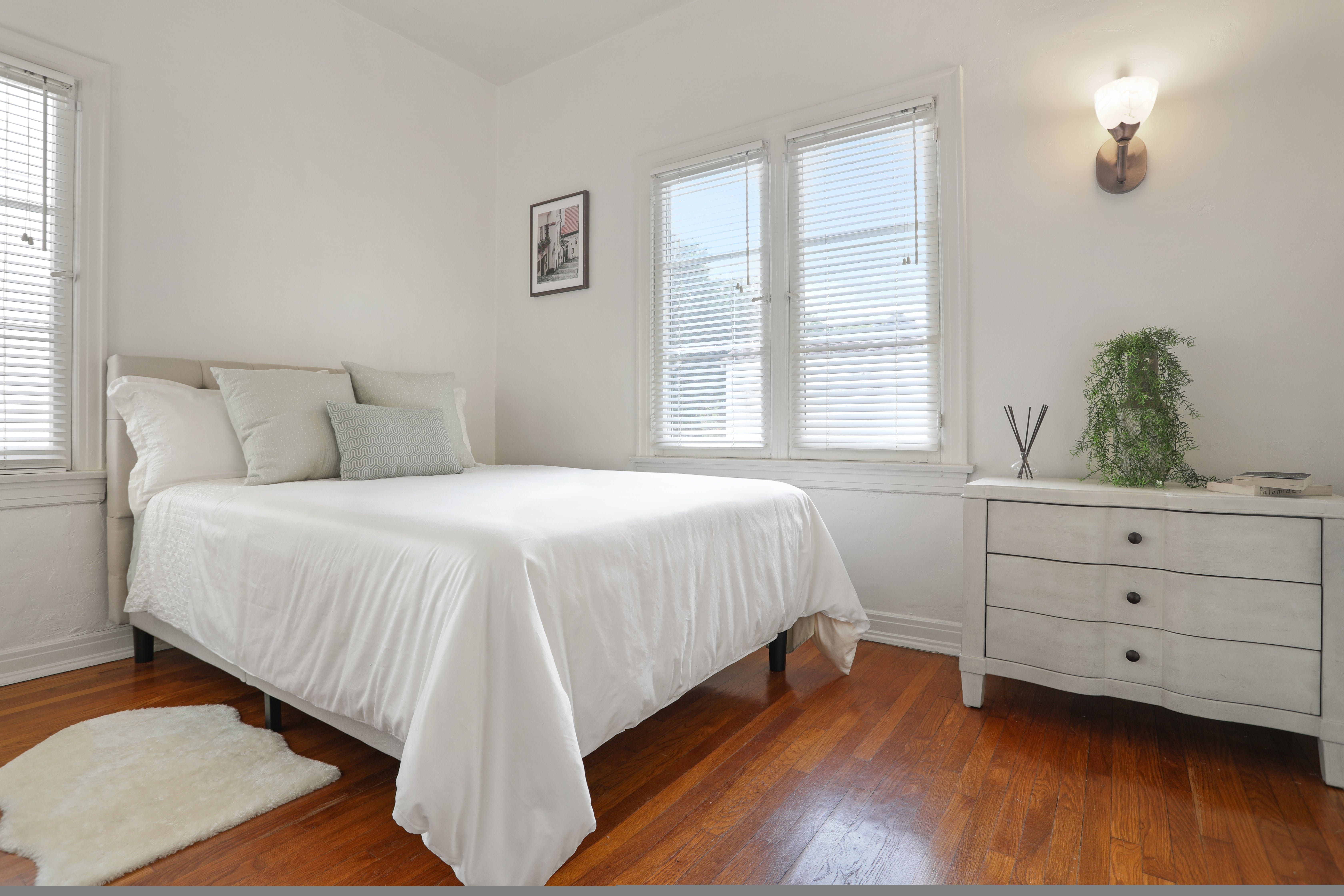 Set inside a beautifully renovated 1920s townhouse and boasting a fantastic location near Miracle Mile, this home is perfect for those who want to live like an LA local. You'll be half a mile from Beverly Hills and within walking distance of the newly built Academy Museum of Motion Pictures. From the front, the home looks really impressive, with manicured bushes and lion statues adding to the sense of grandeur. Inside, you'll find traditional elements such as grand archways and tall windows, blended with contemporary furniture, for a home that feels super cool.
