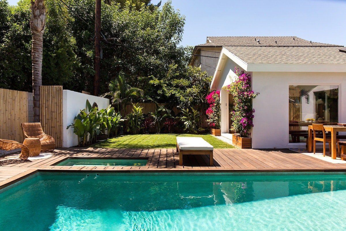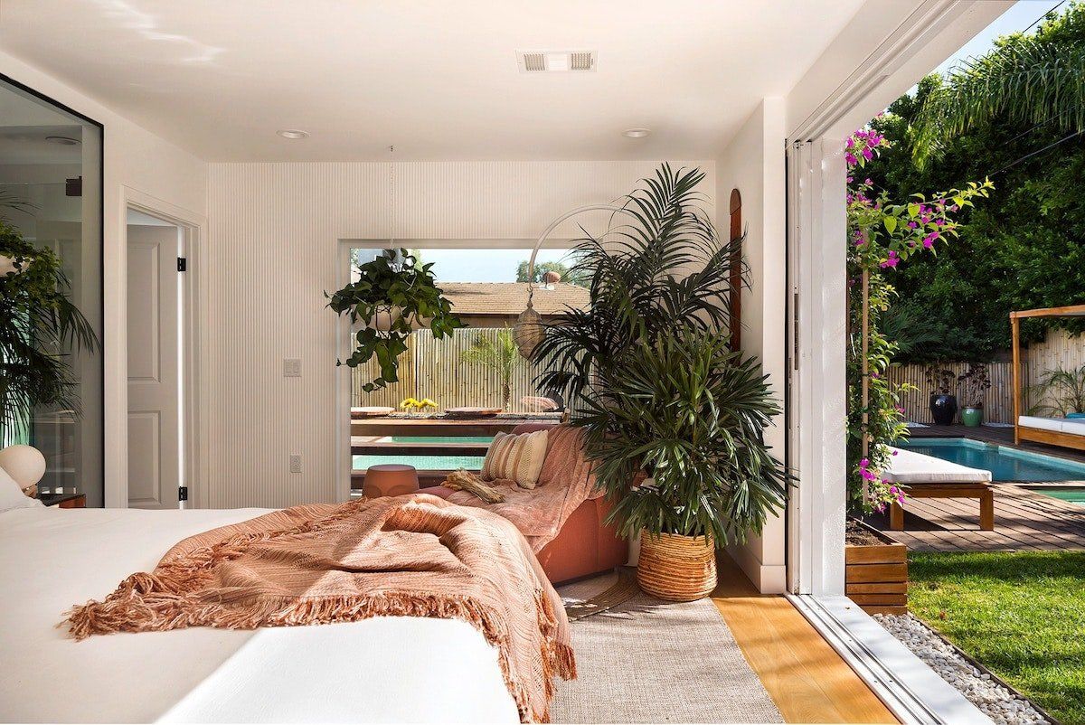 Inspired by the tranquil traditions of Southeast Asia, this gorgeous haven oozes peaceful serenity and relaxation – the ideal recipe for a perfect getaway. It's decorated with plenty of natural materials, including stylish wooden panelling, a huge number of houseplants and a stunning black bathroom with quartz crystal mounted like a museum exhibition. Your hosts have poured an enormous amount of love and attention to detail into their boutique Balinese-inspired home – all you need to worry about is whether to relax on the daybed by the pool or to slide open those retractable doors and spend an entire day in bed. On your doorstep, you'll find the quiet neighbourhood of Encino, with vibrant Ventura Boulevard just a few blocks away. On the weekend, join residents as they flock to Encino Commons, a stretch of restaurants and boutiques that serves as the neighbourhood's downtown. Its weekly farmer's market is one of the best in LA and only a fifteen-minute walk away. Fancy venturing further afield? Both Hollywood and Santa Monica are approximately a twenty-minute drive.