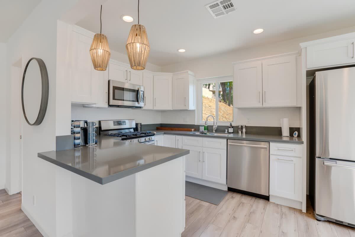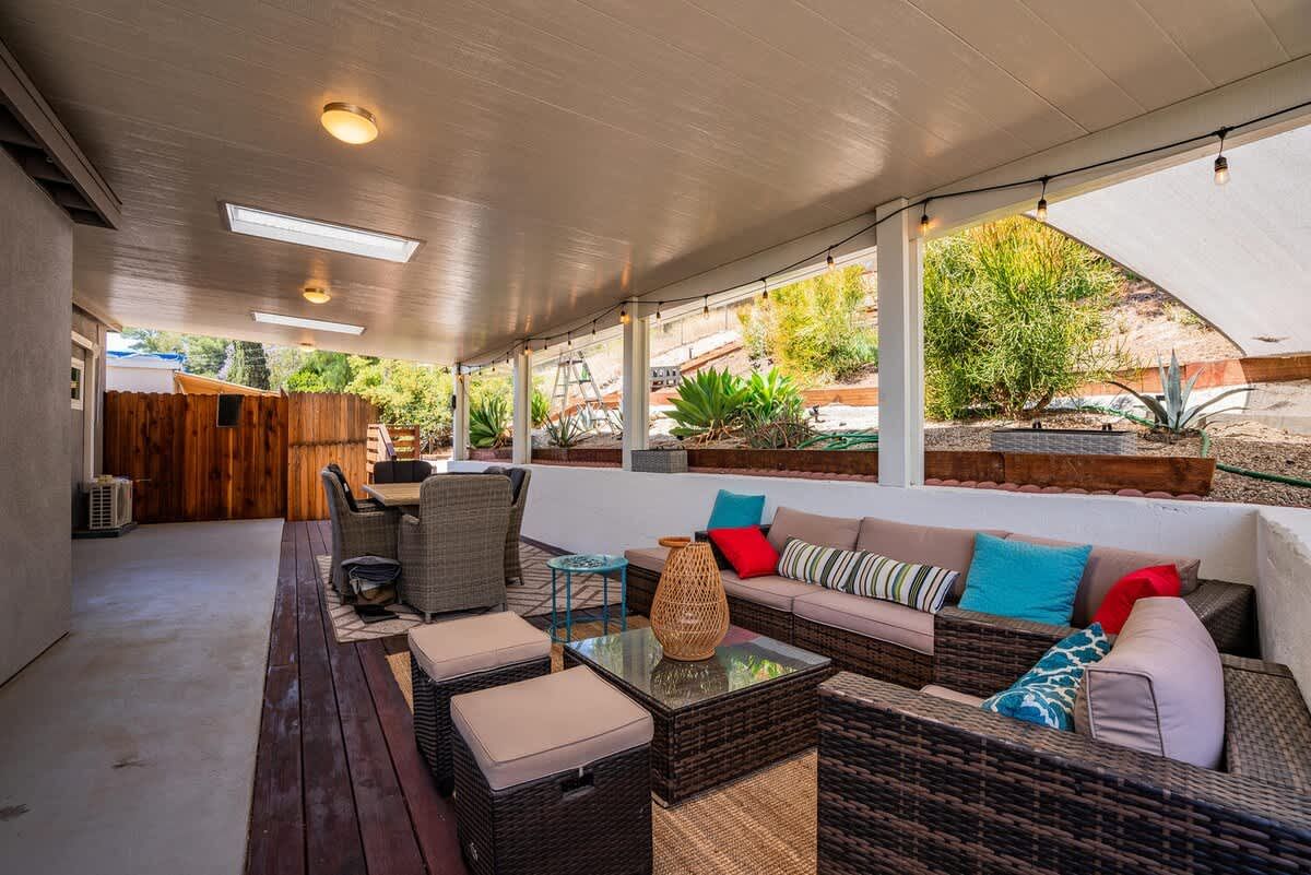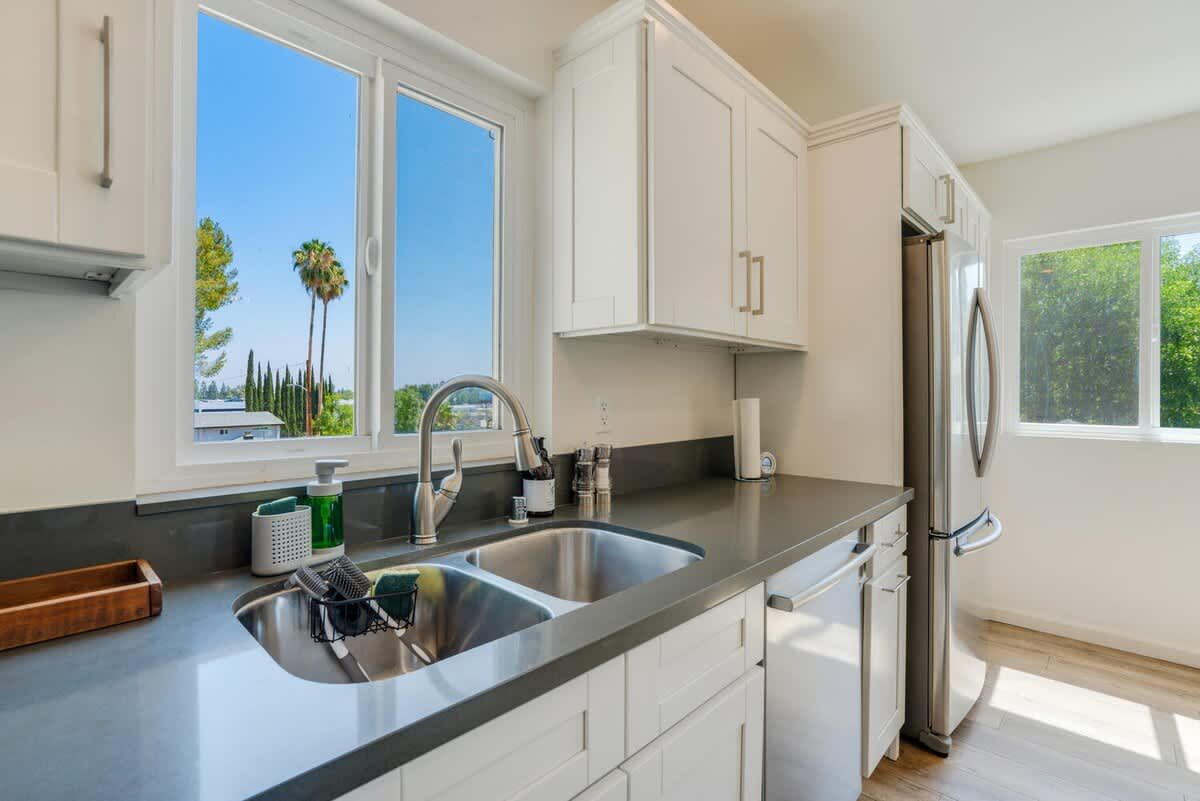 Tucked away in leafy Woodland Hills, this pet-friendly villa balances SoCal ease with everyday convenience. Lace up for Topanga’s trails just fifteen minutes away, or head twenty minutes down the road to sandy beaches. At home, sunlight floods the bright, modern interiors, with the main bedroom opening onto a private balcony. There’s even an office with a sofa bed, perfect for catching up on emails or hosting extra guests. Out in the garden, a covered patio sets the scene for lazy afternoons, alfresco dinners, and evening drinks – and when you fancy a change of pace, shops and restaurants are just a short stroll away.