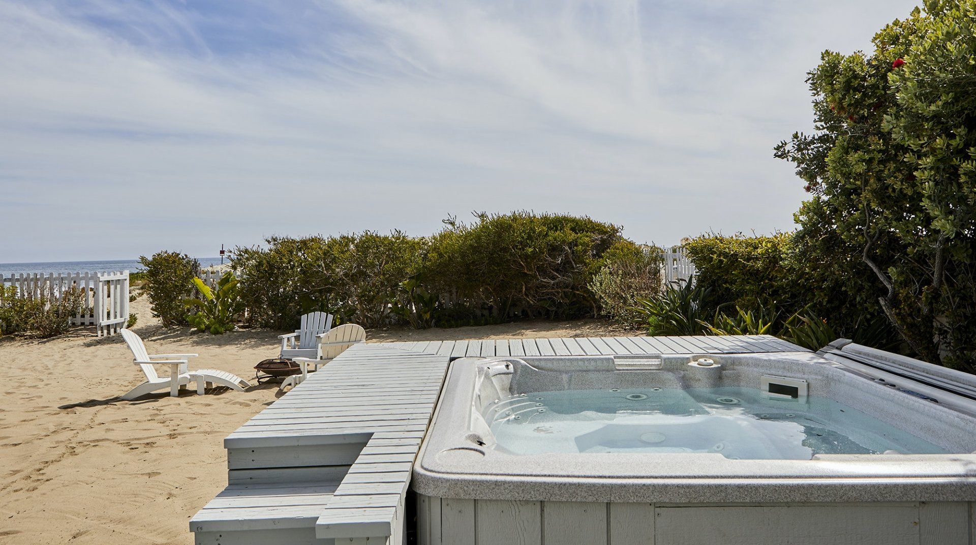 We are really smitten with this stunning beach-front home. Charming coastal interiors, a massive kitchen, twenty-foot high ceilings, a hot tub, ocean views galore – it’s hard to know where to stop. This is an ideal home for a large group of friends or family, looking to spend quality time with one another in a peaceful location. And for those that want to get out and explore, it’s just a two-minute walk to great grocery stores and restaurants. Oh, did we mention that guests have access to a private beach? We’ll leave you with that thought.