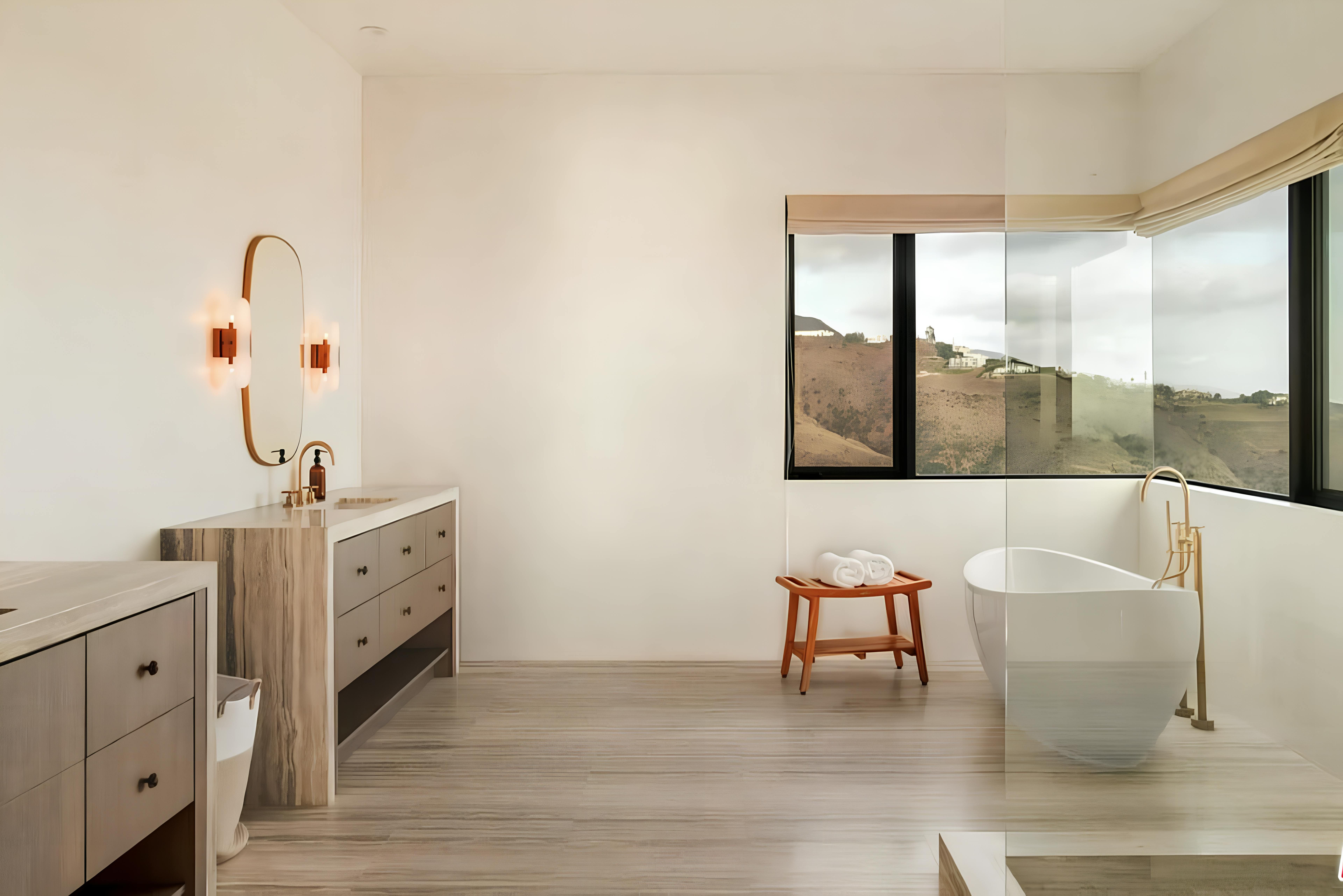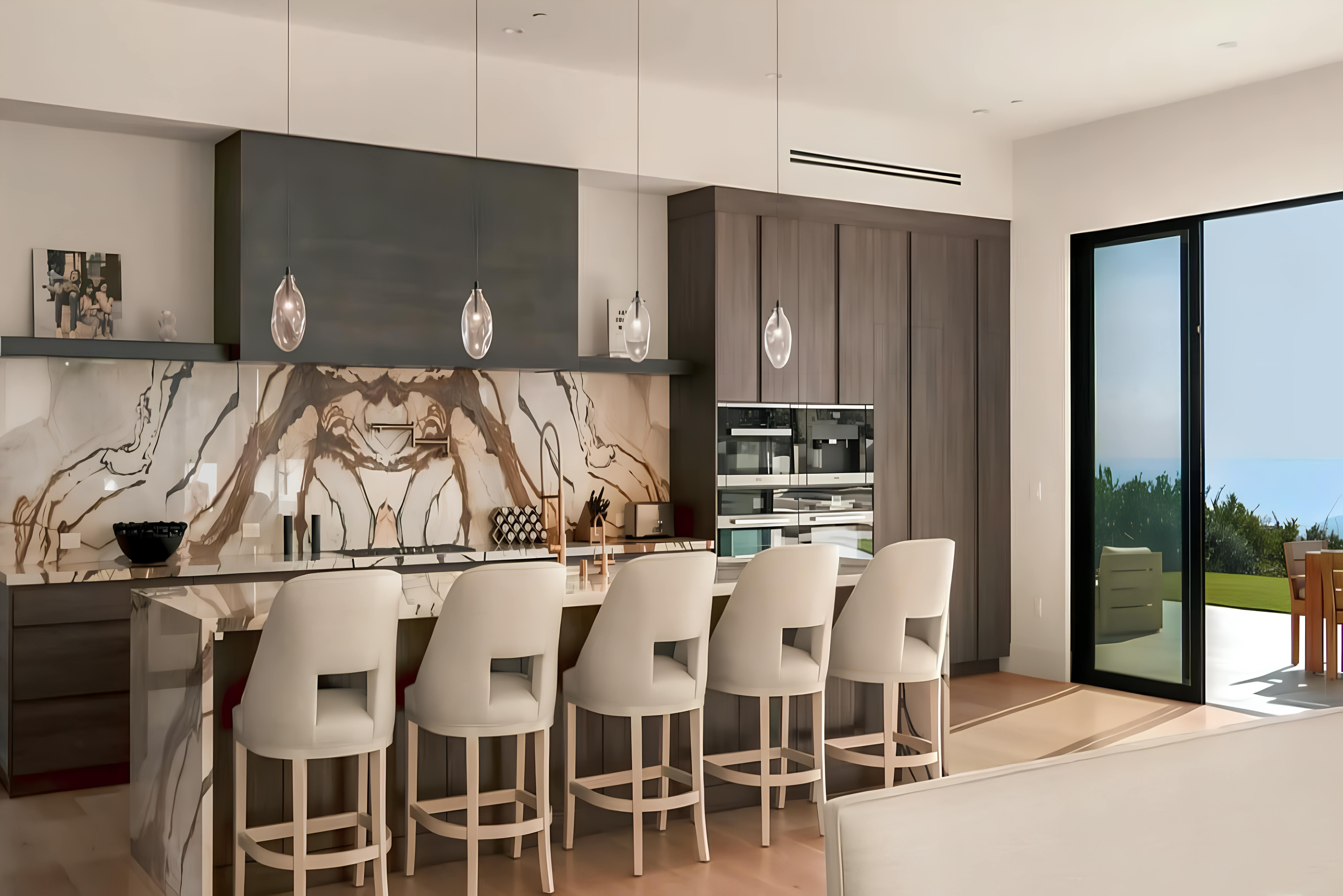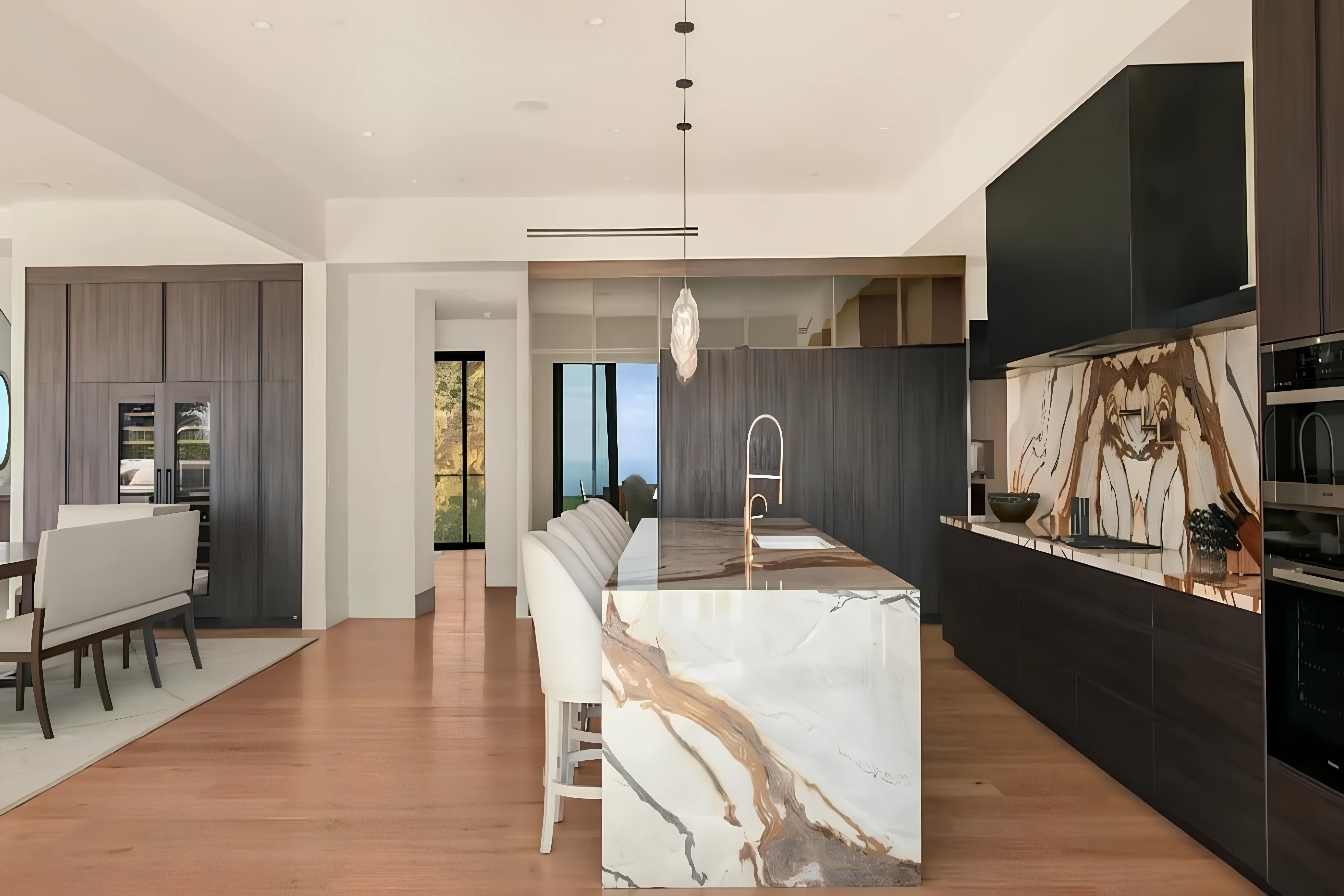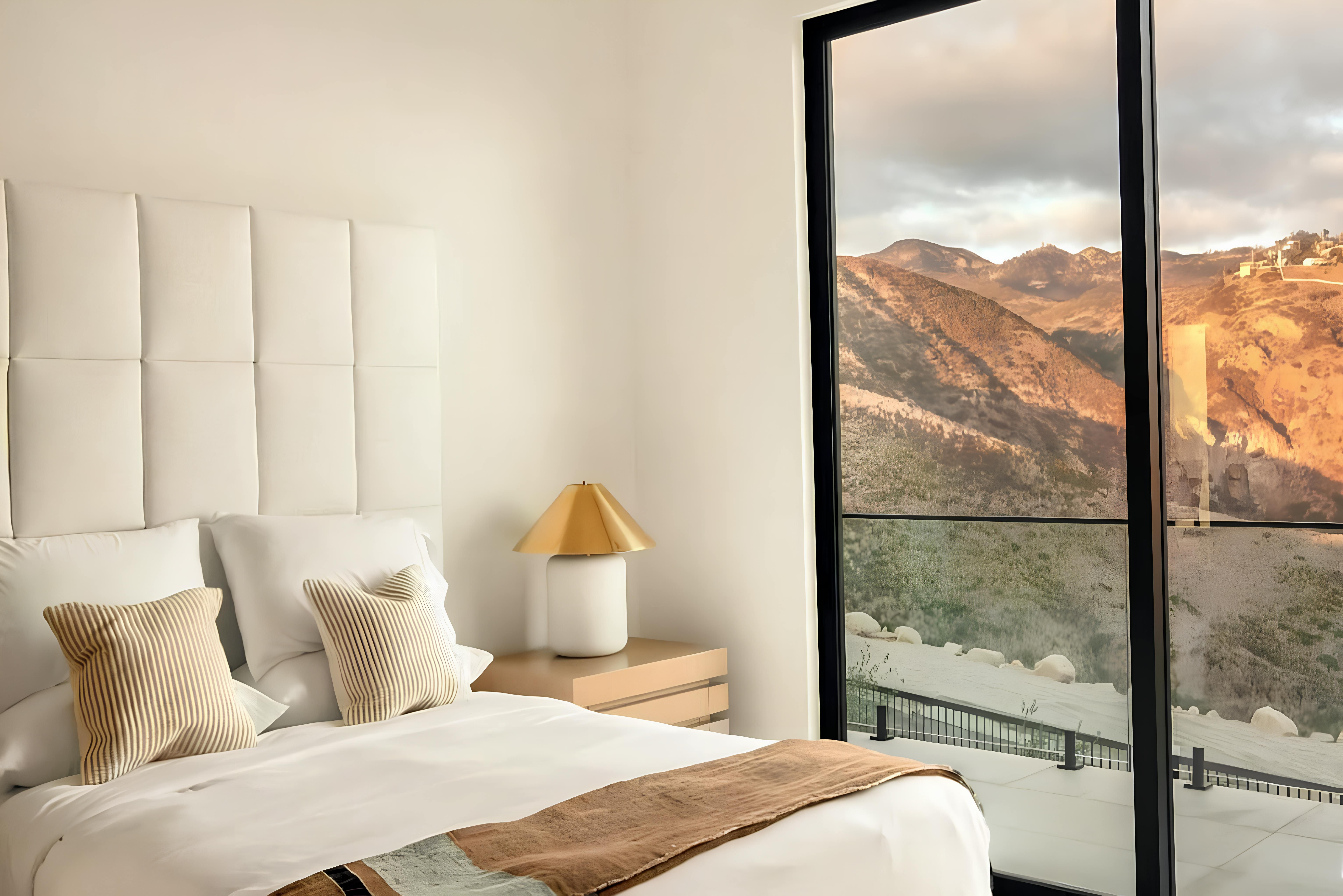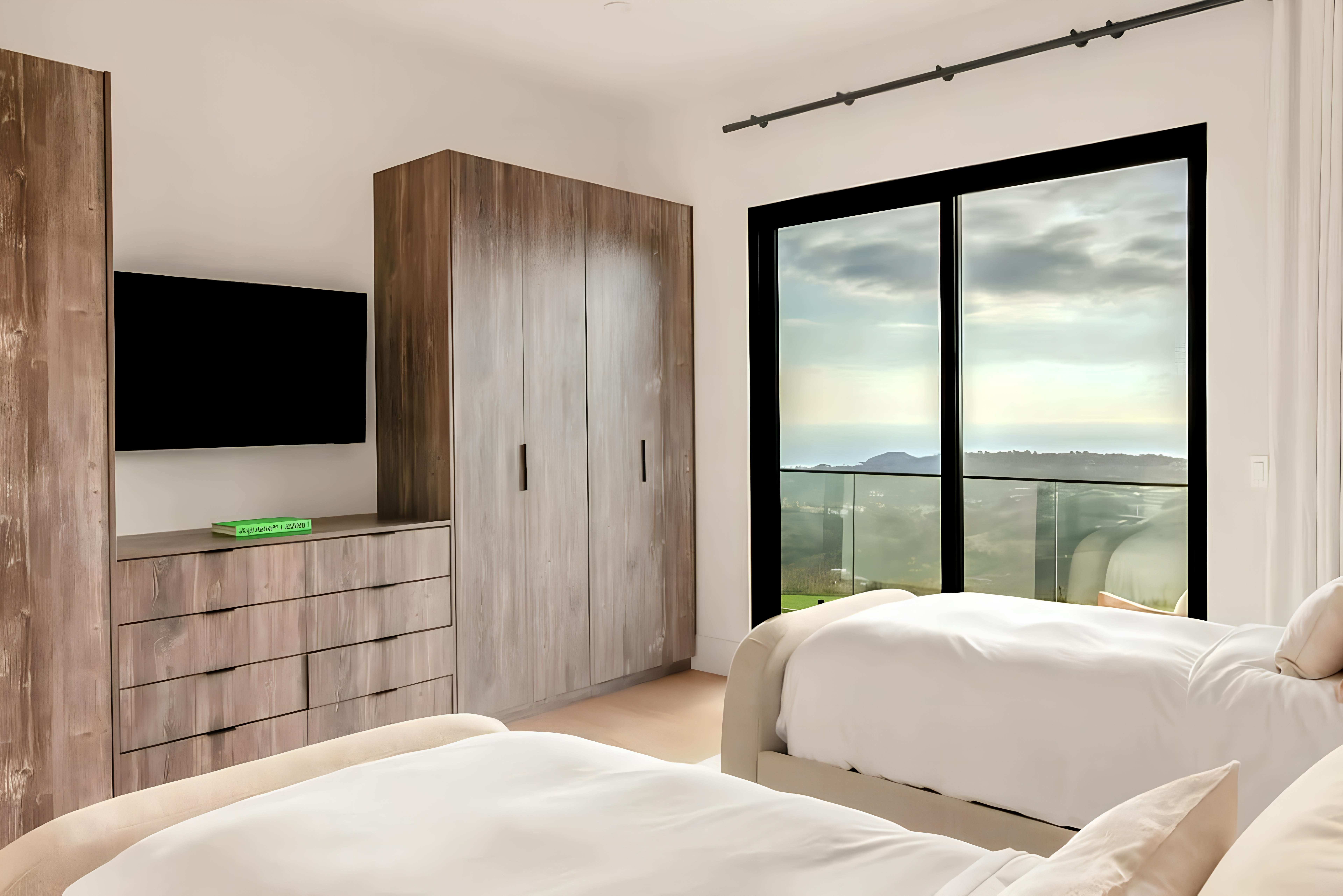 With stunning ocean views, this home will make you want to settle in and stay. You can soak it all in while swimming in the pool and there’s a covered pergola with fire-pits for magical evenings under the stars. Inside, the rooms are just as impressive with elegant design details and plenty of home comforts. There’s a games room and a fitness area, while the main bedroom is a special highlight with a fire and a spa-inspired bathroom. A concierge service is available to enhance your stay and it’s just a short drive to the nearest beaches and amenities in Malibu.
