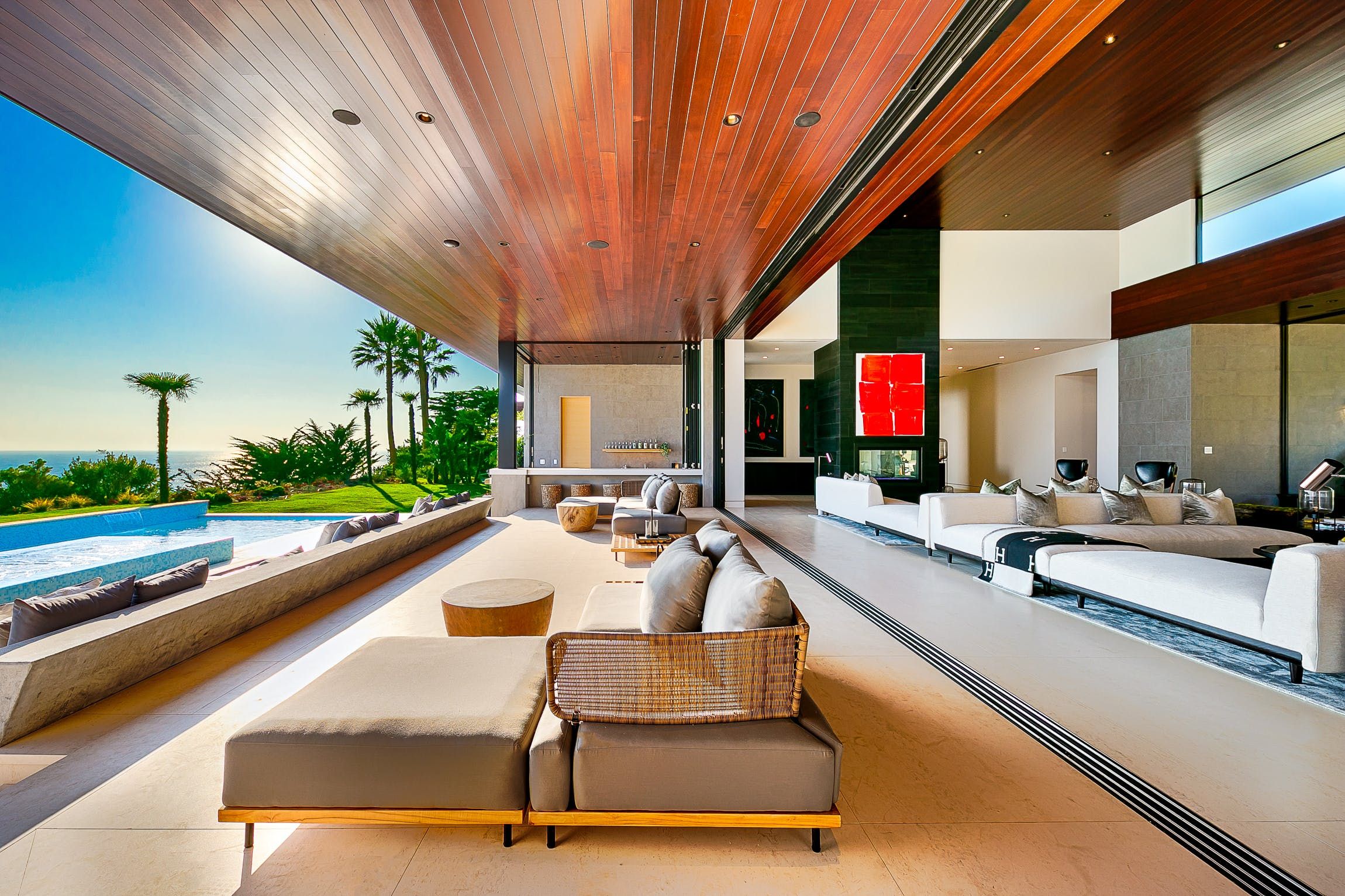 We are in love with this incredible Malibu Beach home designed by American DJ Skrillex. It has the most awesome Pacific Ocean views. Set down a gated private driveway in an acre of gorgeous grounds, it offers seclusion, yet it has easy access to the beach. Tall windows open to sublime ocean-facing terraces – relax in the Californian sun by the sparkling pool. Or hit the home gym, then challenge someone to a foosball or table tennis match in the games room. If that all sounds a bit too energetic, there's a movie theatre to chill out in.