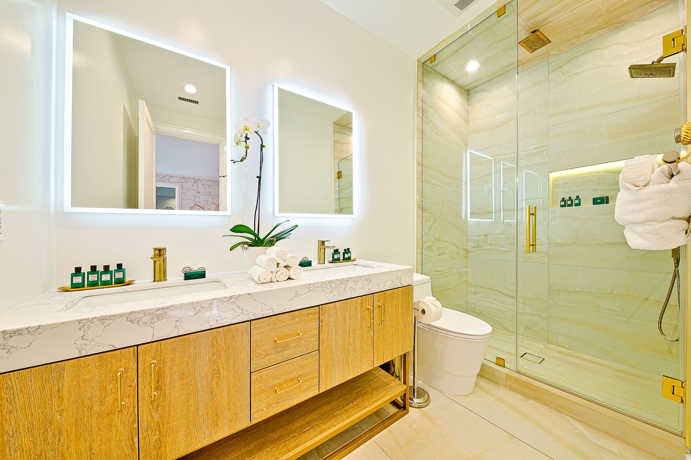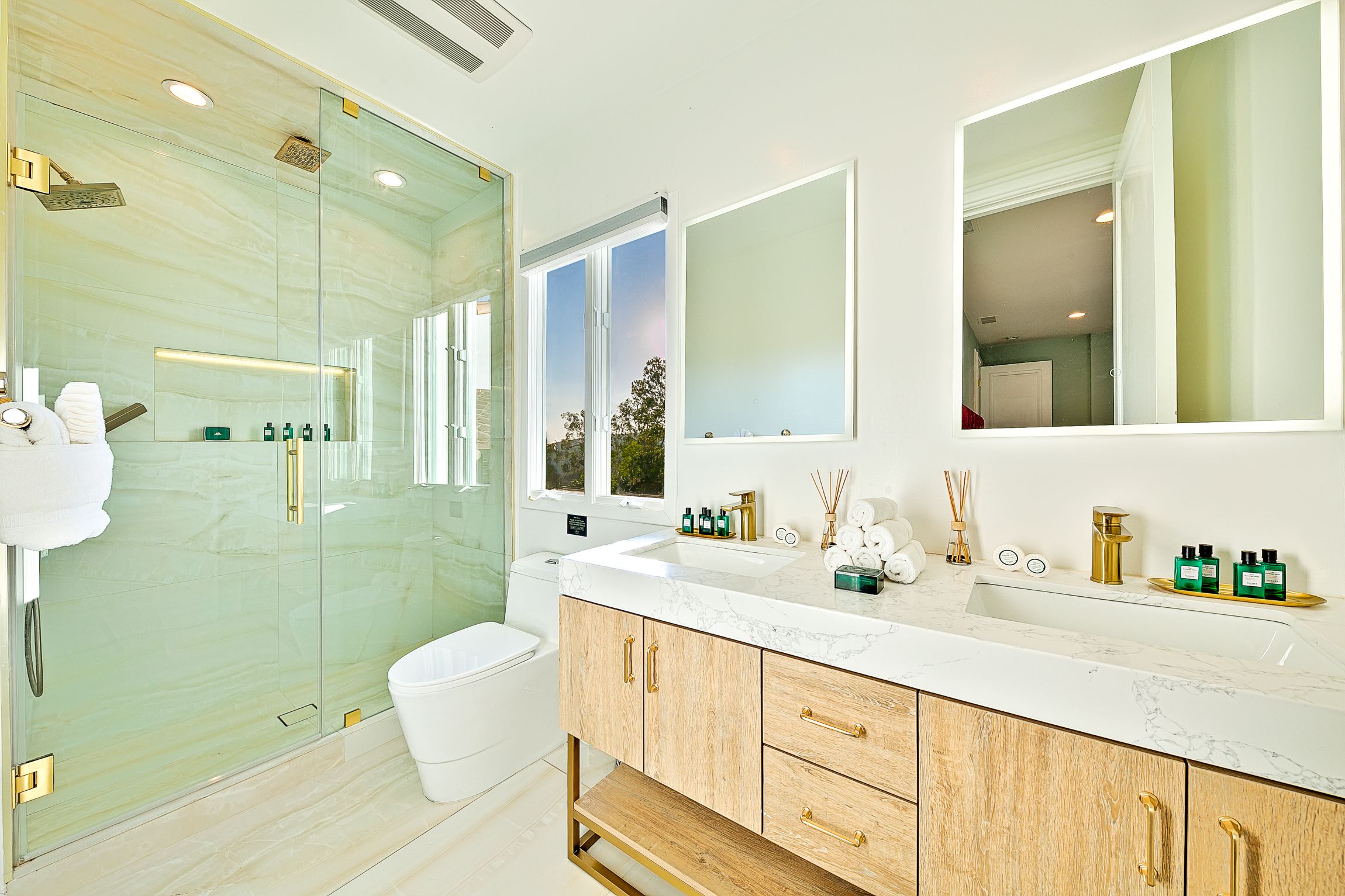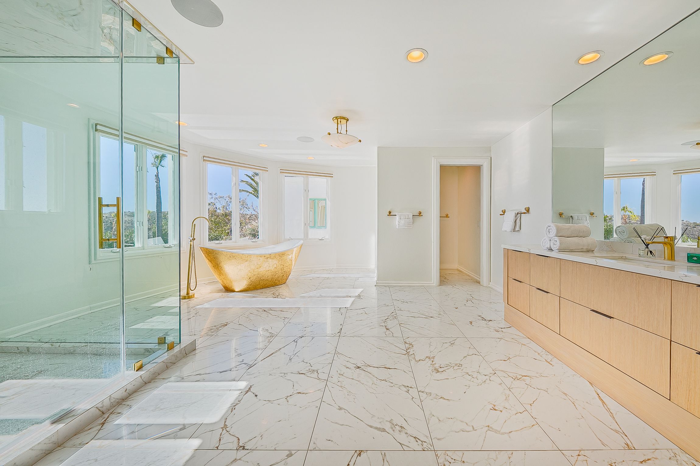 Not so much a holiday home as a full-blown private resort to enjoy with your friends and family, this Malibu address is a true one-of-a-kind. The interior is impressive enough with the Italian marble countertops and showers, fully-equipped gym and light-filled living room complete with grand piano, but it's the outdoor space that will take your breath away. Spread across fifty-one acres, guests can pass their afternoons paddling about in the swimming pool, getting competitive on the tennis court or simply lounging about on the daybeds with a glorious panorama of the Pacific Ocean and the surrounding mountains. Come the evening time, it's time to fire up the barbecue and reconvene on the terrace's dining table, before taking a dip in the hot tub. If in the unlikely event you start craving the wider world beyond the gates again, Leo Carilla Beach is twelve minutes' drive away and there are hiking trails in Malibu Springs, which takes about twenty to reach.