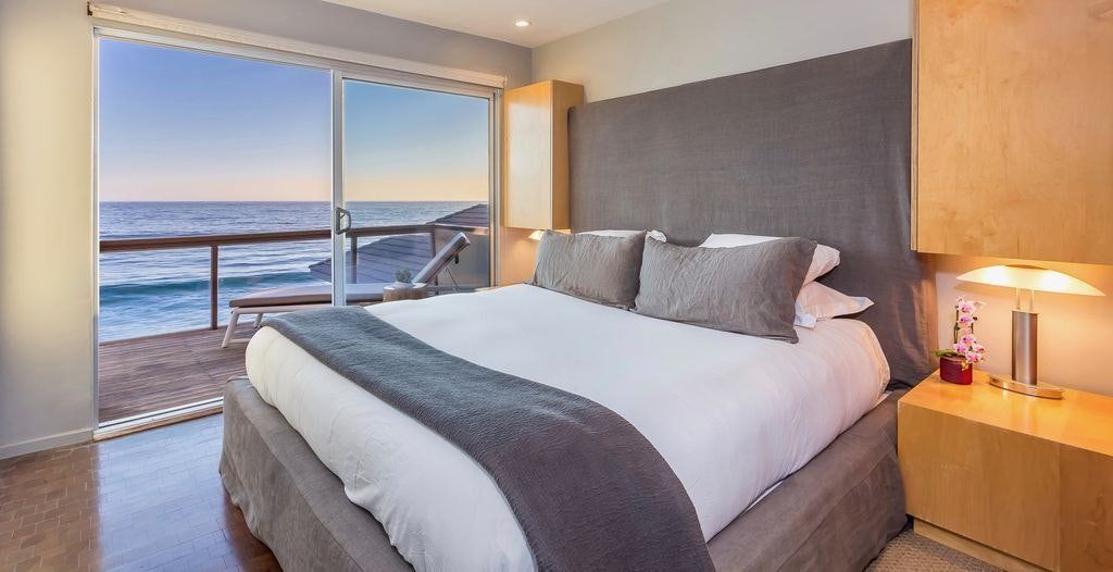 Inside, you'll find a muted palette of neutrals and greys, while sightlines are constructed for the utmost privacy despite the comprehensive ocean views through glass walls. You can take it easy in the hammock under the deck, pamper yourself in the Jacuzzi tub and river-rock shower, or take a stroll along the golden sand – it'll take you just two minutes to get to County Line Beach, one of Malibu's top spots to catch the waves.