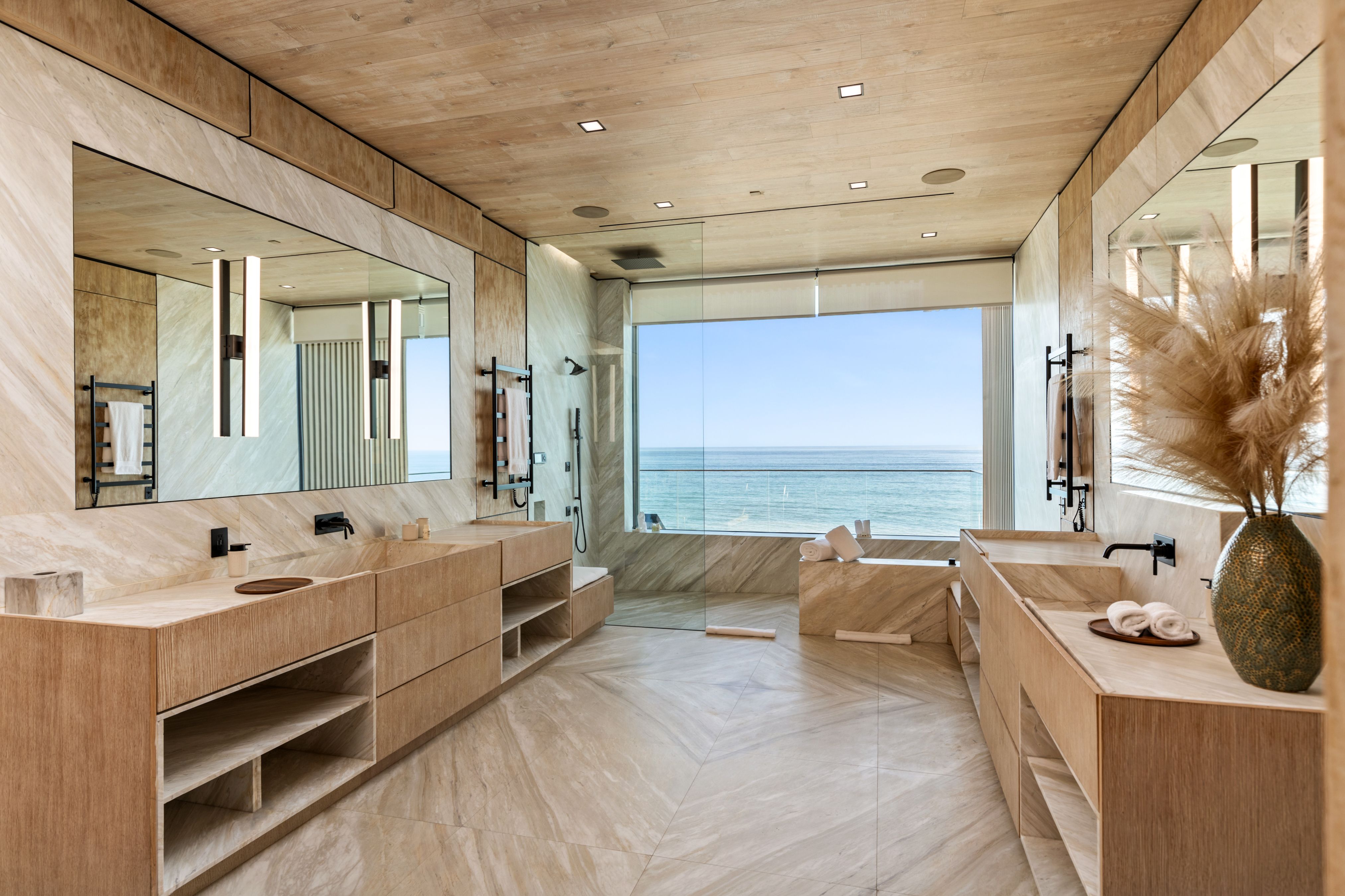Pacific Ocean views stretch as far as the eye can see at this stunning Malibu villa. An infinity pool overlooks the horizon, multiple balconies and outdoor seating areas offer spots to soak up the sunshine, and a poolside fire pit provides the perfect place to decompress come evening. The design is influenced by Feng Shui, with frameless floor-to-ceiling windows that bring the coastal environment (and sweeping panoramas) indoors. But when you're not soaking up the scenery, you can kick back in the Dolby Atmos home theatre for a family movie night. Even better, spend your downtime at County Line Beach – just across the PCH – or nearby Trancas Canyon and Zuma Beach, a short drive away.