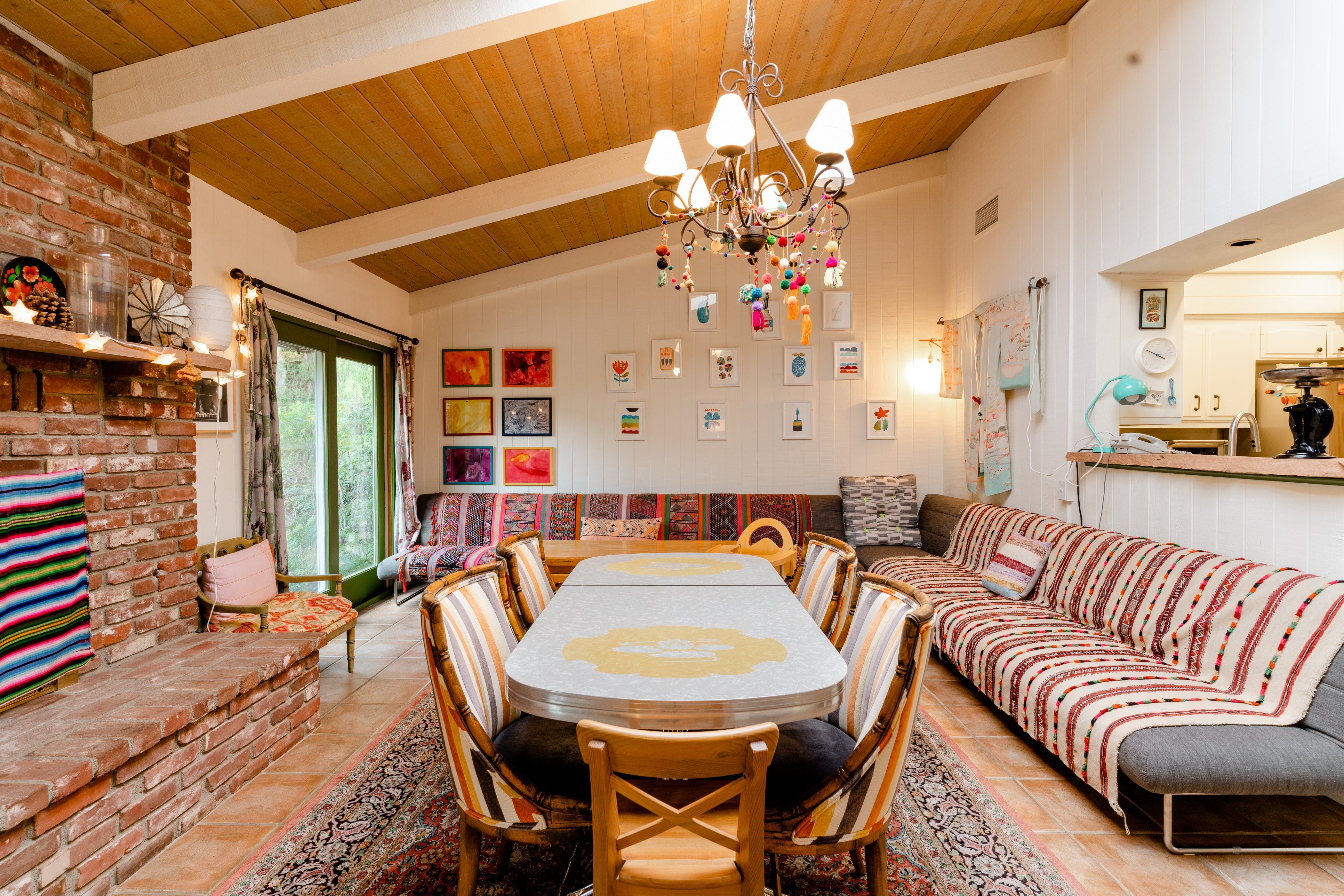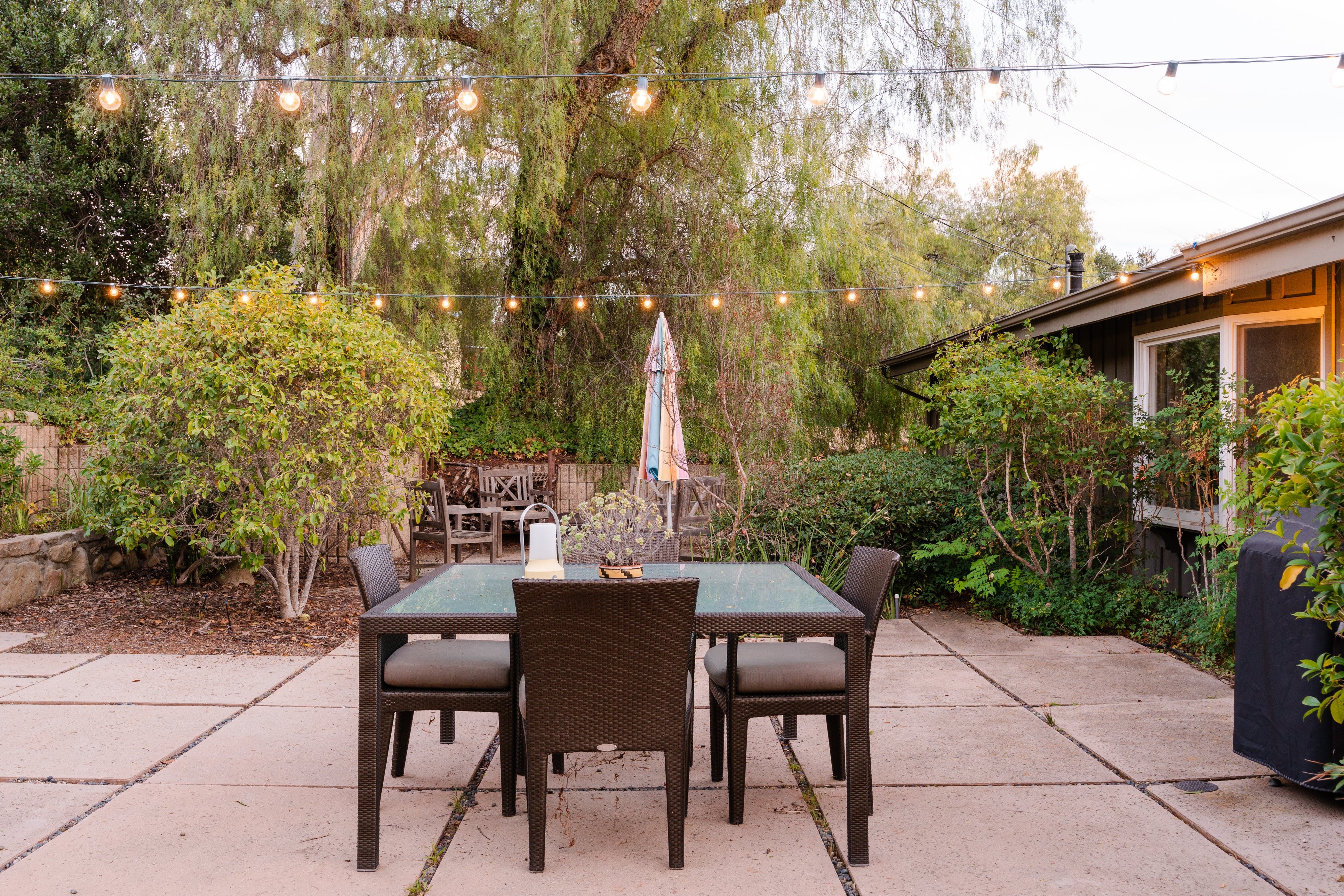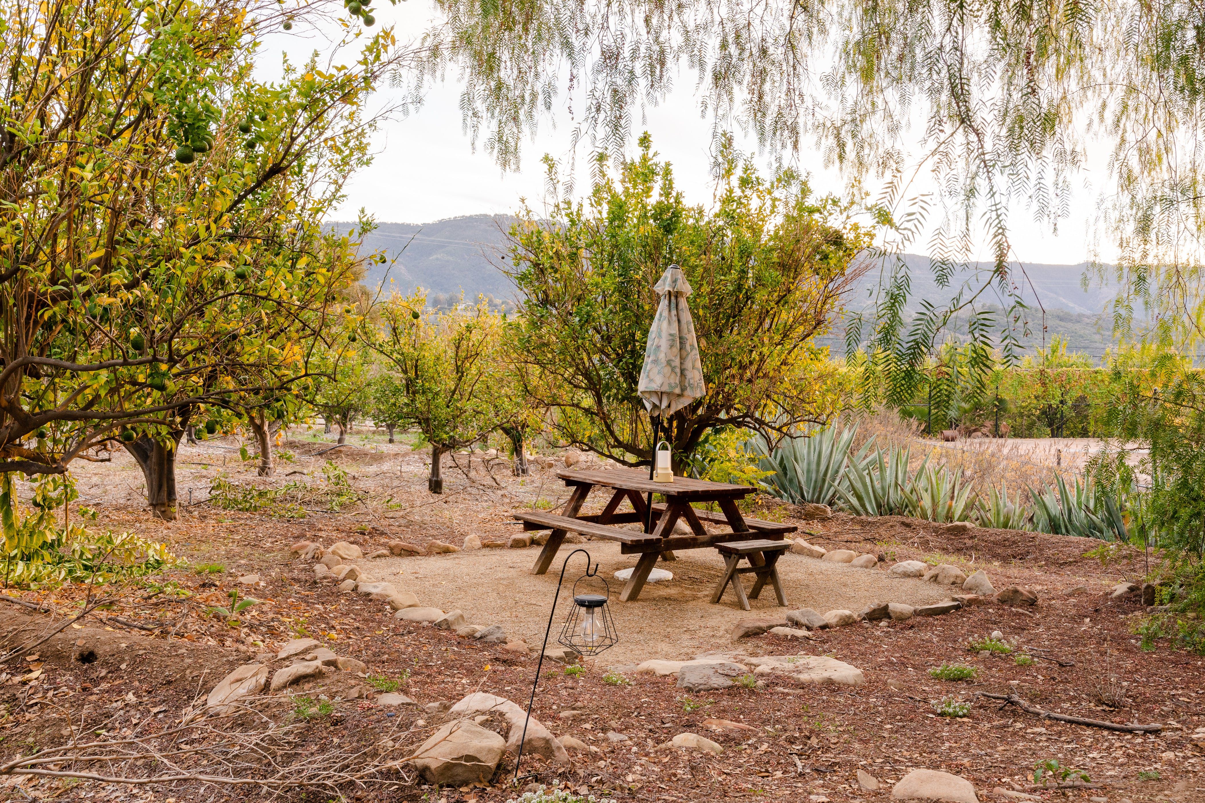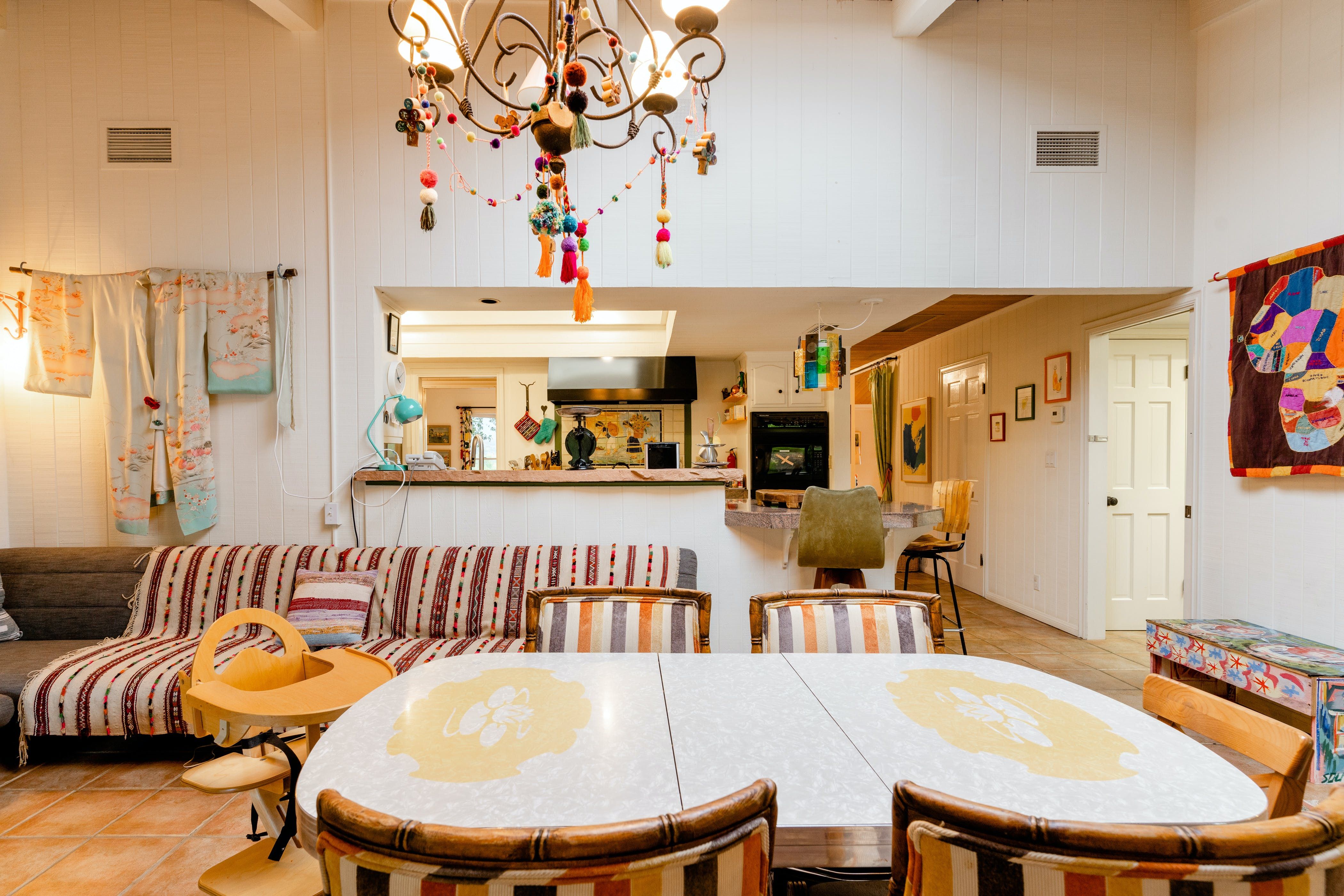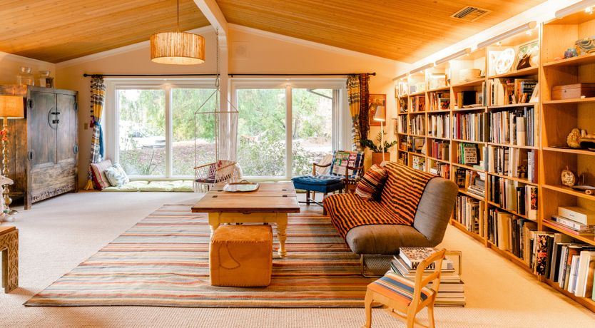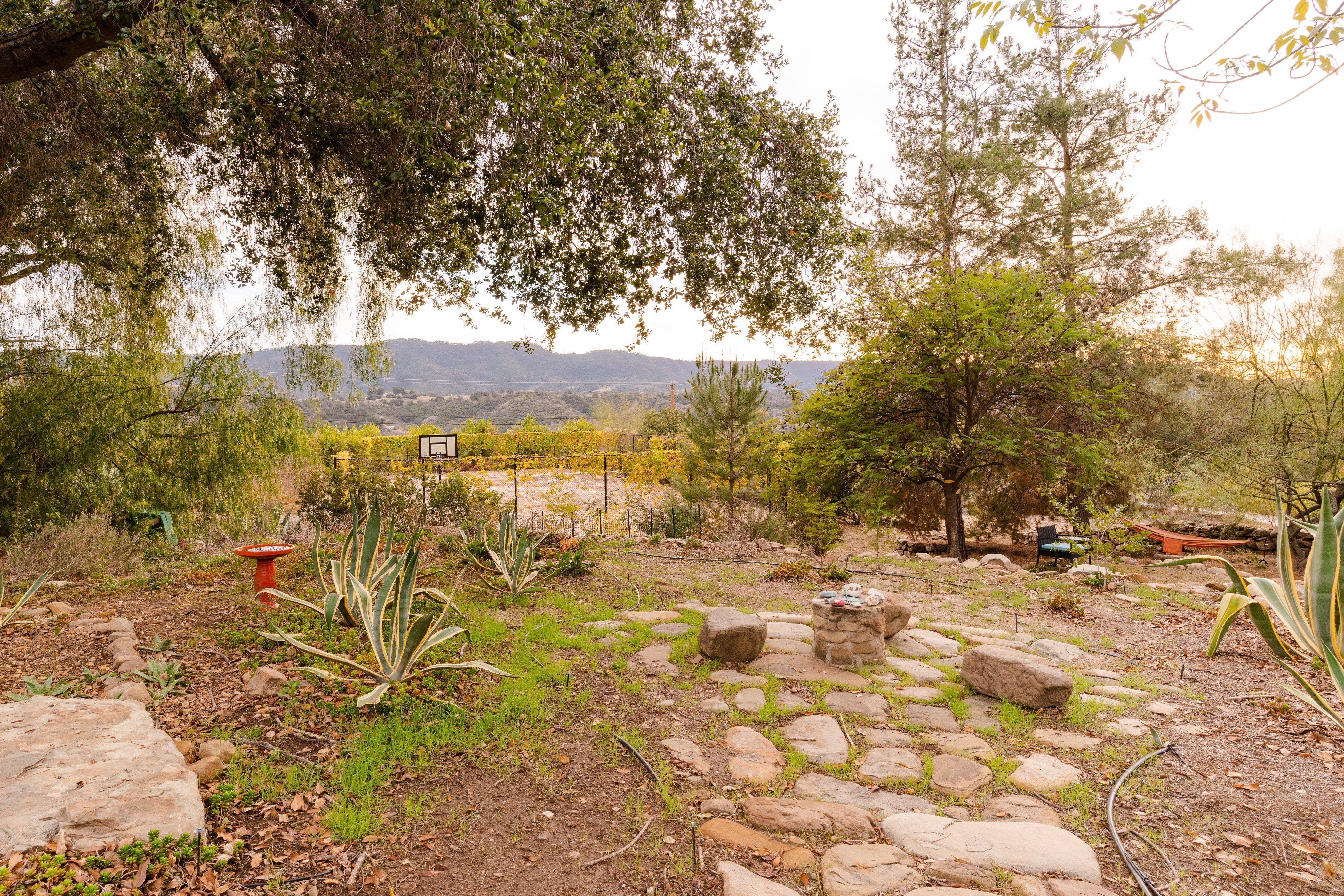 Nature lovers will feel perfectly at home in this earth-friendly Ojai ranch. Nestled among citrus and avocado trees, you’ll find this rustic sanctuary filled with handcrafted art and hidden treasures. The house also features a water purification system, biodegradable essentials and plenty of cosy nooks to read, relax or catch up on work. Outside, you can enjoy warm evenings swaying in the hammock and watching the stars while gathered around the fire pit. There is also a clay tennis court and plenty to explore in the surroundings. From here, it’s less than a ten-minute drive to Downtown Ojai.