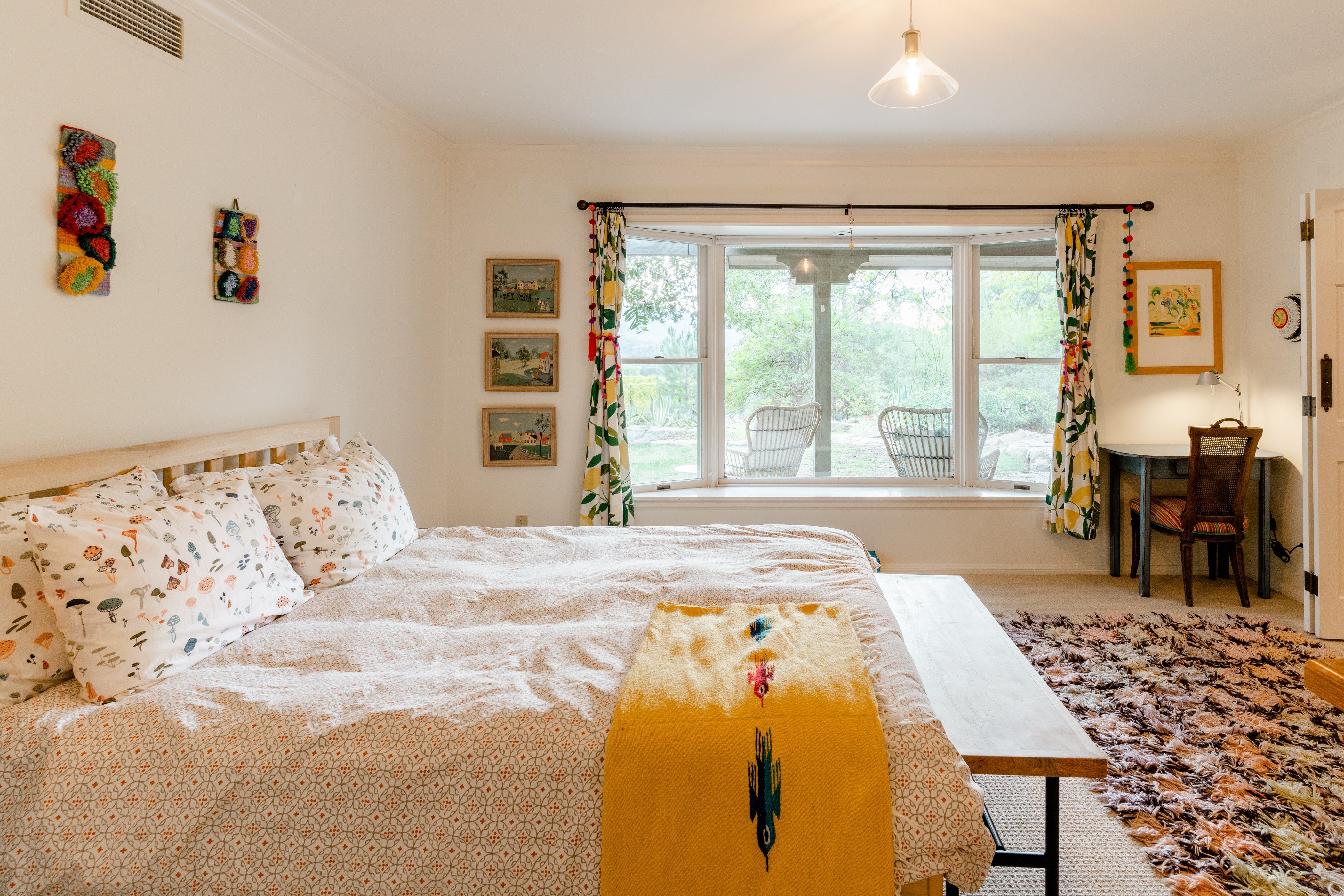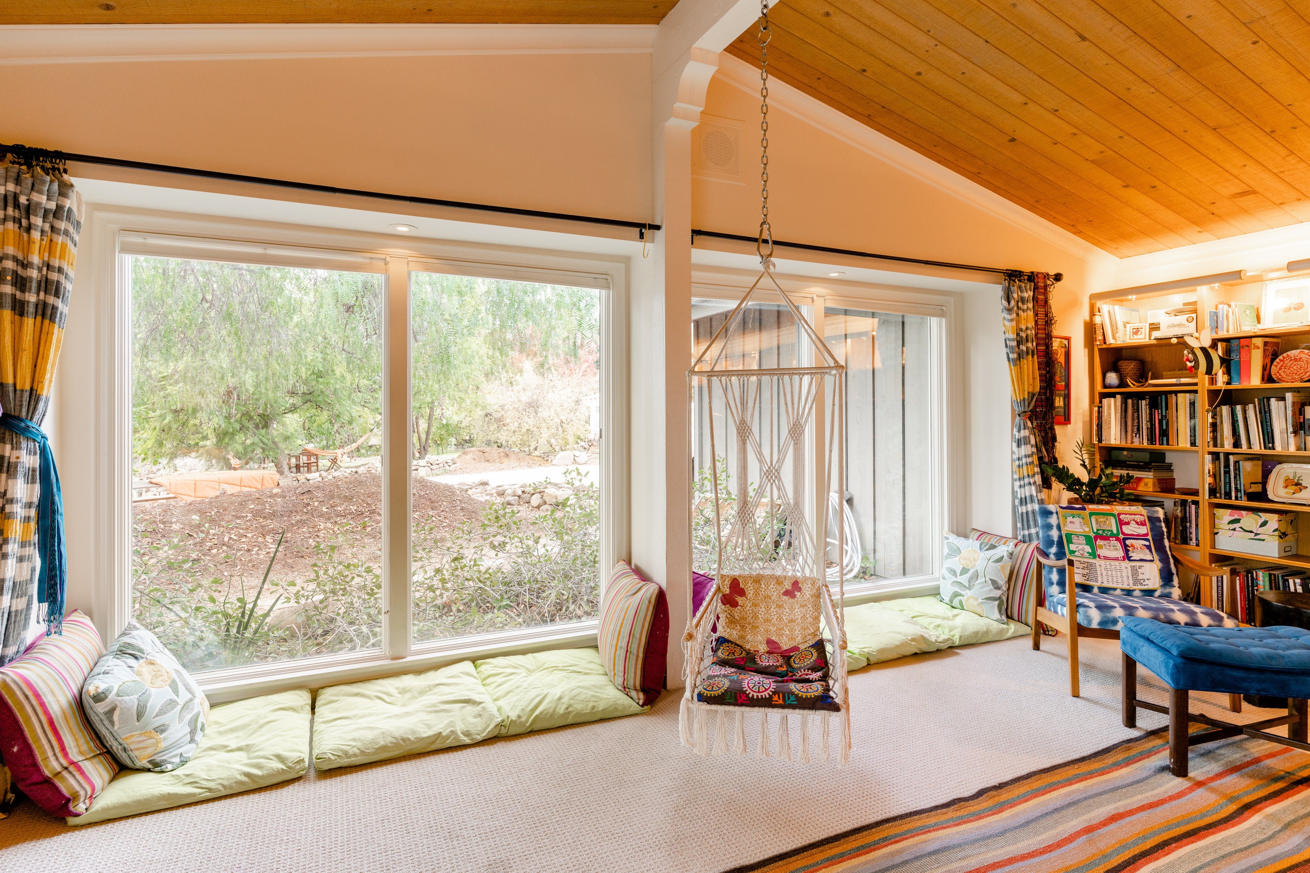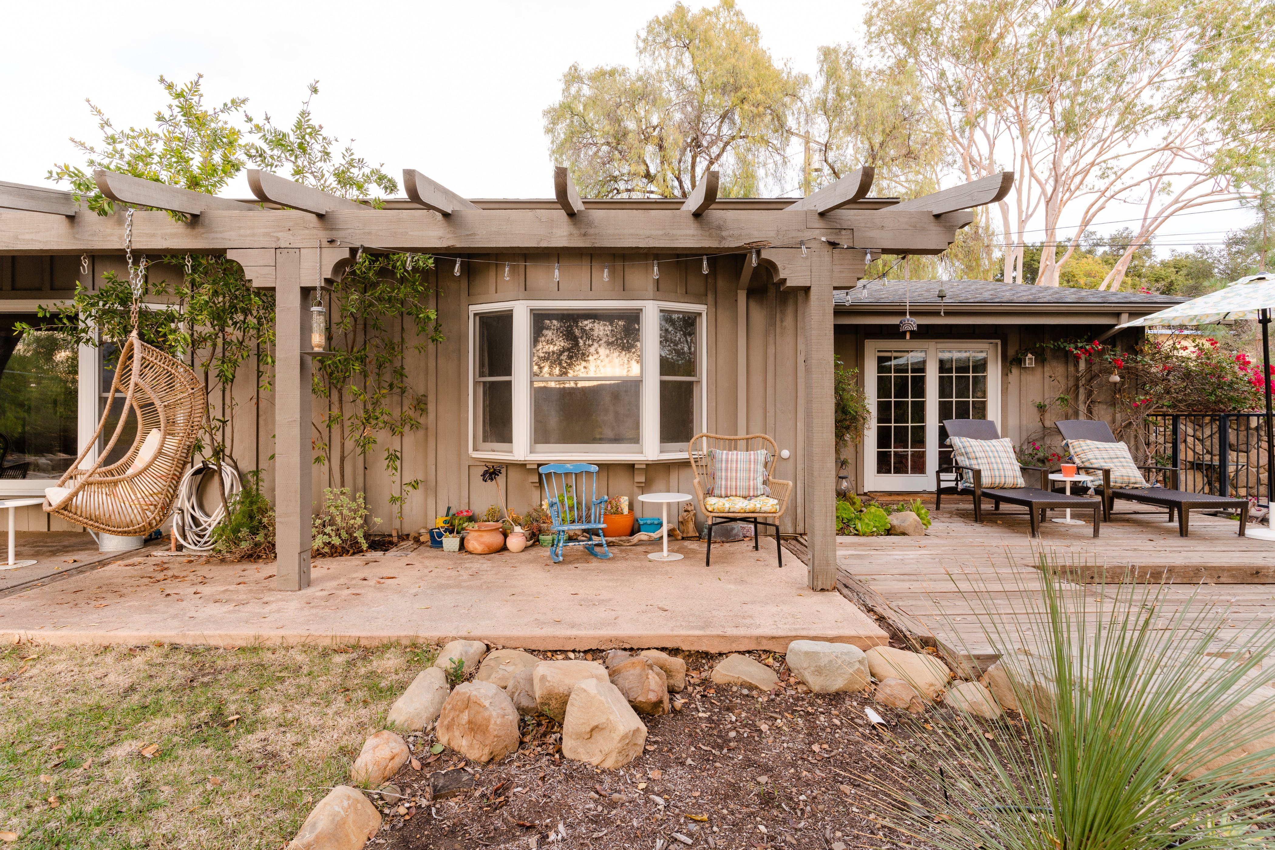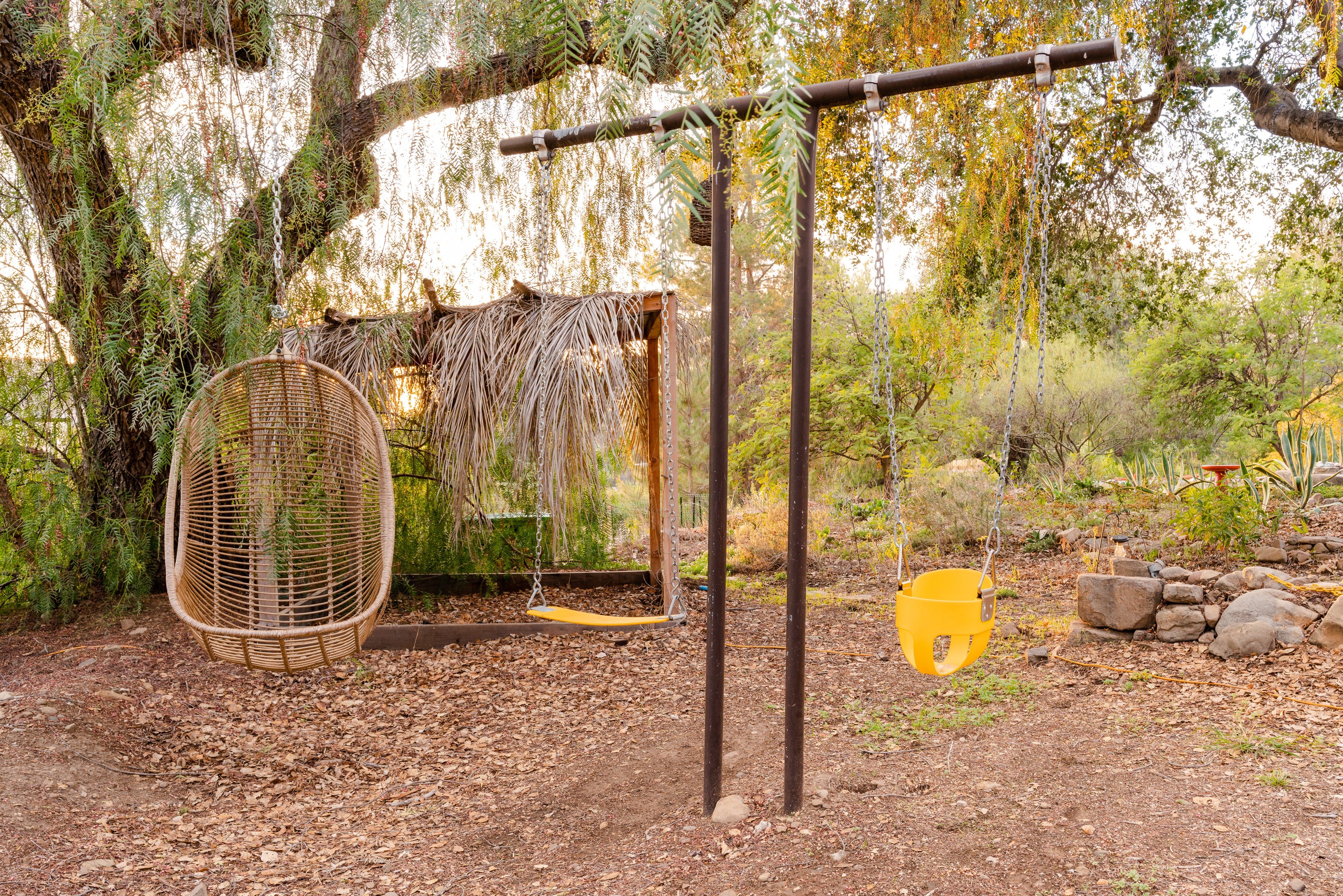 Nature lovers will feel perfectly at home in this earth-friendly Ojai ranch. Nestled among citrus and avocado trees, you’ll find this rustic sanctuary filled with handcrafted art and hidden treasures. The house also features a water purification system, biodegradable essentials and plenty of cosy nooks to read, relax or catch up on work. Outside, you can enjoy warm evenings swaying in the hammock and watching the stars while gathered around the fire pit. There is also a clay tennis court and plenty to explore in the surroundings. From here, it’s less than a ten-minute drive to Downtown Ojai.