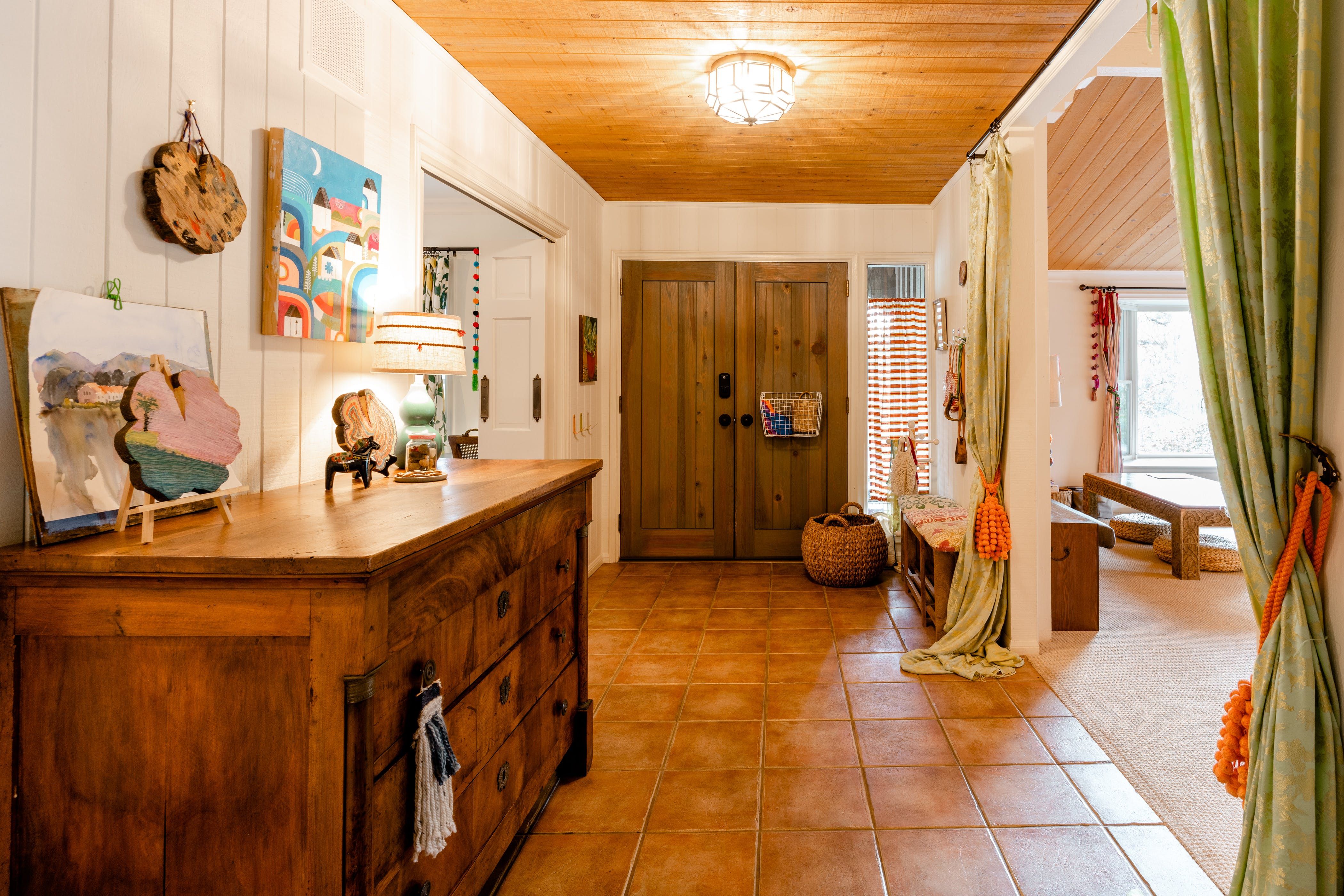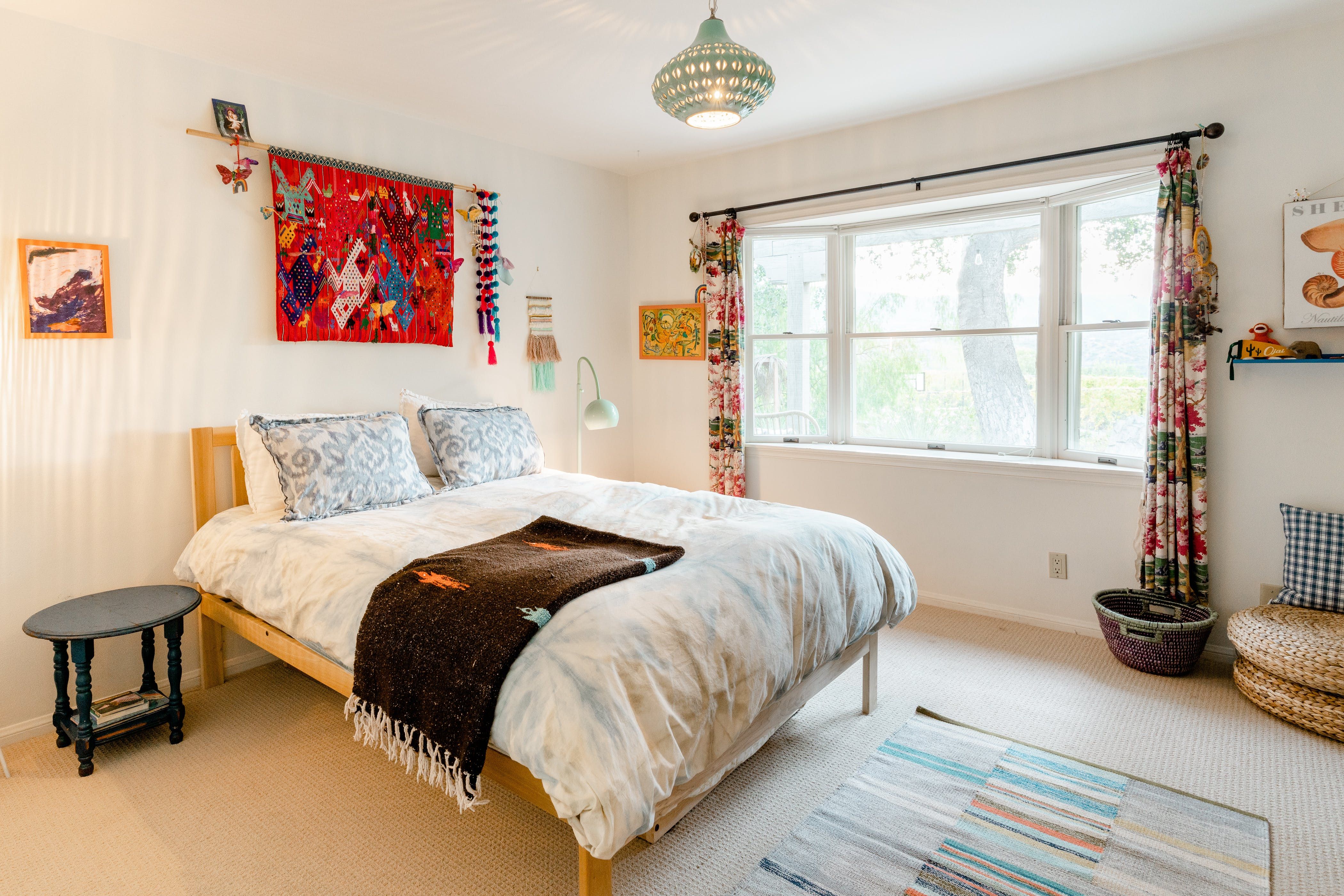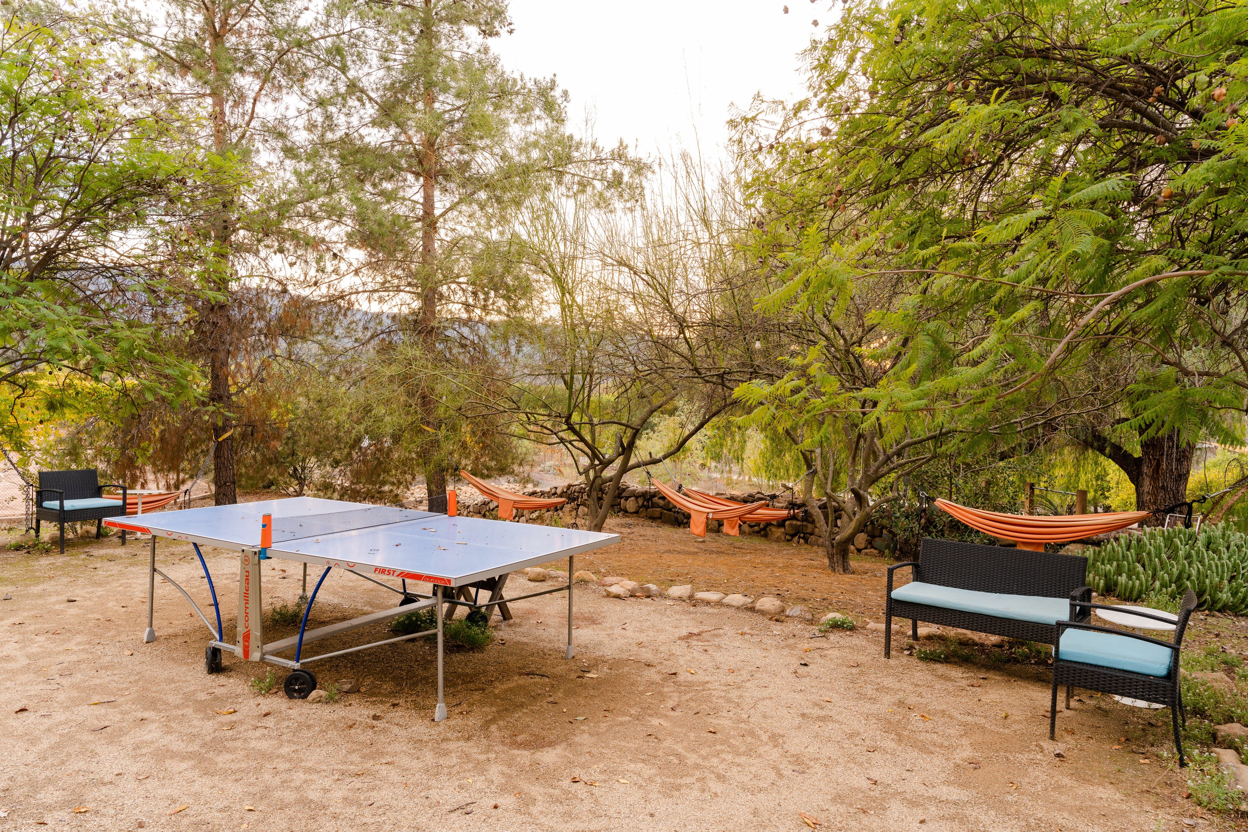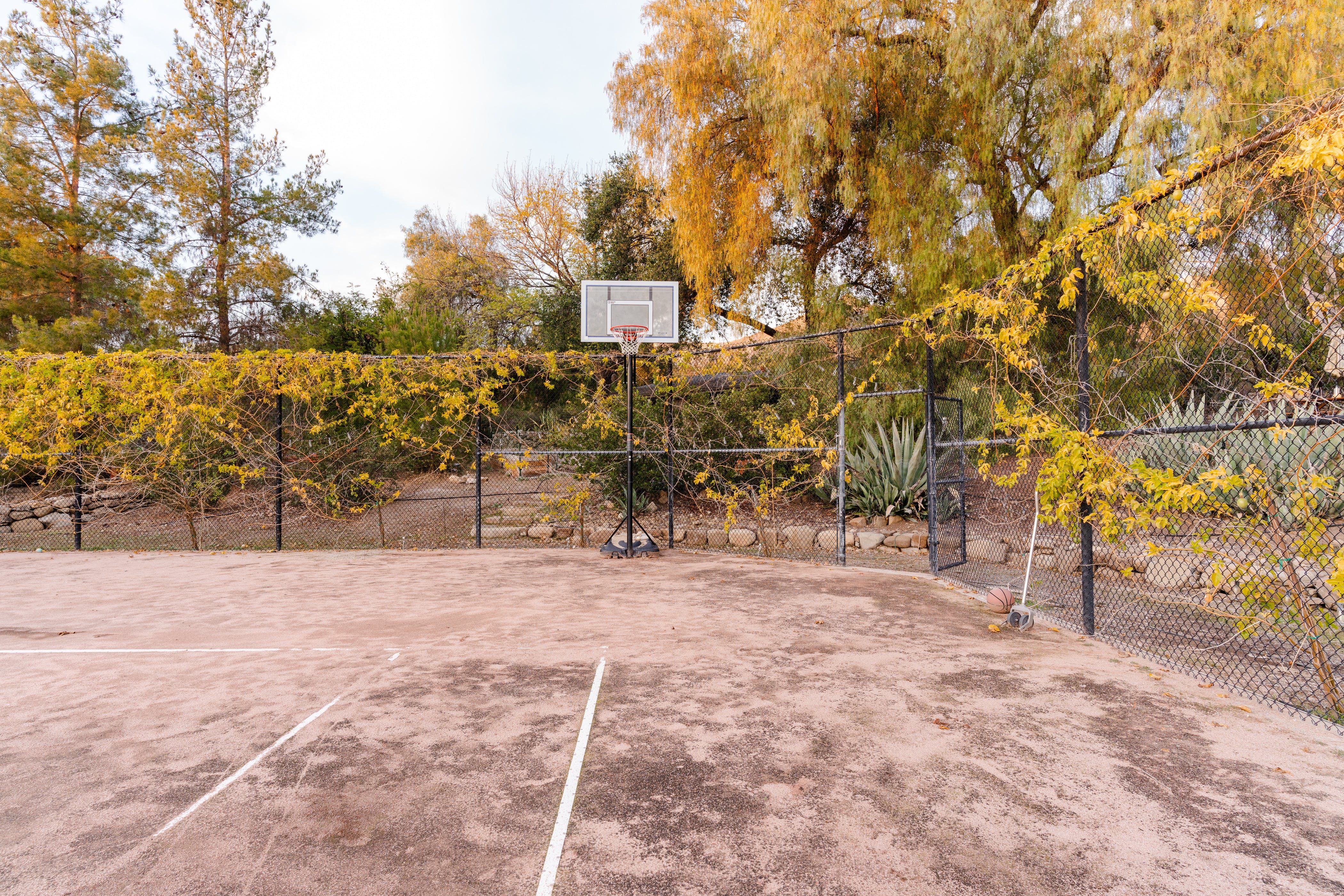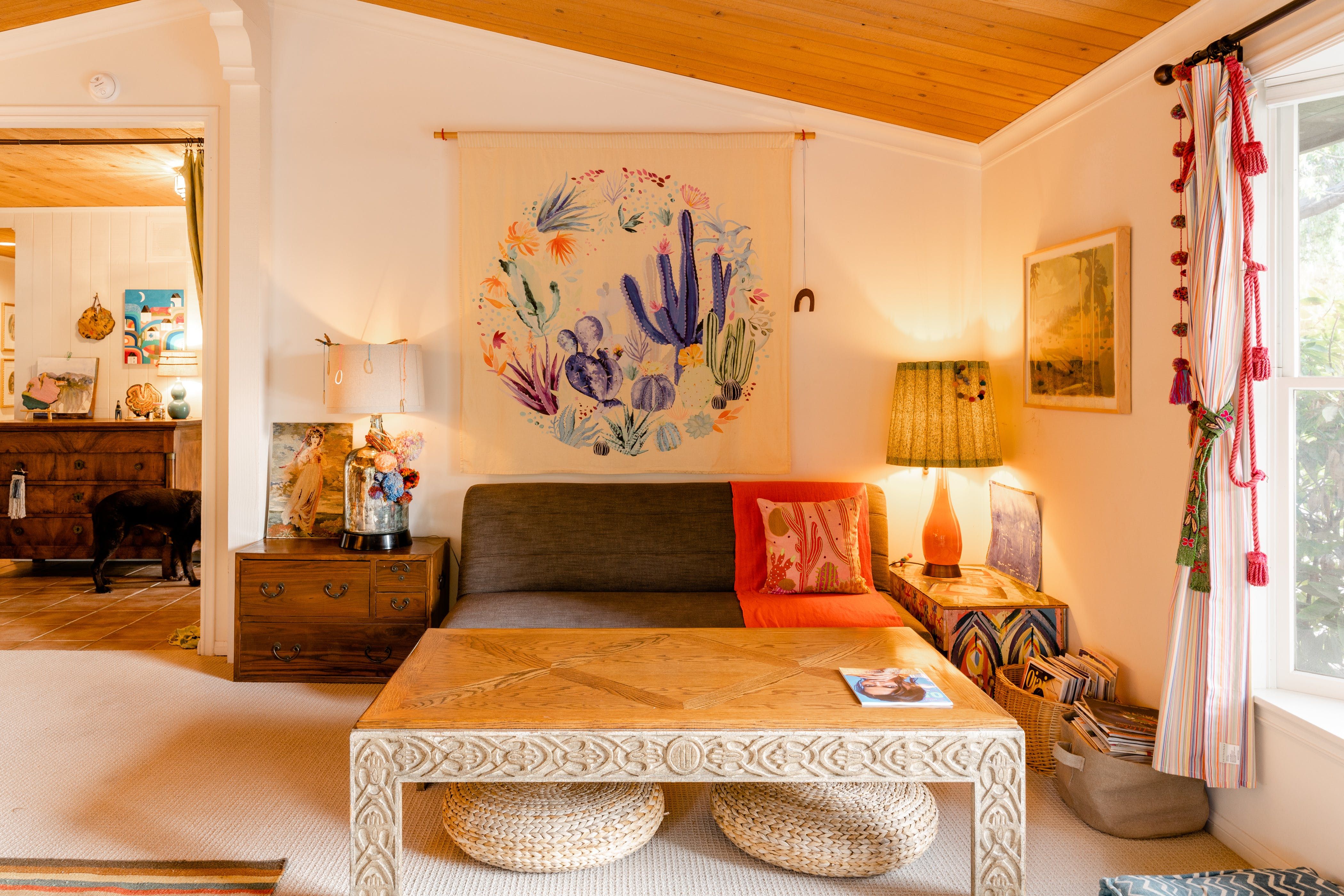 Nature lovers will feel perfectly at home in this earth-friendly Ojai ranch. Nestled among citrus and avocado trees, you’ll find this rustic sanctuary filled with handcrafted art and hidden treasures. The house also features a water purification system, biodegradable essentials and plenty of cosy nooks to read, relax or catch up on work. Outside, you can enjoy warm evenings swaying in the hammock and watching the stars while gathered around the fire pit. There is also a clay tennis court and plenty to explore in the surroundings. From here, it’s less than a ten-minute drive to Downtown Ojai.