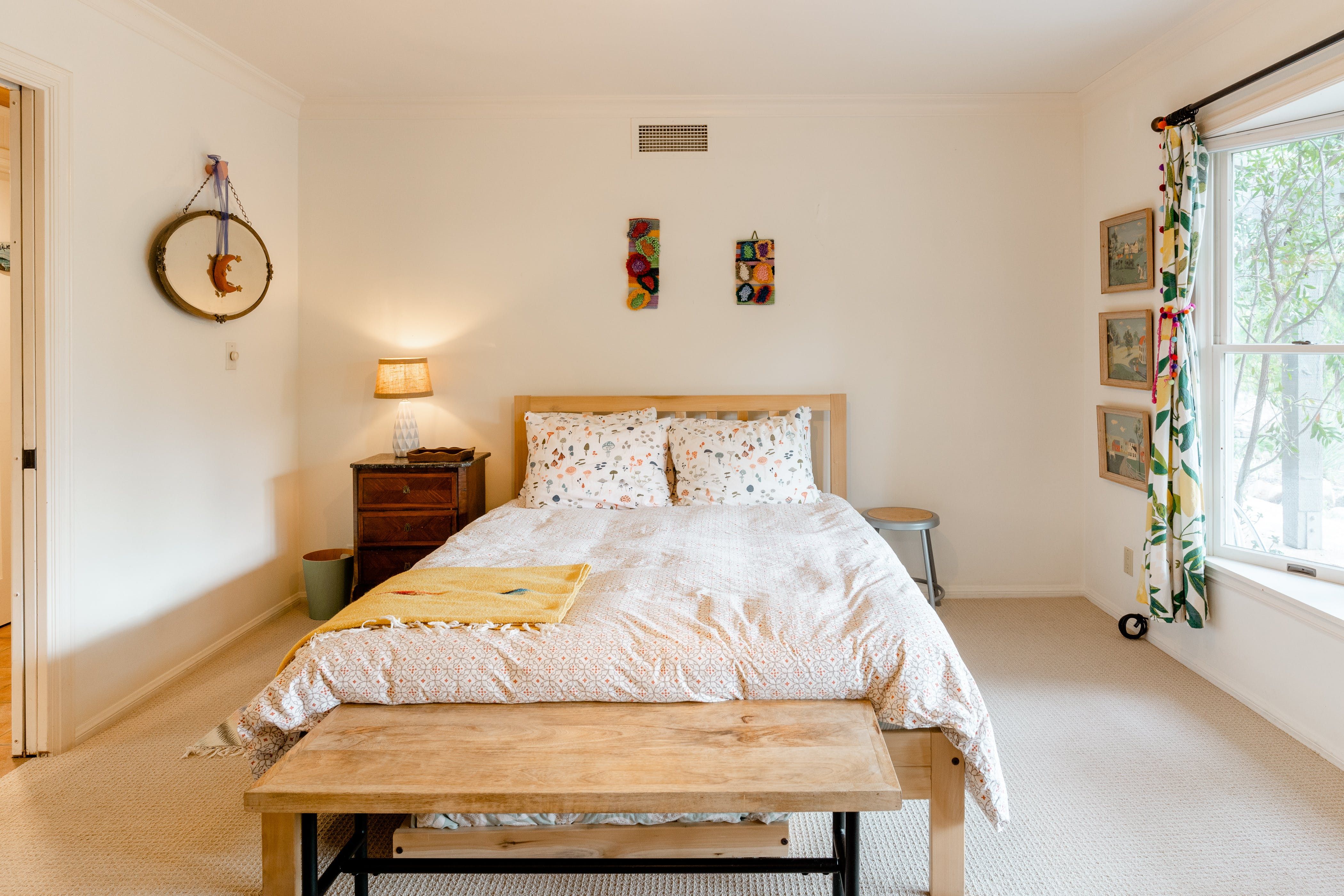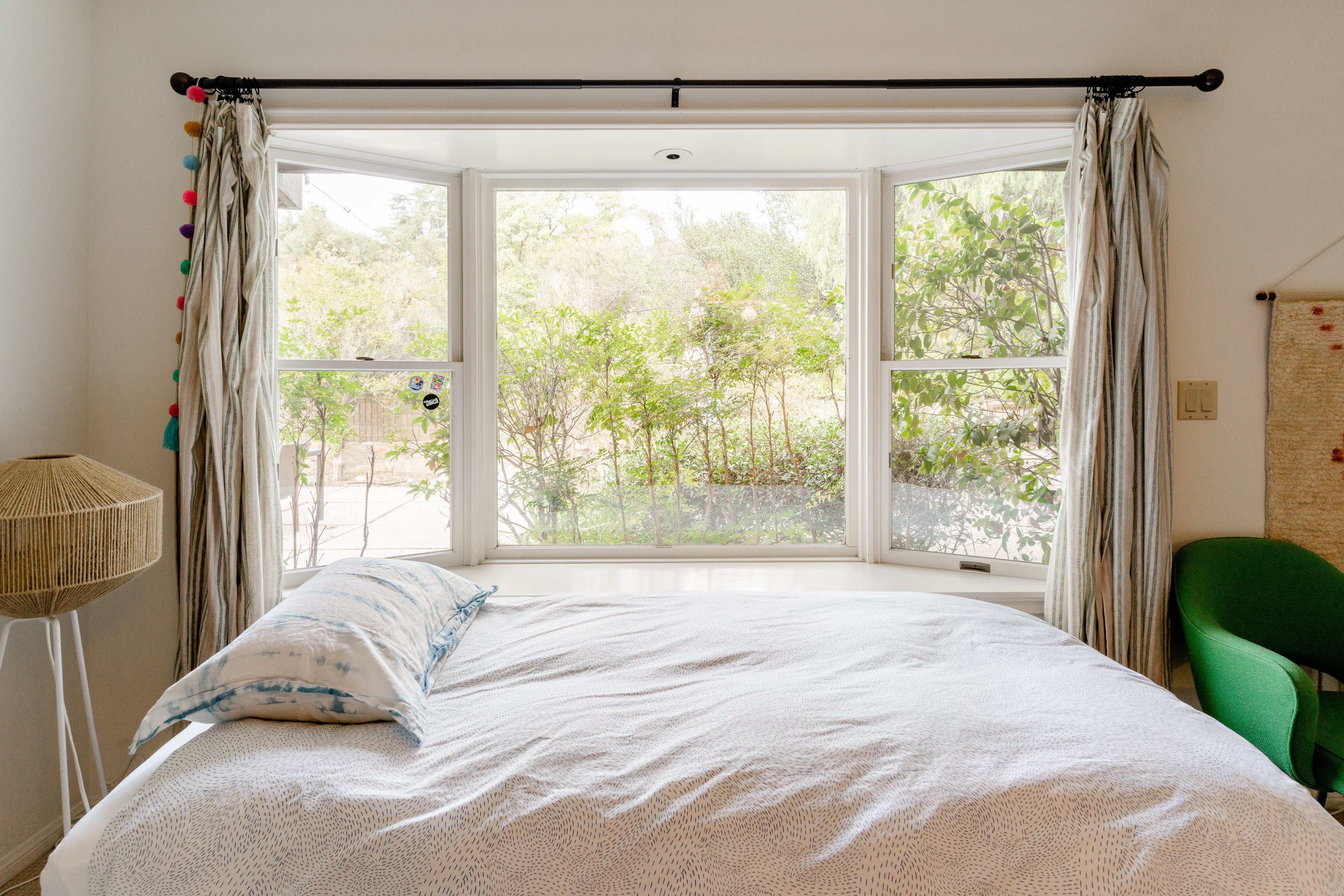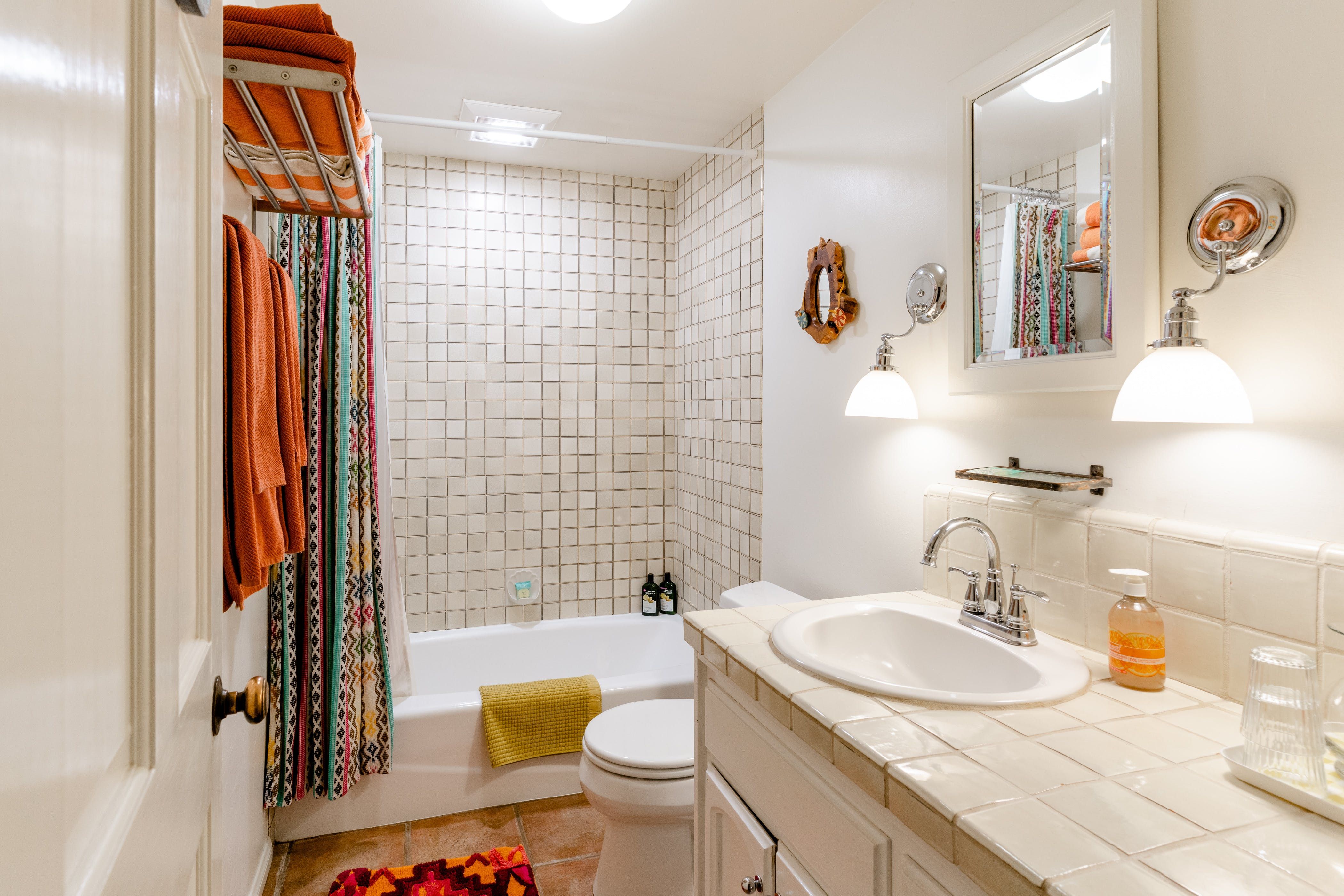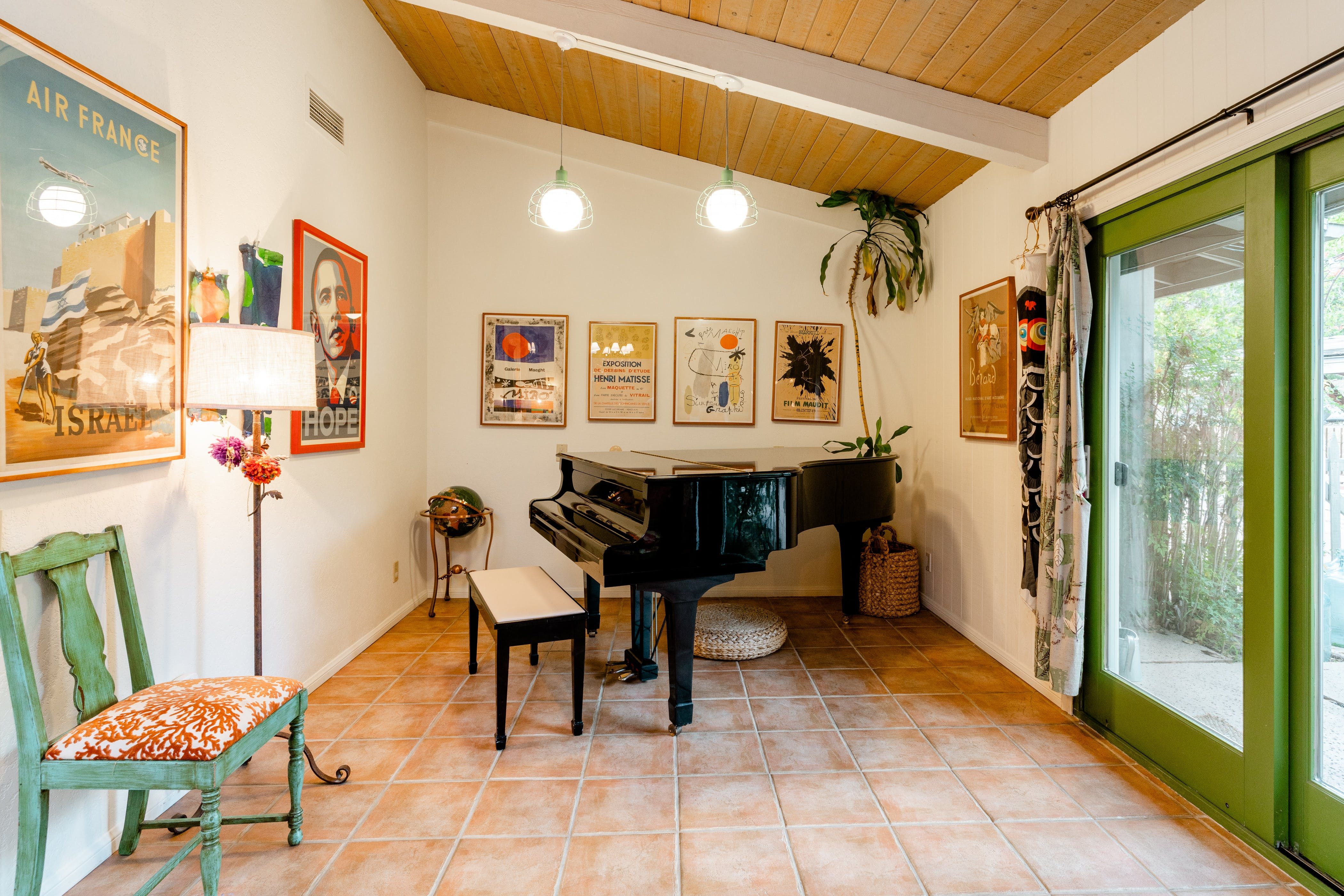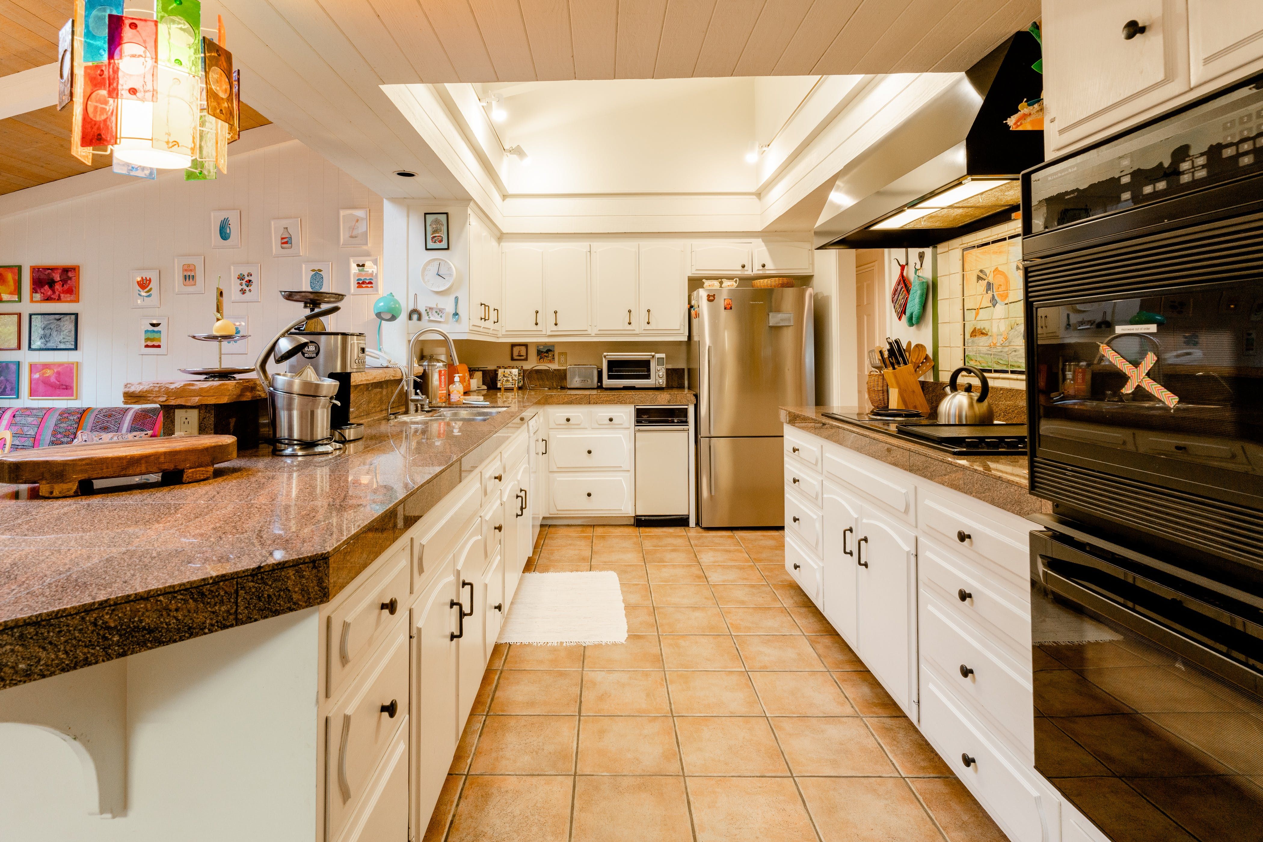 Nature lovers will feel perfectly at home in this earth-friendly Ojai ranch. Nestled among citrus and avocado trees, you’ll find this rustic sanctuary filled with handcrafted art and hidden treasures. The house also features a water purification system, biodegradable essentials and plenty of cosy nooks to read, relax or catch up on work. Outside, you can enjoy warm evenings swaying in the hammock and watching the stars while gathered around the fire pit. There is also a clay tennis court and plenty to explore in the surroundings. From here, it’s less than a ten-minute drive to Downtown Ojai.