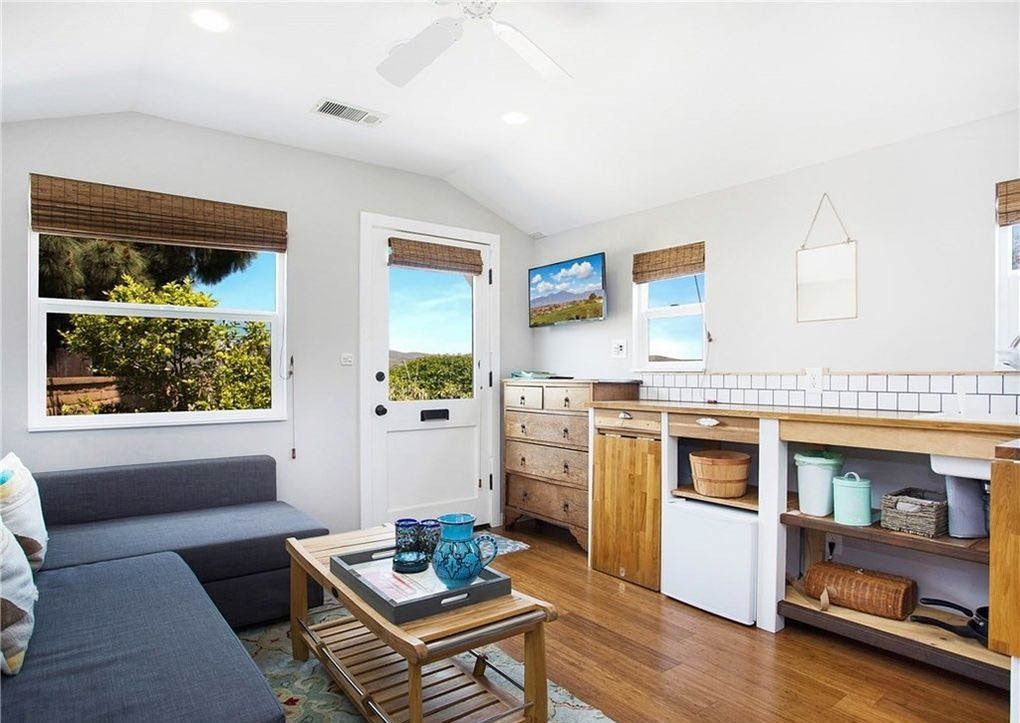 This cheerful home promises a secluded stay, surrounded by so much lush nature that you’ll hardly be able to believe you’re just ten minutes' walk from downtown San Juan Capistrano. The bright living room decor sets the tone for your holiday from the moment you walk through the front door – thoughtfully designed spaces, with a focus on beachy colours and natural materials that echo the home’s eco-credentials. The main house has three bedrooms, including a playful kids' room with bunk beds and a master bedroom that opens out into the garden. There's also a tiny house in the gardens perfect for lovestruck couples to enjoy some time alone. Though the interiors are lovely, it’s the garden that captures the heart. A solar-heated pool sits on the green lawn – perfect for a cooling dip after a vigorous game of basketball, volleyball, or tennis, or perhaps just for lounging around on the beach chairs in the California heat. The garden is lined with flourishing fruit trees and a vegetable patch, and you’re welcome to help yourself to nature's bounty. Pluck a tangerine for a mid-morning snack or whip up a batch of avocado toast for brunch in the sunroom before heading out to explore San Juan Capistrano.