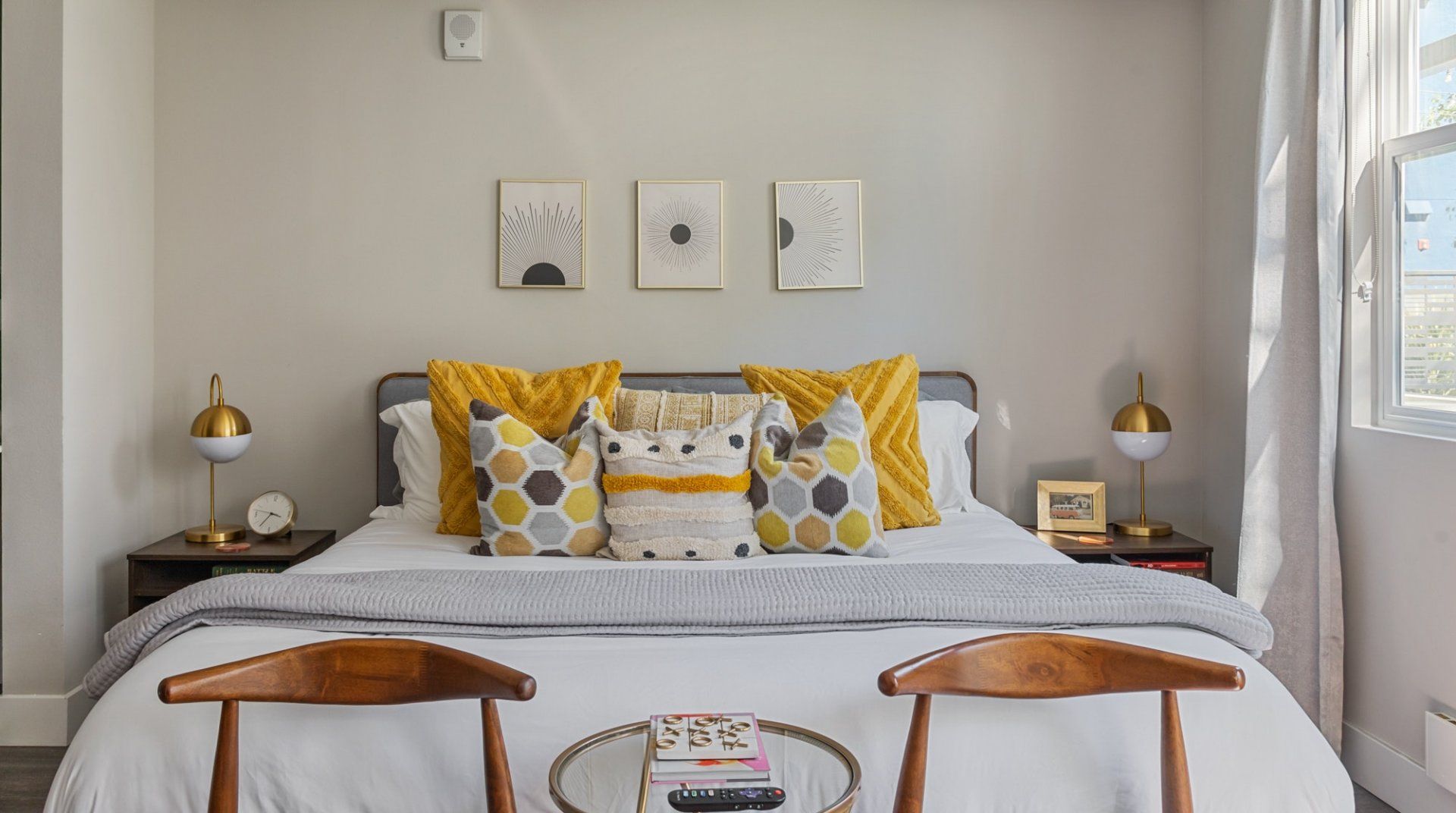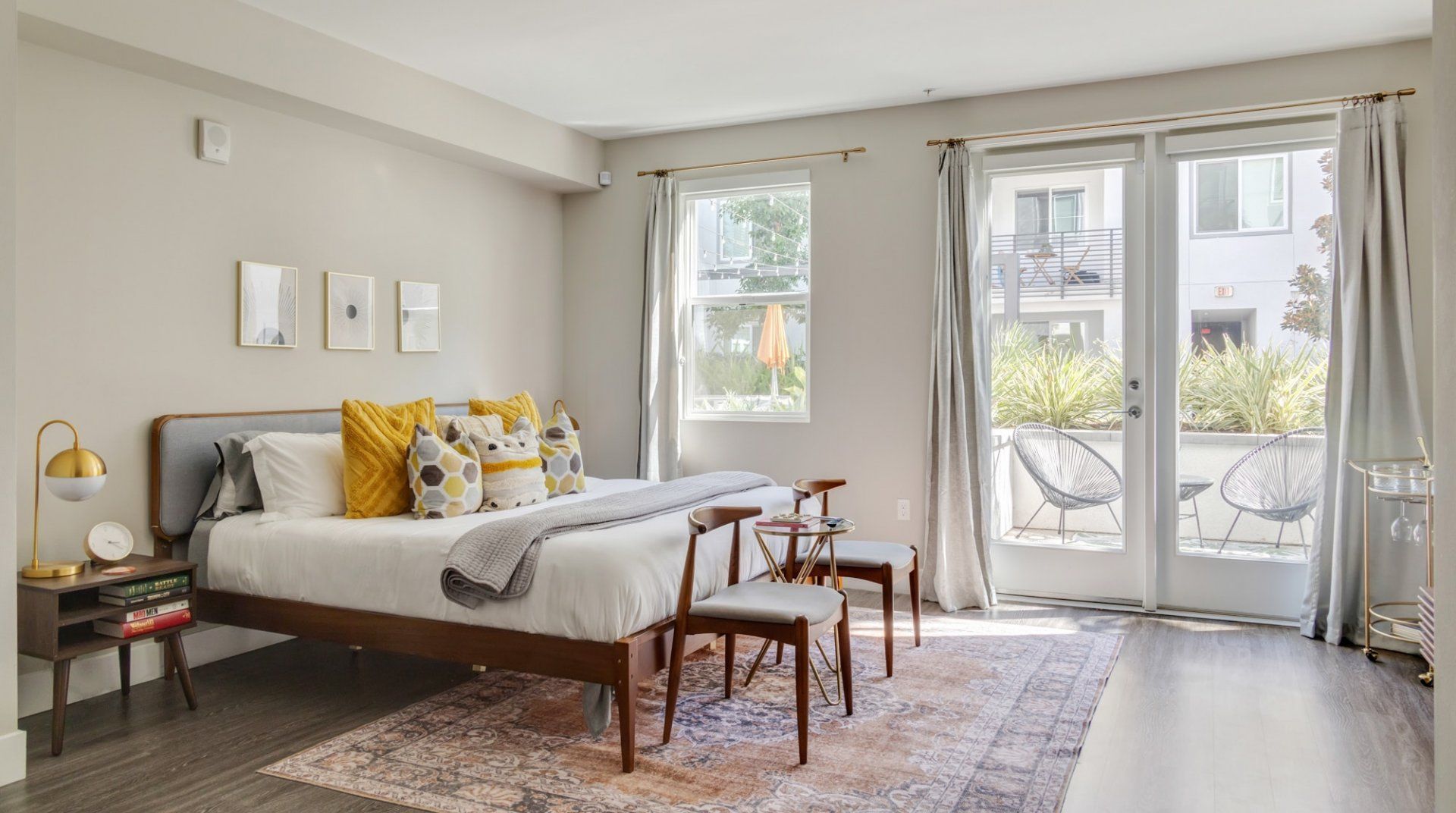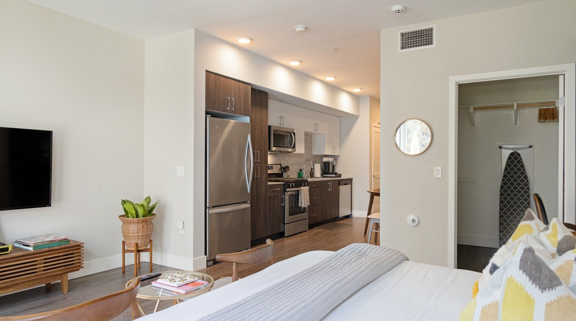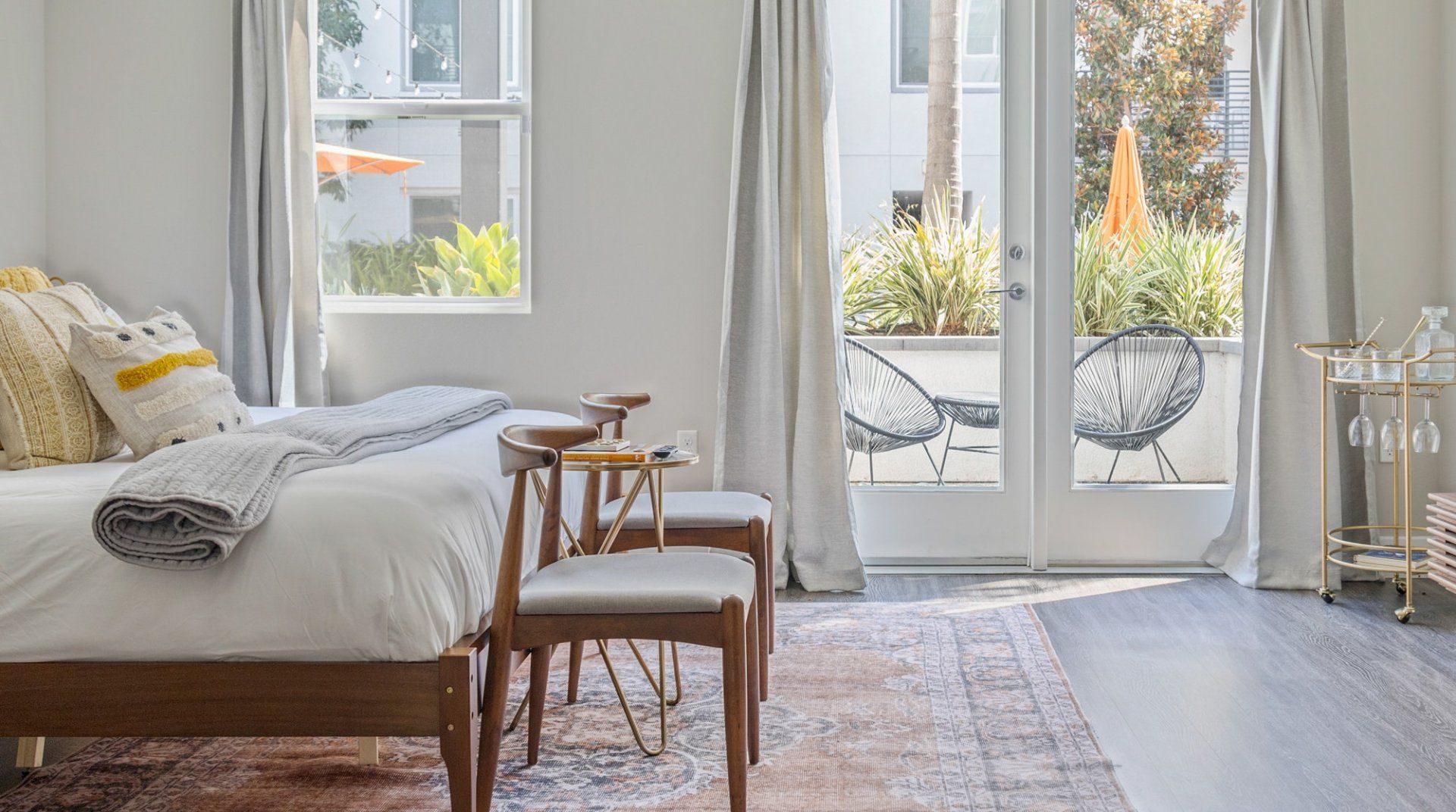 There are several things that lift this Orange studio apartment above its peers. The elegant mid-century furnishings dotted throughout the space bring a touch of class, and the grey colour palette feels particularly en vogue.